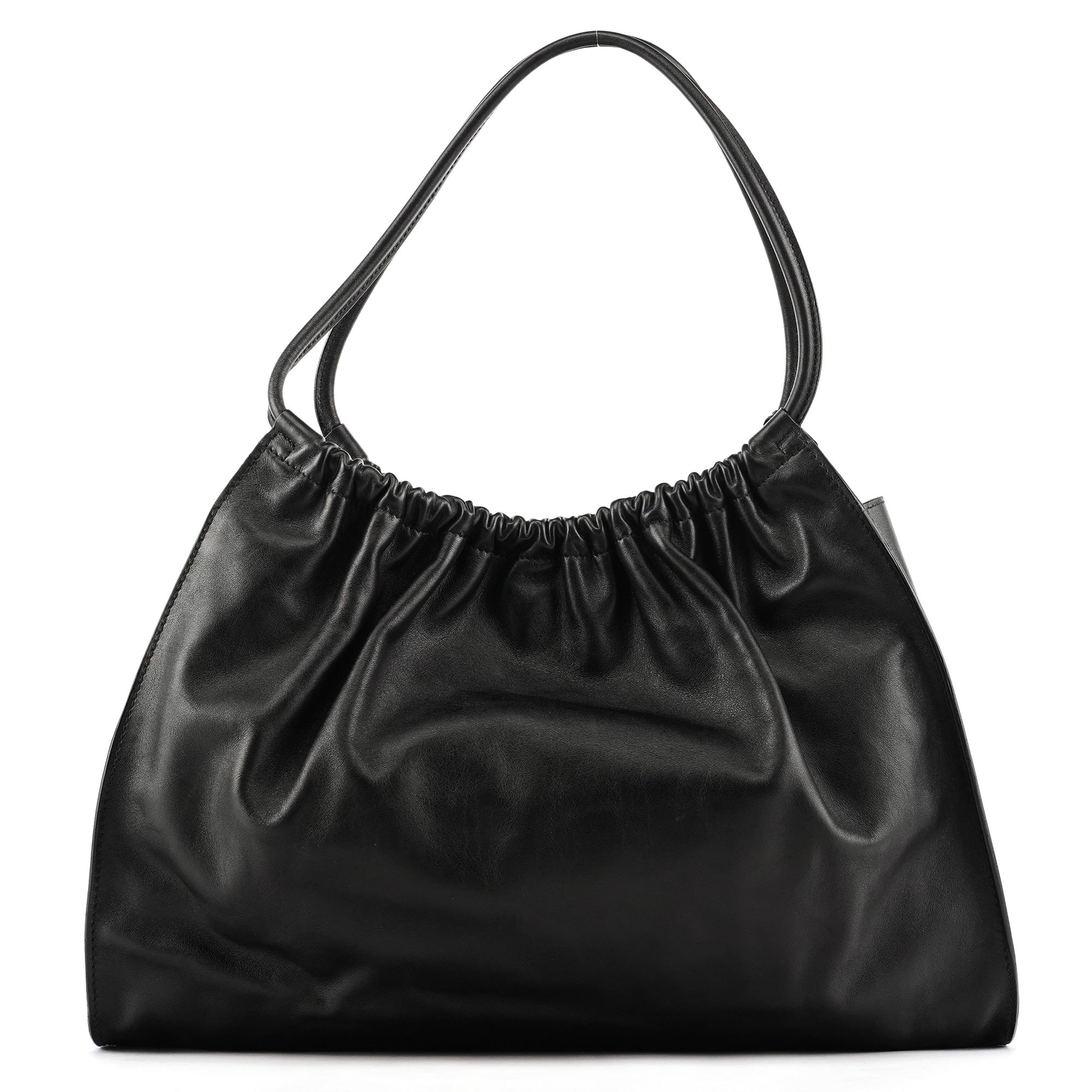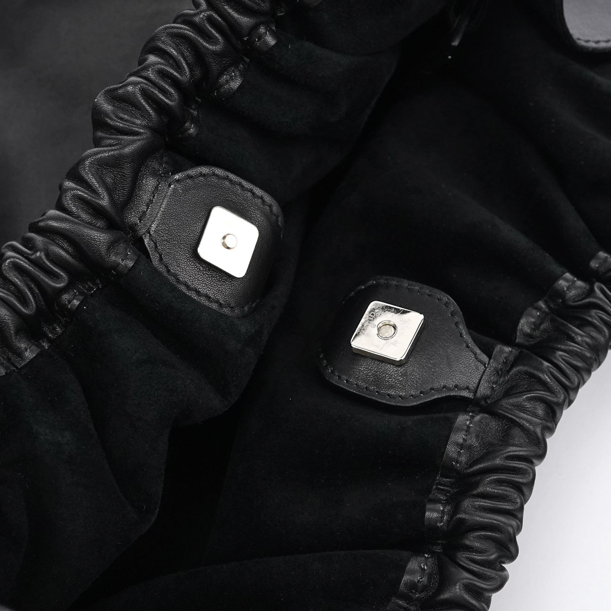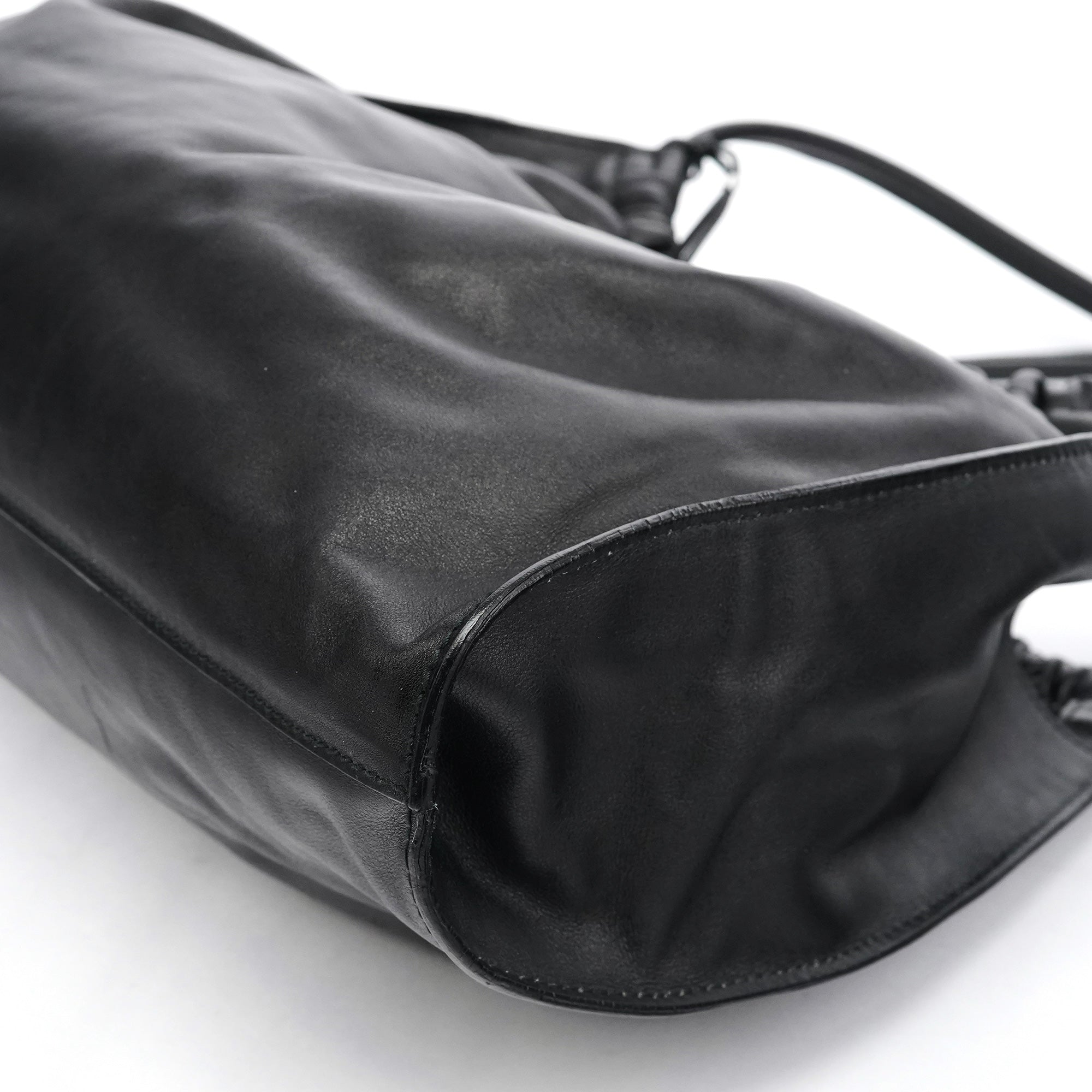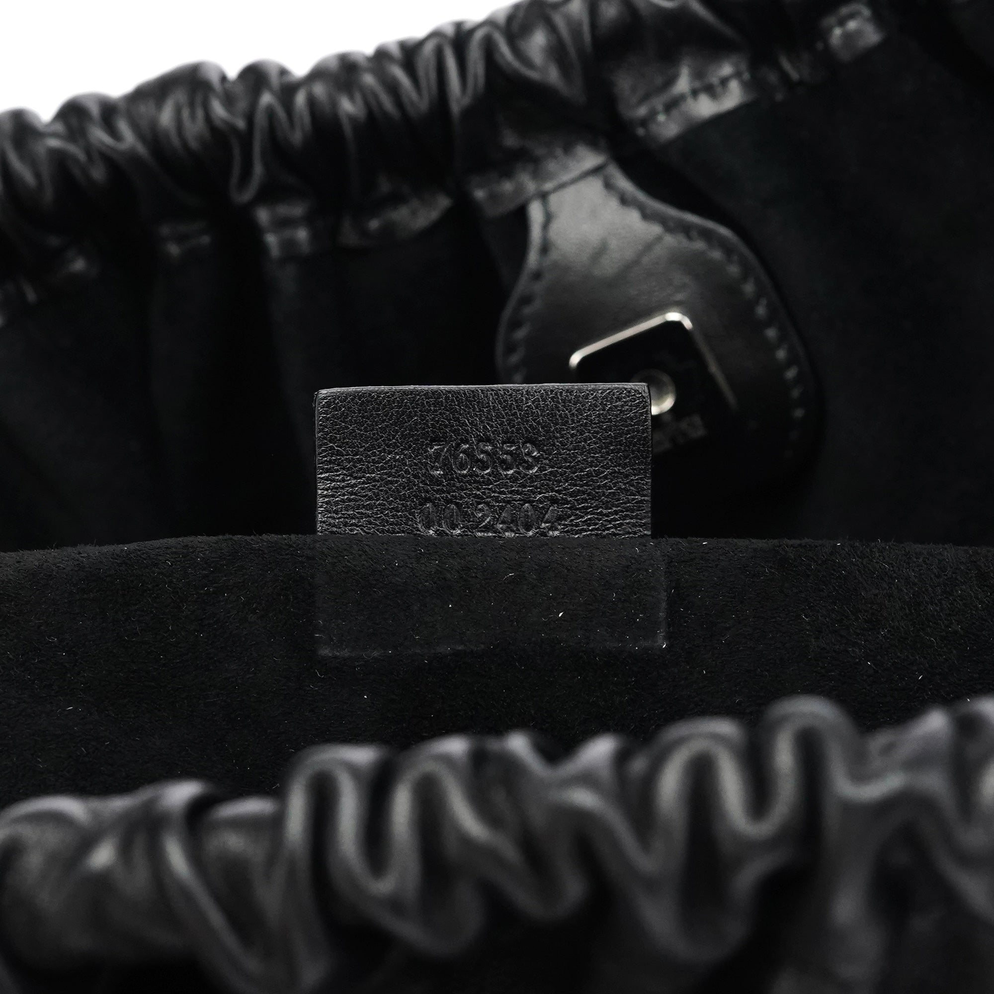 Designed in the late 1990s under Tom Ford’s direction at Gucci, this slouchy hobo is crafted in smooth black calfskin leather with a softly ruched top and minimalist silhouette. It features double shoulder straps, a magnetic snap closure, and a spacious suede-lined interior with a zip pocket. Finished with subtle silver-tone branding, it’s an understated yet refined example of Ford-era Gucci.
