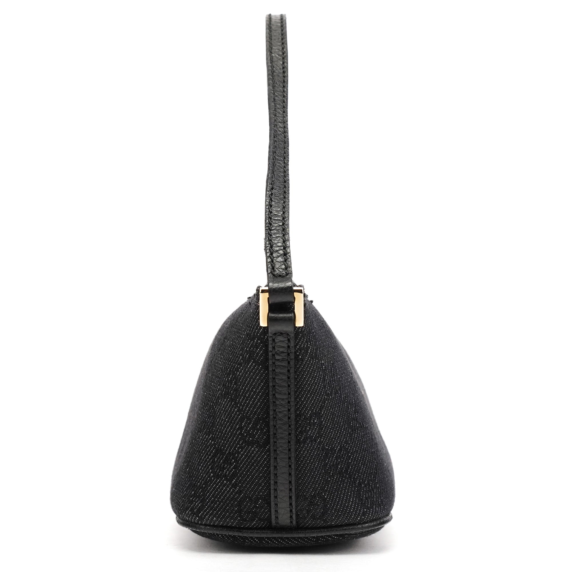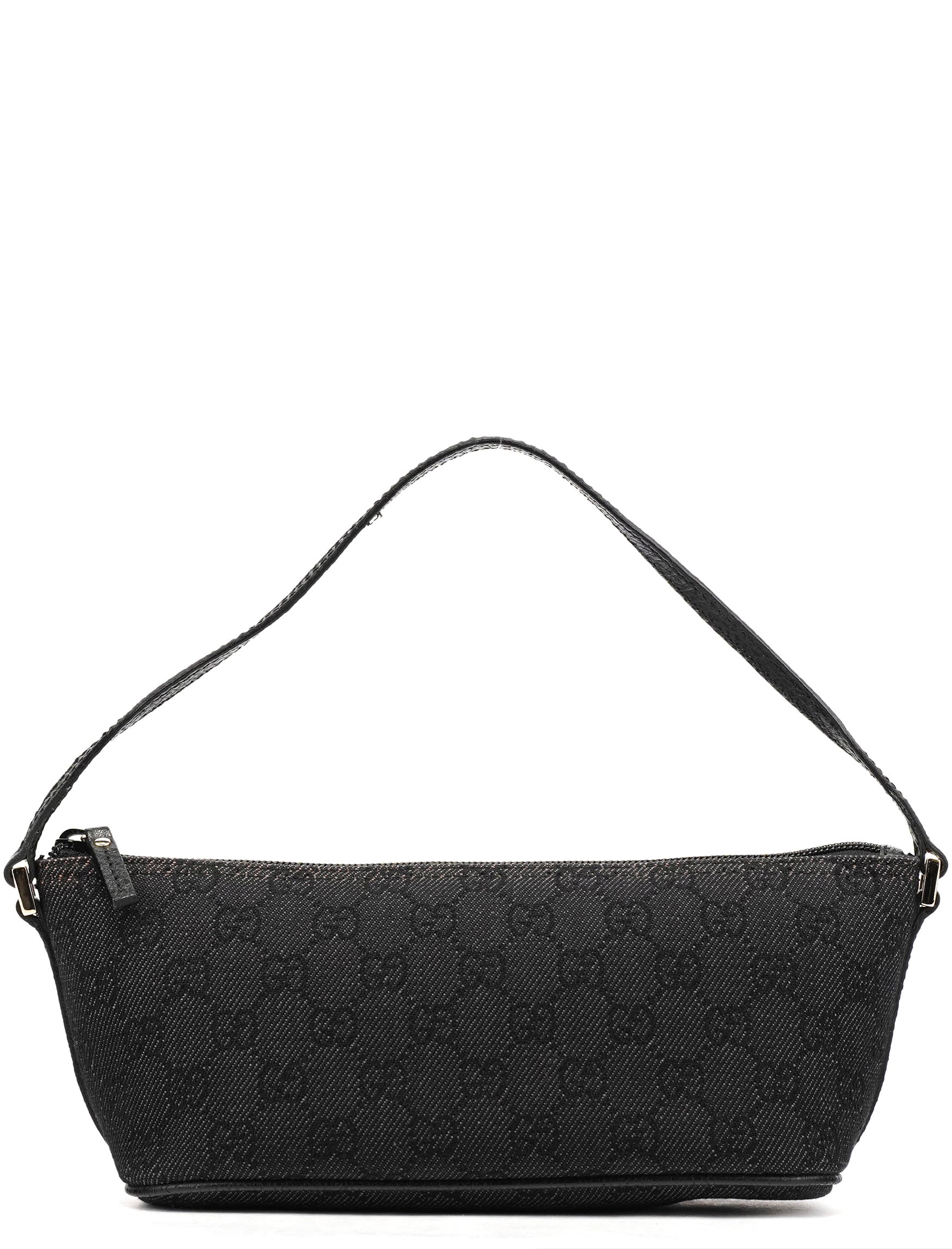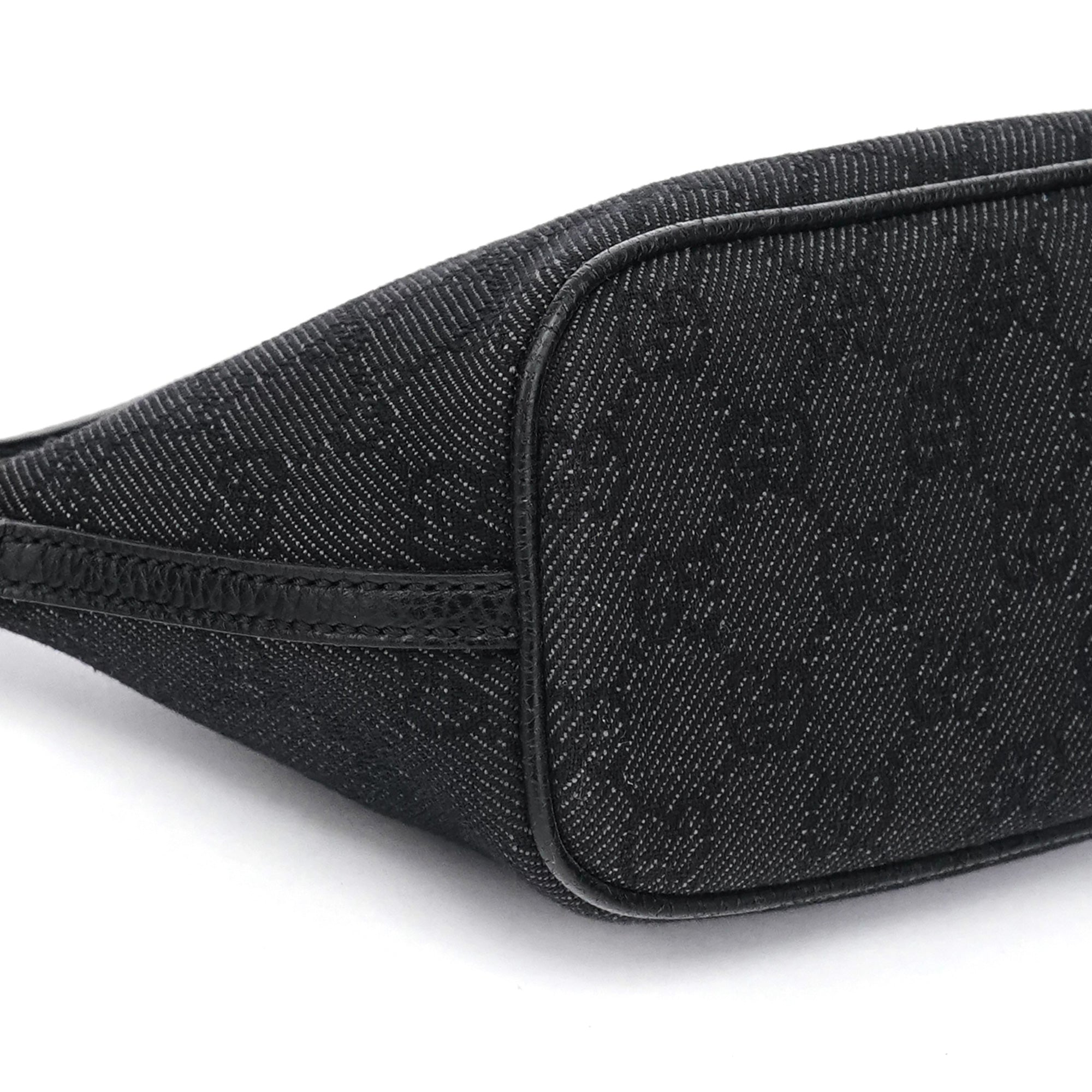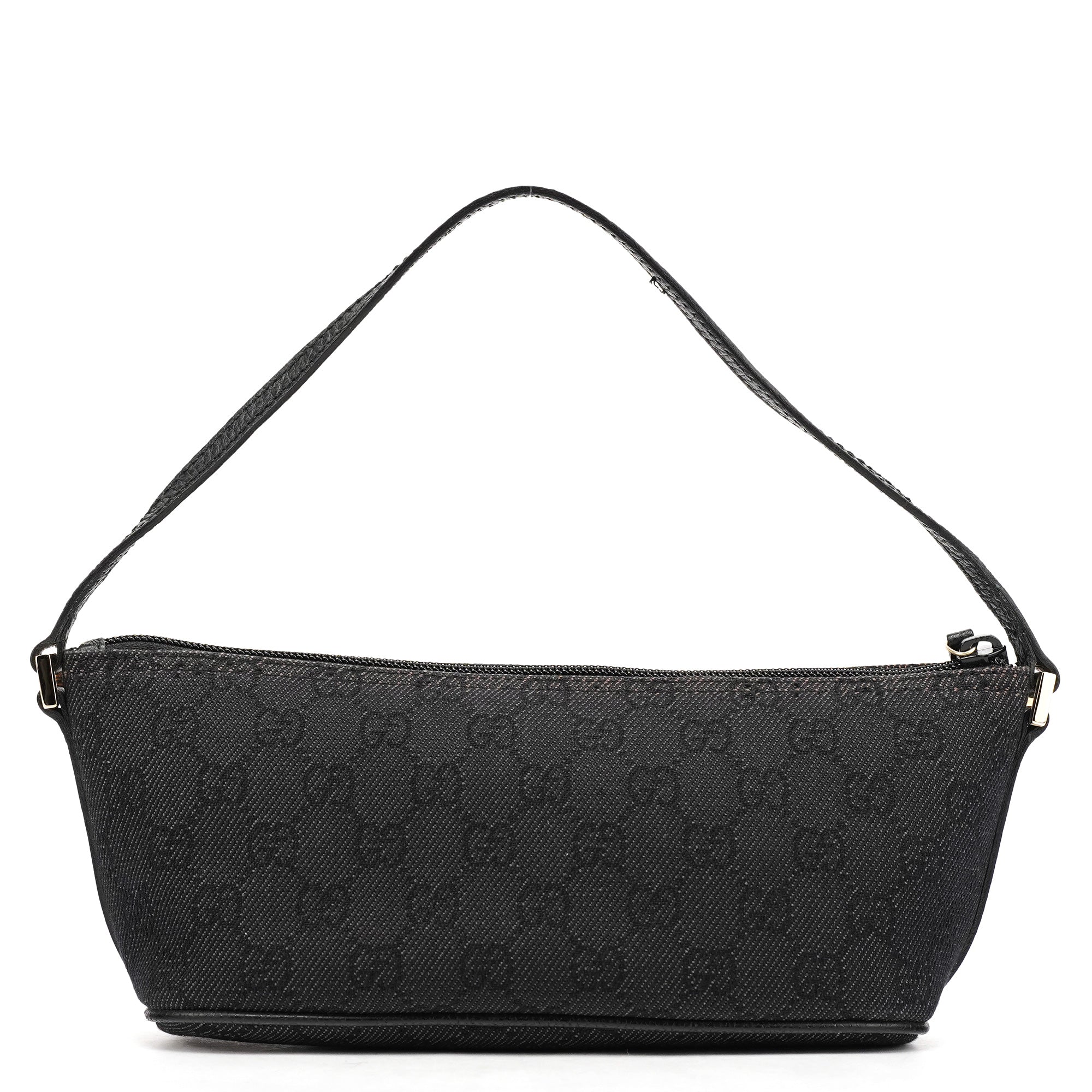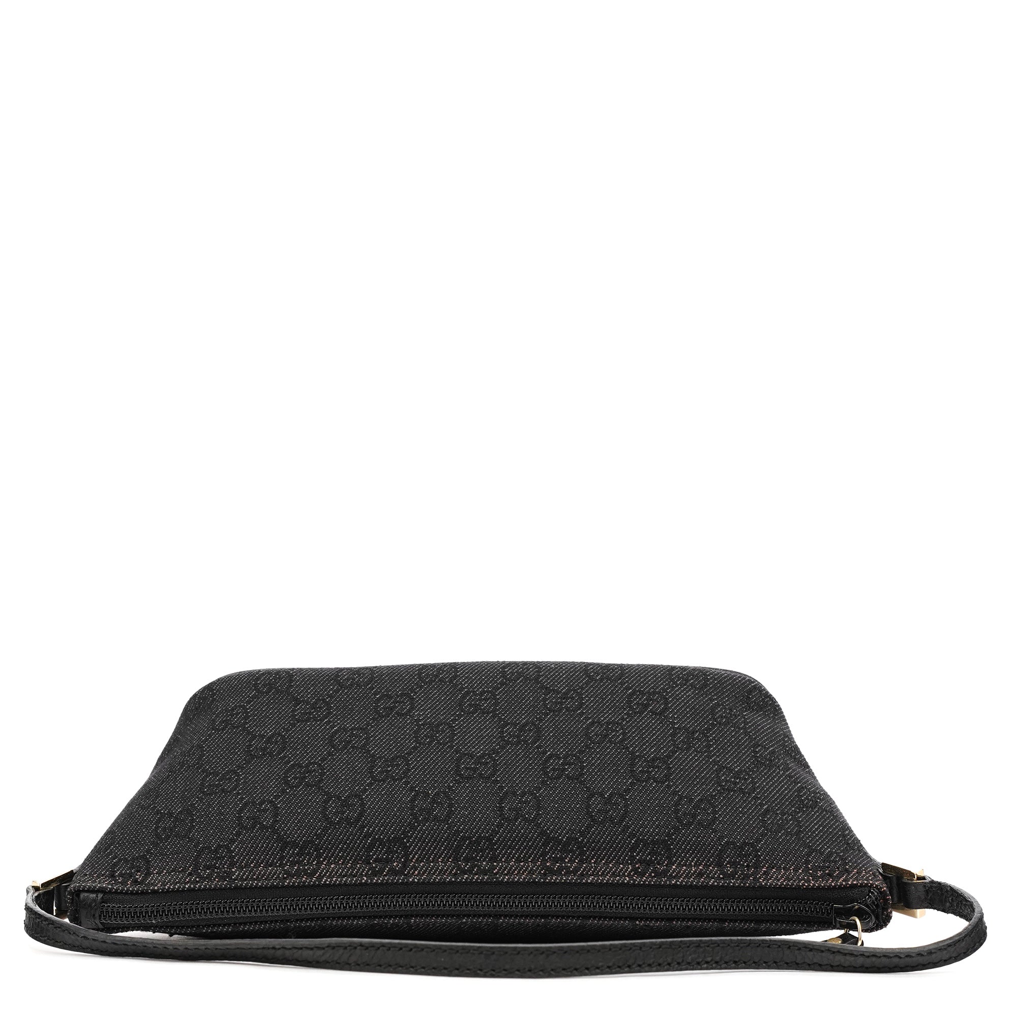 Designed in the early 2000s by Tom Ford, this Gucci GG Boat Pochette features anthracite GG denim, silver-tone hardware, and a clean, minimal silhouette without the front logo plaque. A slim strap and top-zip closure complete this understated version of the classic style.