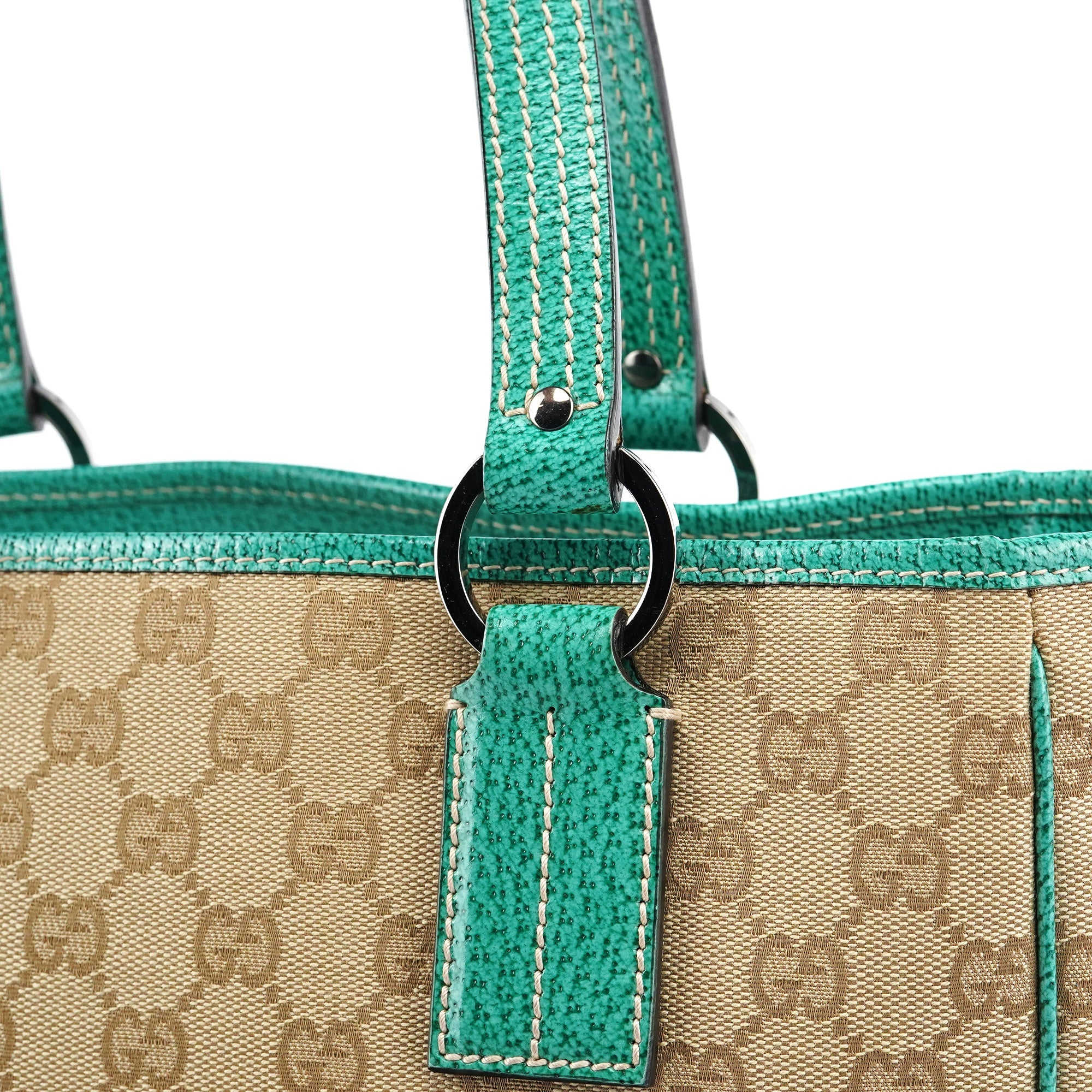 Beige Turquoise GG Tote Bag