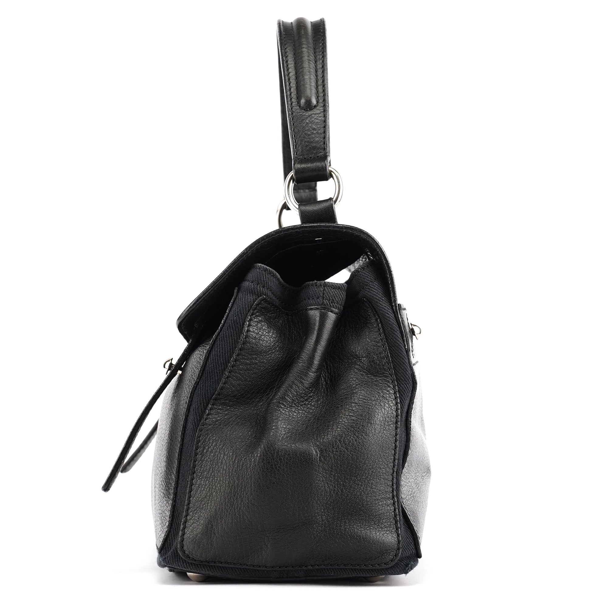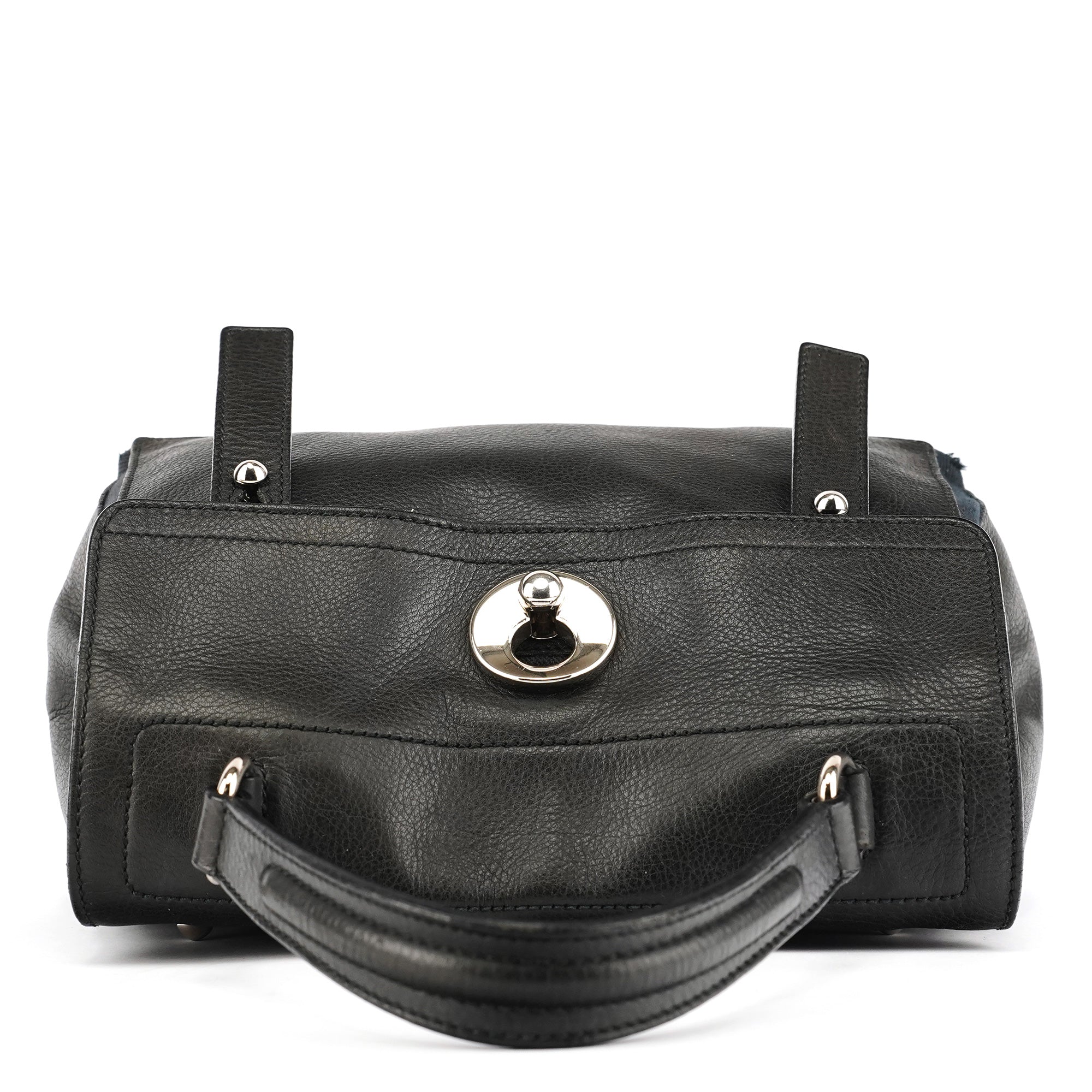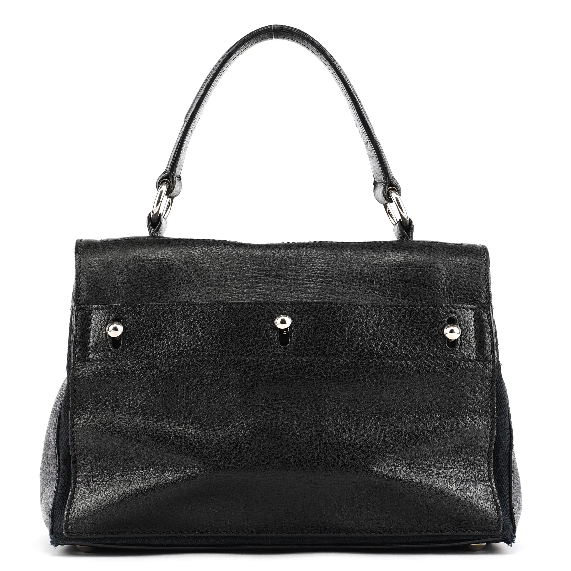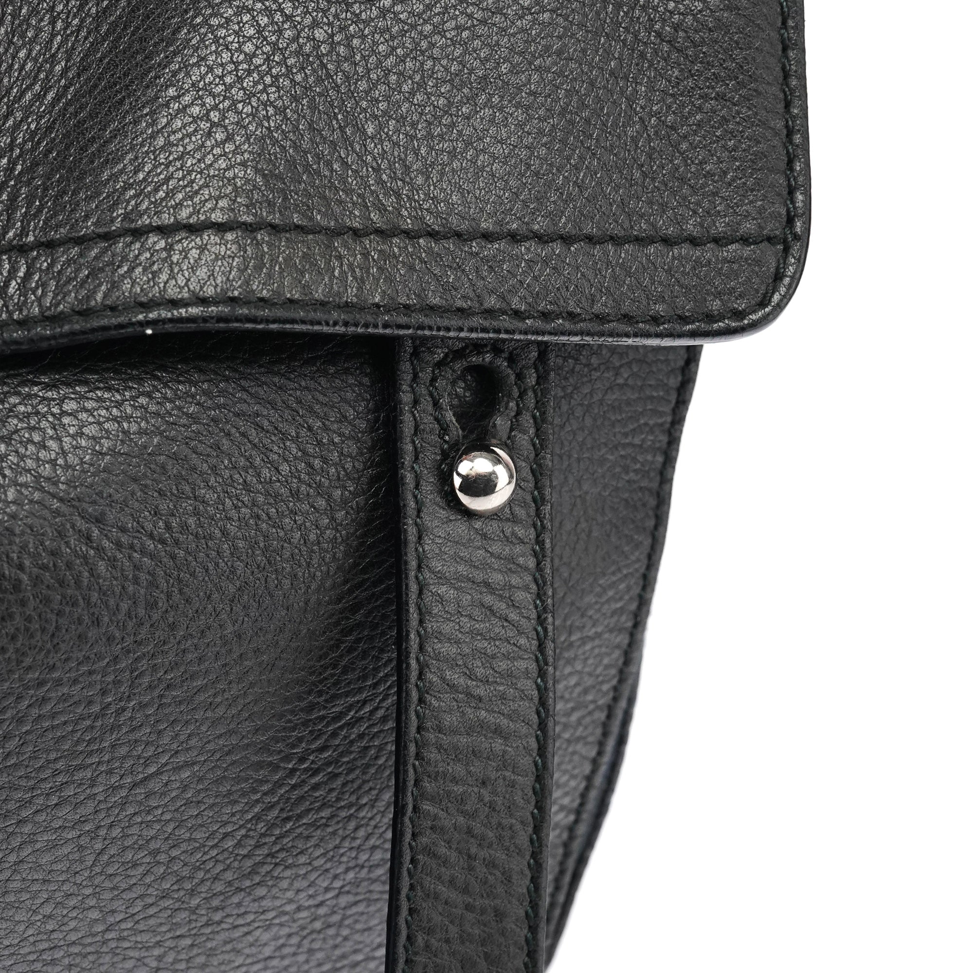 Designed in the late 2000s, this vintage Yves Saint Laurent Muse Two features black pebbled leather with the model's signature oversized fold-over flap and prominent turnlock closure. The single top handle and detachable shoulder strap offer versatile carrying options.