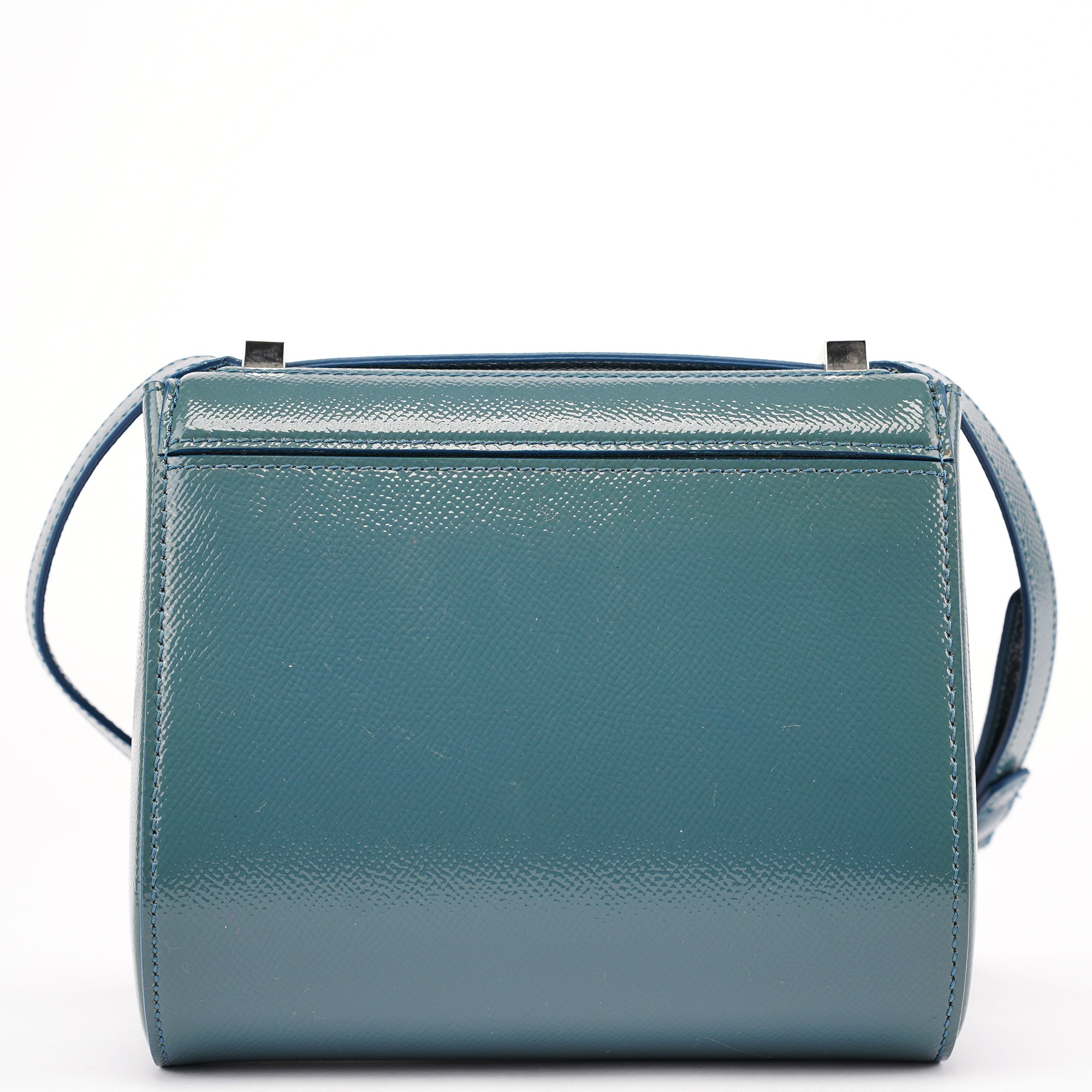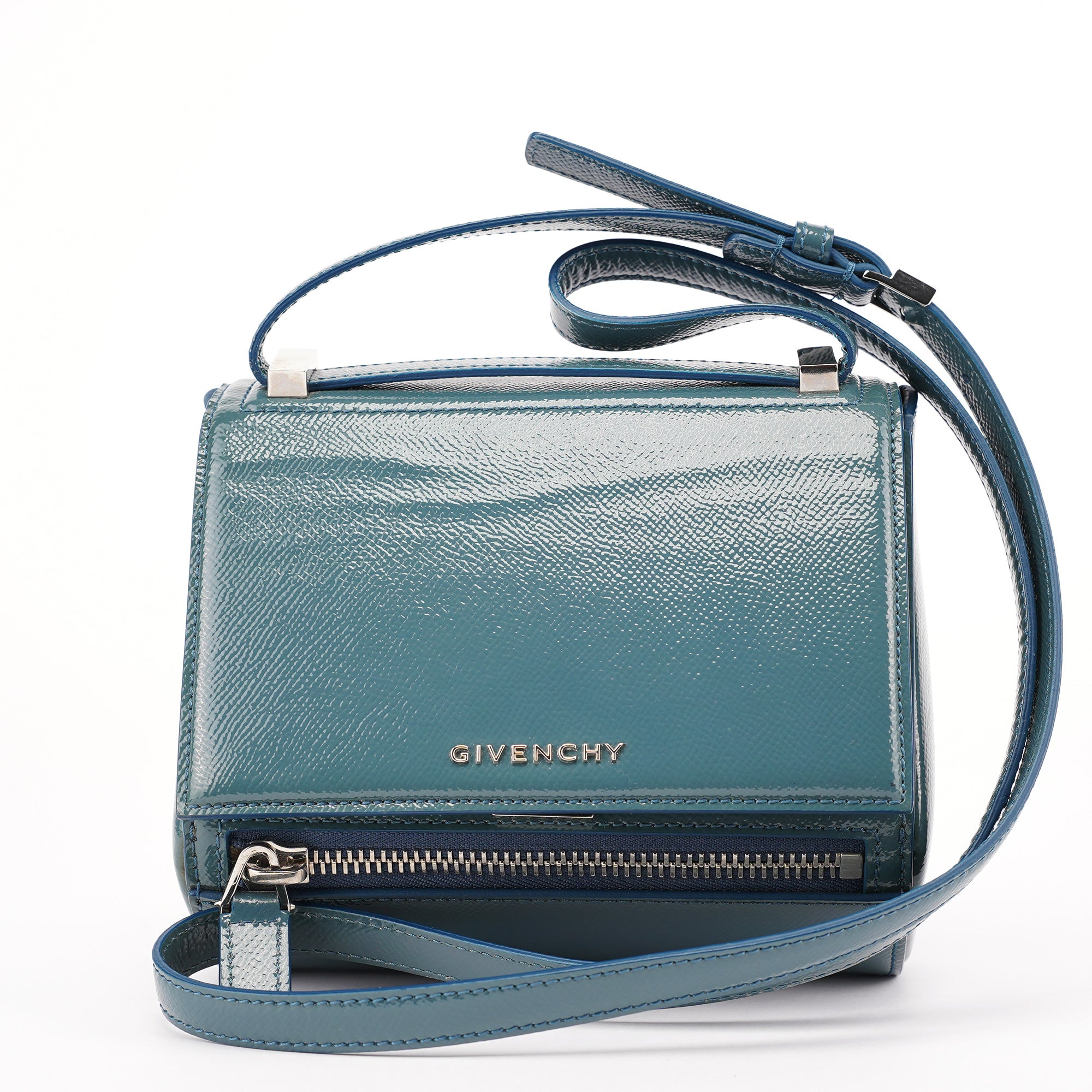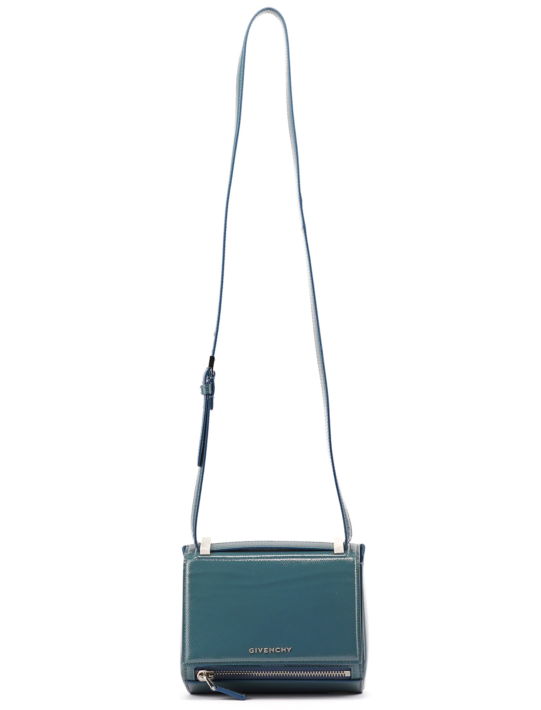 Designed in the 2010s by Riccardo Tisci, this navy Pandora crossbody bag is crafted from glossy Saffiano leather and structured in its signature cube-like silhouette with a slanted zip flap and silver-tone logo hardware. The design features an adjustable shoulder strap and a spacious twill-lined interior with a zip pocket for added functionality.
