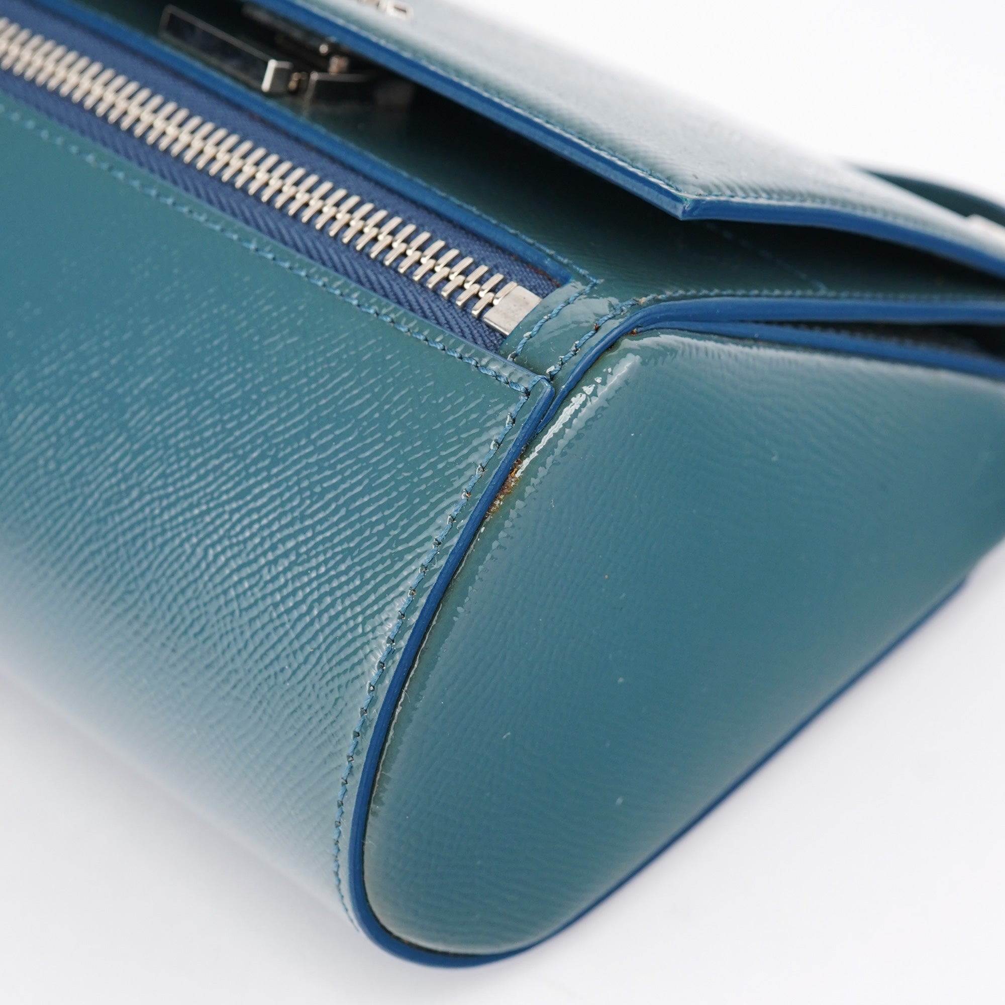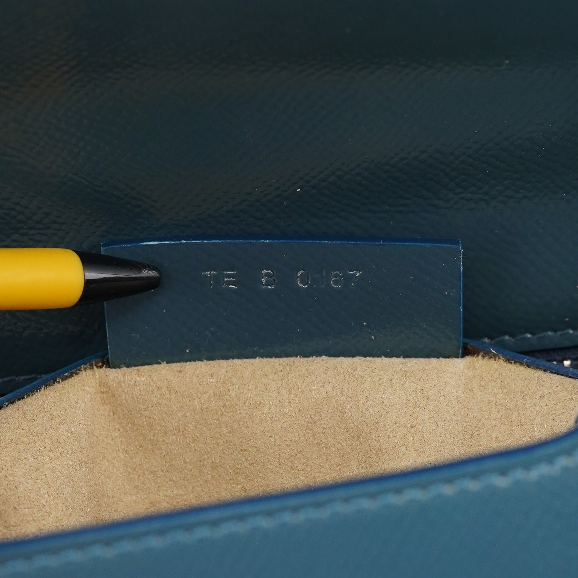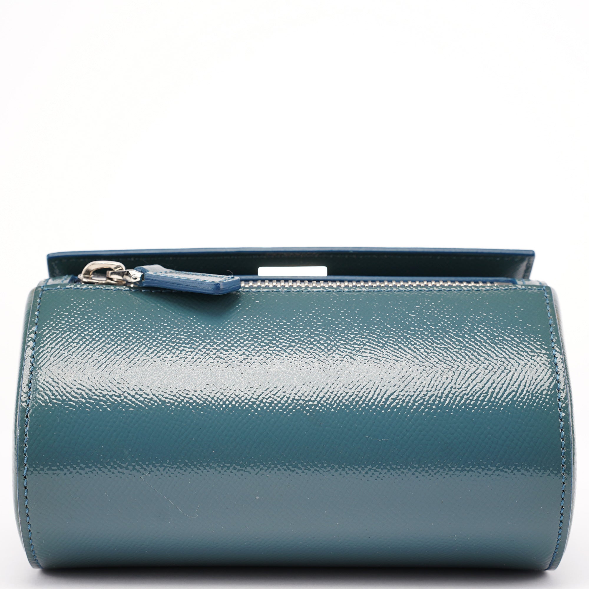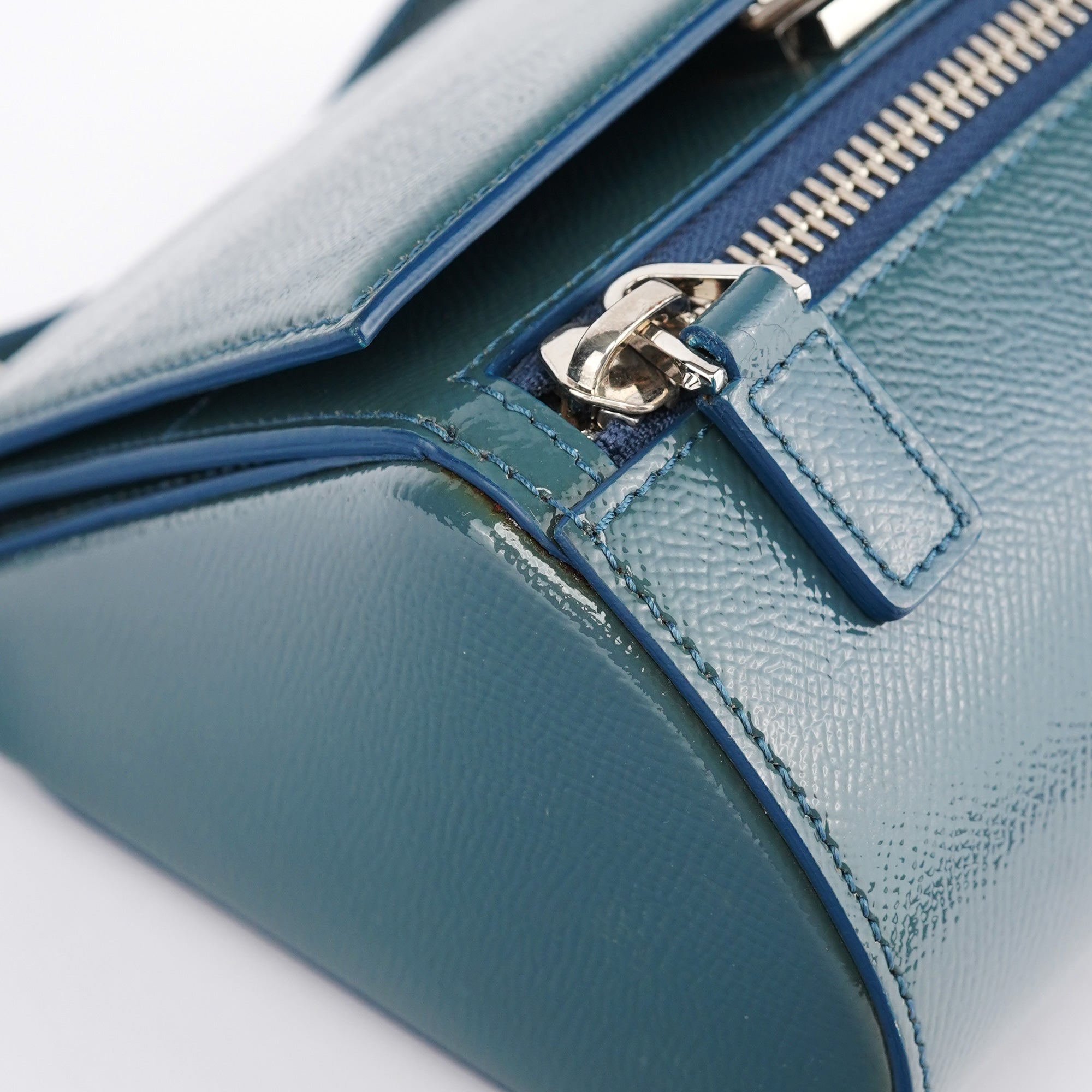 Designed in the 2010s by Riccardo Tisci, this navy Pandora crossbody bag is crafted from glossy Saffiano leather and structured in its signature cube-like silhouette with a slanted zip flap and silver-tone logo hardware. The design features an adjustable shoulder strap and a spacious twill-lined interior with a zip pocket for added functionality.