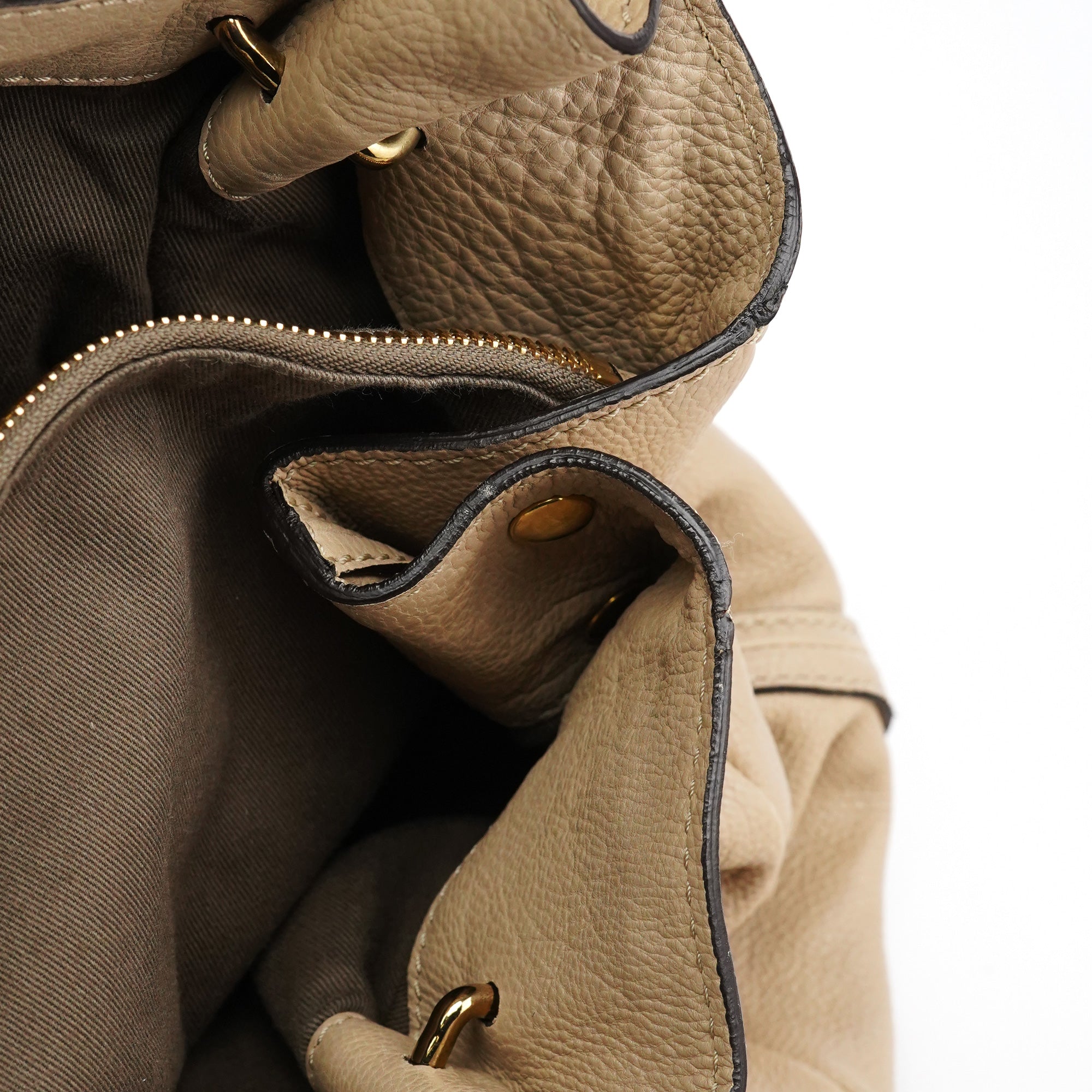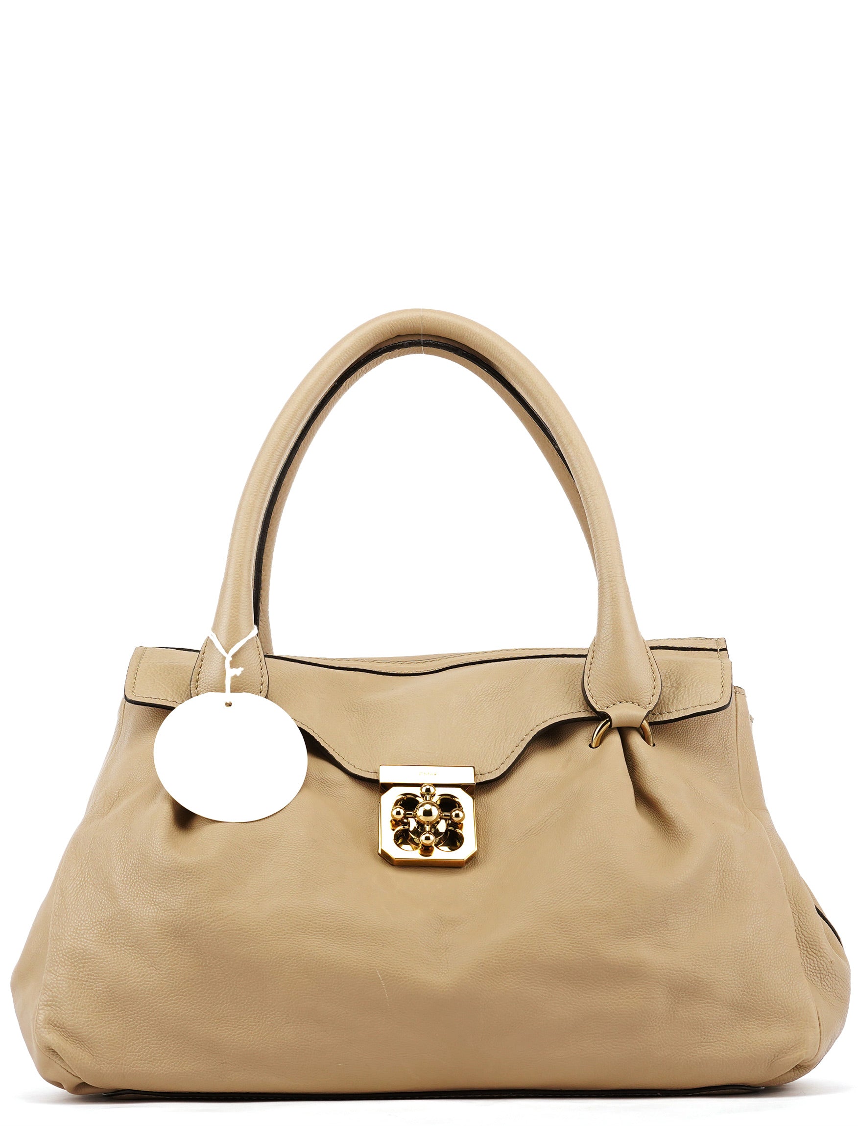 Designed in the 2010s, this Chloé turnlock tote is crafted from supple beige calfskin with a softly structured silhouette. The design is finished with the house’s signature gold-tone turnlock closure, rolled top handles, and a spacious fabric-lined interior with a zip pocket for everyday essentials.