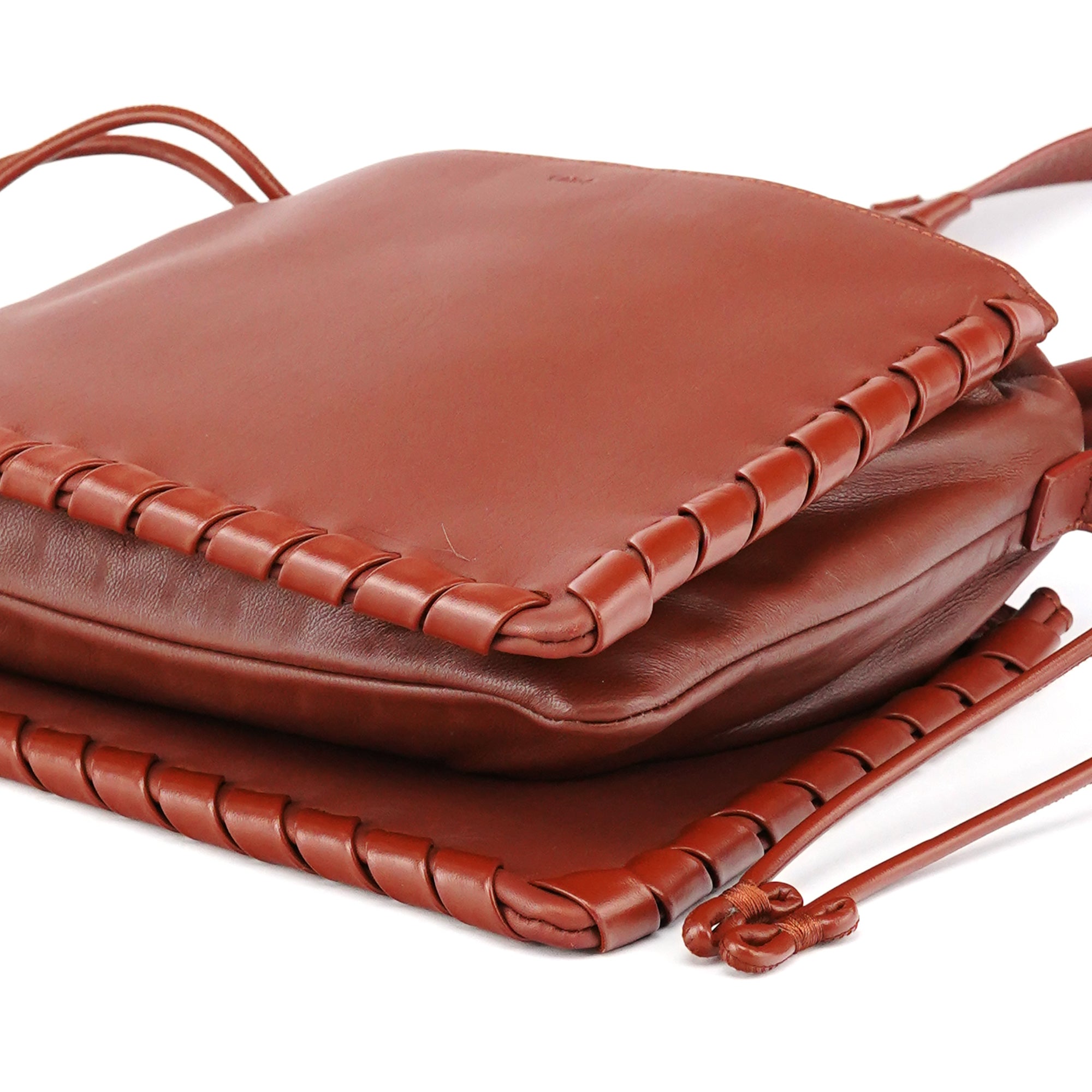 Designed in the 2020s, this Chloé shoulder bag is crafted in smooth brown calfskin with the line’s braided side detailing and signature curved “C” hardware ring at the strap. The soft, structured silhouette features drawstring ends, a wide shoulder strap, and a spacious leather-lined interior that balances modern minimalism with Chloé’s artisanal edge.