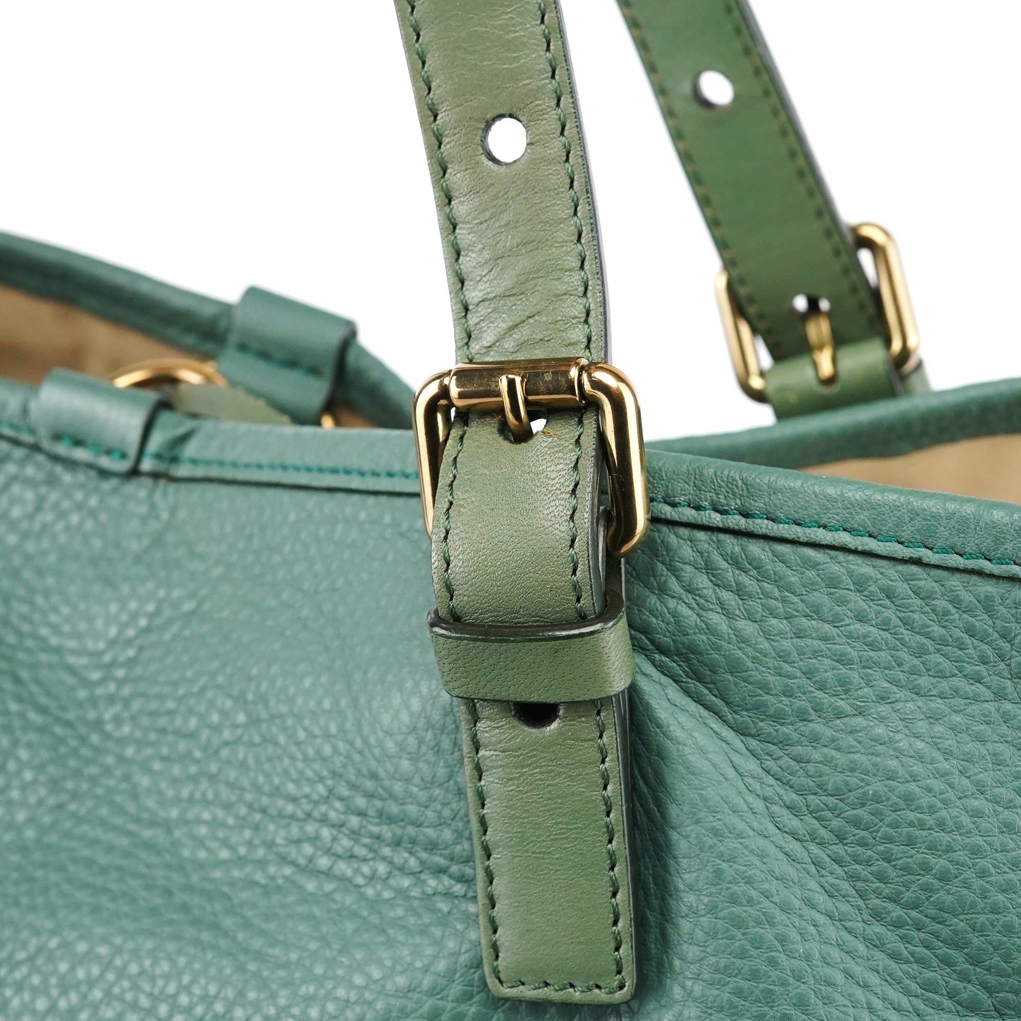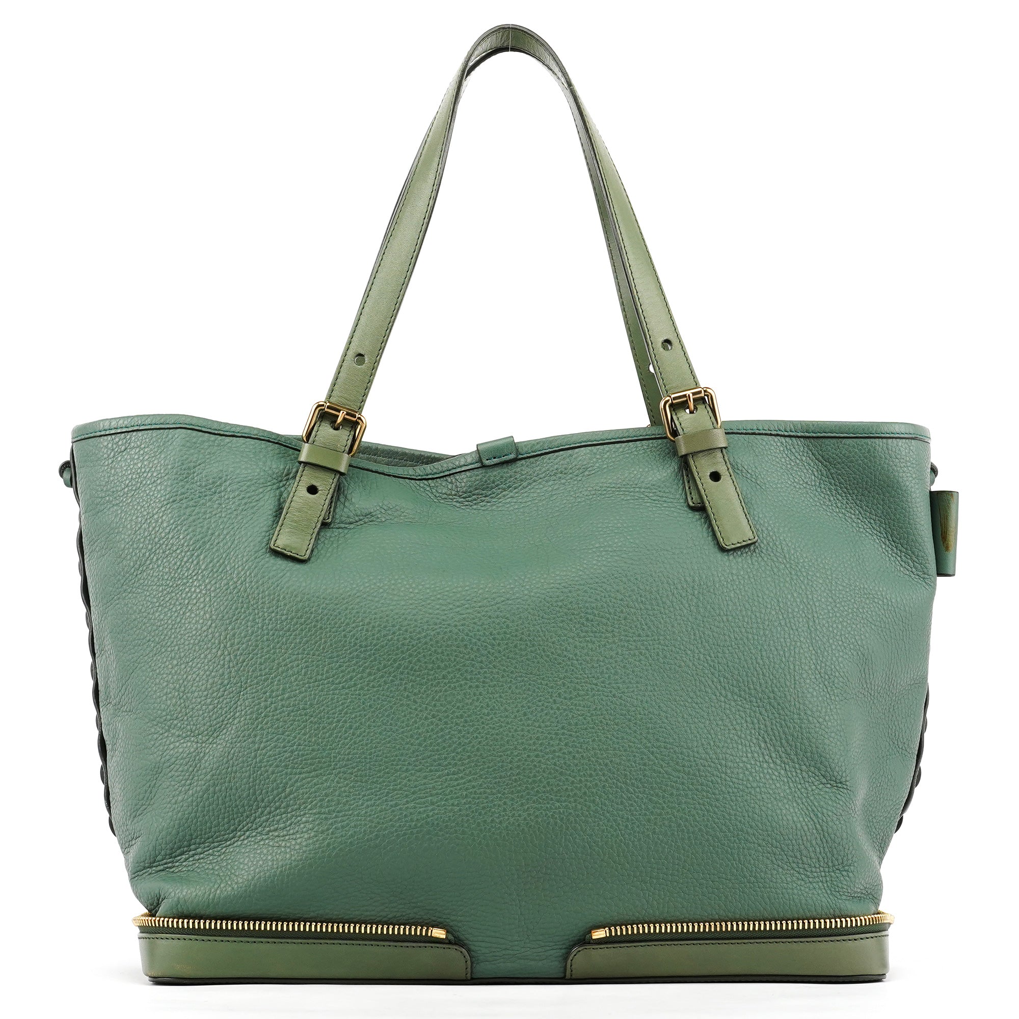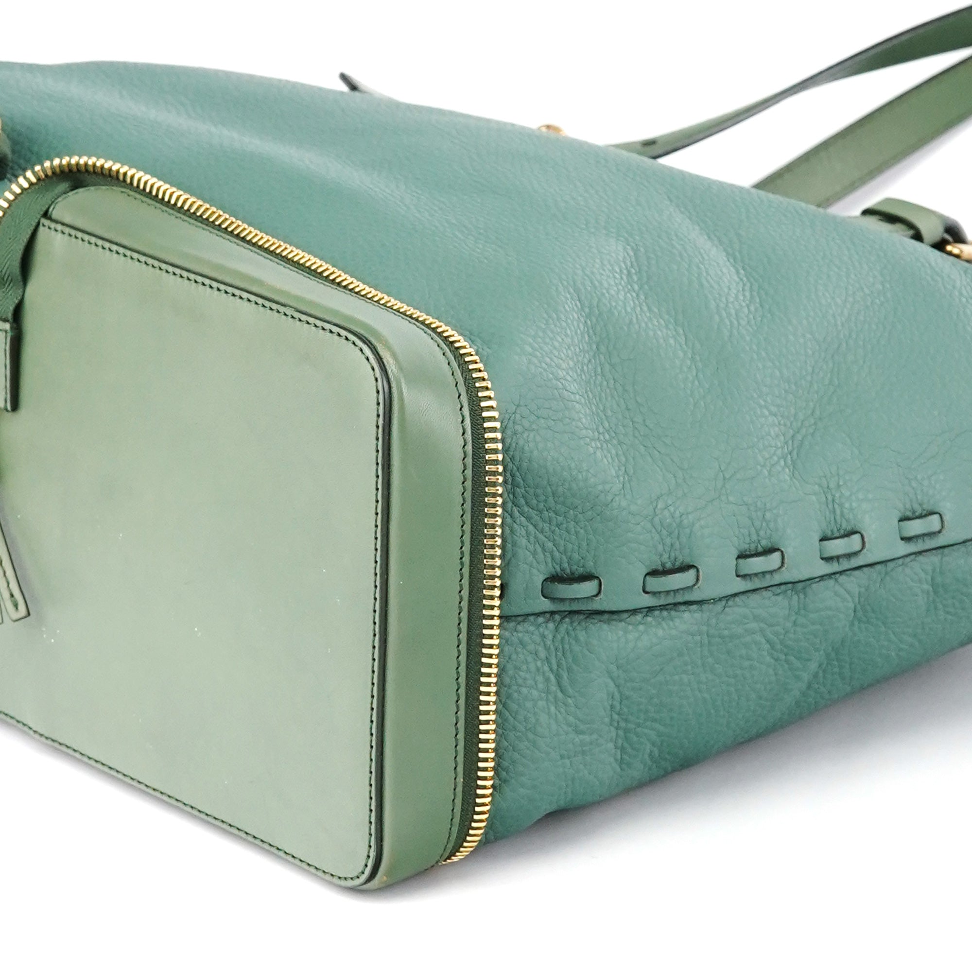 Emerald Green Leather Zipper Tote Bag