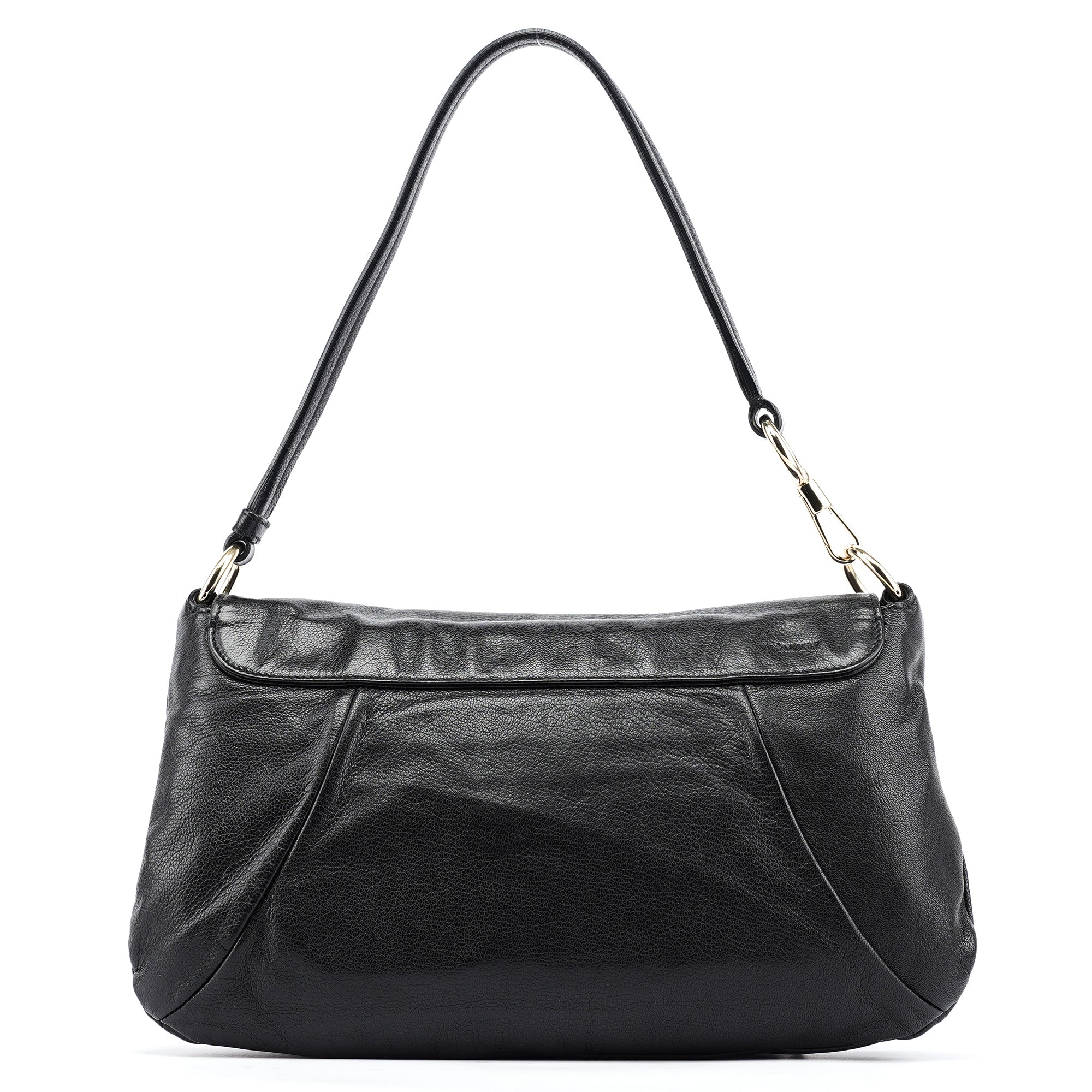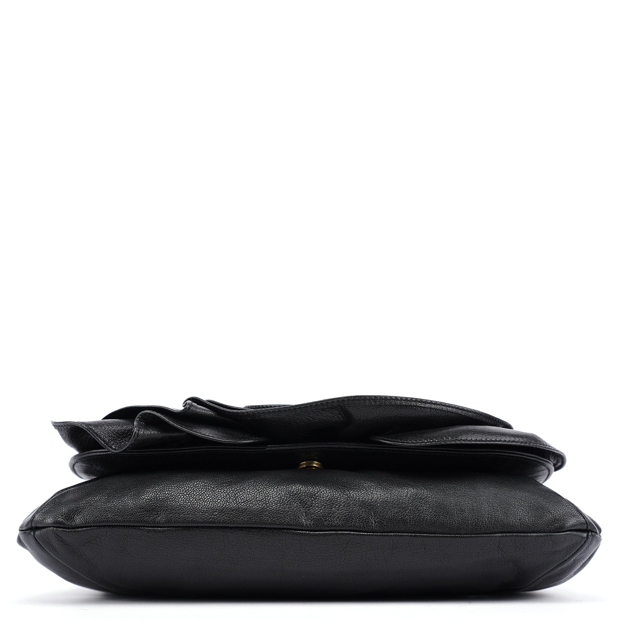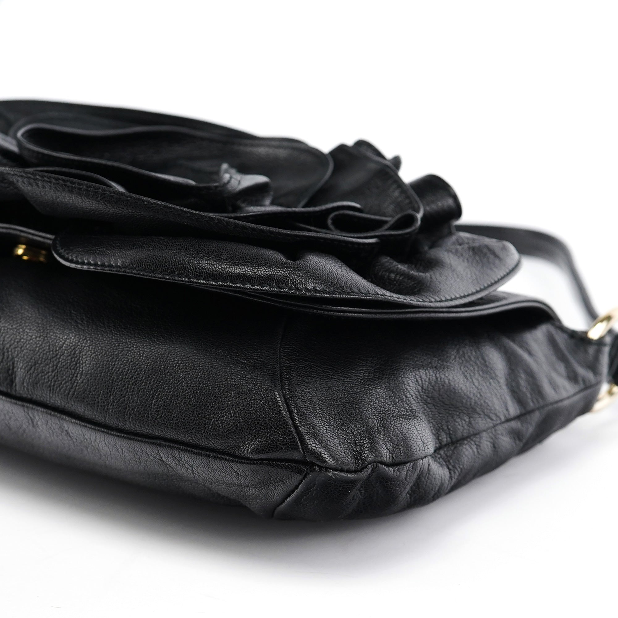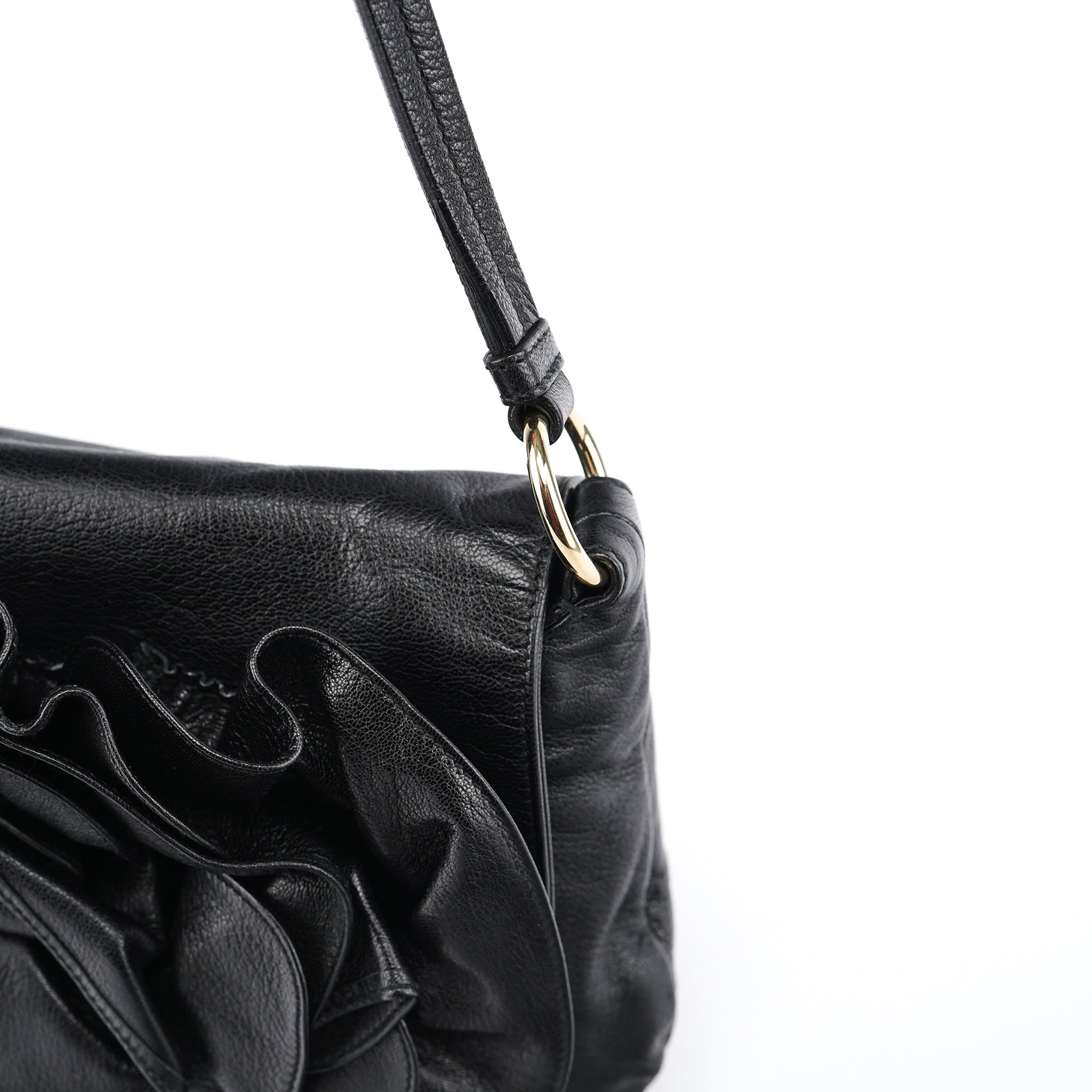 Designed for the 2003 collection by Tom Ford, this vintage Yves Saint Laurent Nadja shoulder bag was crafted from black calfskin leather. The distinctive gathered silhouette features soft ruching across the body, a single shoulder strap, top zip closure, and a suede-lined interior. The supple leather and sculptural draping create a signature look from Ford's celebrated tenure at the house.