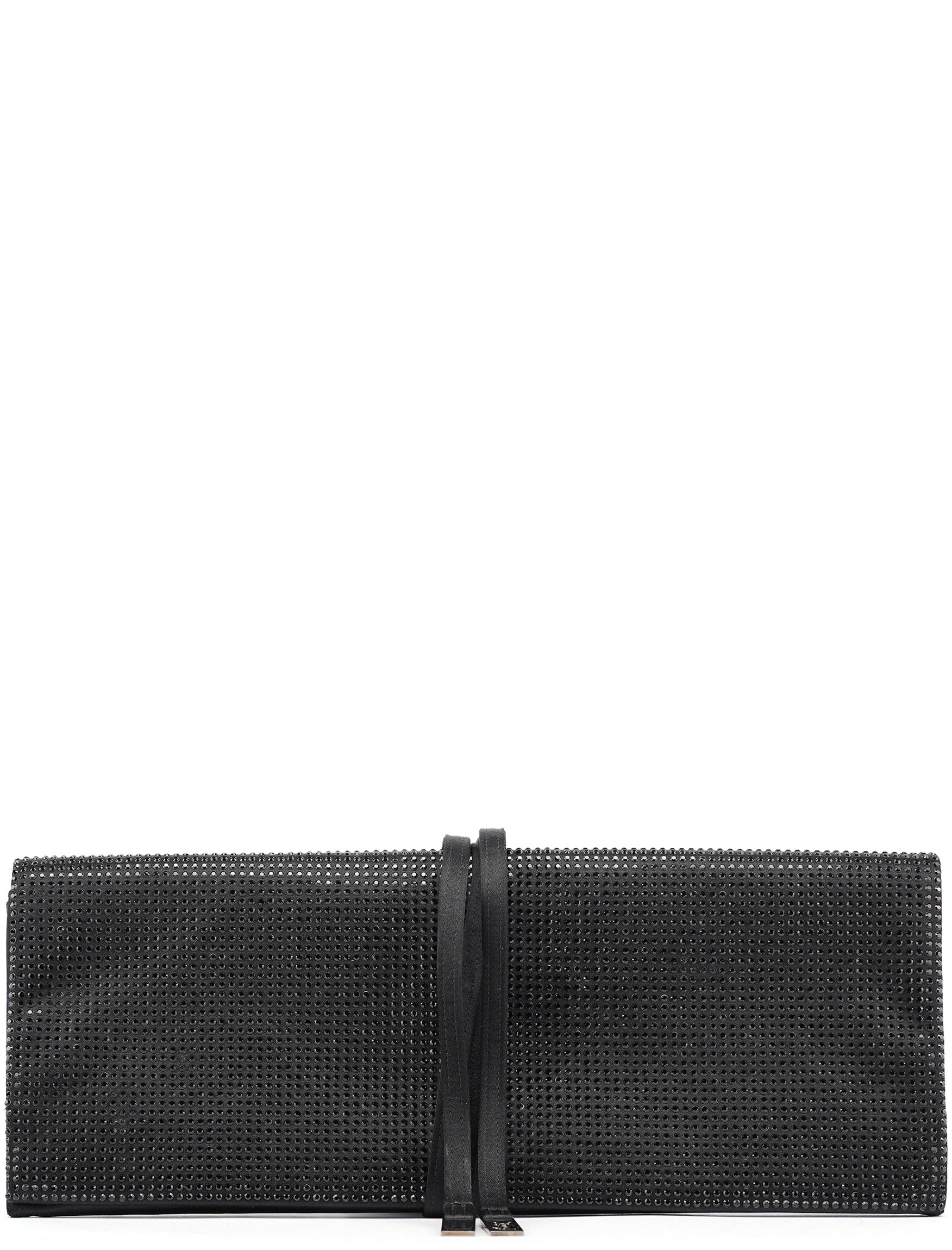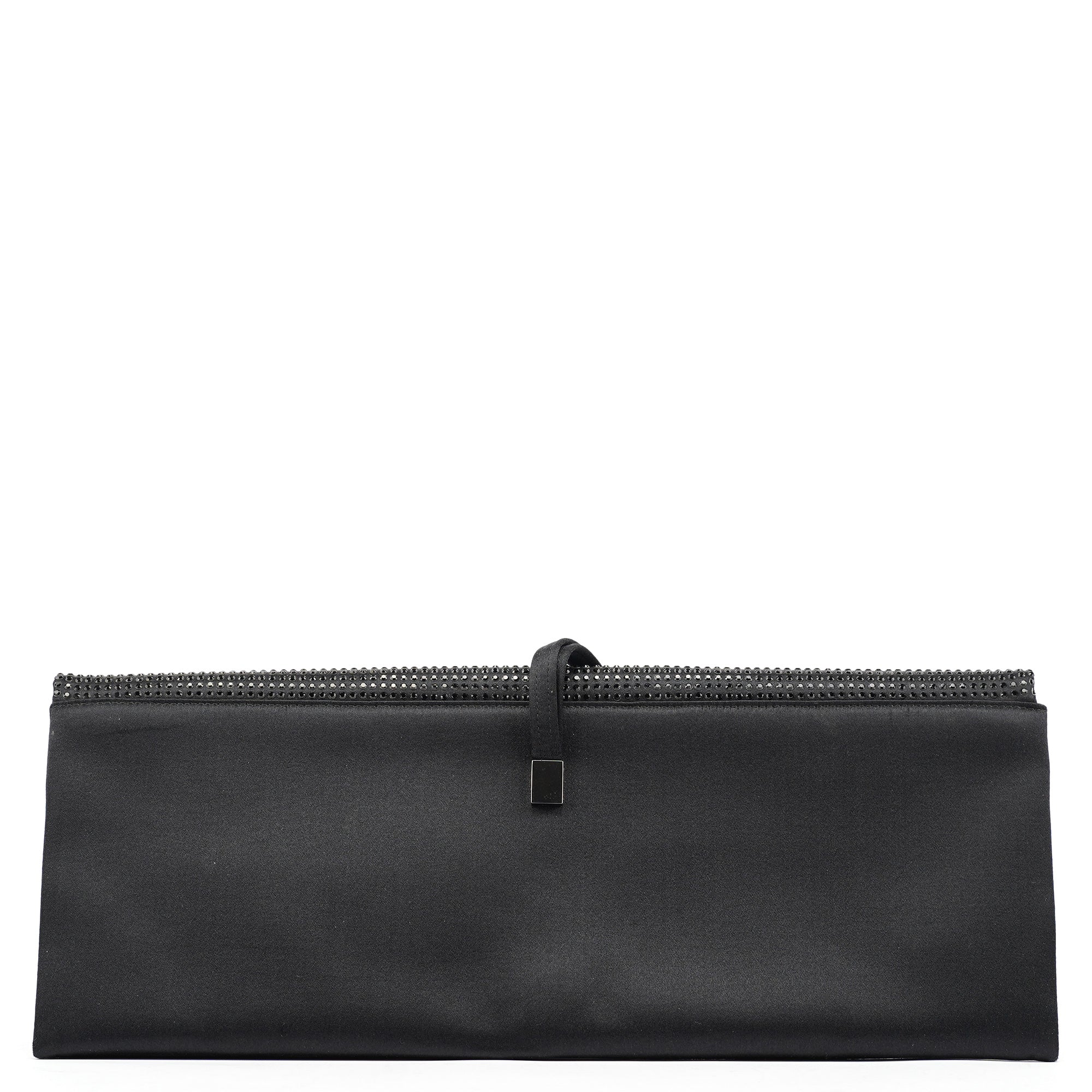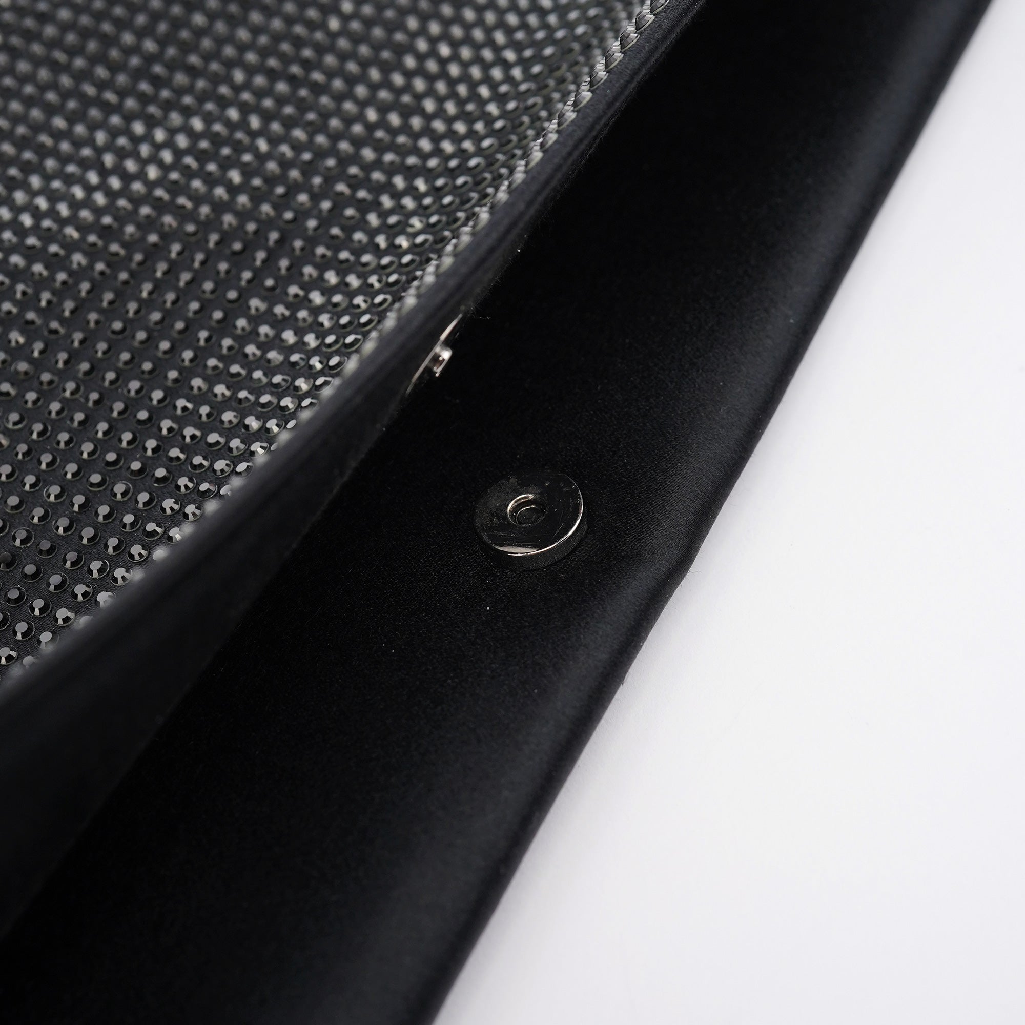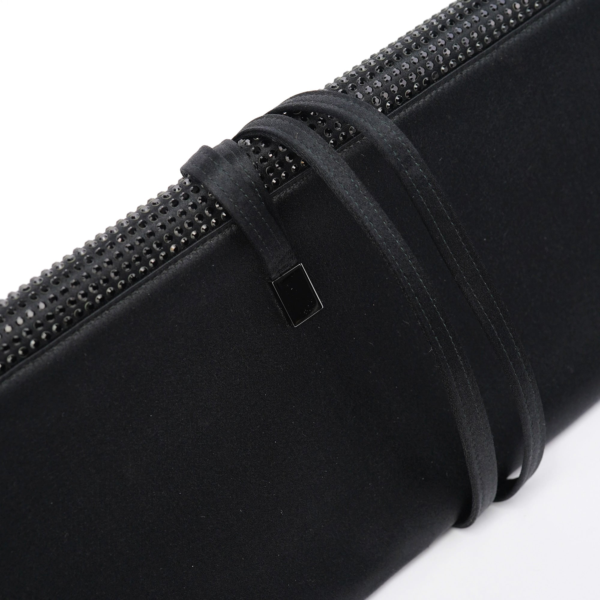 Black Rhinestone Crystal Satin Large Clutch Bag