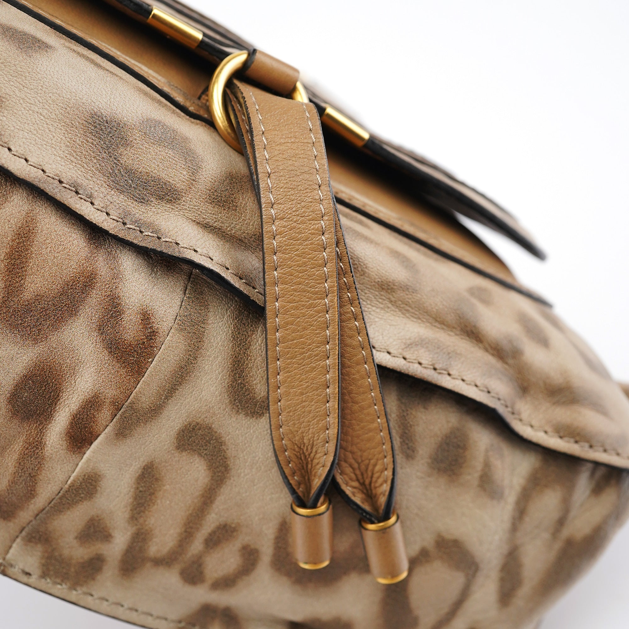 Designed in 2010 by Hannah MacGibbon, this rare Chloé Marcie is one of just 150 ever made. It features a striking leopard print leather that adds a bold, playful edge to the model’s equestrian-inspired silhouette. Signature details include the saddle-stitch front flap, horseshoe stitching, gold-tone hardware, and braided handles. This is number 75 of 150 worldwide.