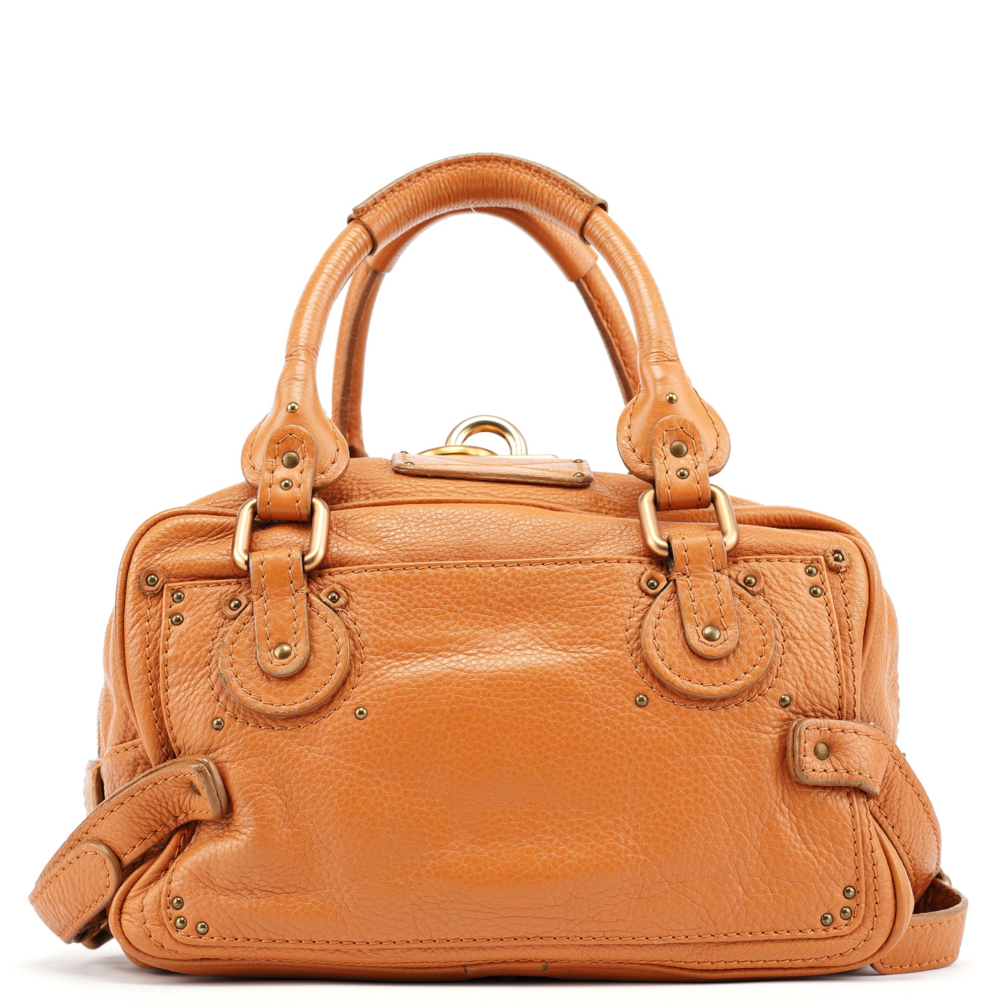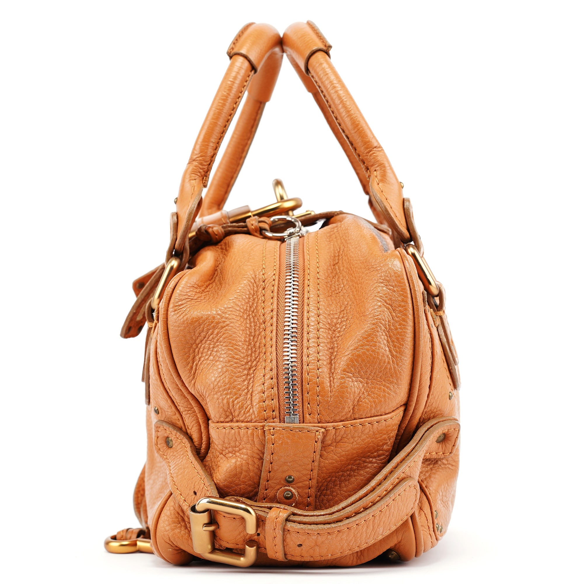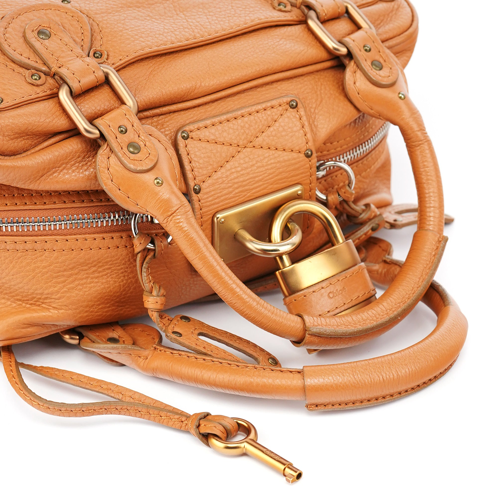 Designed in the early 2000s by Phoebe Philo, this Chloé Paddington became the decade's most coveted "It-bag," with its signature oversized padlock creating legendary waiting lists worldwide. Crafted from soft pebbled calfskin in caramel brown, the satchel features dual top handles, the iconic chunky padlock closure with key, and brass hardware throughout. The spacious interior is lined in canvas with interior pockets.