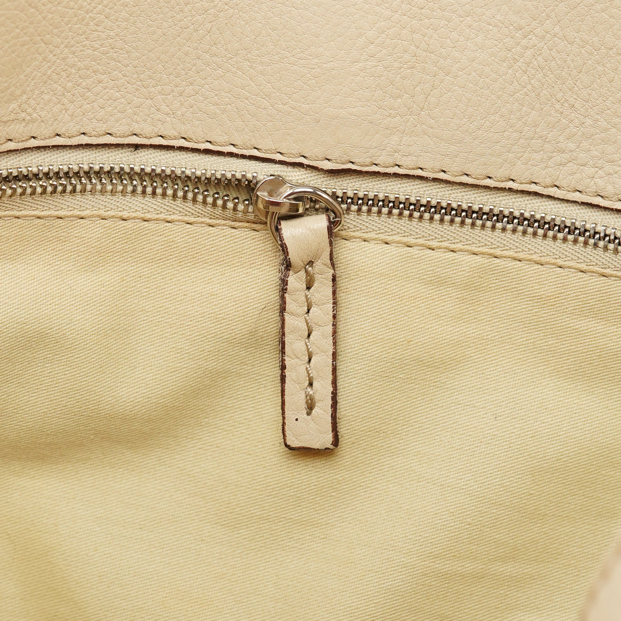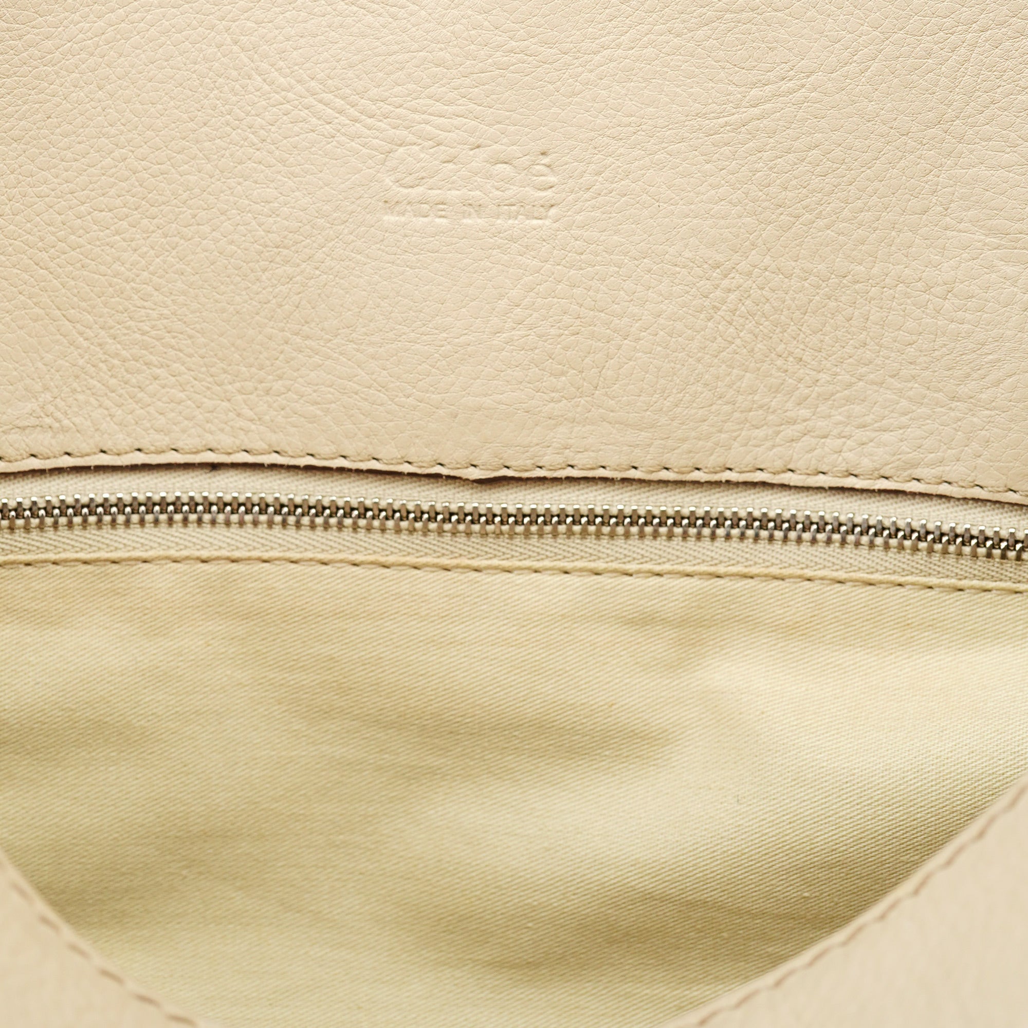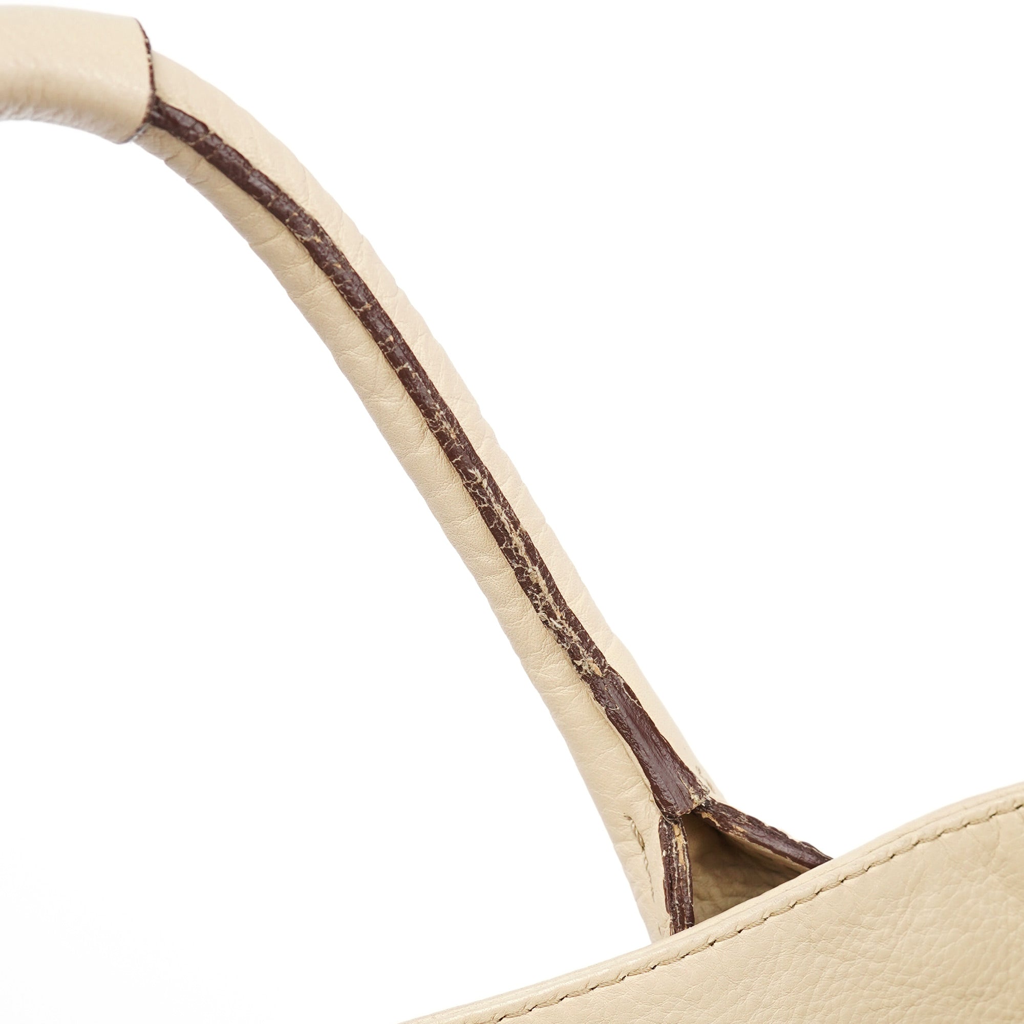 Designed in the early 2000s by Phoebe Philo, this Chloé Paddington tote is crafted from white grained leather and finished with polished brass hardware, including the signature oversized padlock and leather-wrapped key. Its softly structured silhouette is detailed with stitched paneling, belted sides, and a full top zip. The spacious interior is lined in canvas and includes a zip pocket for essentials.