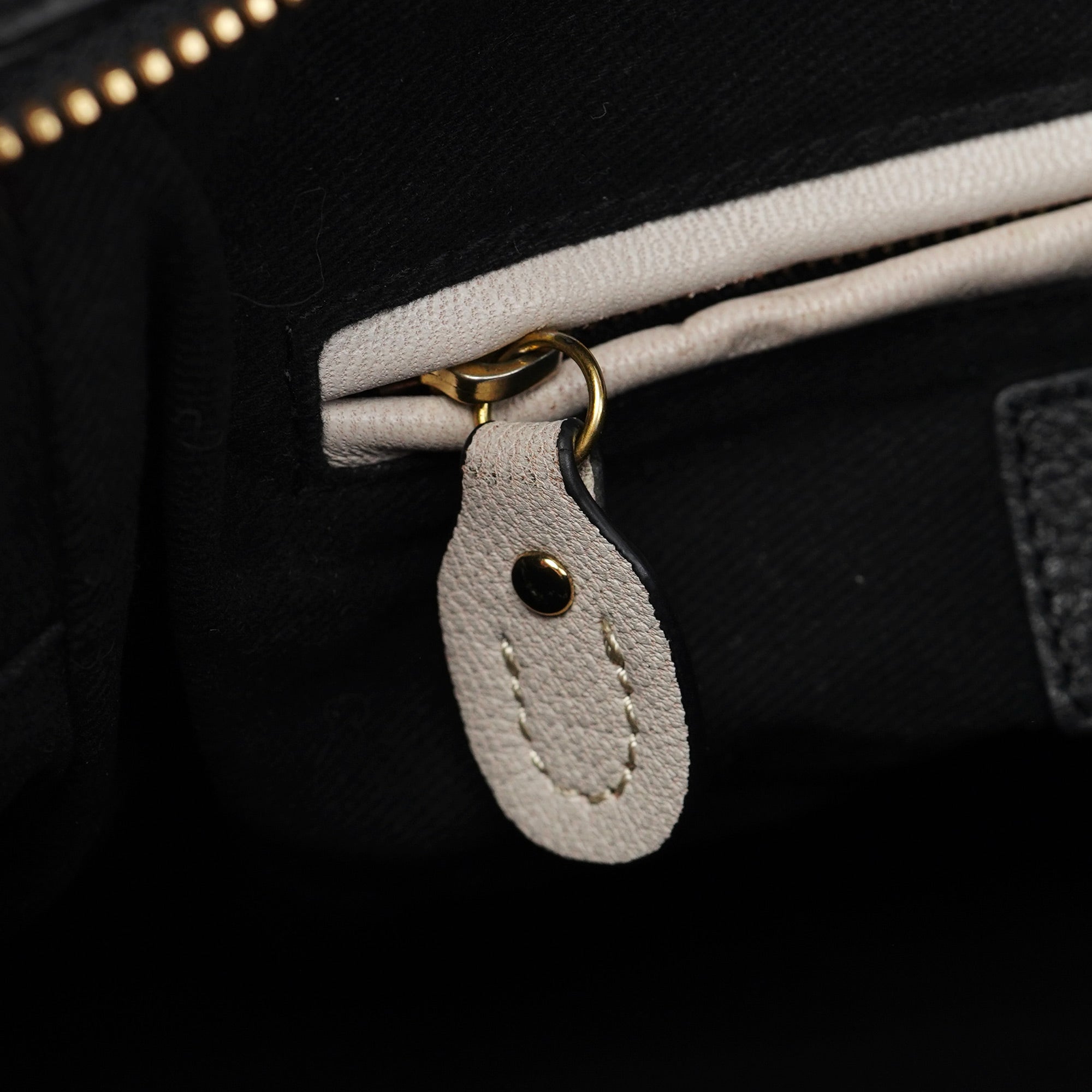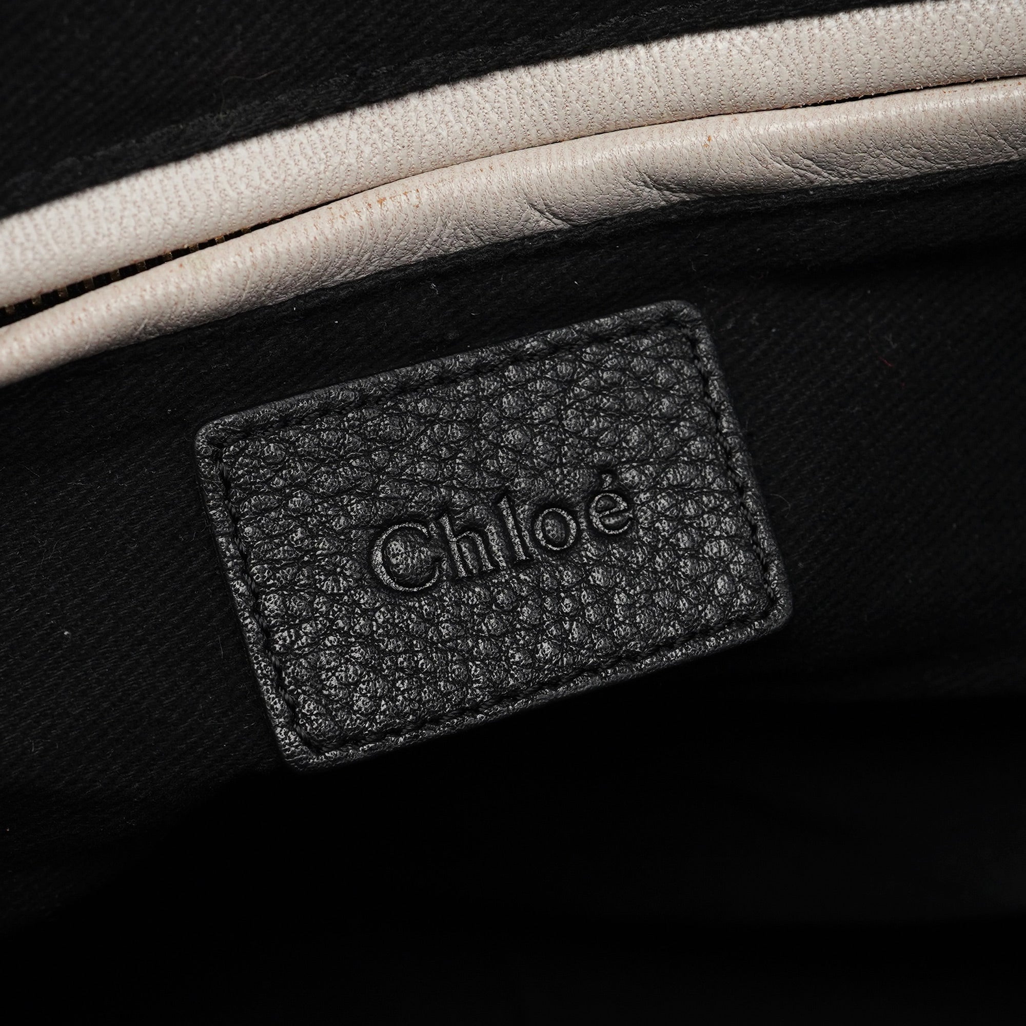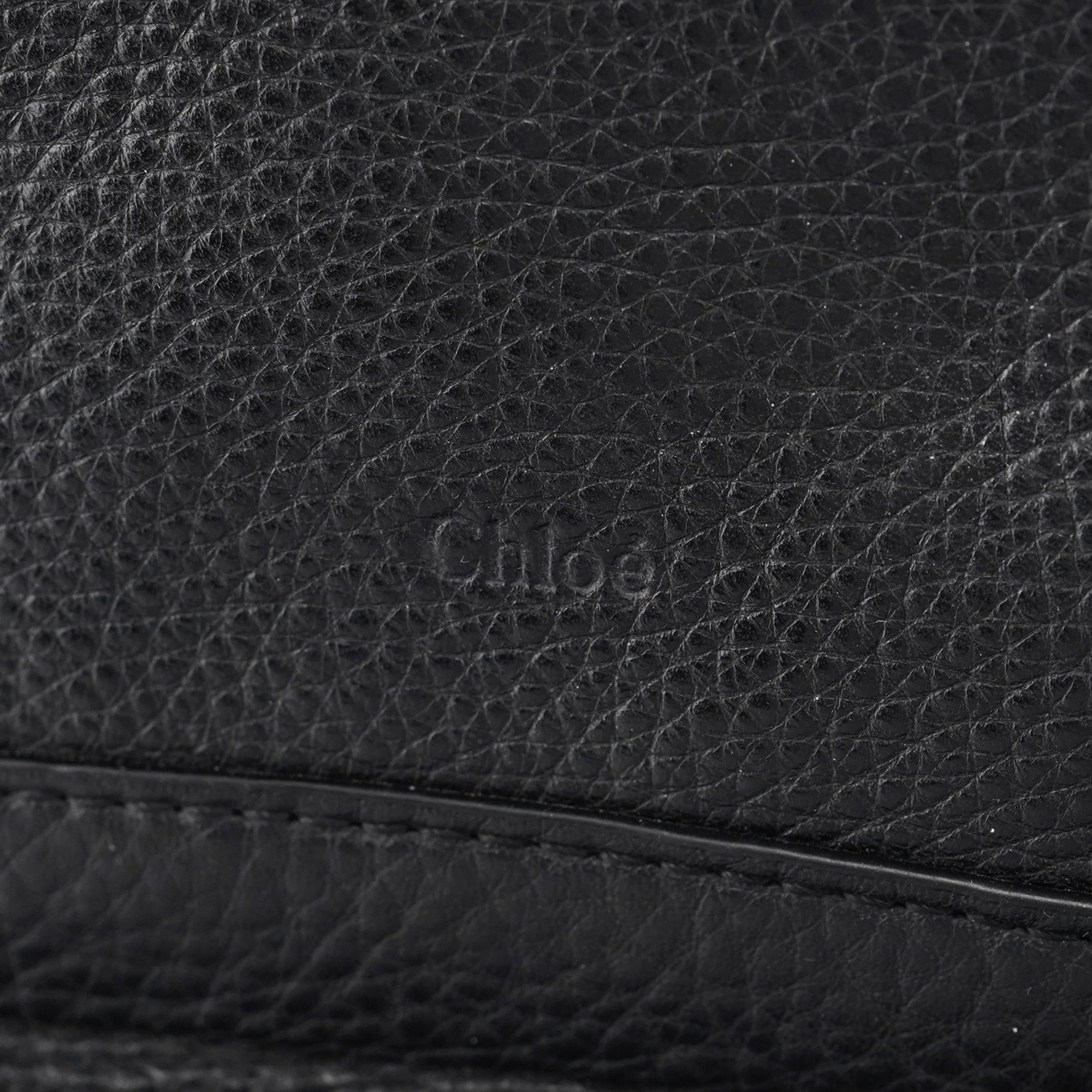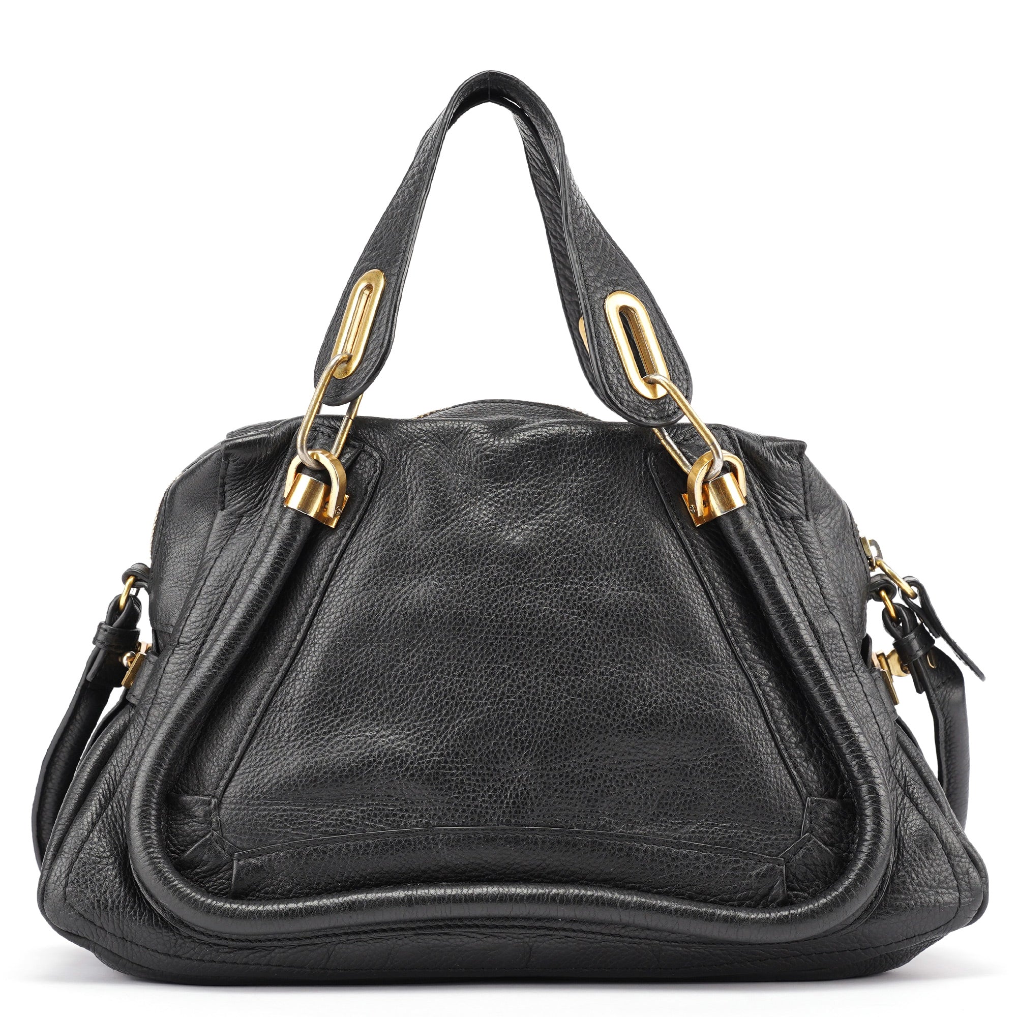 Designed in the mid-2000s by Hannah MacGibbon, this Chloé Paraty 2-way bag is crafted in supple black leather with sculptural side piping and antique gold-tone hardware. Its trapezoidal shape features dual top handles and a long removable strap for versatile styling. The top zip closure opens to a fabric-lined interior with a single zip pocket.