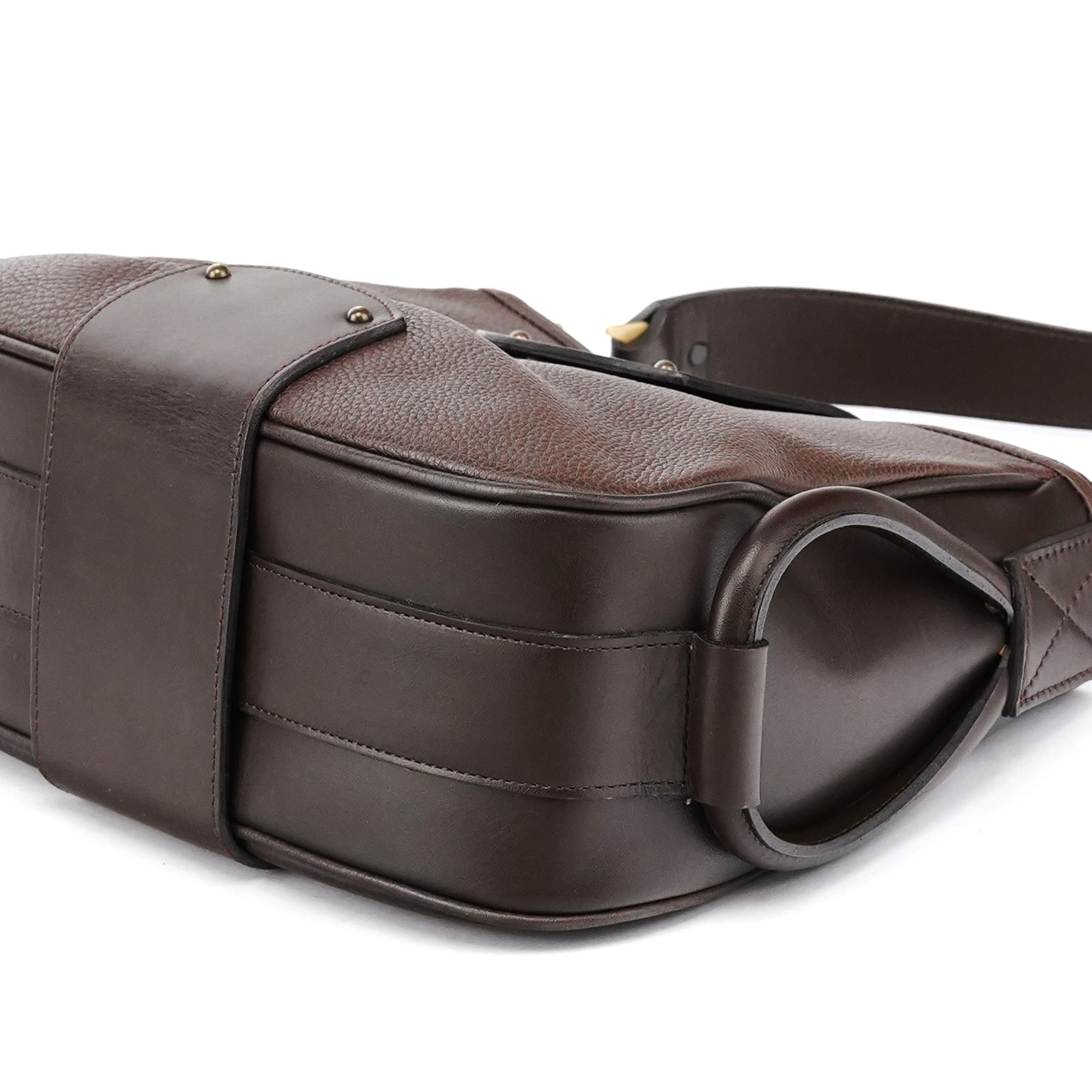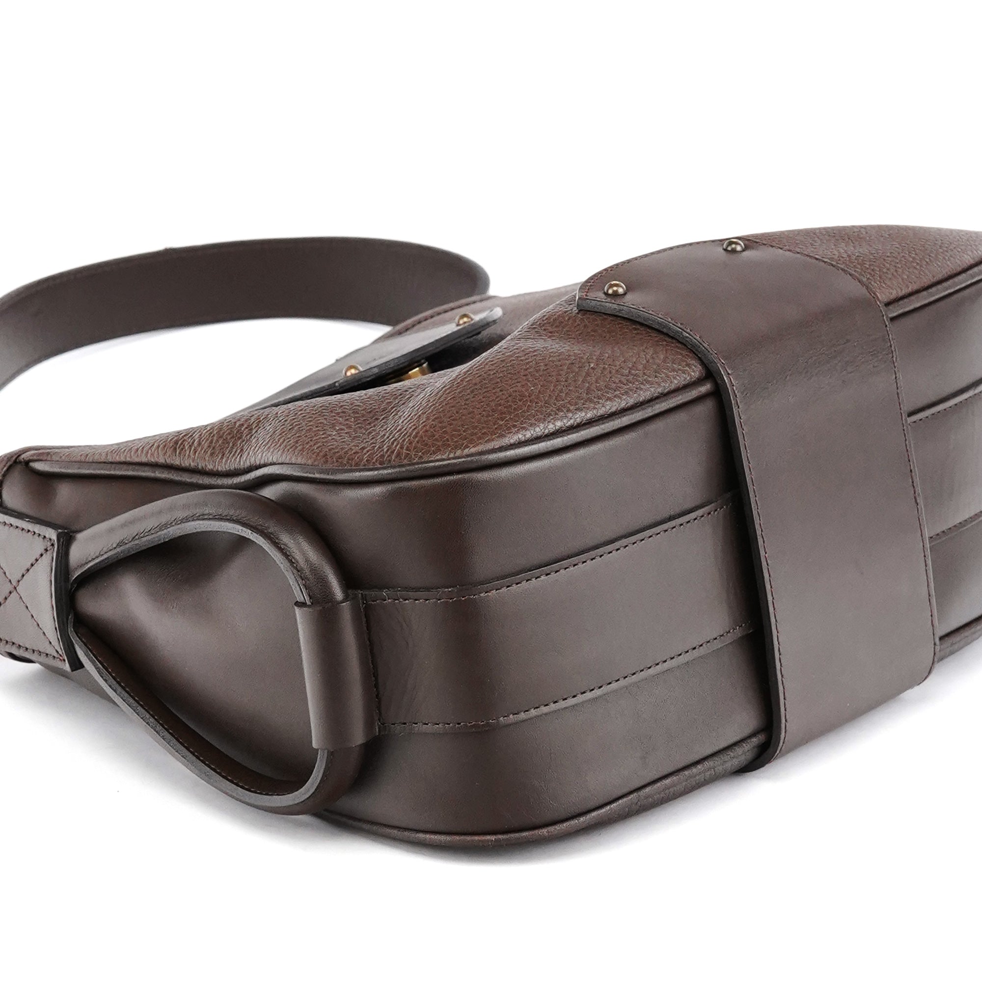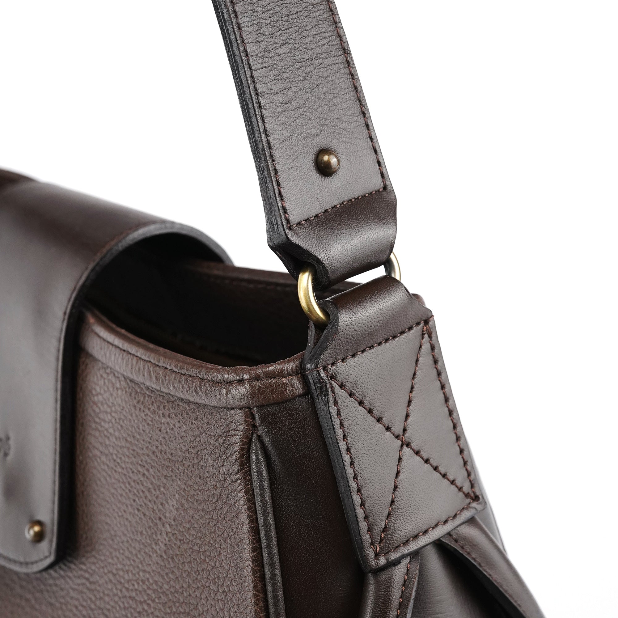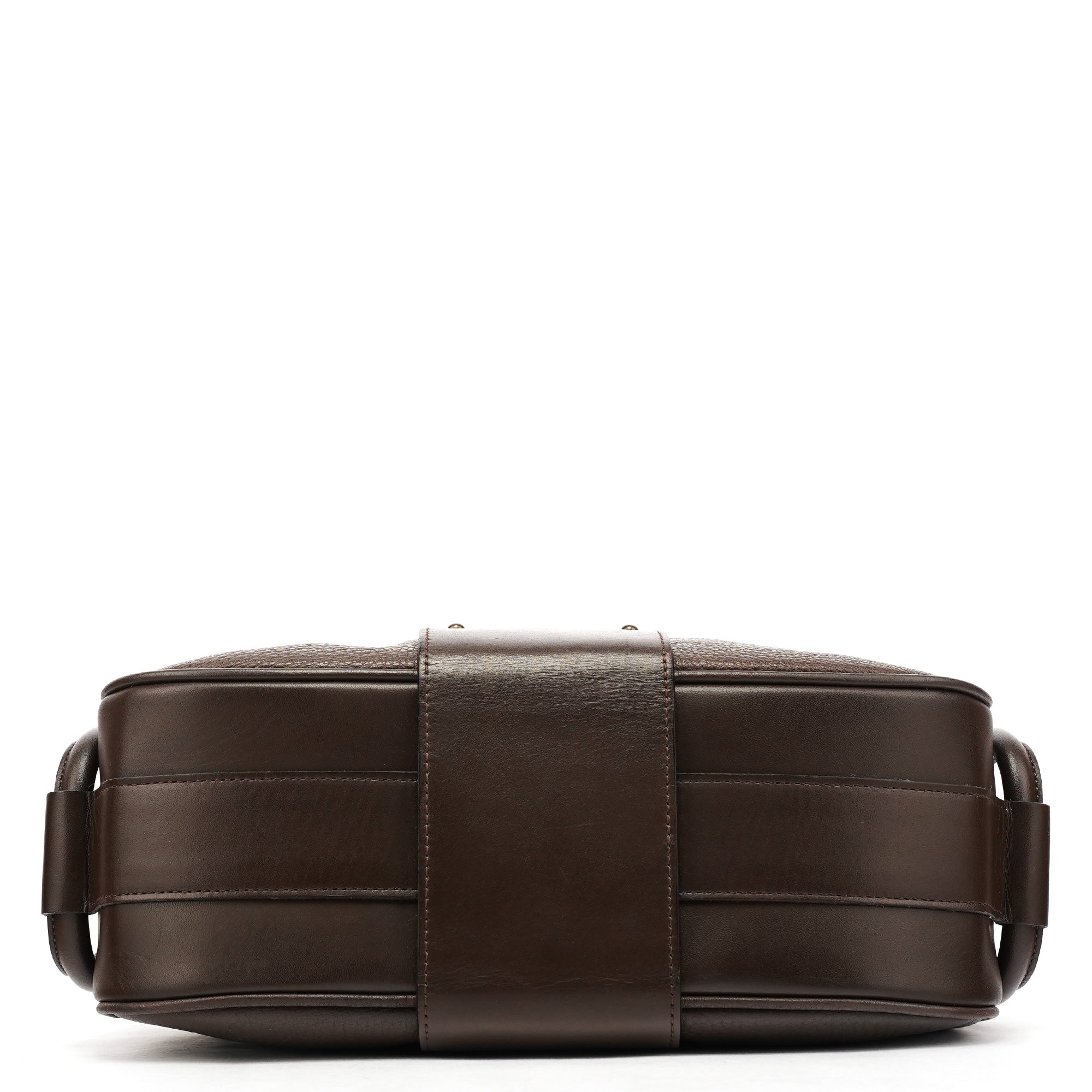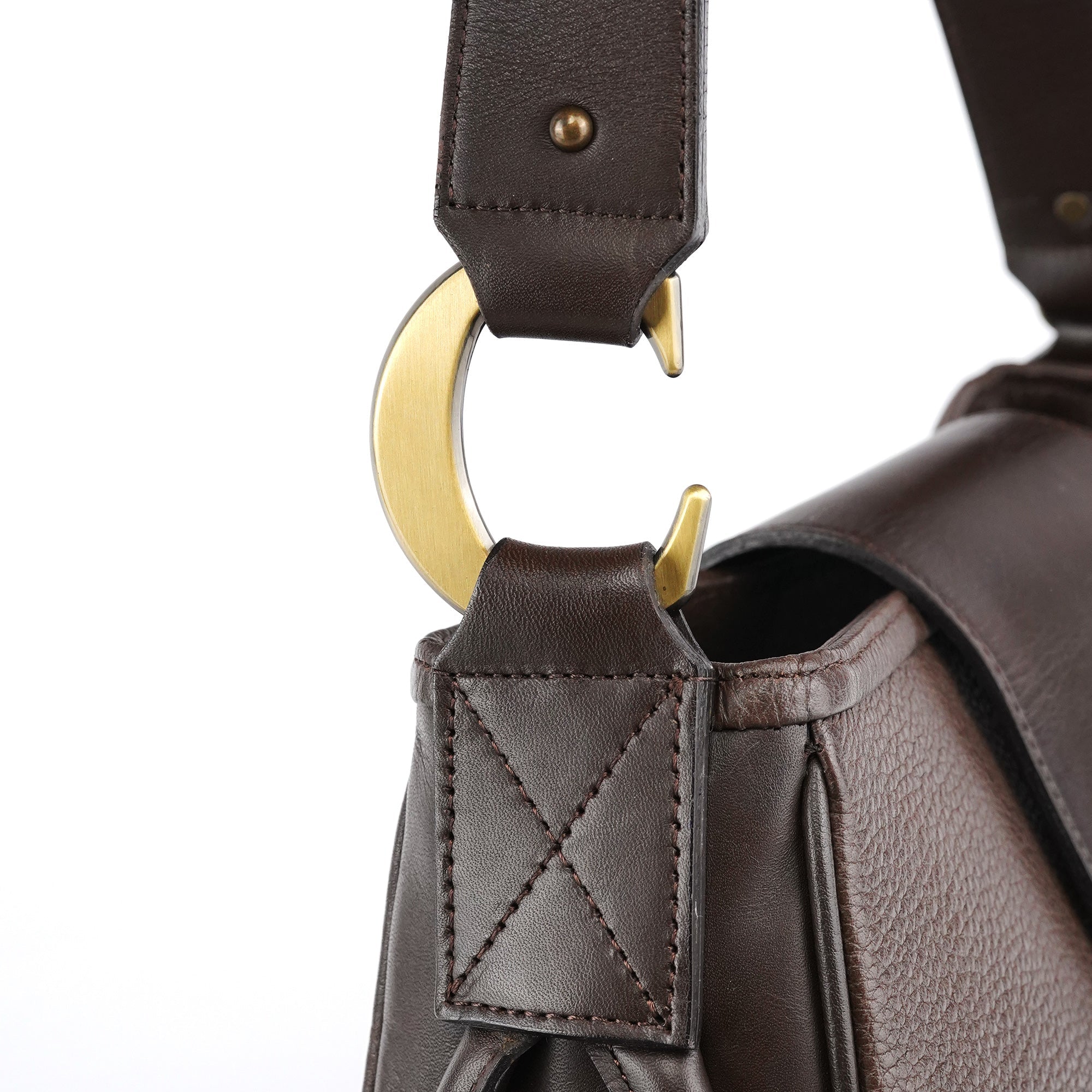 Designed in the late 1990s, this vintage Chloé C shoulder bag is crafted from brown pebbled leather with a softly structured silhouette. Features include a curved shoulder strap with signature C-shaped hardware, a flap closure, and a fabric-lined interior with a zip pocket.