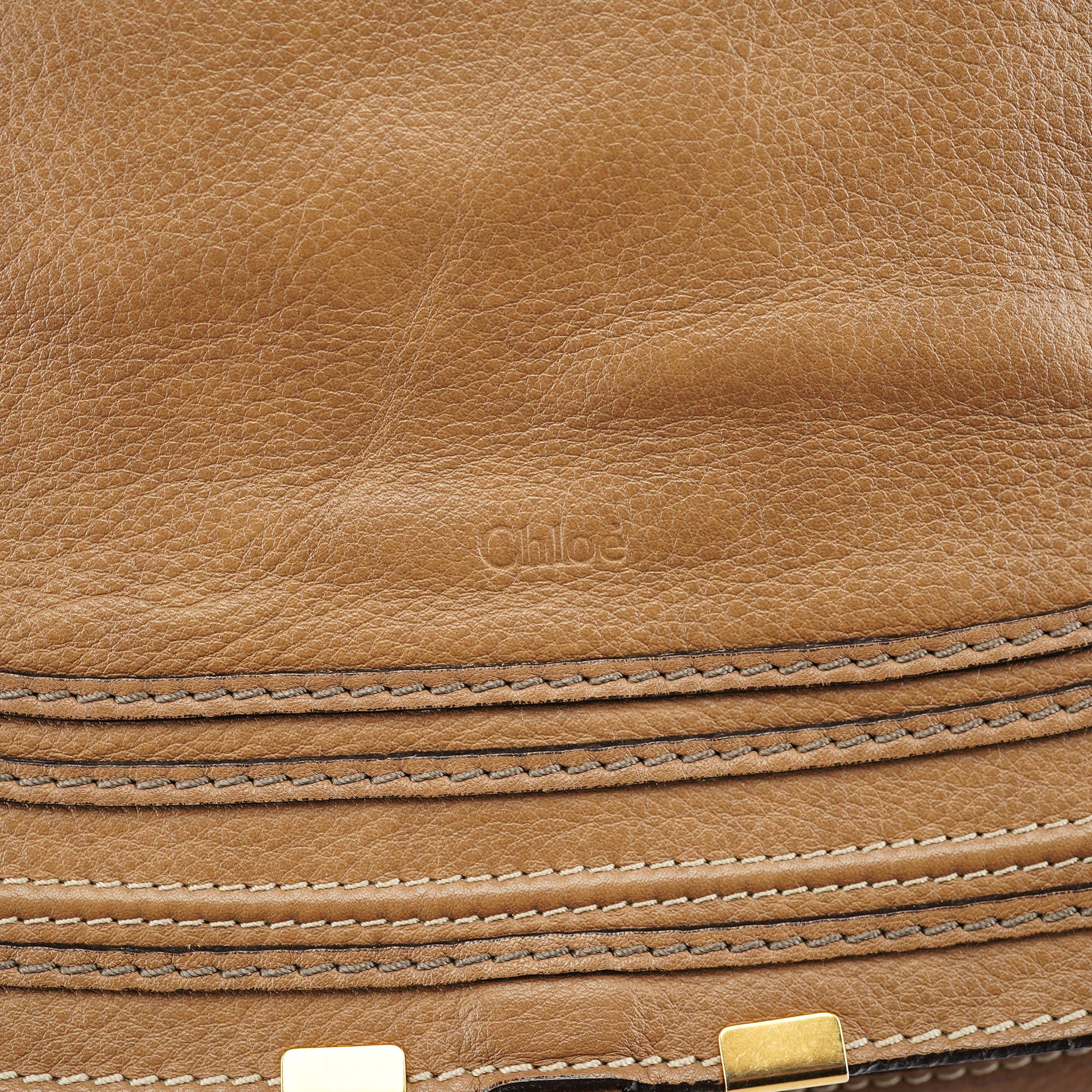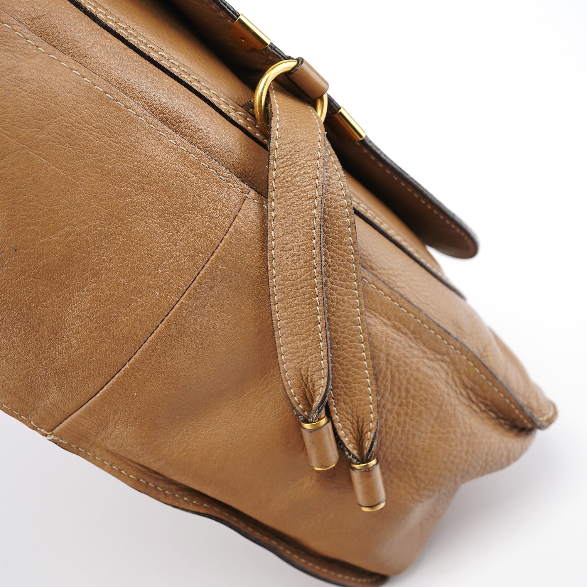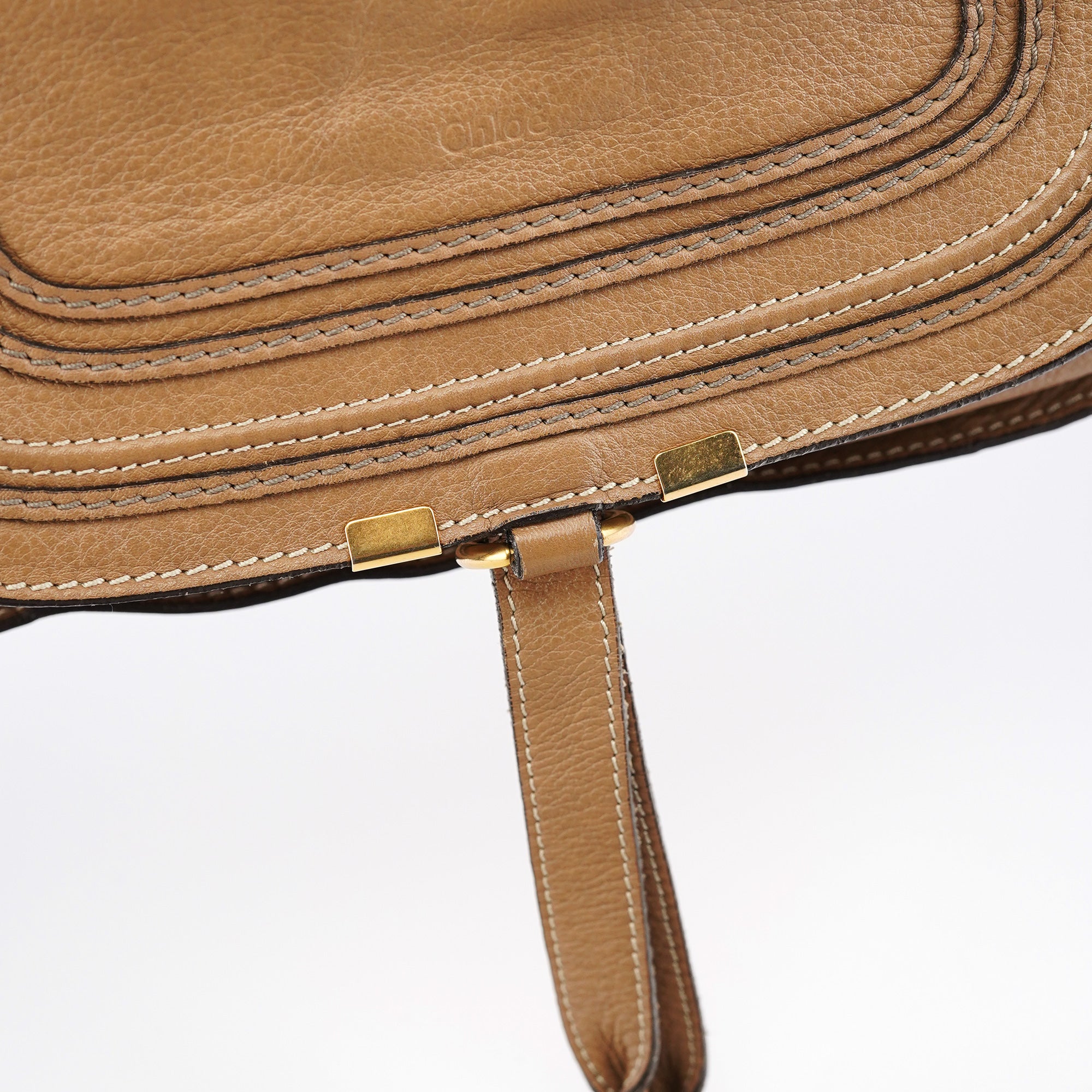 Designed in 2010 by Hannah MacGibbon, this vintage Chloé Marcie showcases the model's signature equestrian-inspired aesthetic with its distinctive saddle-stitch detailing and curved front flap. Crafted in light brown grained leather, the bag features the iconic horseshoe-shaped stitching, gold-tone hardware, braided leather handles, and the characteristic rounded silhouette that made the Marcie an instant classic. The spacious interior offers practical elegance for daily use.