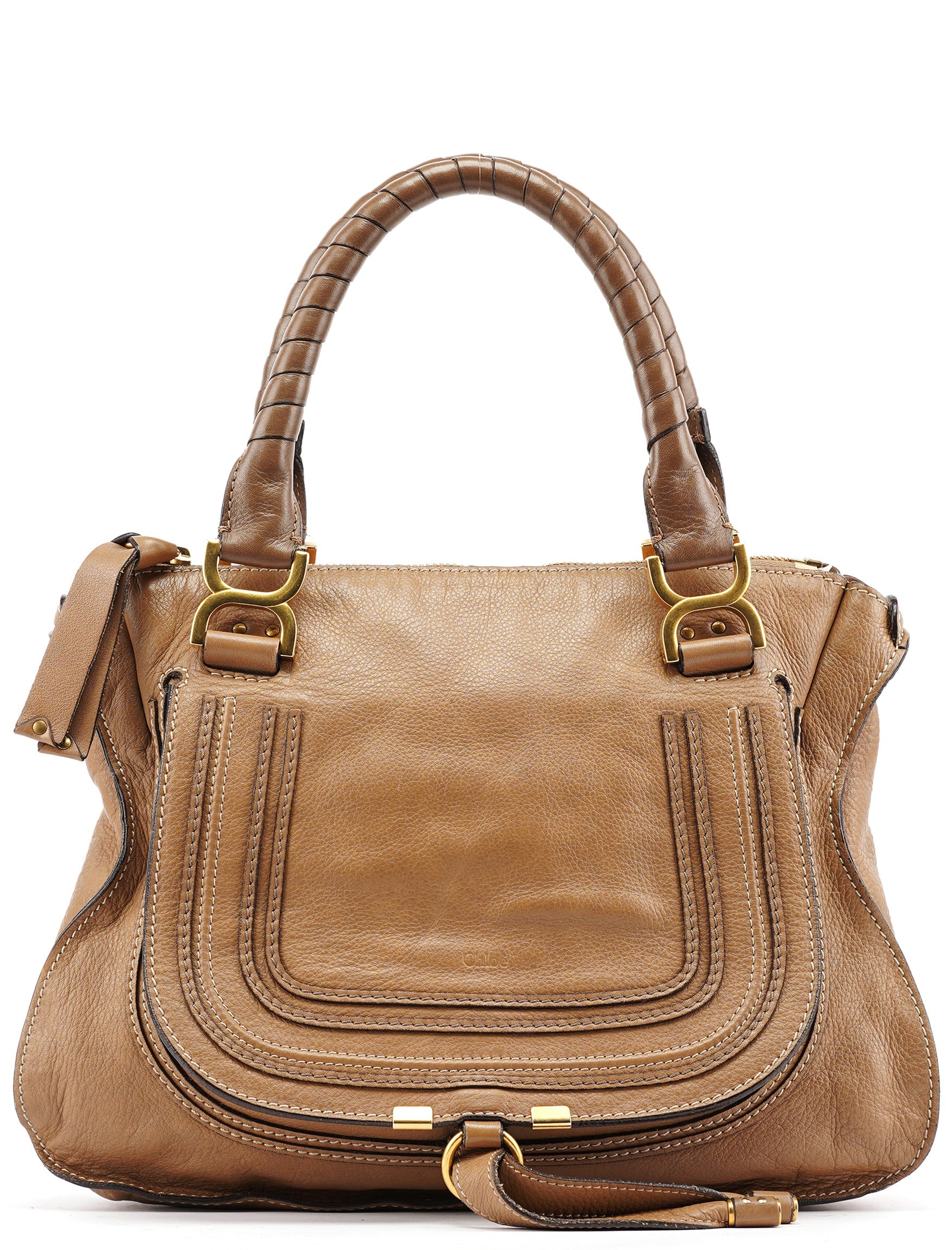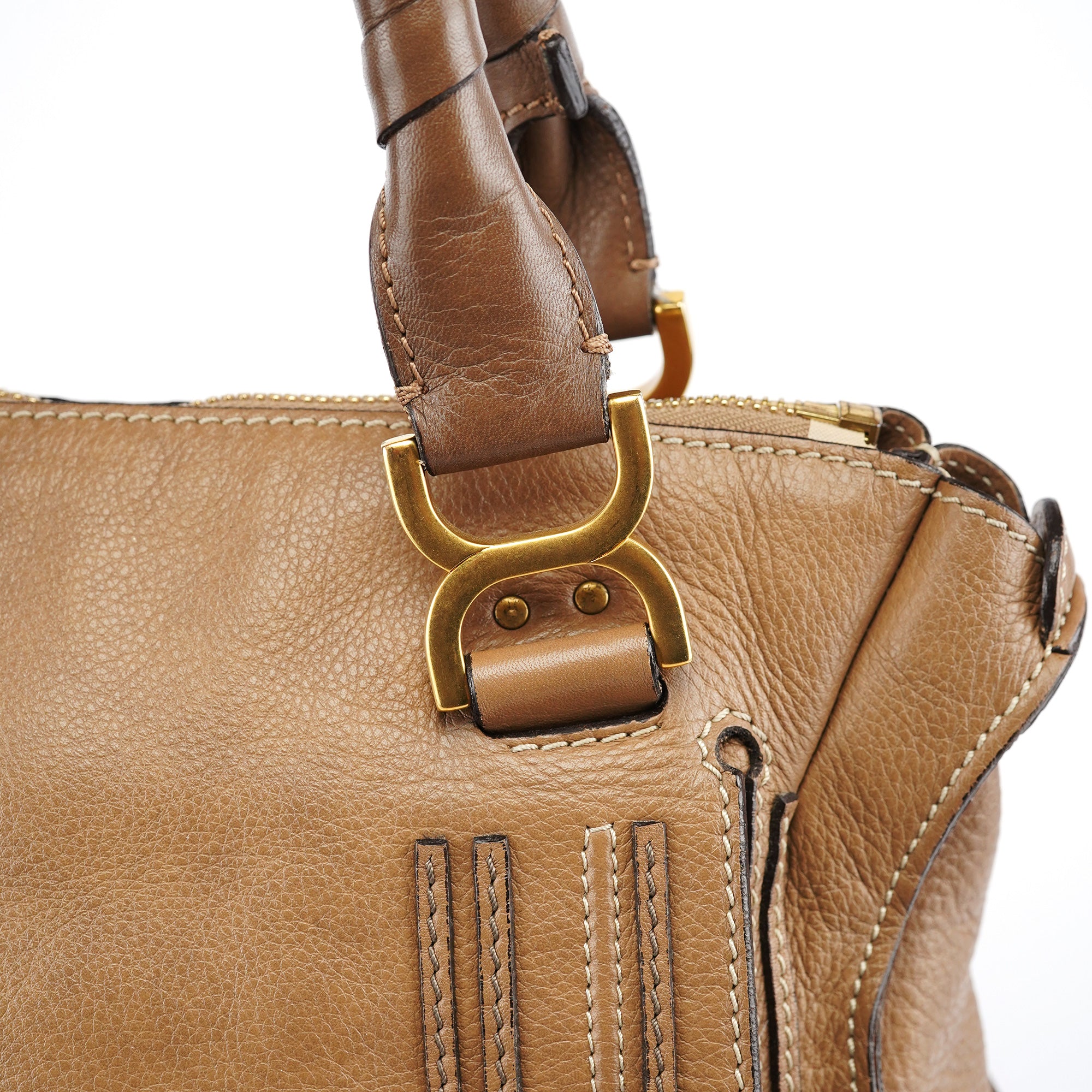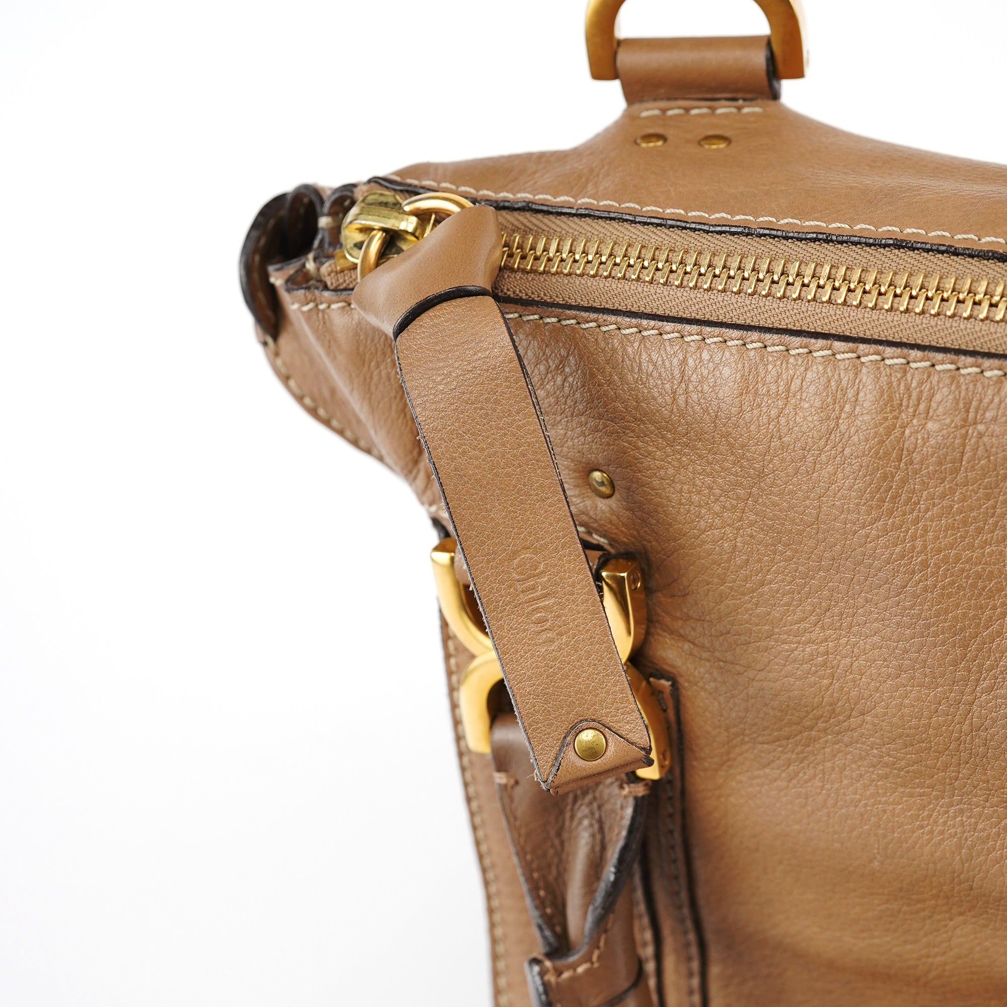 Designed in 2010 by Hannah MacGibbon, this vintage Chloé Marcie showcases the model's signature equestrian-inspired aesthetic with its distinctive saddle-stitch detailing and curved front flap. Crafted in light brown grained leather, the bag features the iconic horseshoe-shaped stitching, gold-tone hardware, braided leather handles, and the characteristic rounded silhouette that made the Marcie an instant classic. The spacious interior offers practical elegance for daily use.