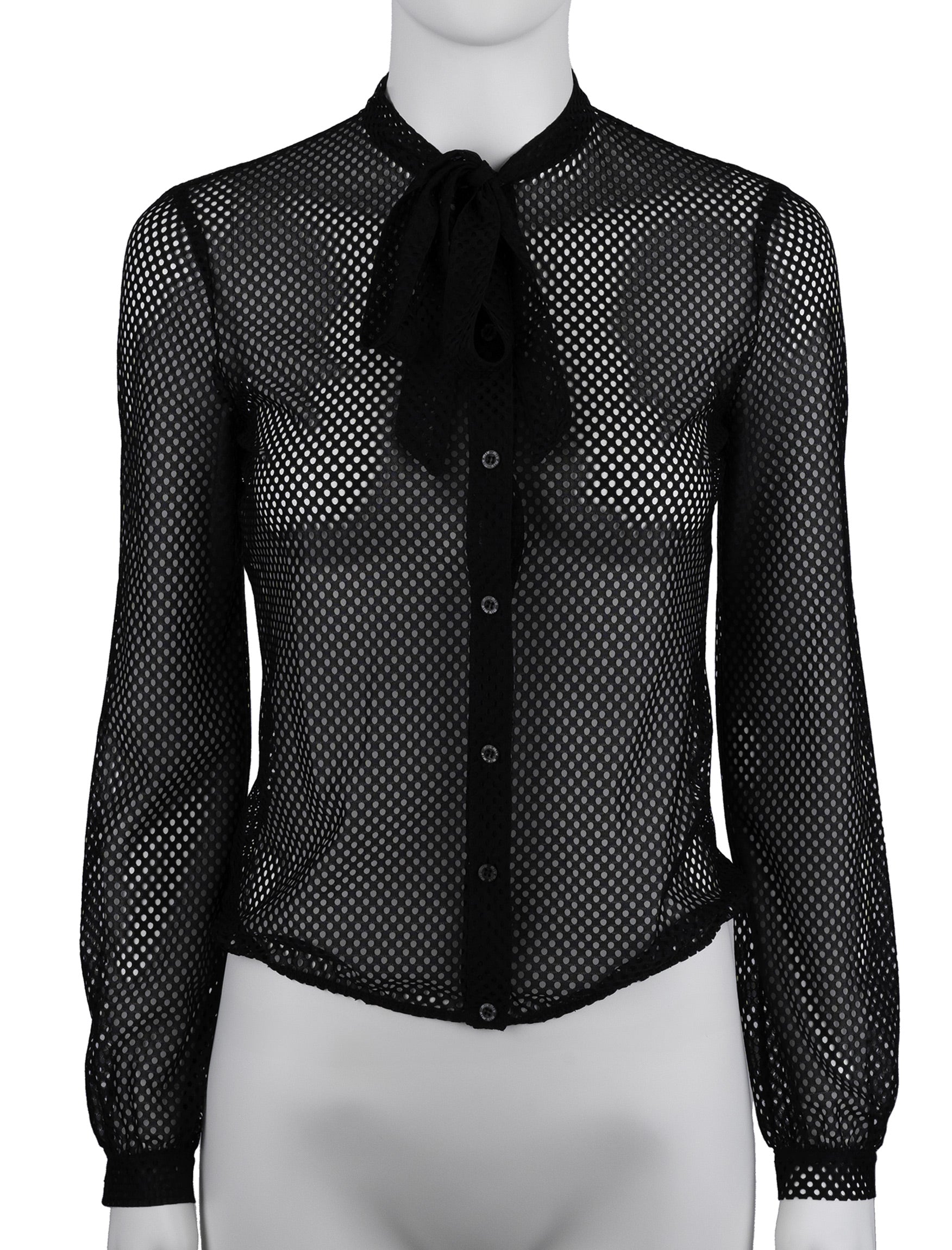 Spring 2000 Black Sheer Mesh Bow Tie Runway Blouse