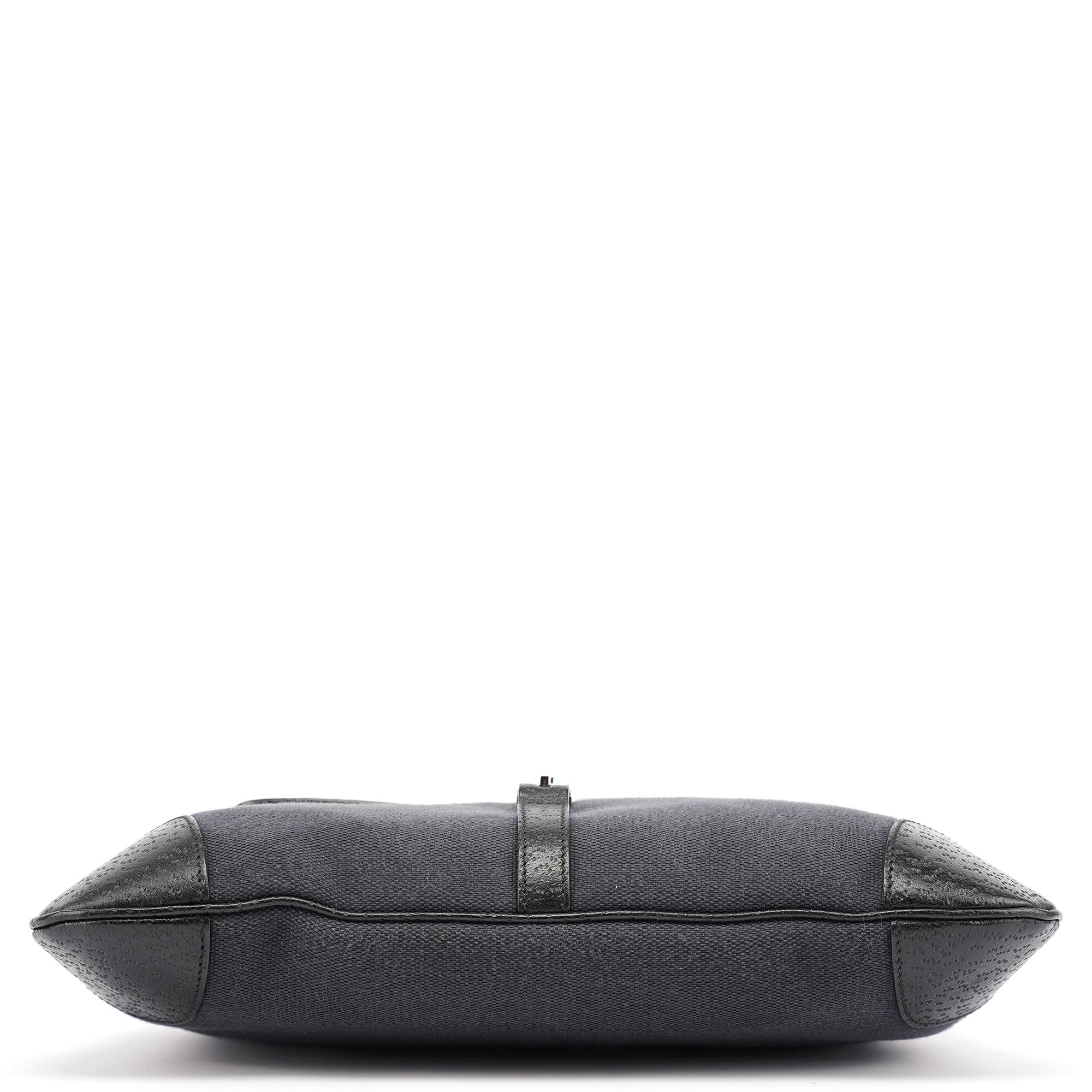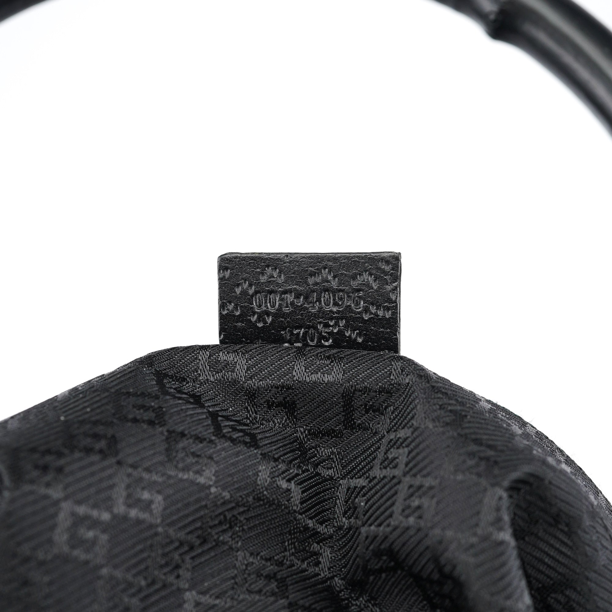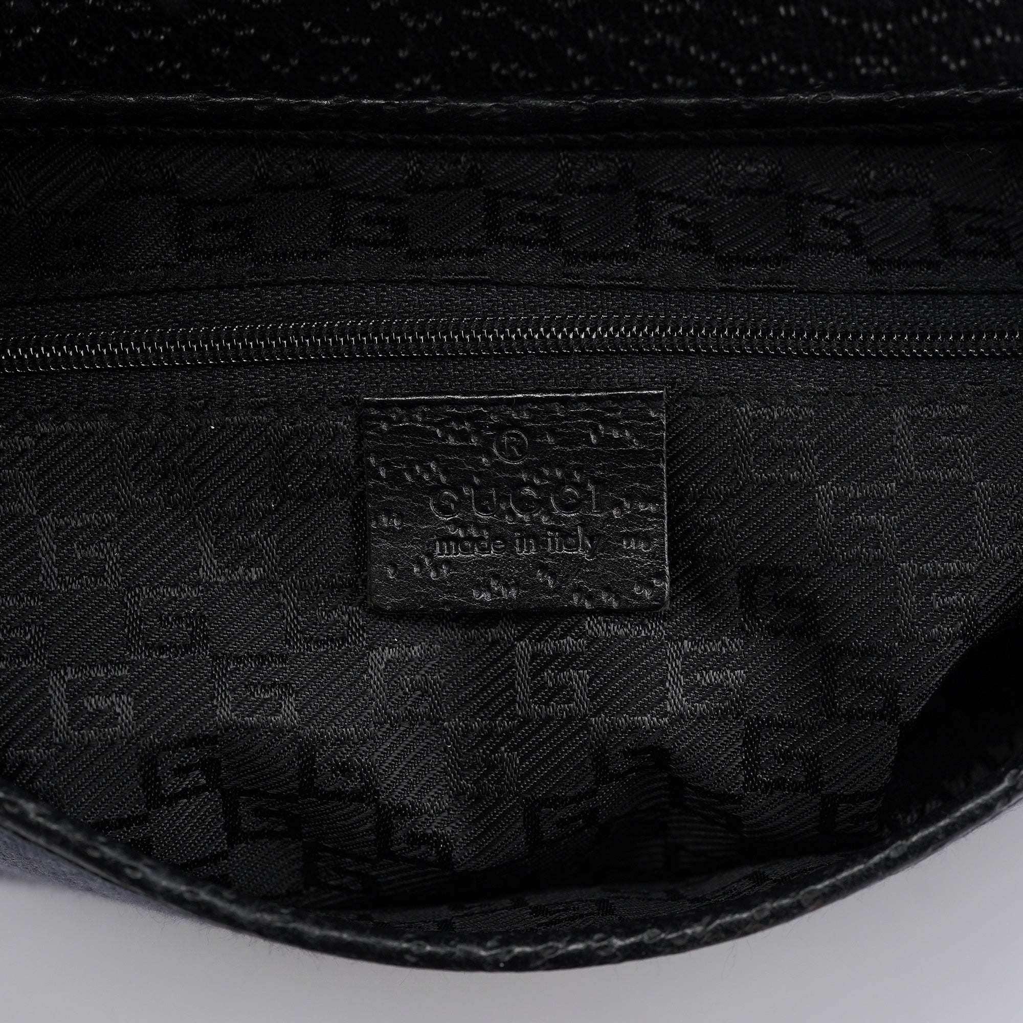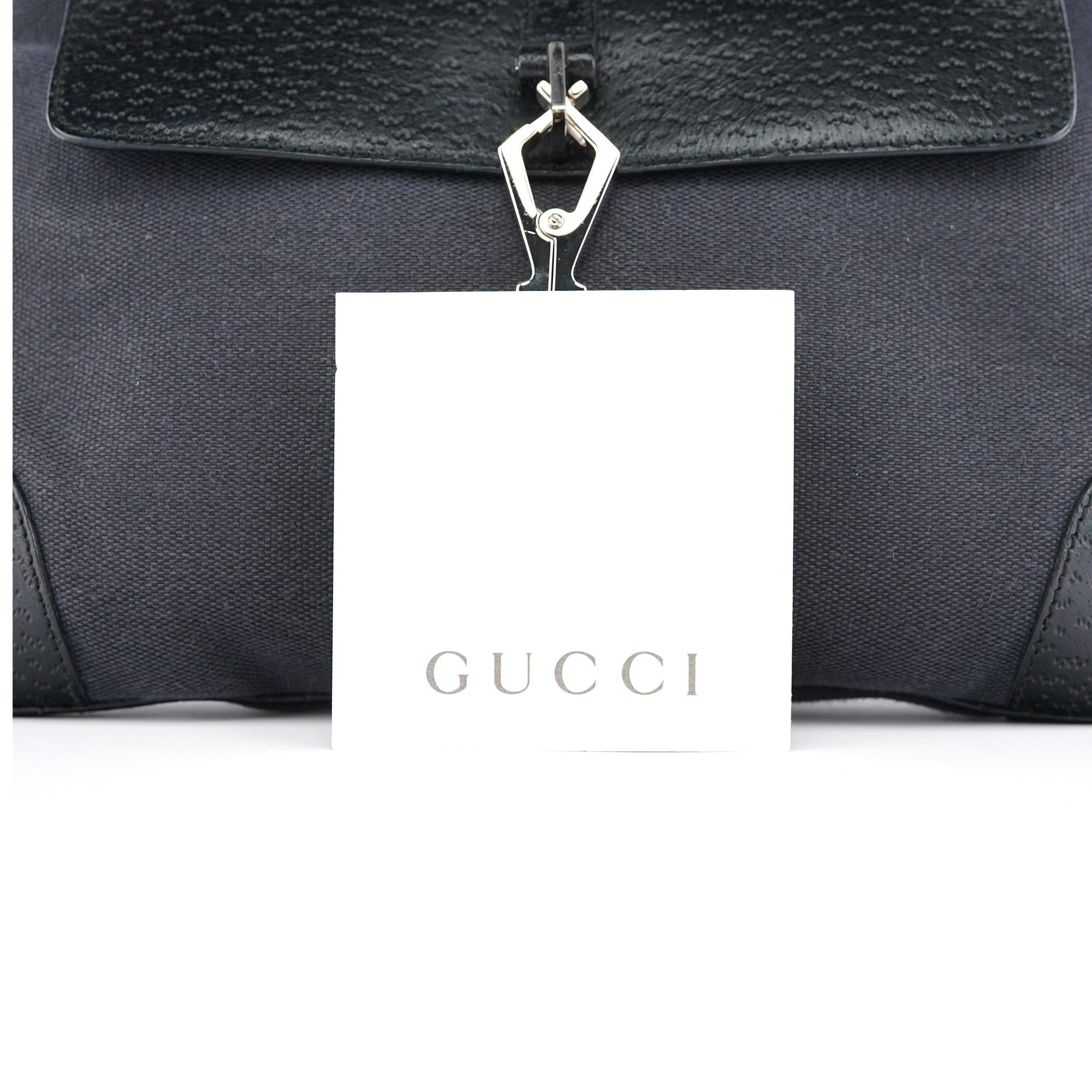 Designed in the early 2000s by Tom Ford, this vintage Gucci Jackie Bamboo shoulder bag combines black canvas with leather trim and the house's signature bamboo handle detail. The classic hobo silhouette features the iconic Jackie hardware with silver-tone piston closure and an adjustable shoulder strap for comfortable wear.
