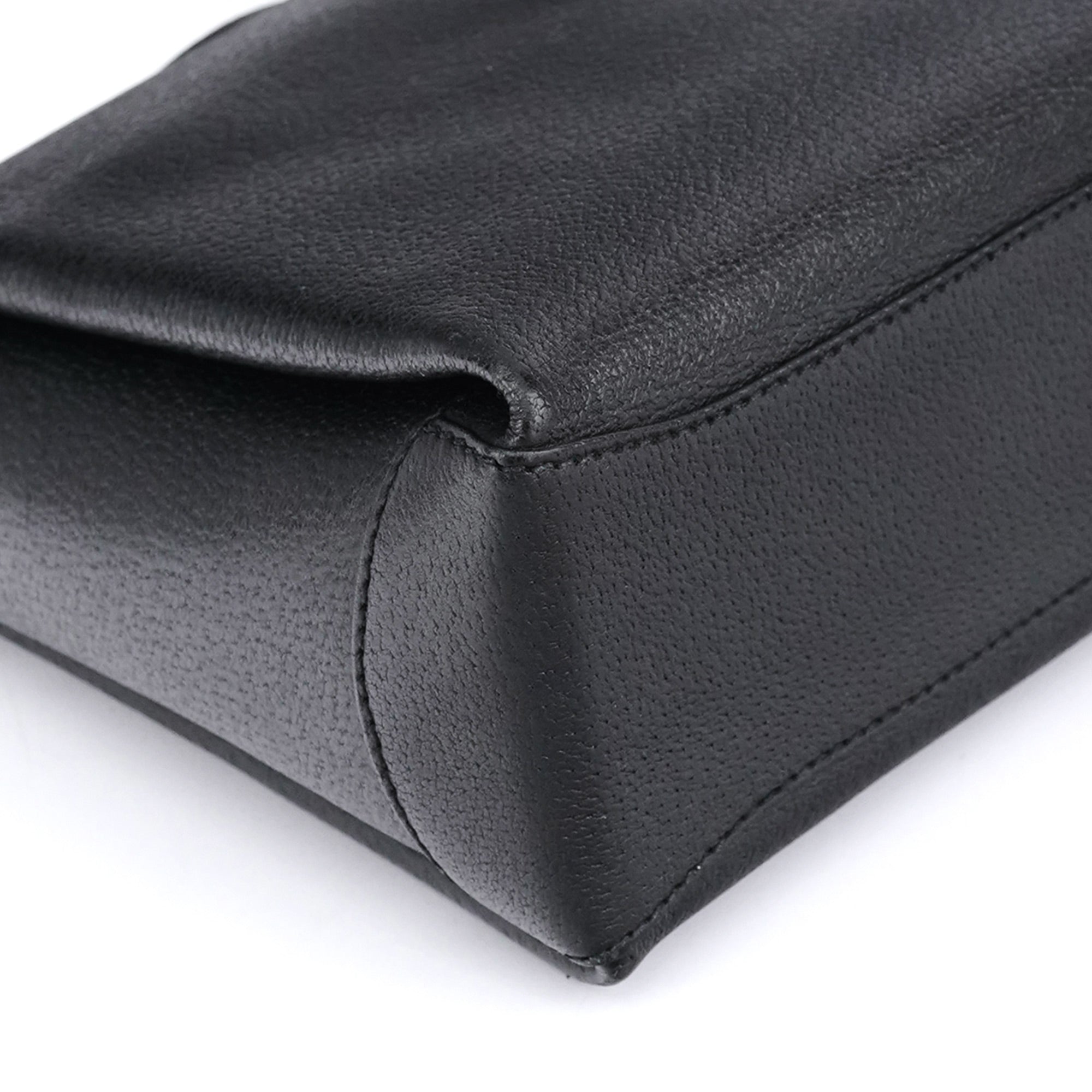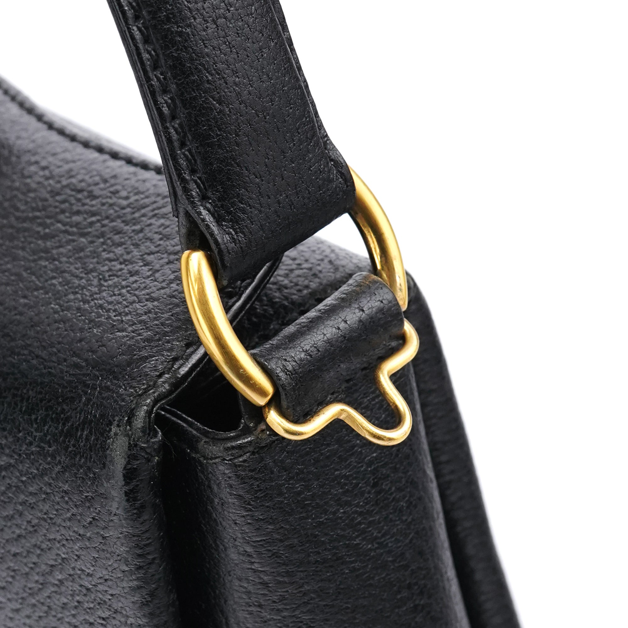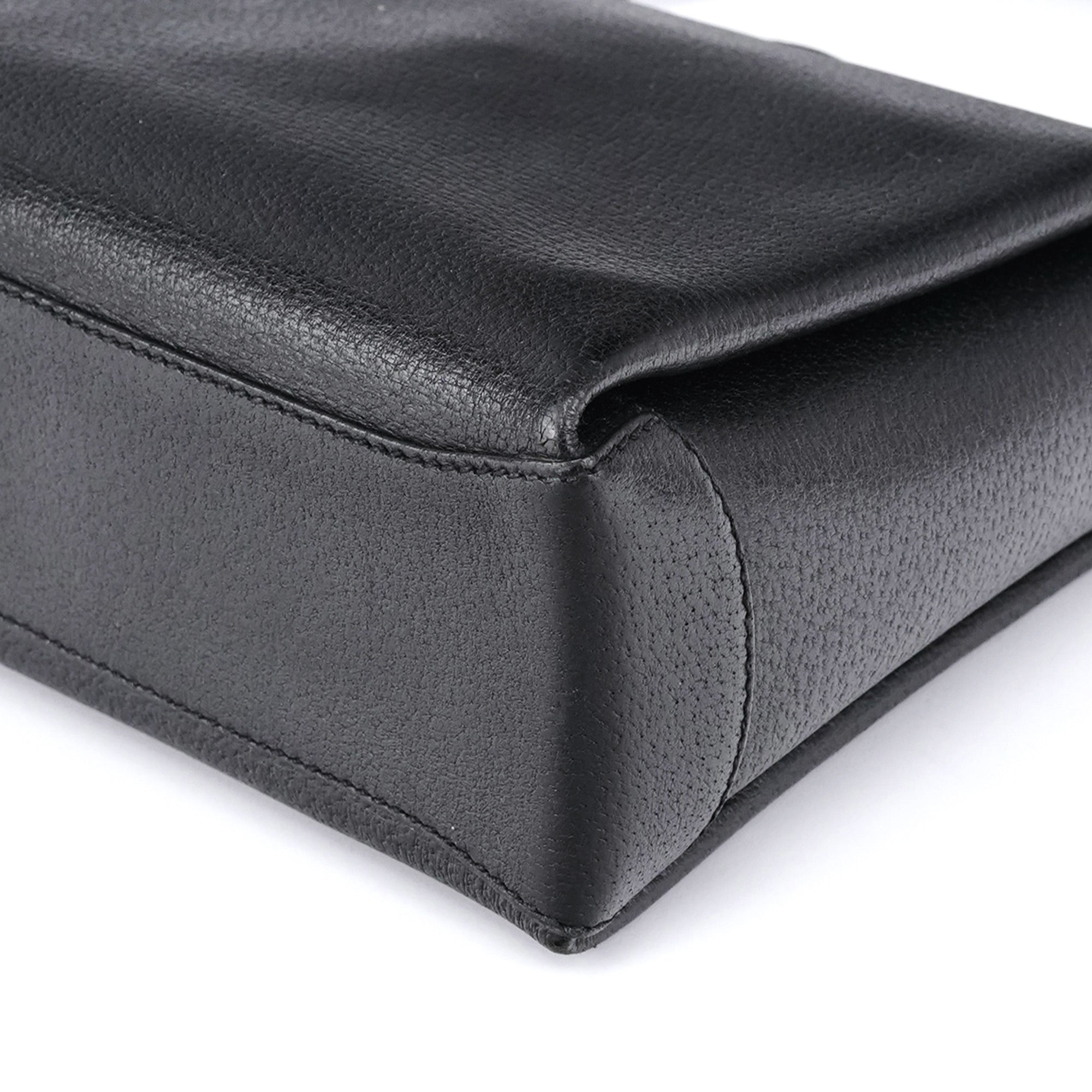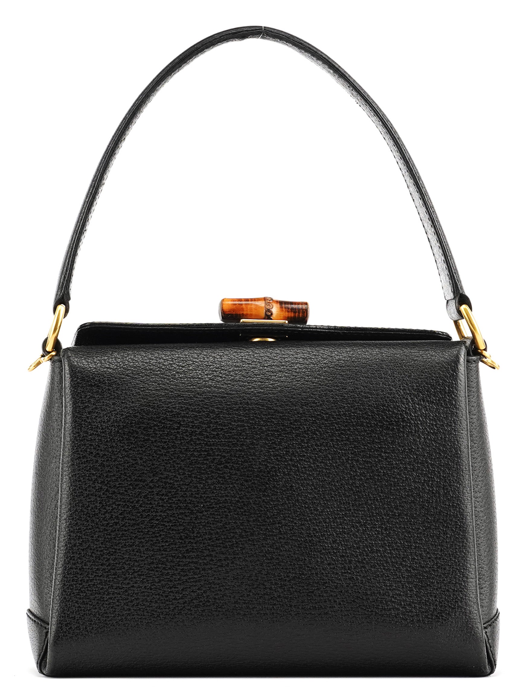 Designed in the mid-1990s by Tom Ford, this Gucci shoulder bag features a structured silhouette in black textured leather. The iconic bamboo turnlock closure adds a refined archival detail, paired with gold-tone hardware and a non-adjustable strap. The interior is lined in black leather and includes a single zipped pocket.