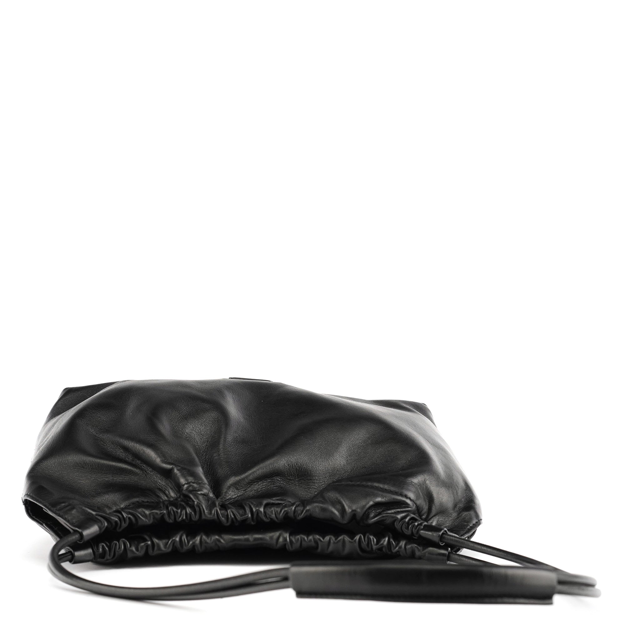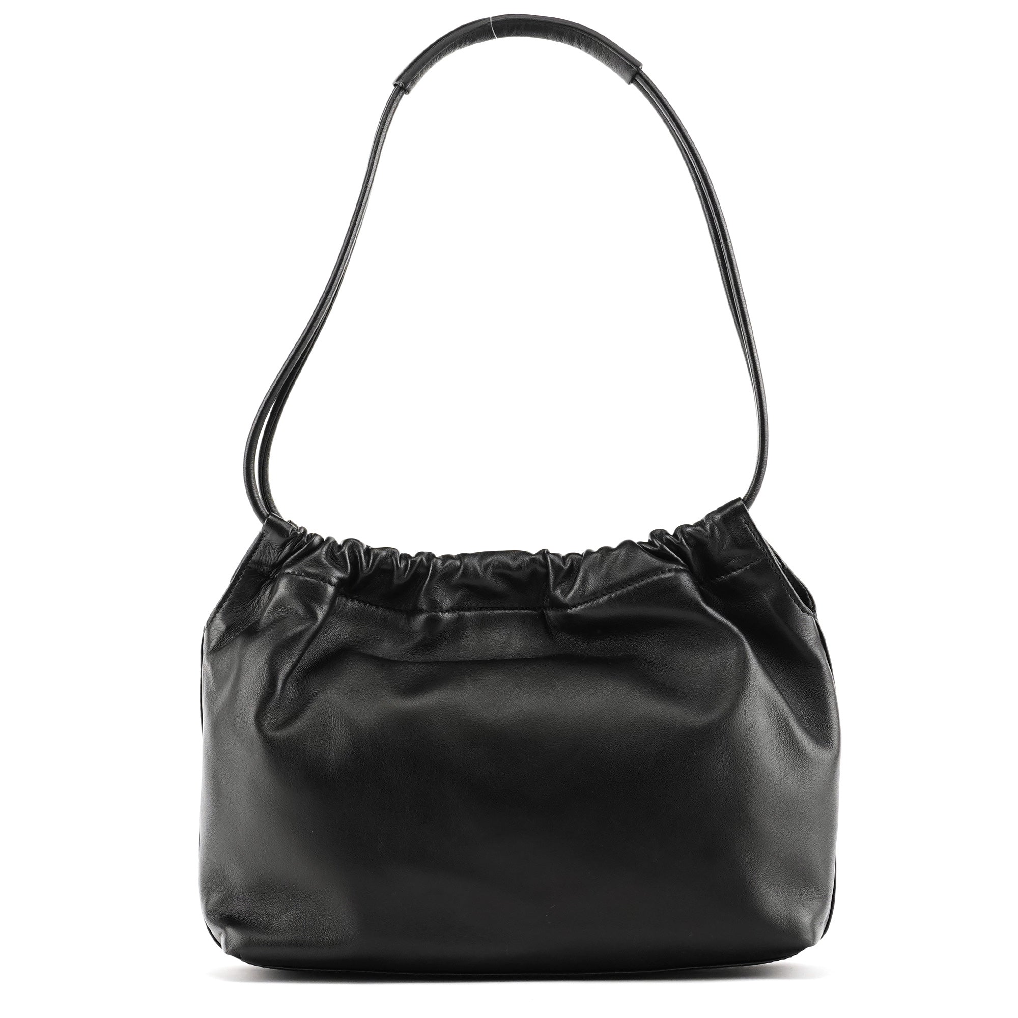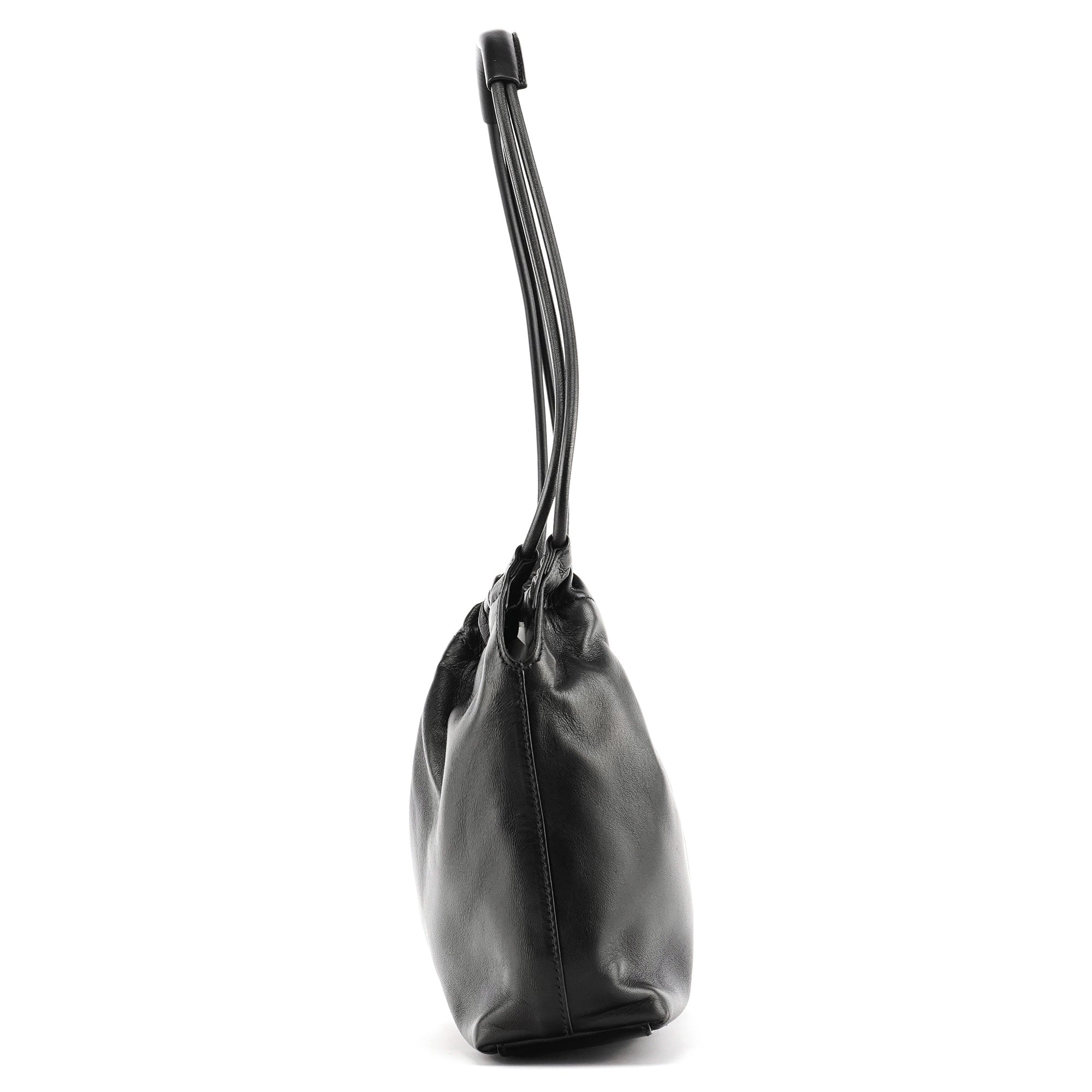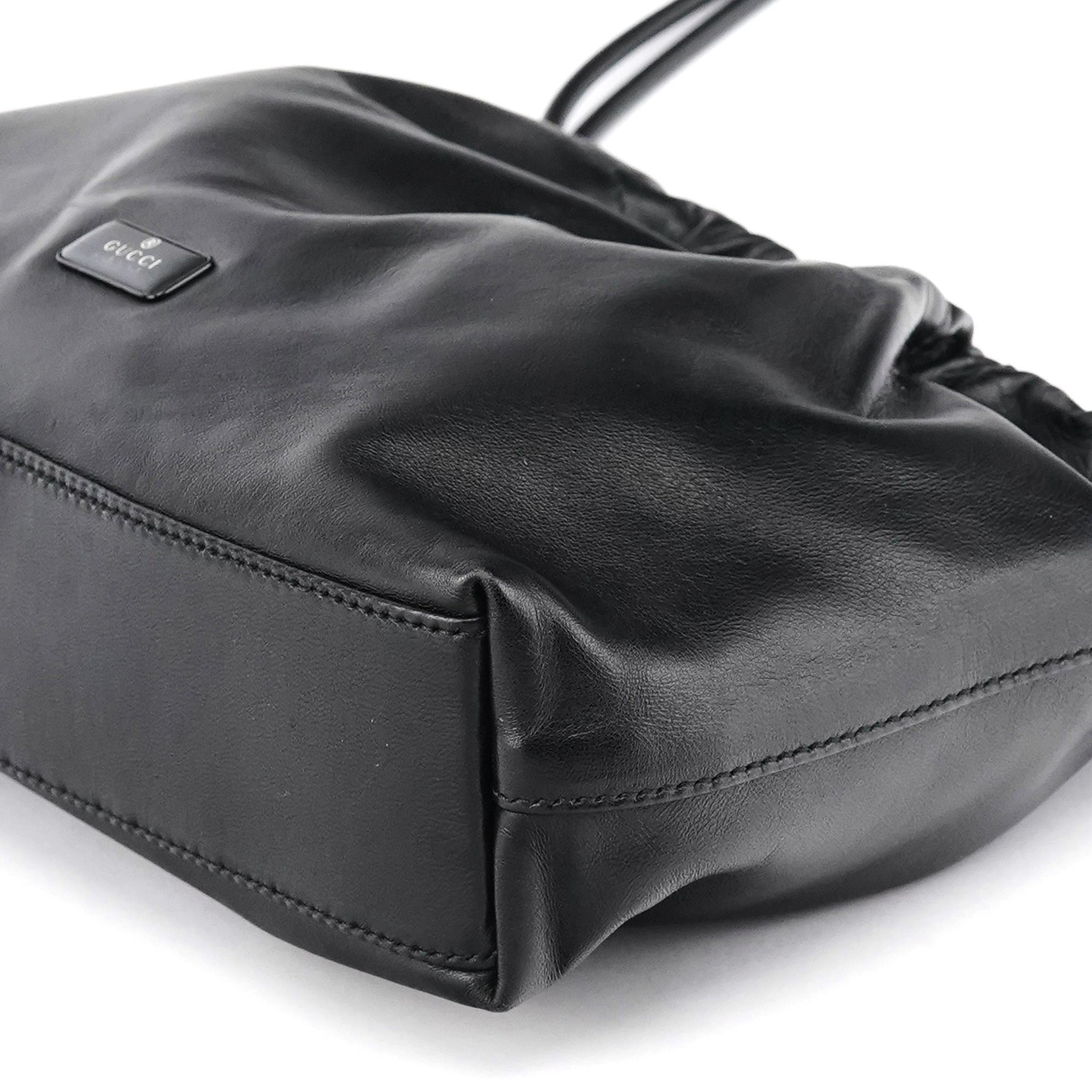 Designed in the late 1990s by Tom Ford, the Gucci hobo bag is crafted from supple black calfskin leather with a gathered top and black enamel logo plaque. It features a double-handle strap design and a magnetic closure, opening to a black suede-lined interior with a matching zip pocket. A sleek example of Tom Ford’s minimalist and sensual direction for Gucci during this era.