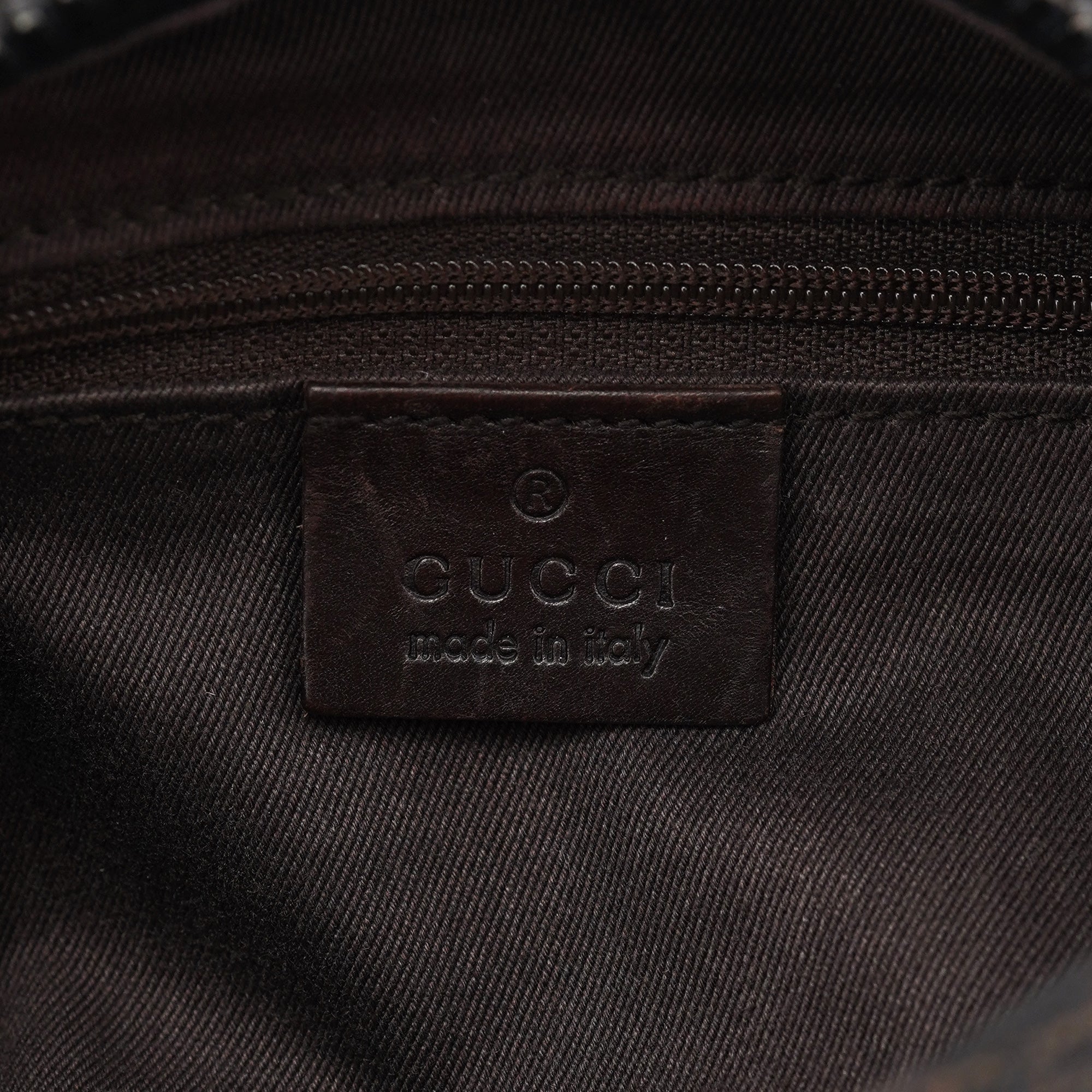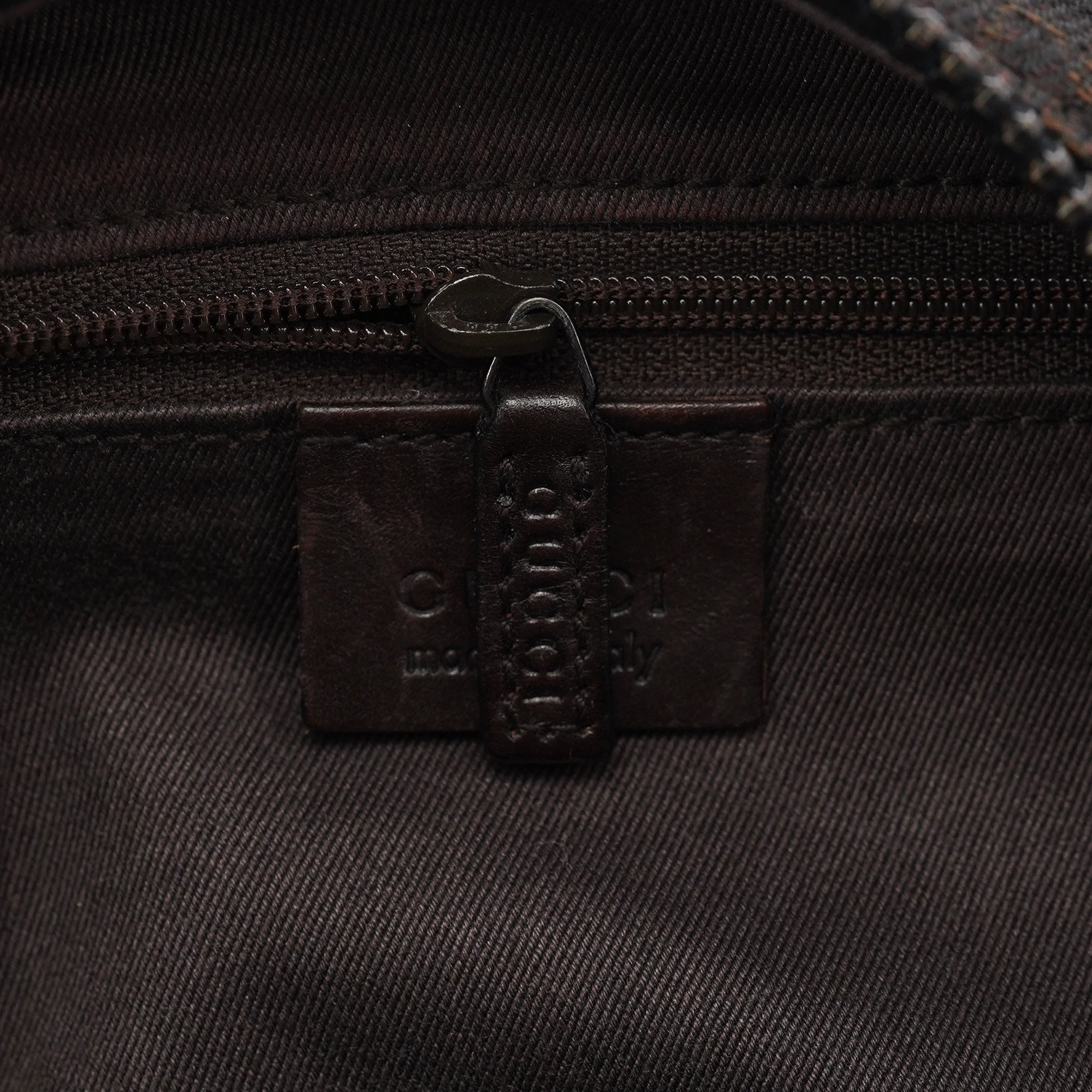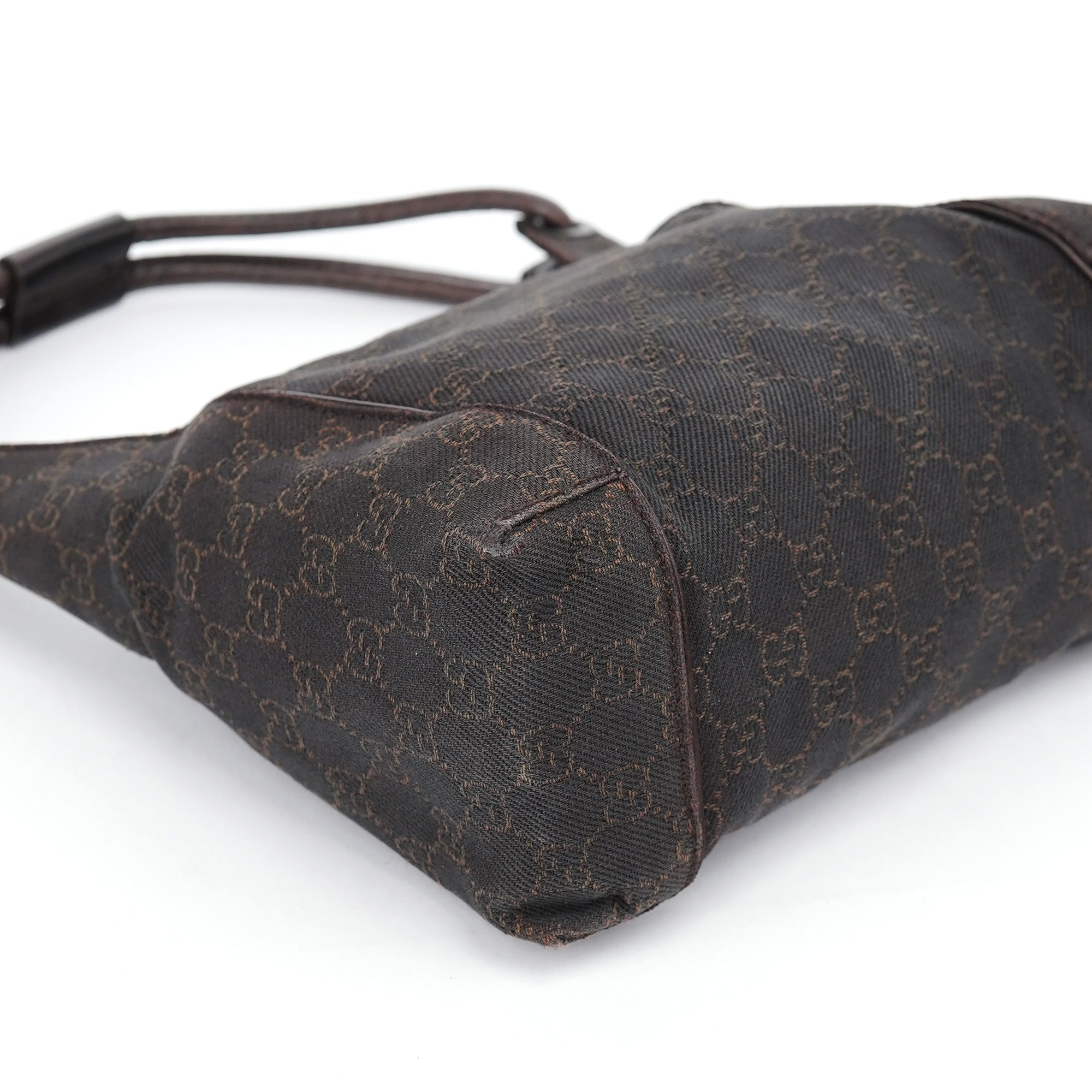 Designed in the early 2000s by Tom Ford, this Gucci shoulder bag is crafted in brown GG canvas with tonal leather trim and a structured, softly curved silhouette. It features dual top handles, a top zip closure, and a spacious fabric-lined interior with a single zip pocket.