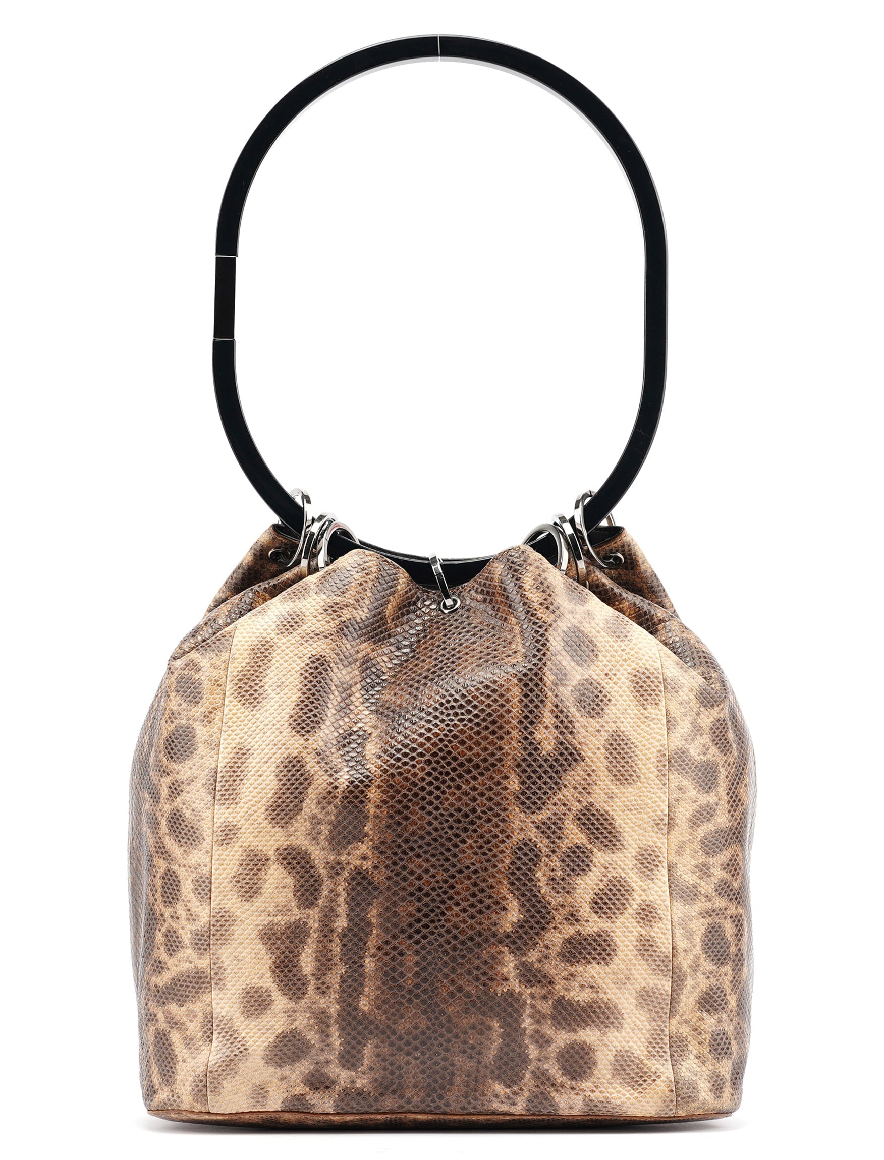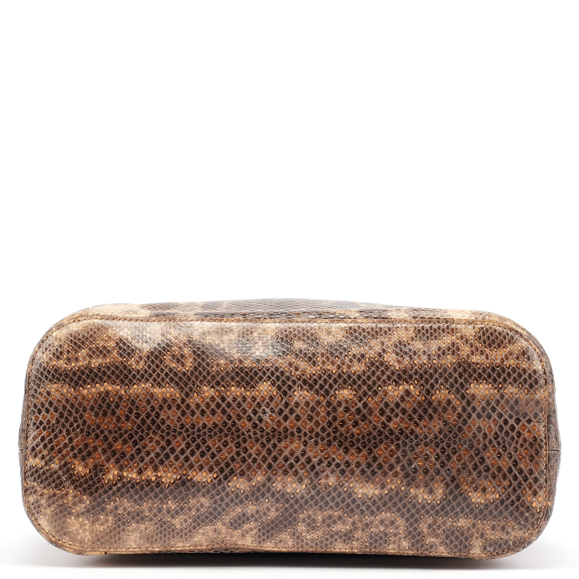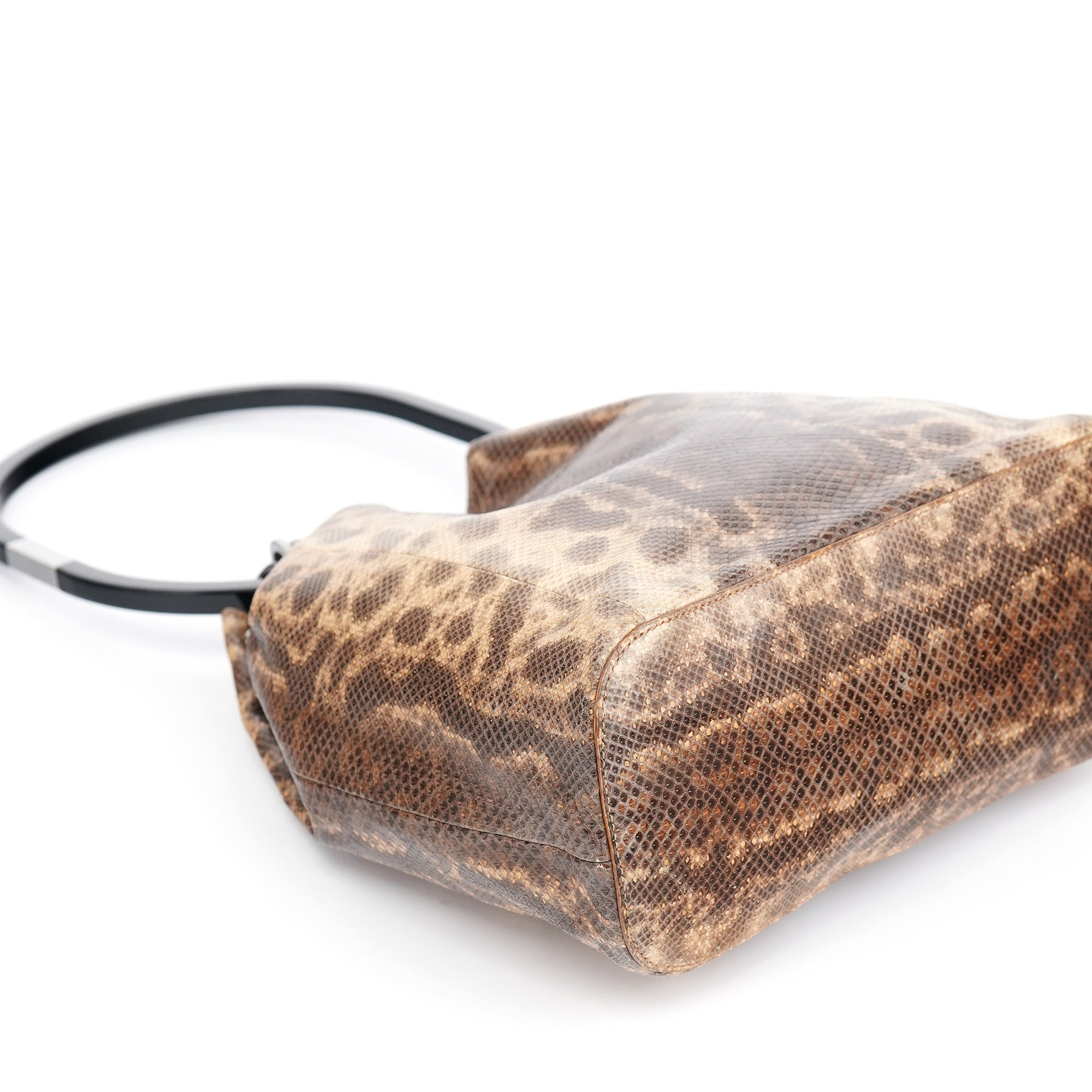 Designed for the 1999 collection by Tom Ford, this vintage Gucci Loop shoulder bag features authentic beige lizard leather with a distinctive circular ring handle. The interior is lined in smooth calfskin leather and includes an interior zip pocket. Its curved silhouette and sculptural hardware reflect Ford’s minimalist yet sensual vision during his transformative era at Gucci.