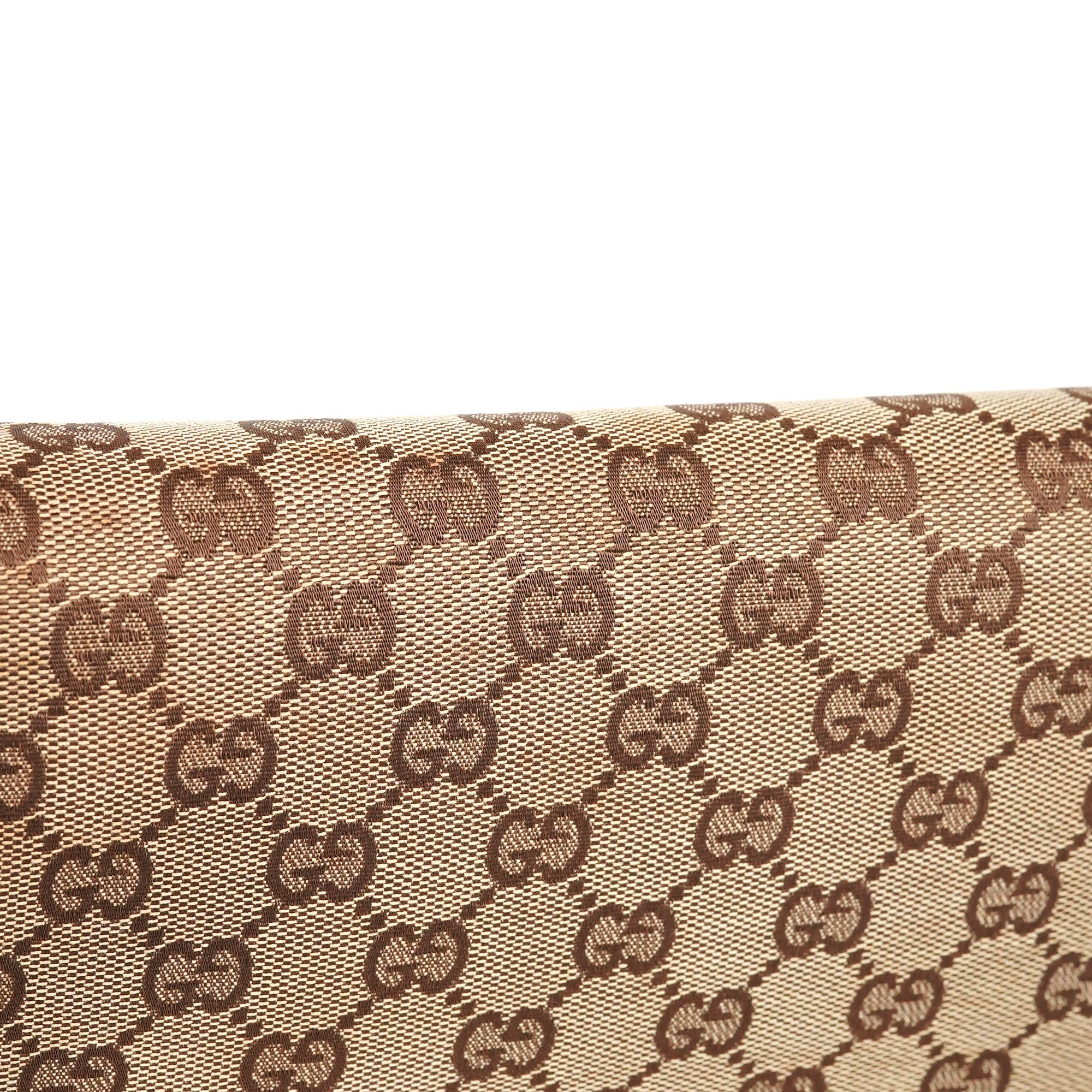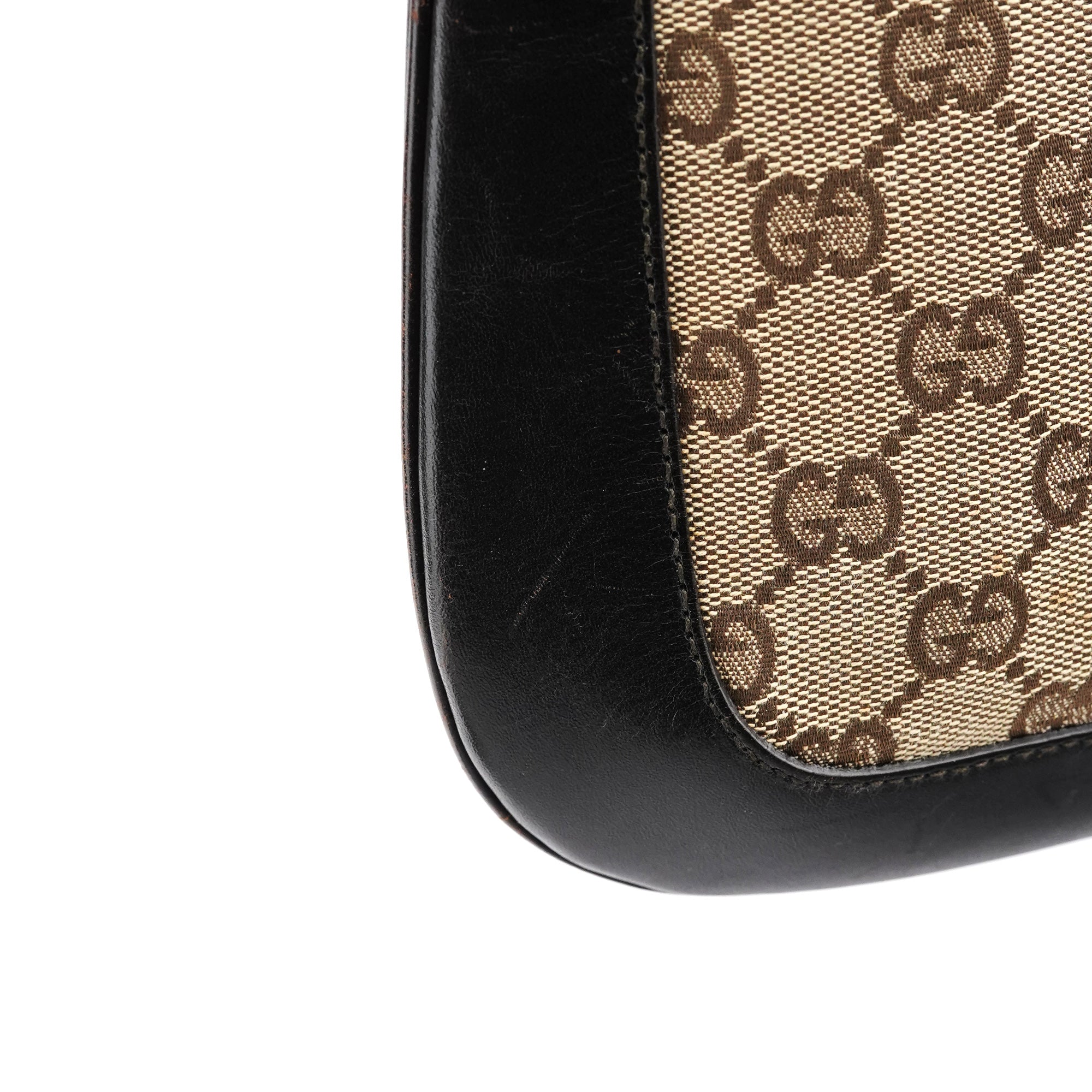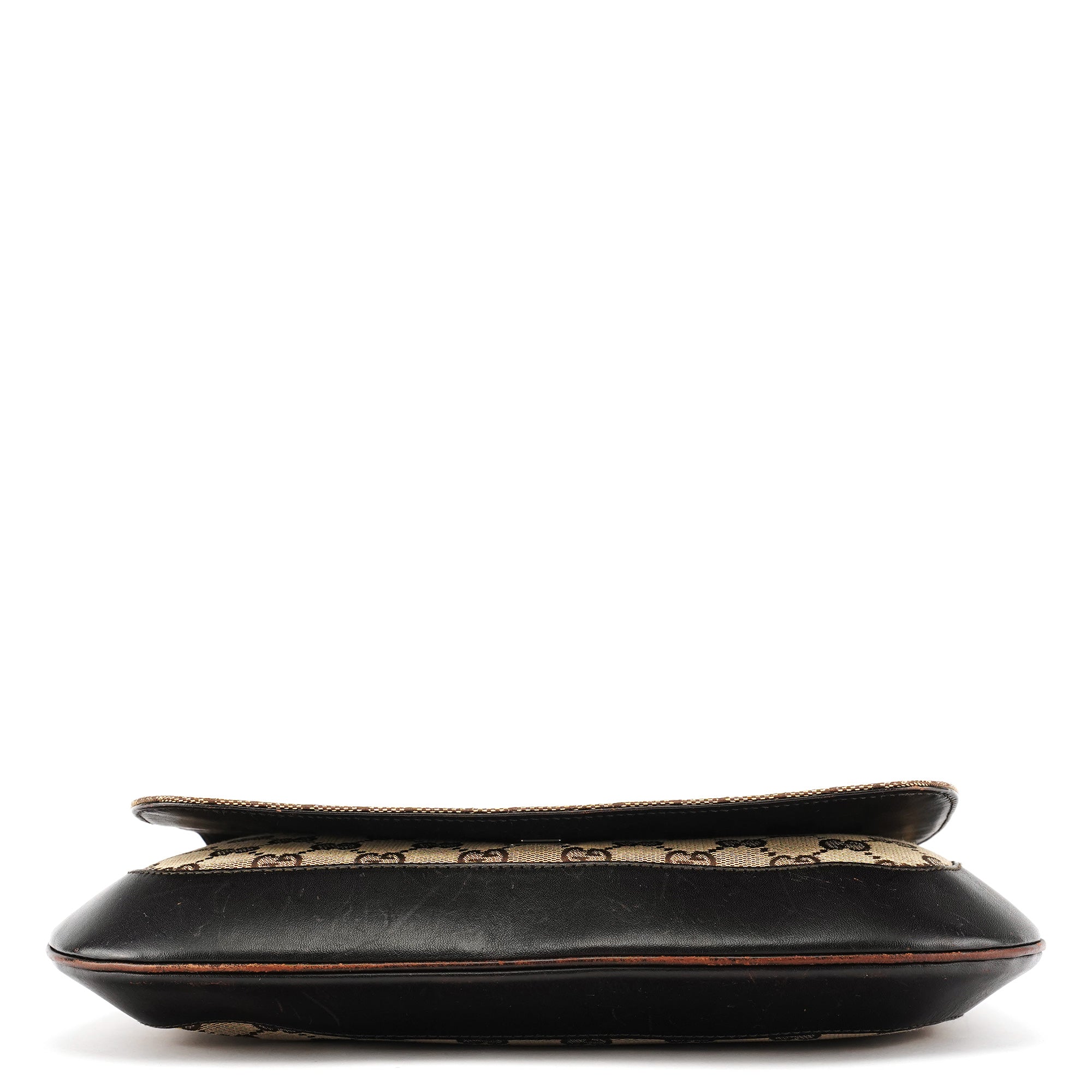 Designed by Tom Ford in the early 2000s, this rare Gucci GG Chain bag is handcrafted from beige GG monogram canvas with smooth brown leather trim. Its standout feature is the sculptural wood chain handle—a bold detail unique to this limited design. The flap opens to a satin-lined interior with a slip pocket, blending iconic branding with striking craftsmanship.
