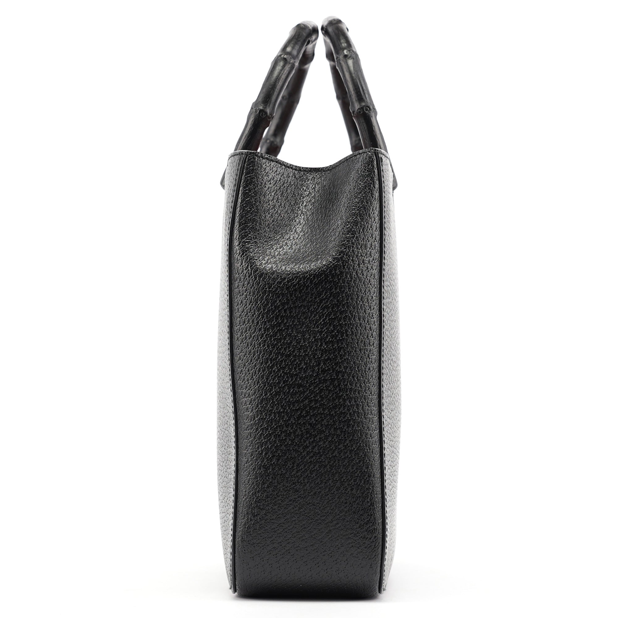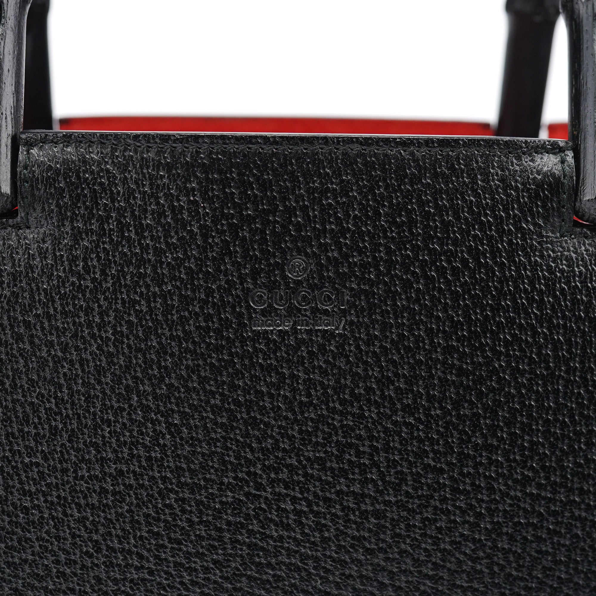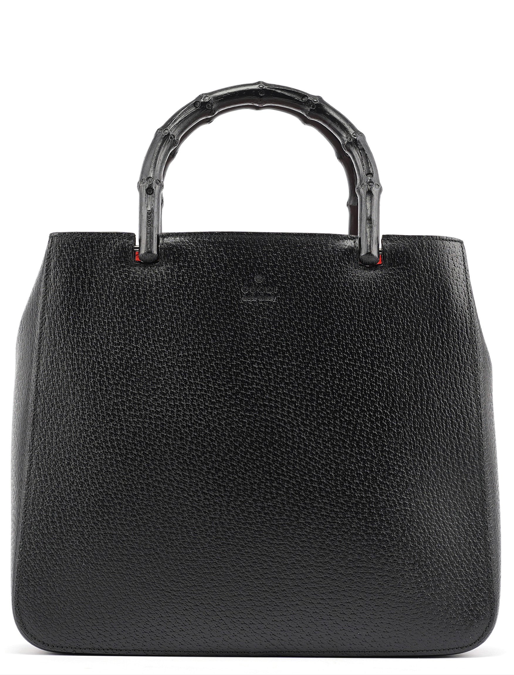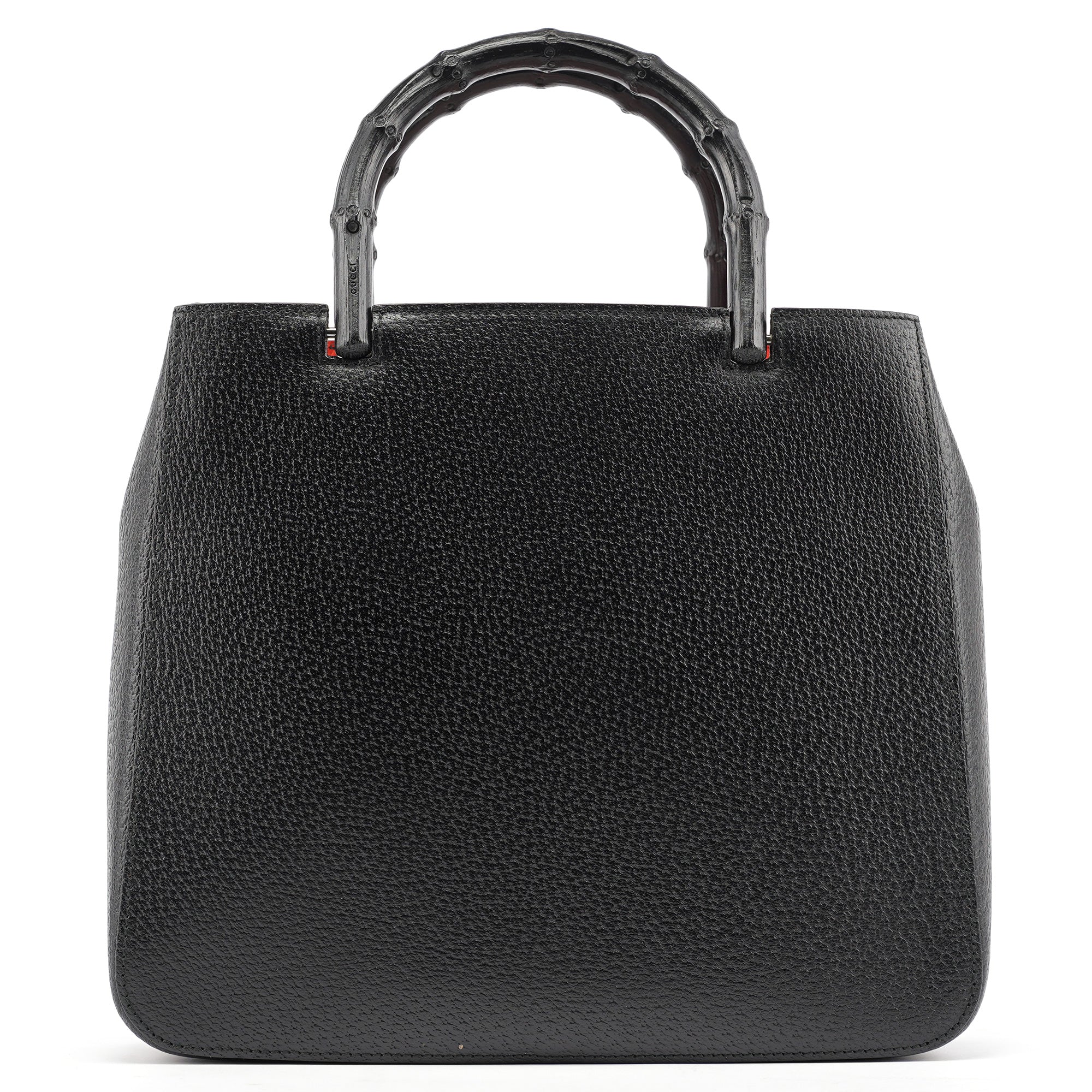 Designed in the early 2000s by Tom Ford, this vintage Gucci Bamboo tote exemplifies Ford's ability to modernize Gucci's heritage codes. Crafted in black pebbled leather with a striking red suede interior, the bag features the iconic bamboo top handles that have been a Gucci signature since 1947. The structured rectangular silhouette showcases clean lines and minimal hardware, embodying the sophisticated minimalism that defined Ford's tenure at Gucci.