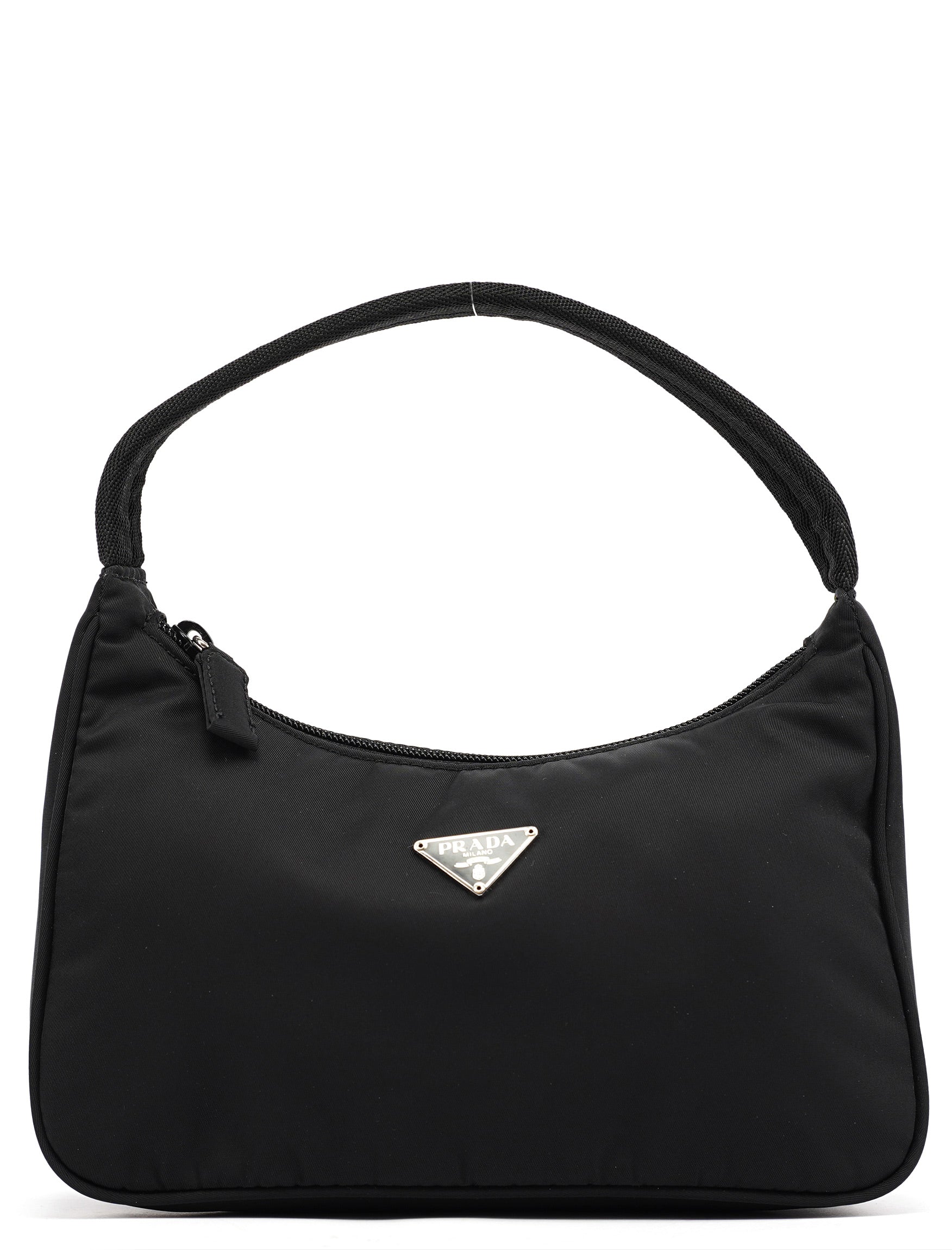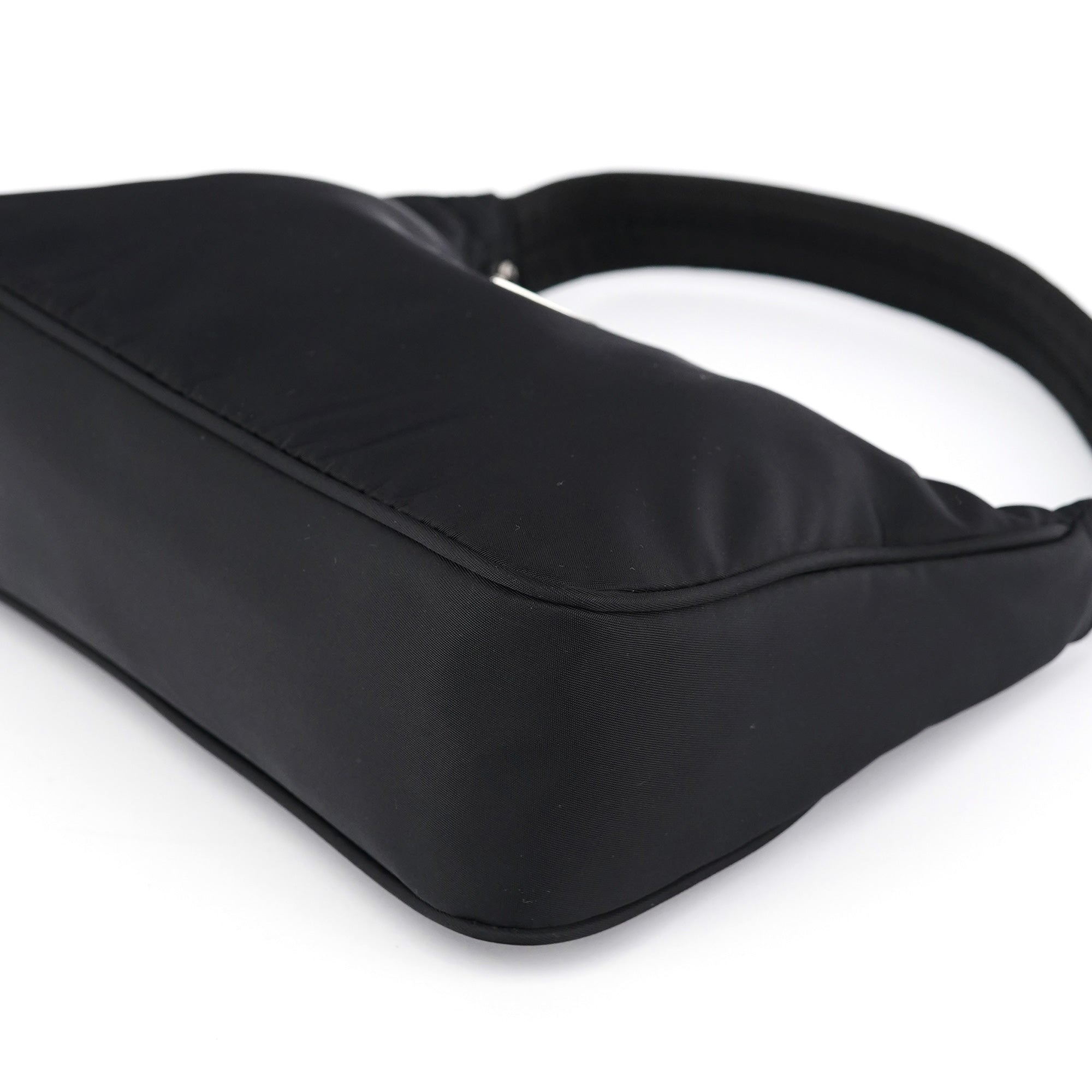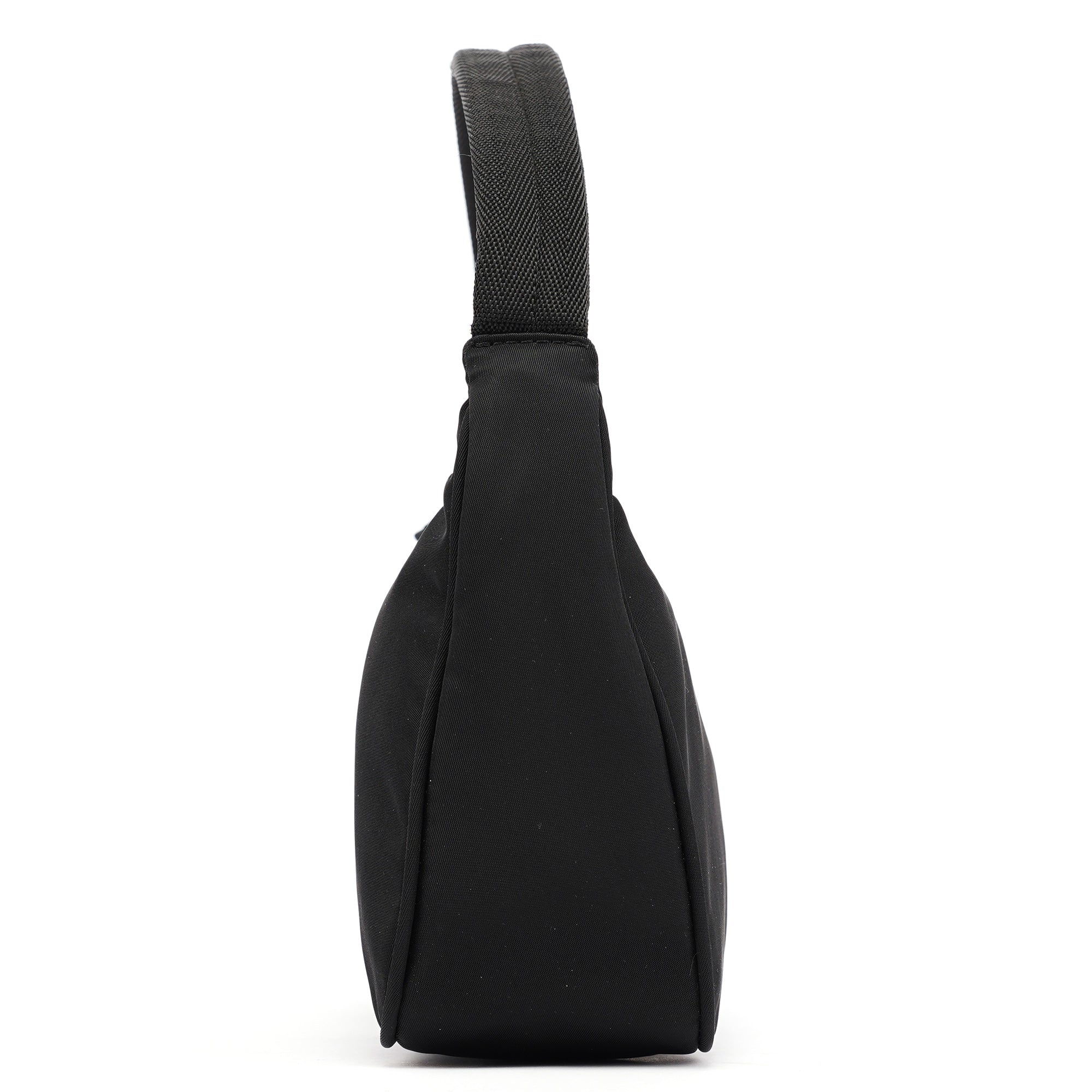 Designed in the early 2000's by Miuccia Prada, this vintage Prada Tessuto mini hobo bag features lightweight black nylon with a curved hobo silhouette. The iconic triangular Prada logo plate adorns the front, while the single braided fabric handle offers comfortable carry. The zip-top closure opens to a fabric-lined interior with the signature Prada label.