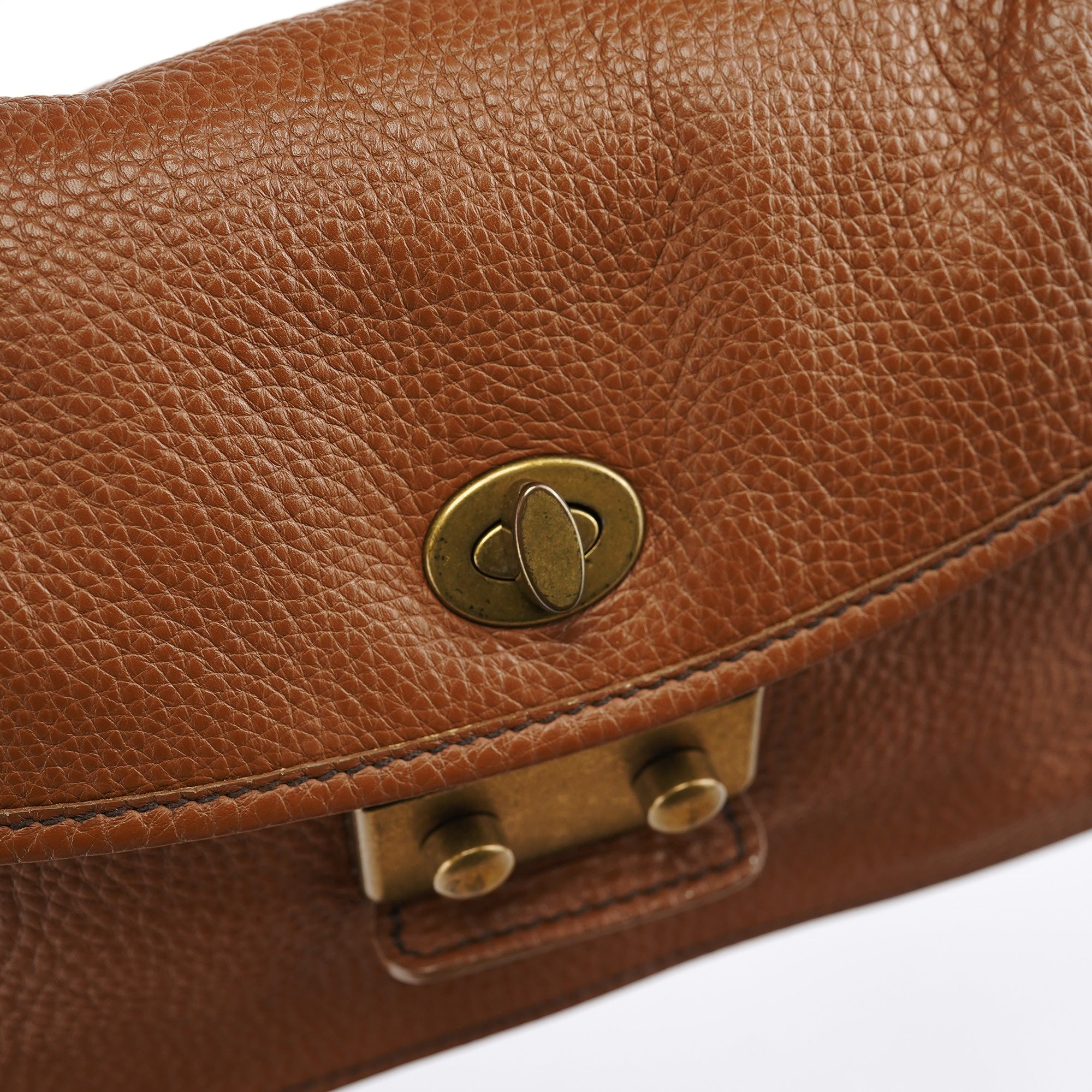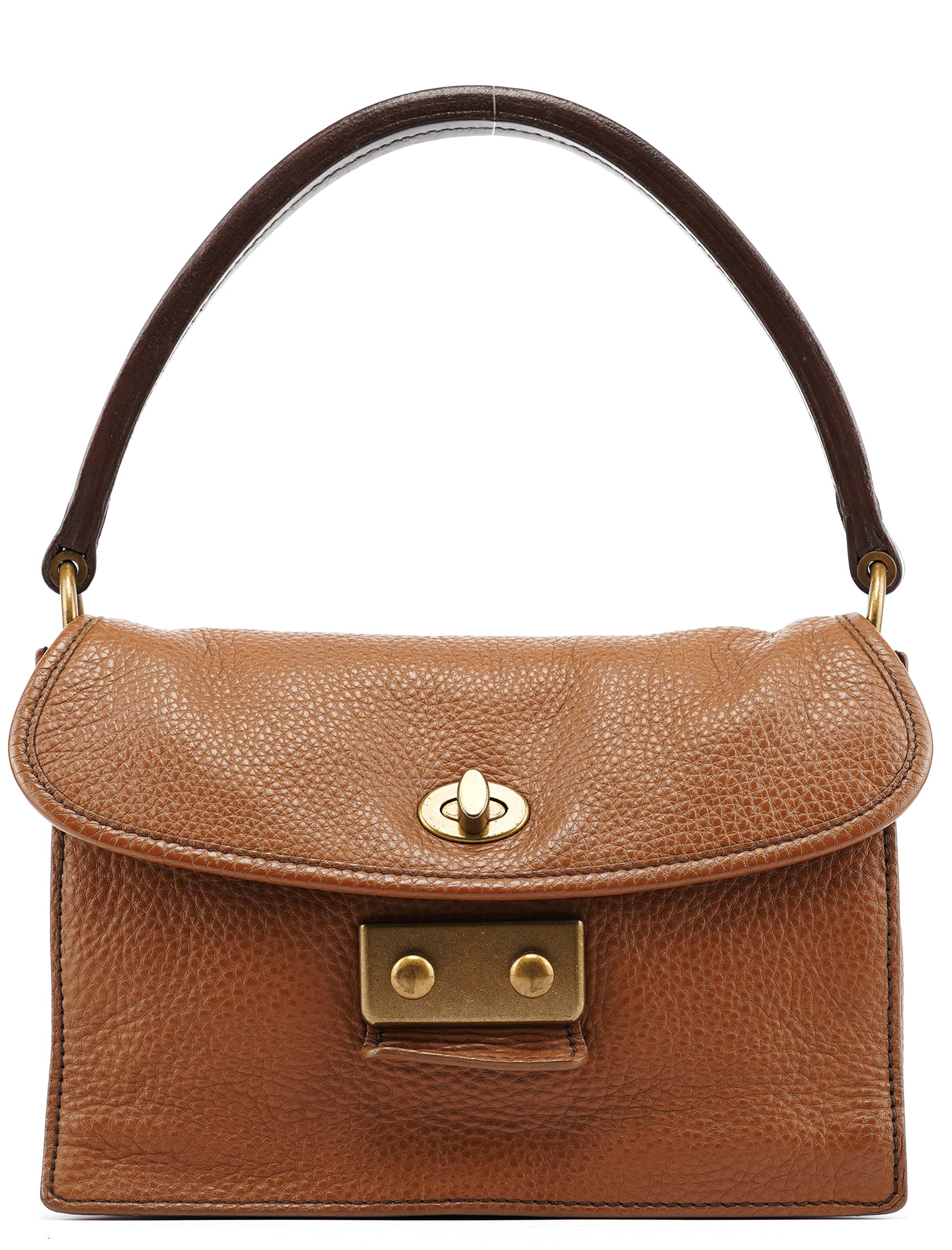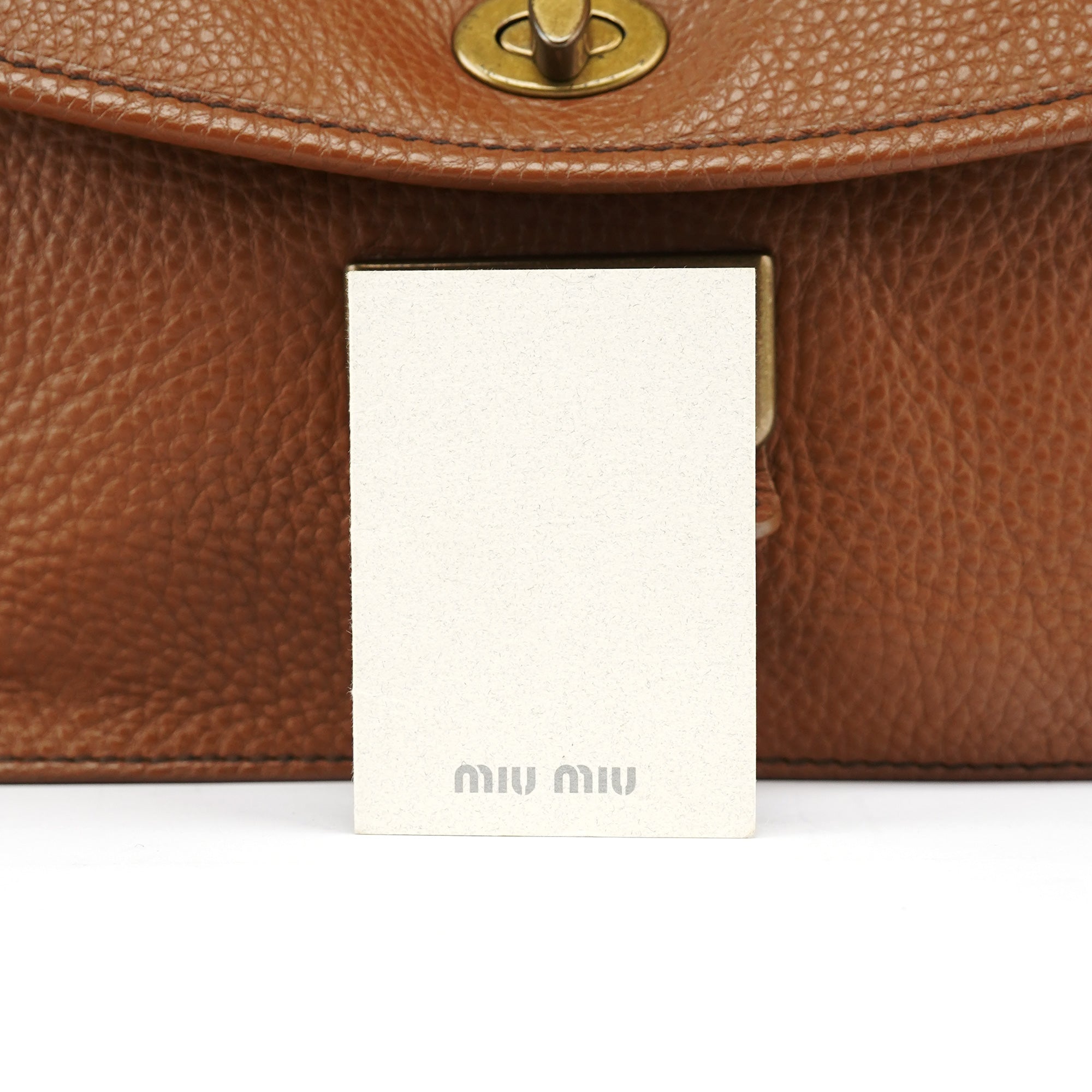 Designed in the early 2000's by Miuccia Prada, this vintage Miu Miu shoulder bag features supple light brown leather with a distinctive turnlock closure on the front flap. Brass-tone hardware adds refined detail, while the single top handle offers elegant carry. The bag is lined with cotton fabric and includes an interior zipper pocket. Finished with the Miu Miu logo embossed on the back.