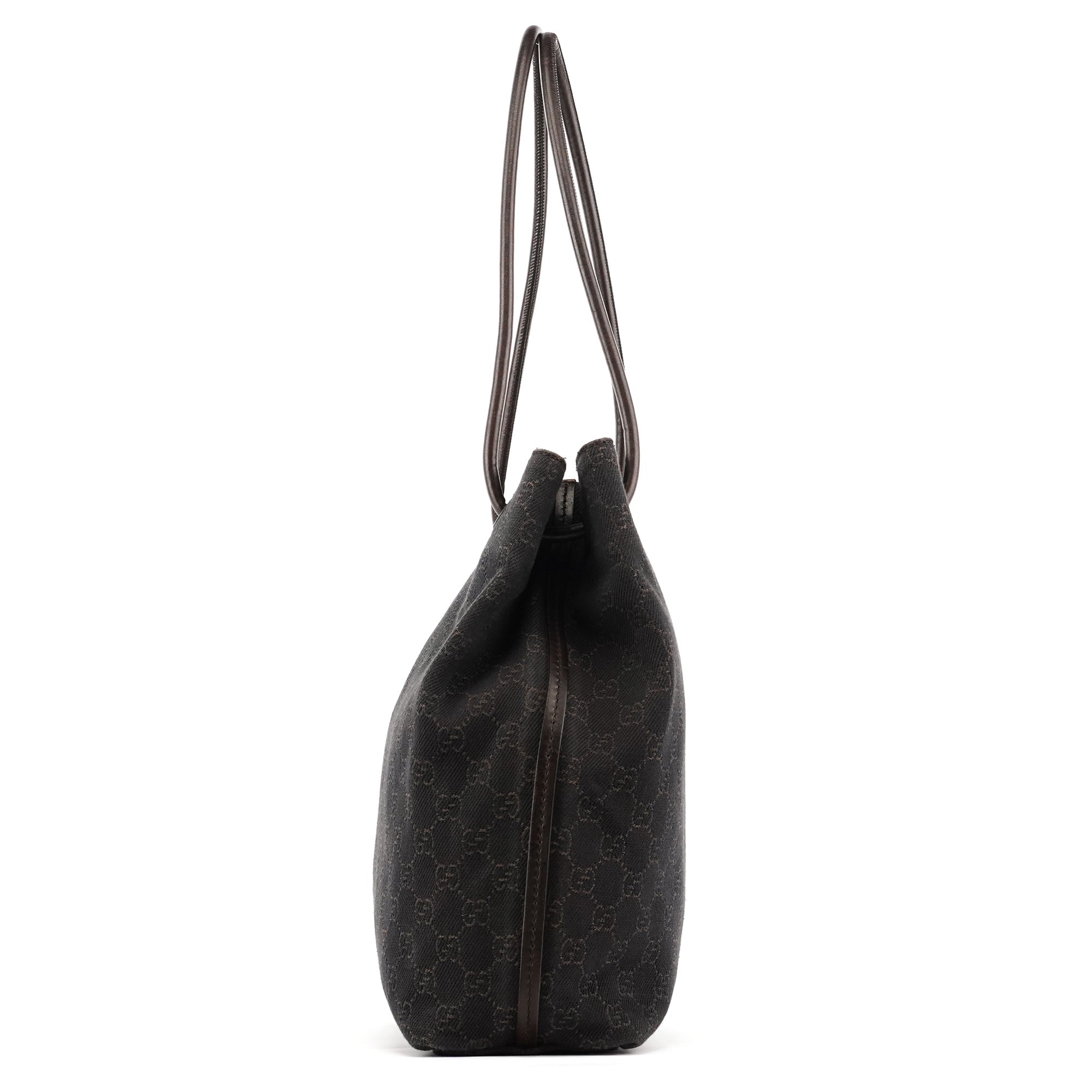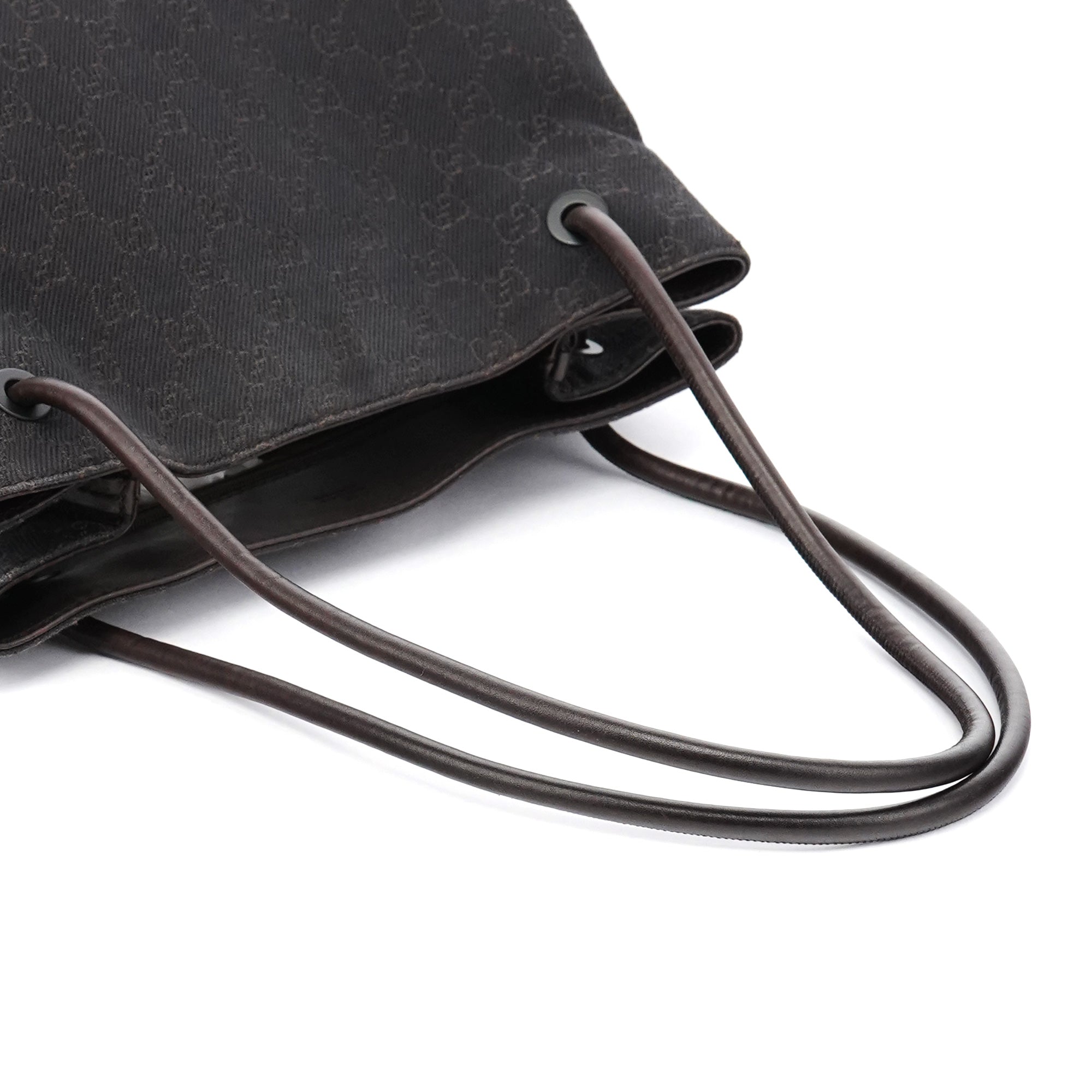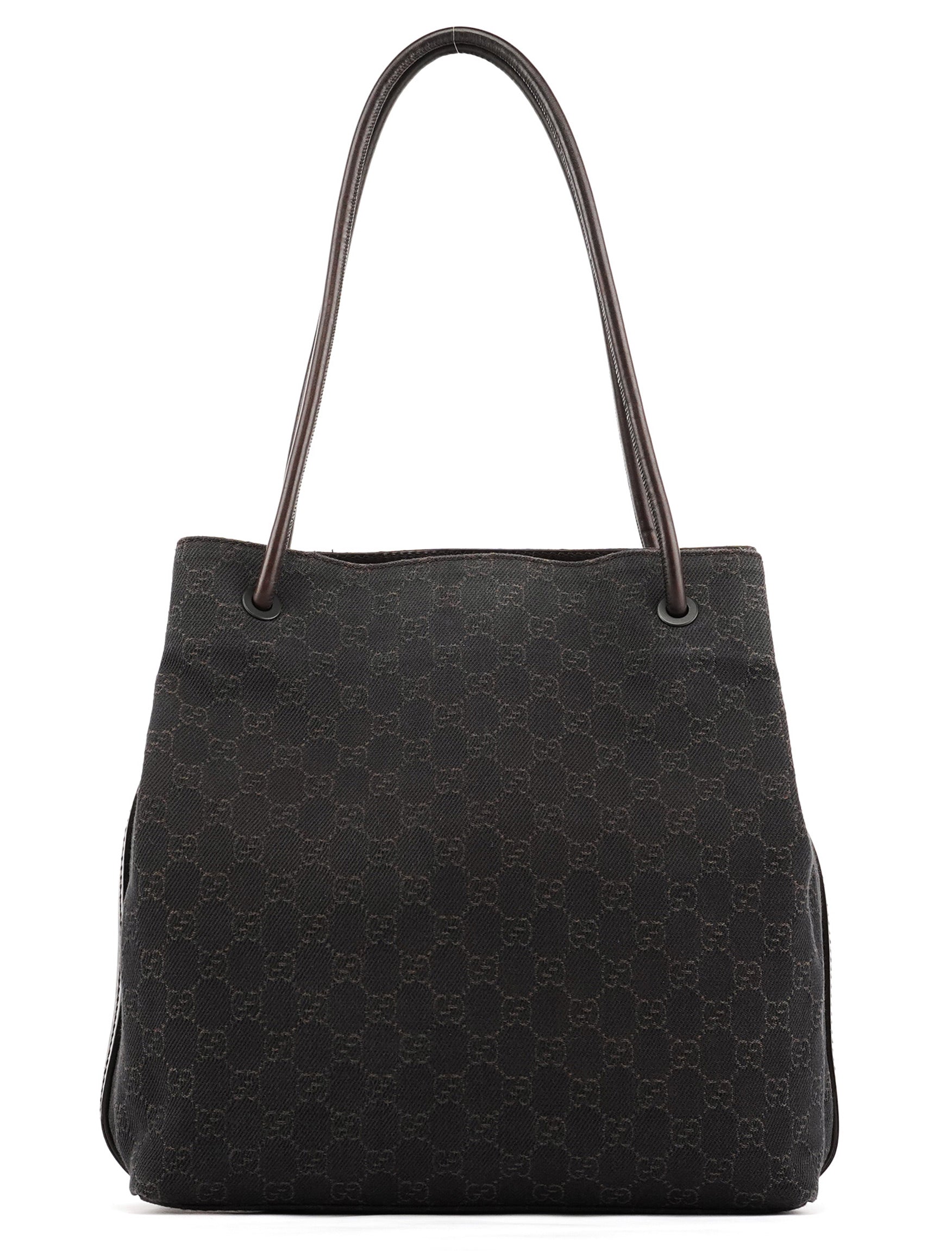 Designed in the late 1990s by Tom Ford, this Gucci GG tote features brown monogram canvas with matching leather trim and slim rolled handles. The open-top structure is framed by a soft, unlined interior with a single zipped pocket for essentials. Finished with subtle branded hardware for a clean, minimal profile.