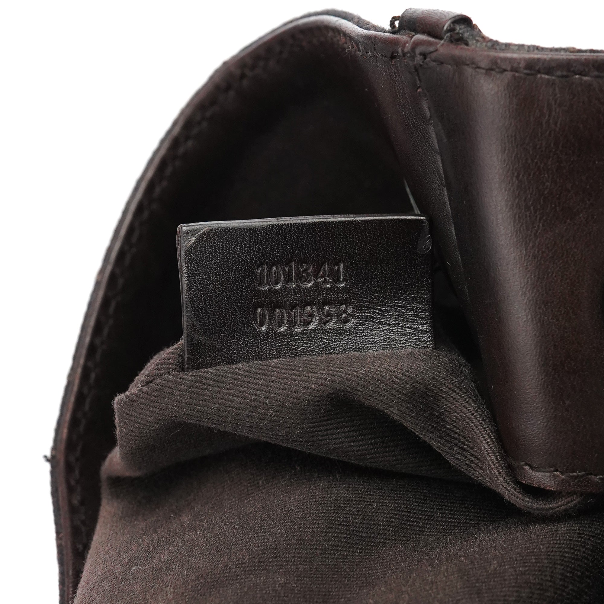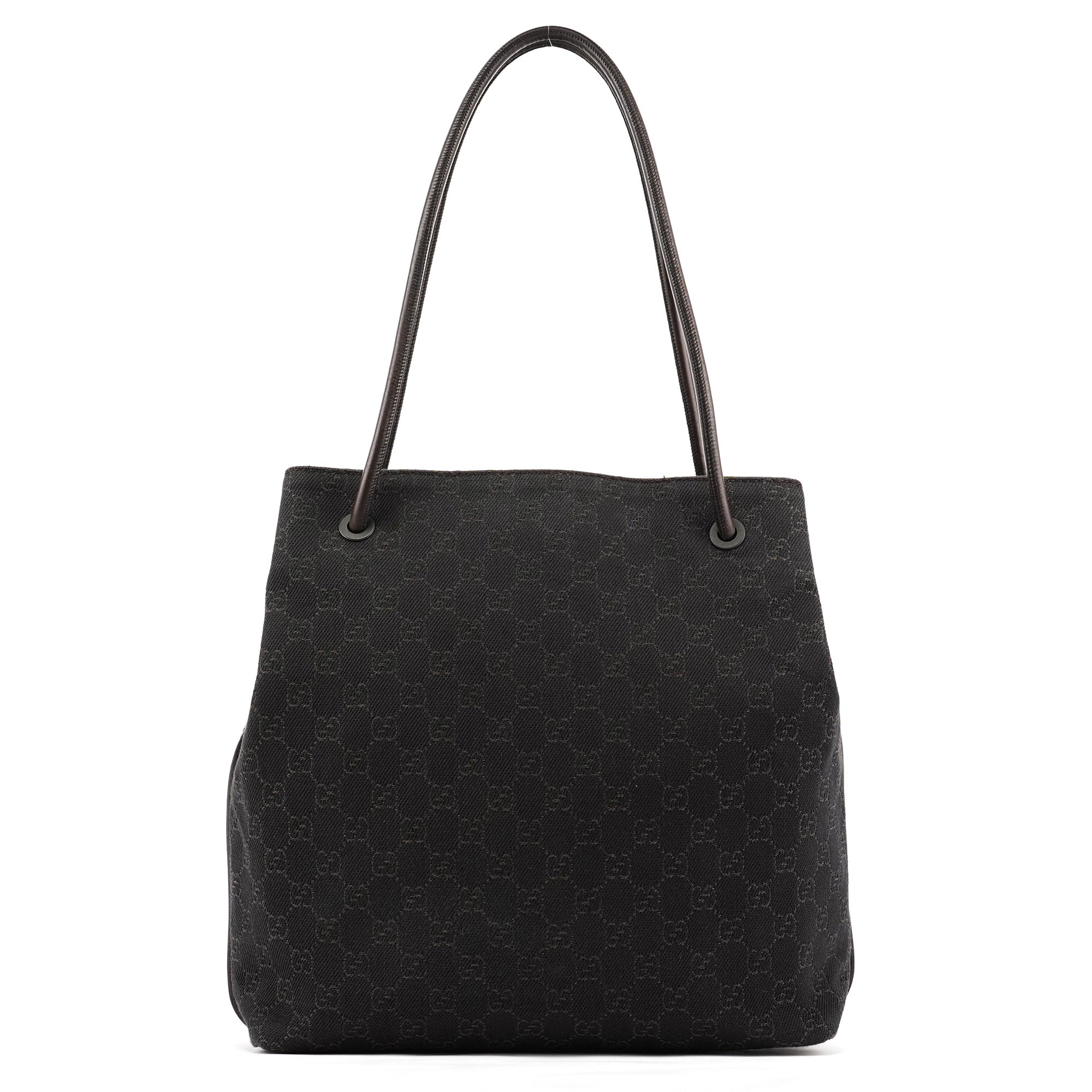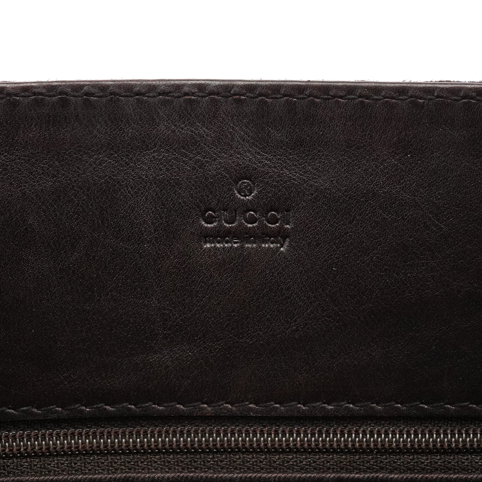 Designed in the late 1990s by Tom Ford, this Gucci GG tote features brown monogram canvas with matching leather trim and slim rolled handles. The open-top structure is framed by a soft, unlined interior with a single zipped pocket for essentials. Finished with subtle branded hardware for a clean, minimal profile.