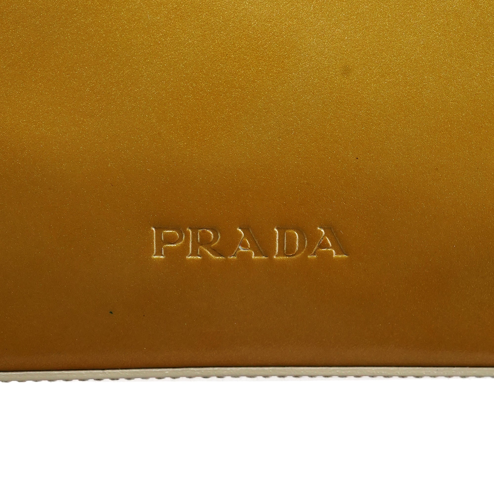 Designed in 1998 by Miuccia Prada, this vintage Prada shoulder bag is crafted from yellow spazzolato patent leather with a high-shine finish that catches the light. The asymmetric silhouette is finished with a Velcro closure and a minimalist interior lined in Prada jacquard.