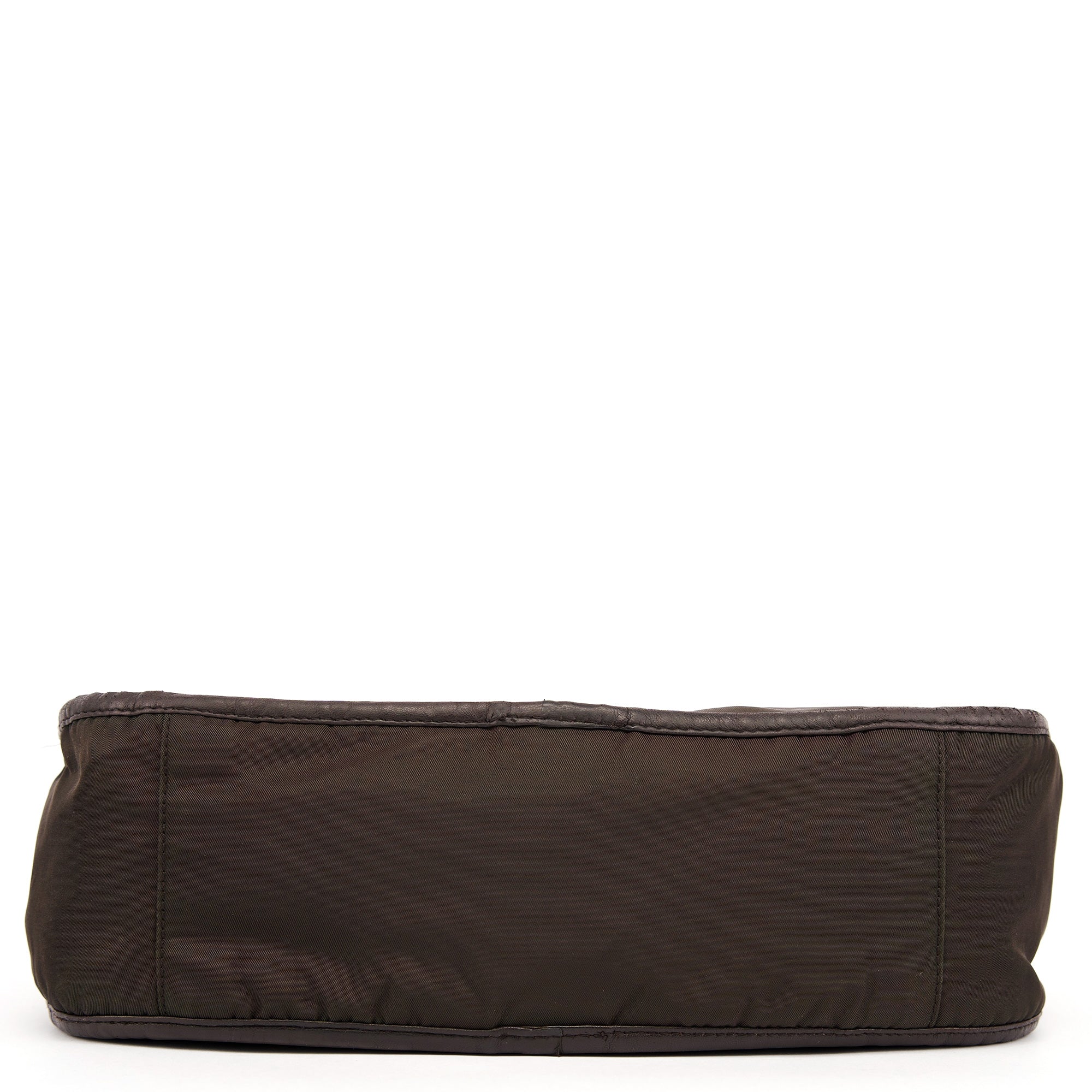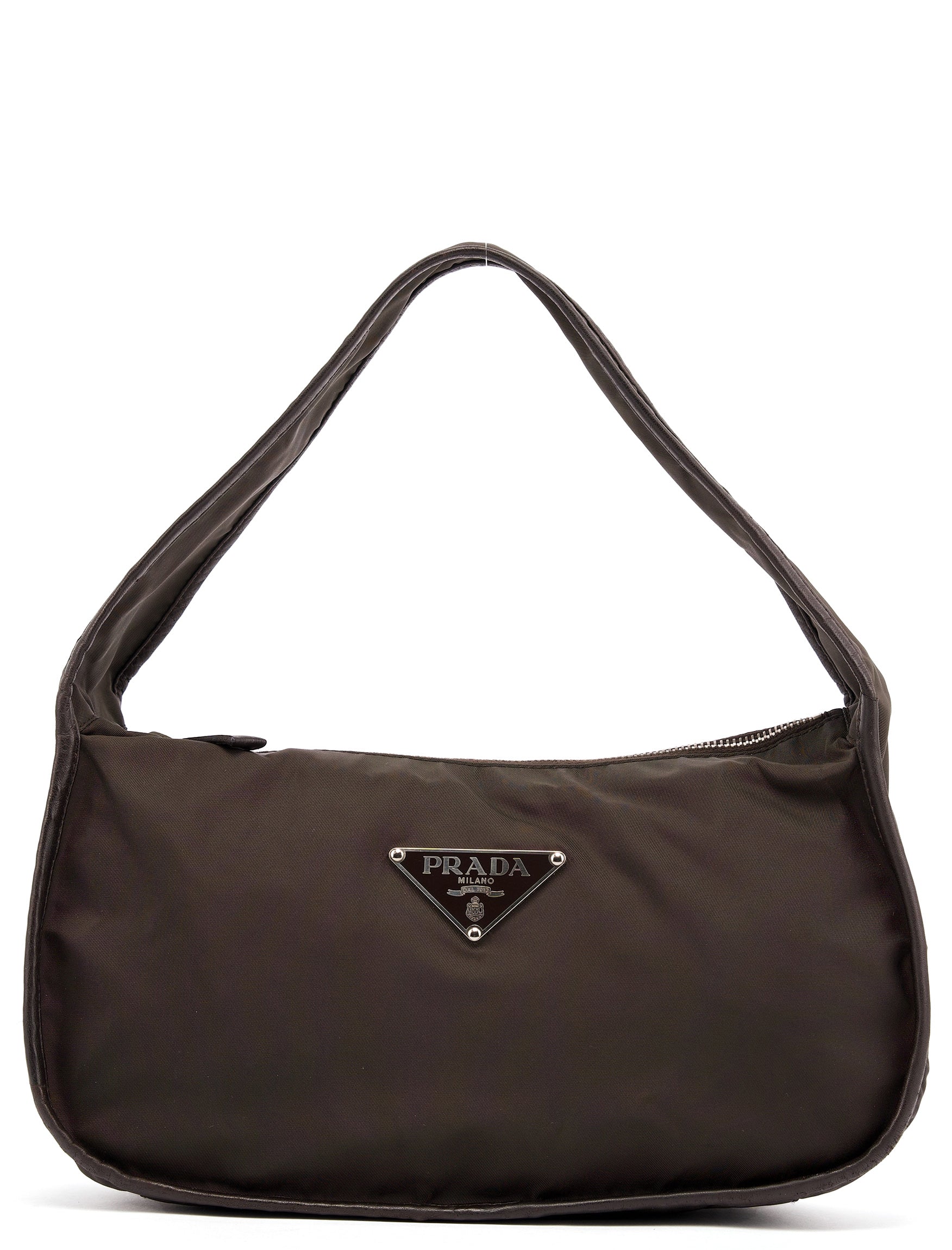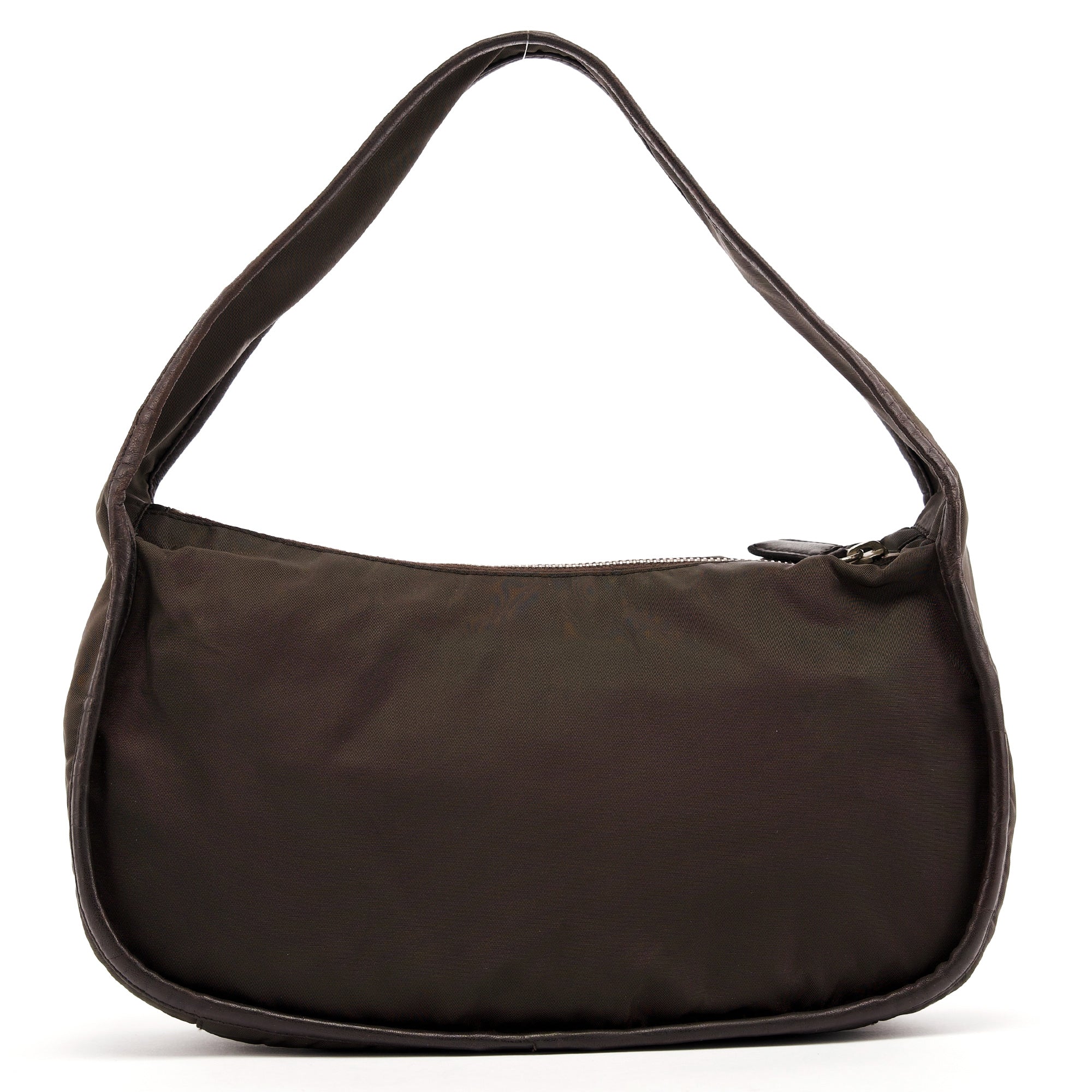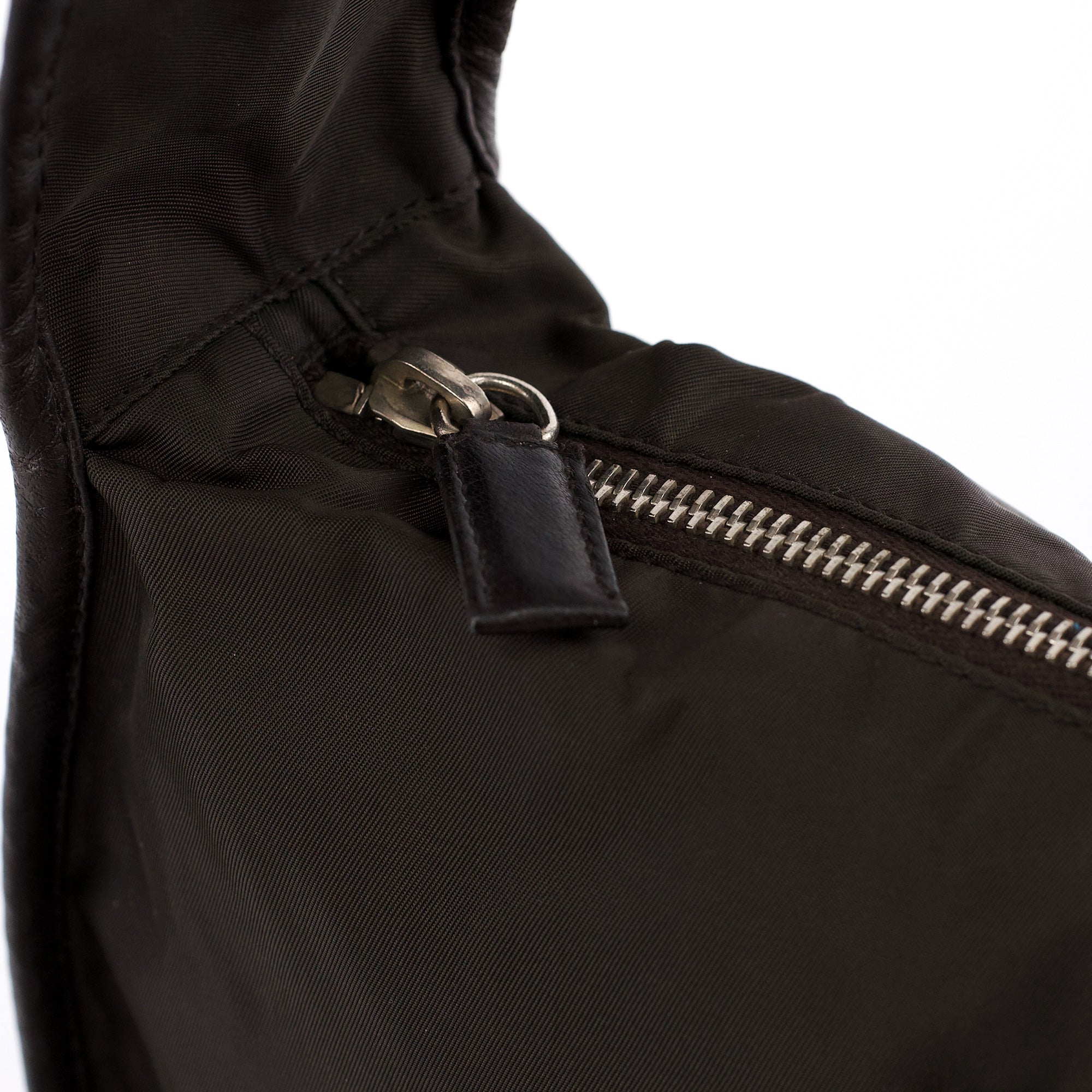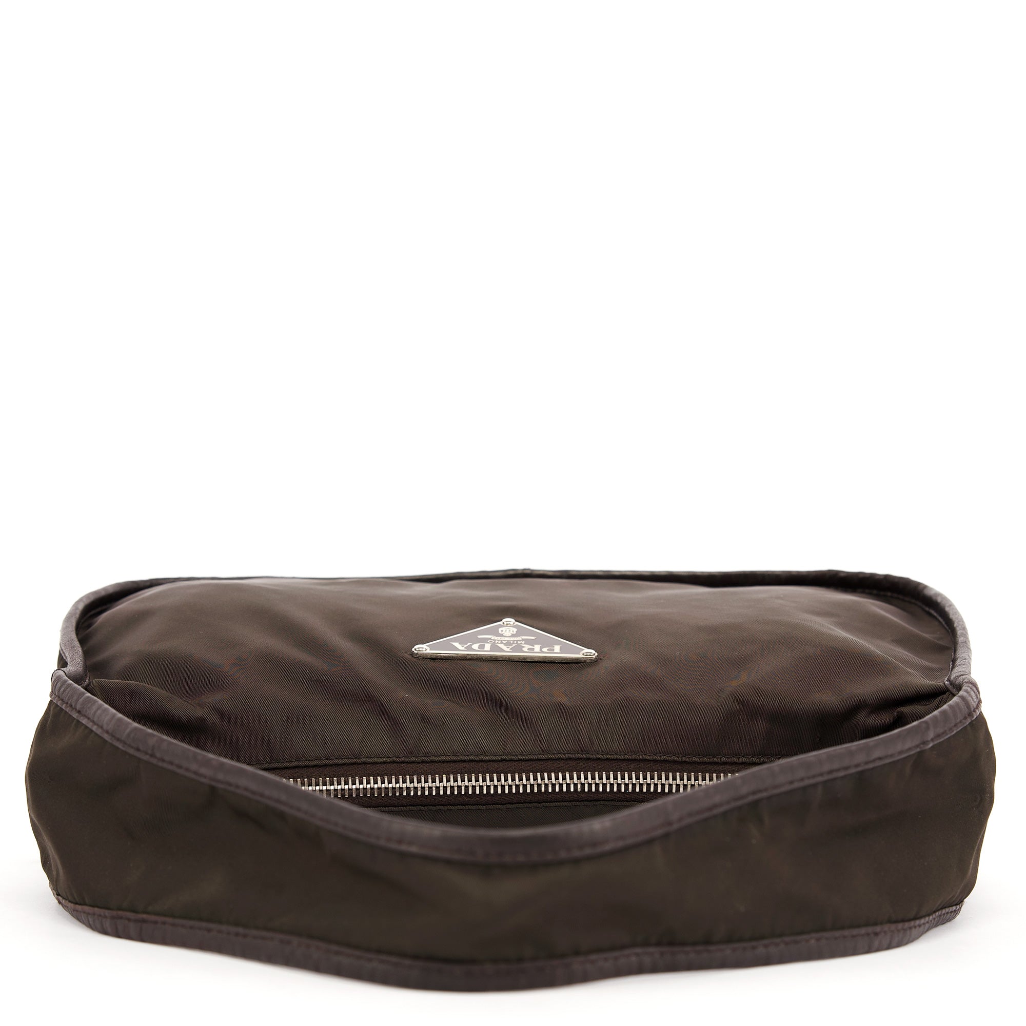 Designed in the early 2000s by Miuccia Prada, this Prada Tessuto Egg shoulder bag is crafted from military green Tessuto nylon with a classic hobo silhouette. It features a soft curved shape with a top zip closure, tonal stitching, and the iconic enamel triangle logo plaque at the front. The slim shoulder strap is made of matching nylon, and the interior is lined in signature logo jacquard with a zip pocket.