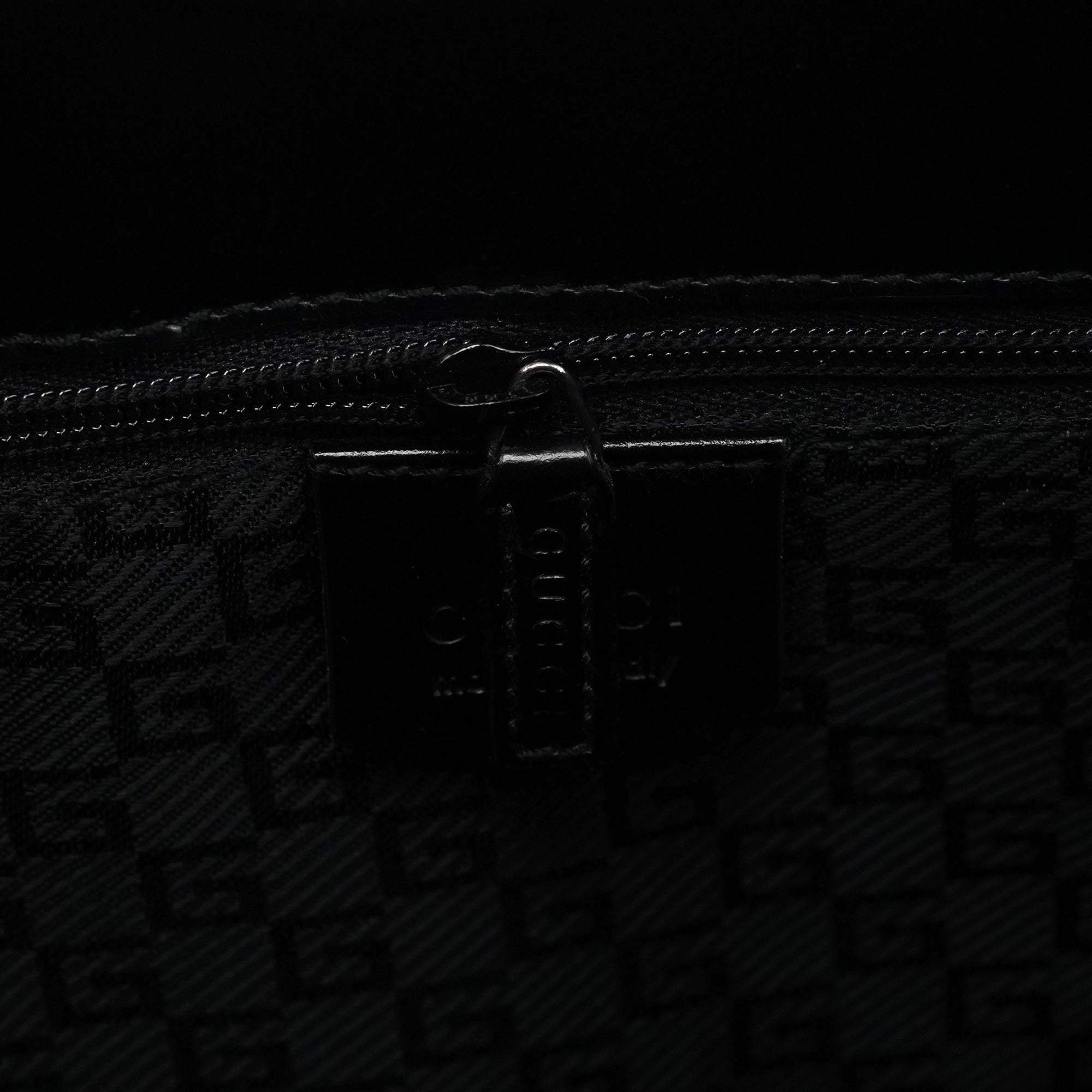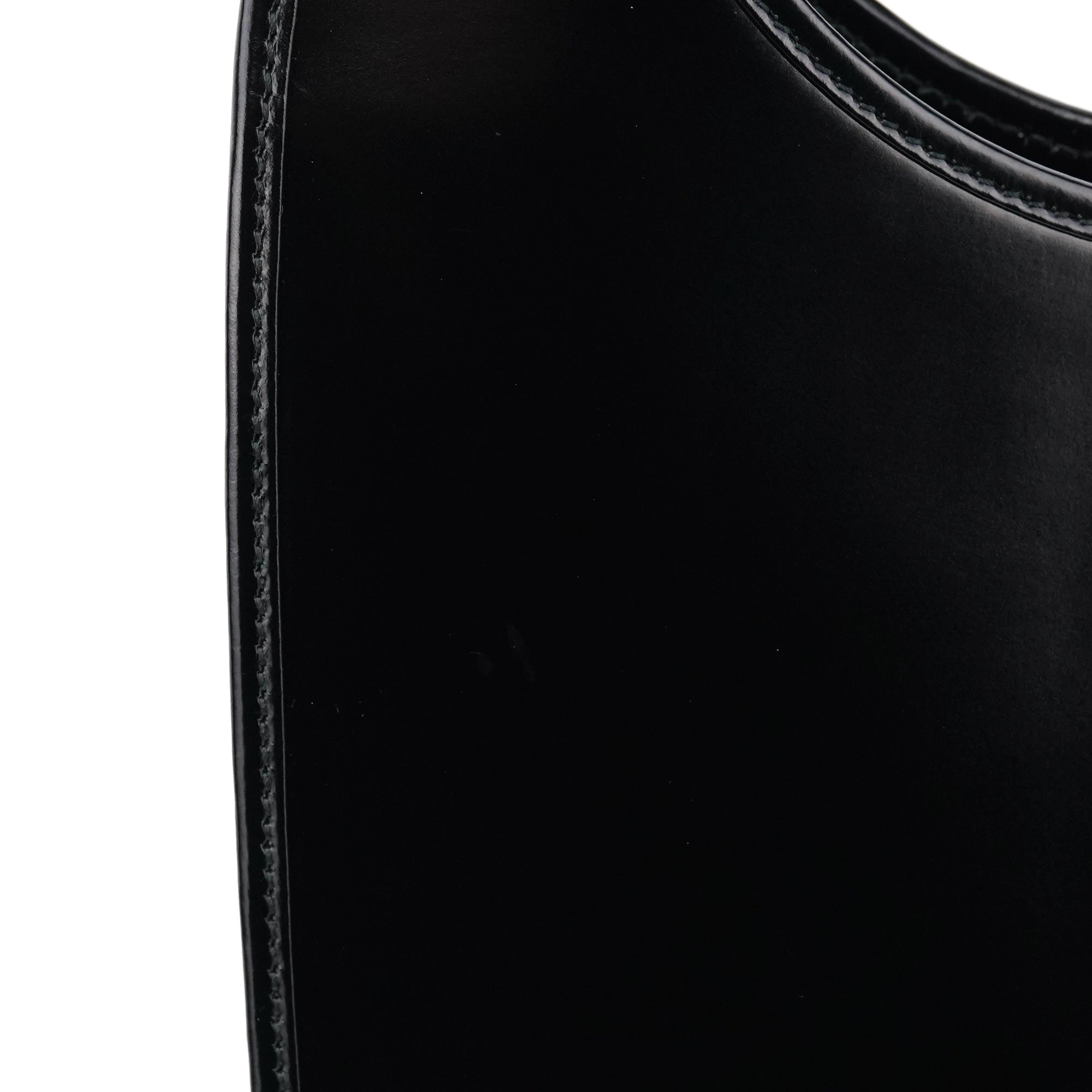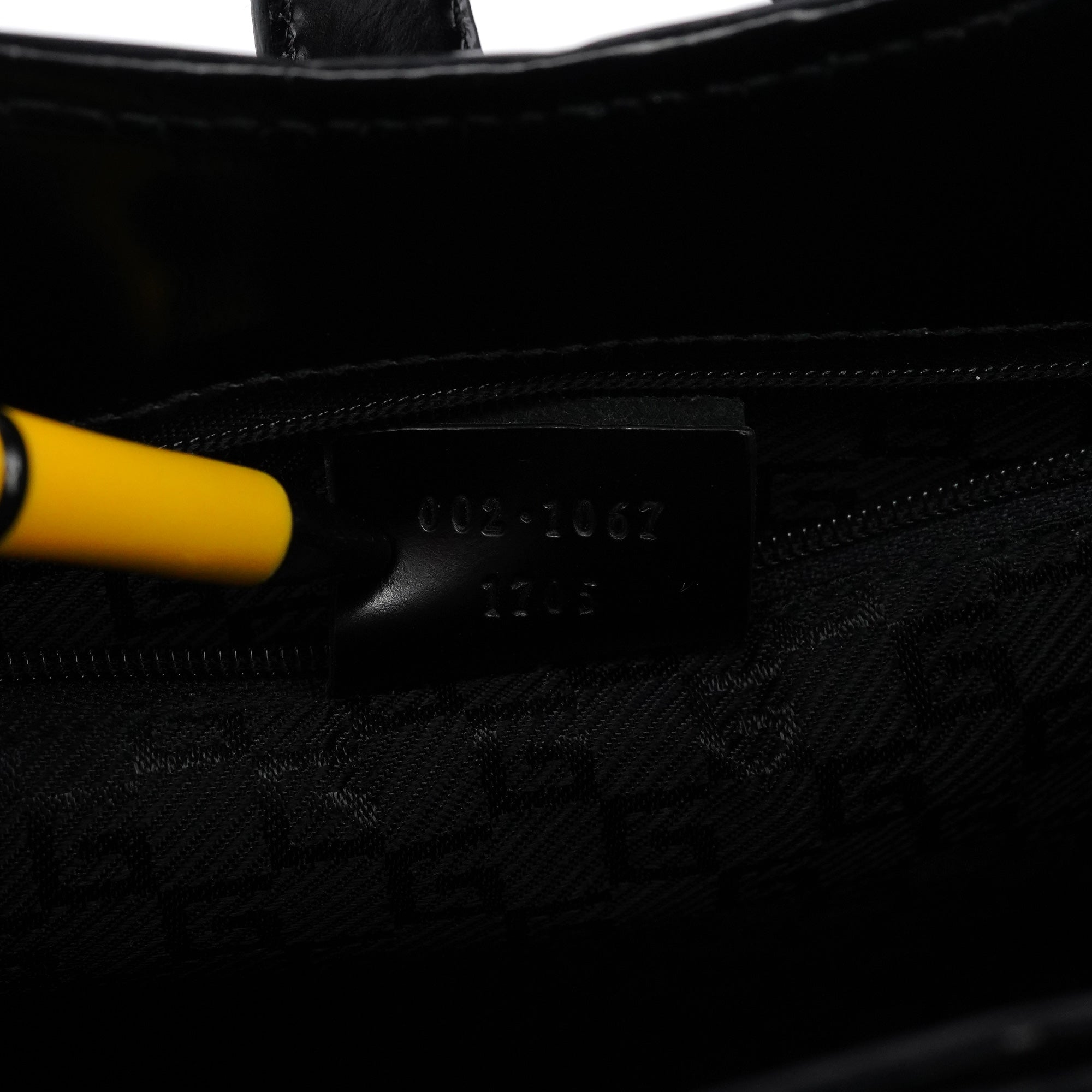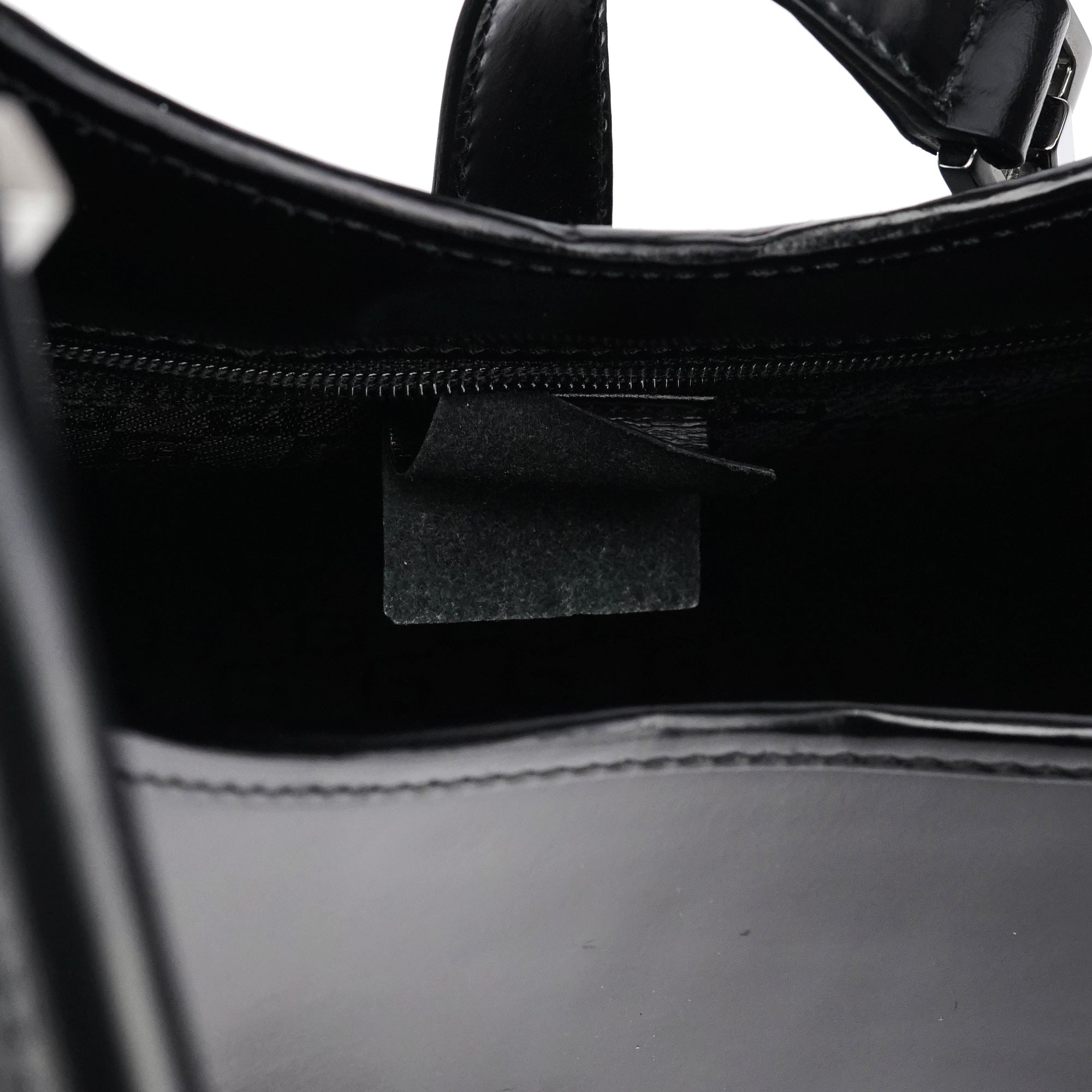 Designed in the late 1990s by Tom Ford, this Gucci Jackie shoulder bag is crafted from glossy black calfskin with a structured silhouette, finished with silver-tone hardware, the iconic piston clasp closure, and a black fabric-lined interior.