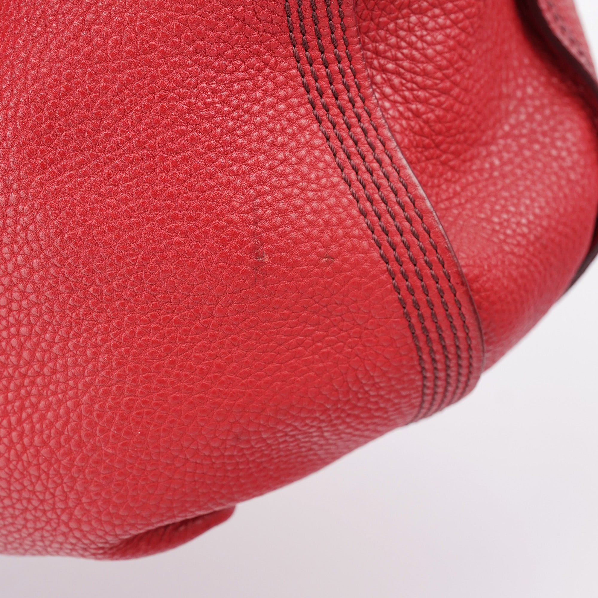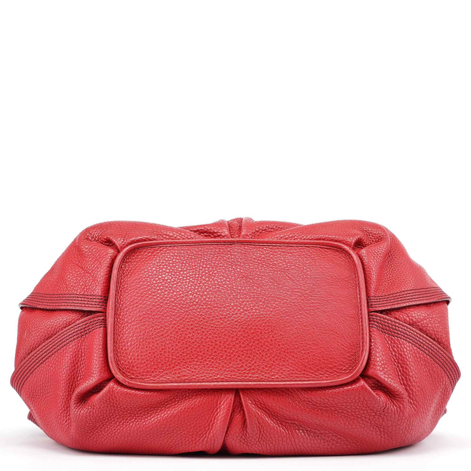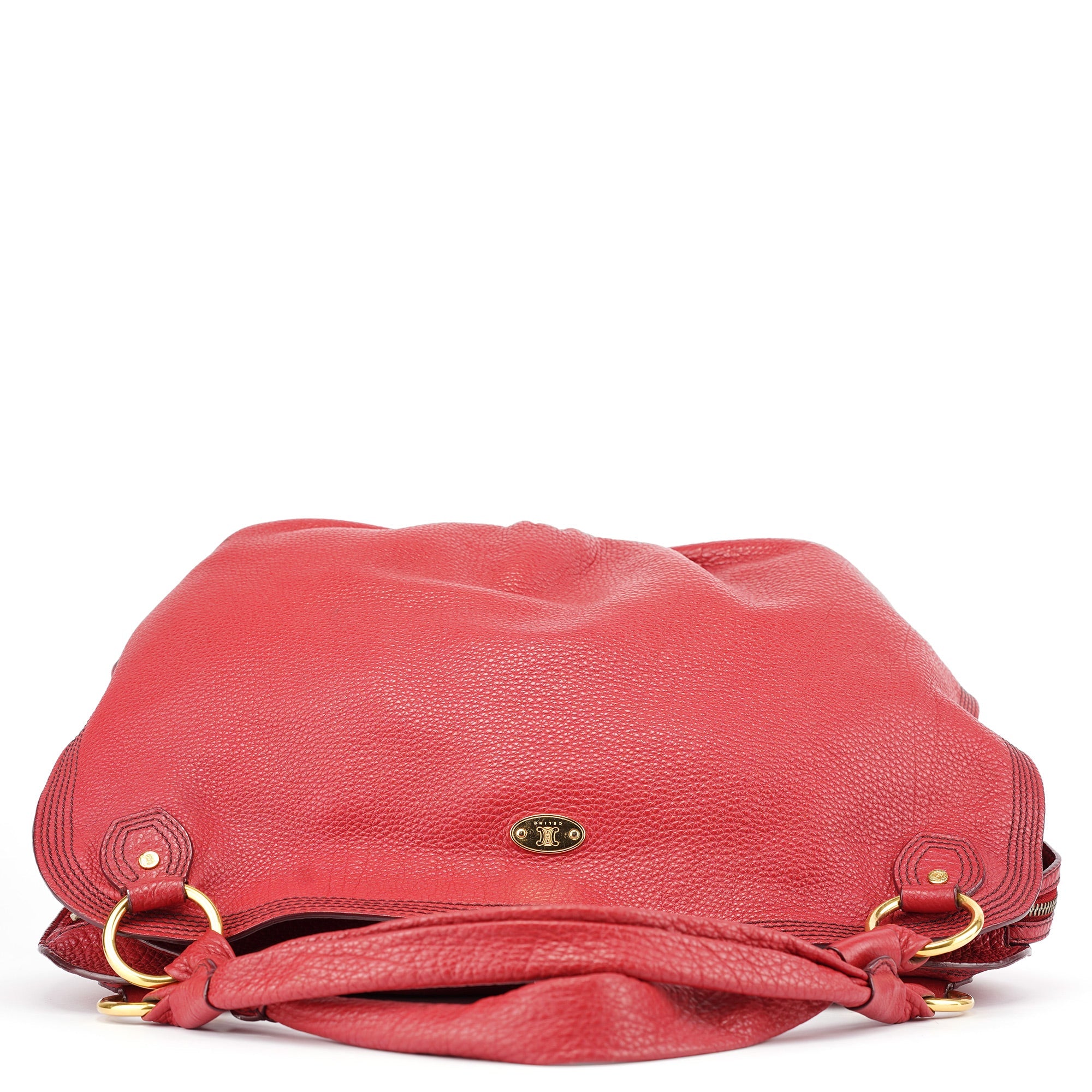 Designed in the early 2000s, the Céline Bittersweet bag is crafted from richly grained burgundy leather with sculptural folds and a top drawstring detail. This large shoulder bag features rolled handles with gold-tone rings, a zip top closure, and a spacious interior lined in monogrammed jacquard with a zip and slip pocket. Bold yet relaxed, it’s a refined example of Celine’s archival bohemian-luxe aesthetic.