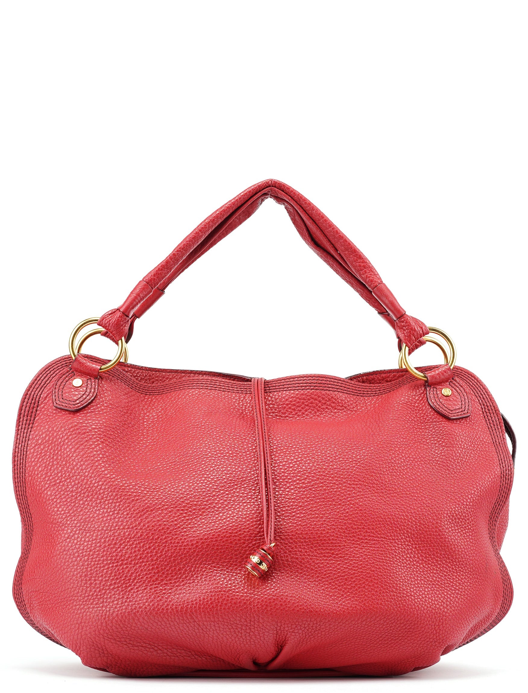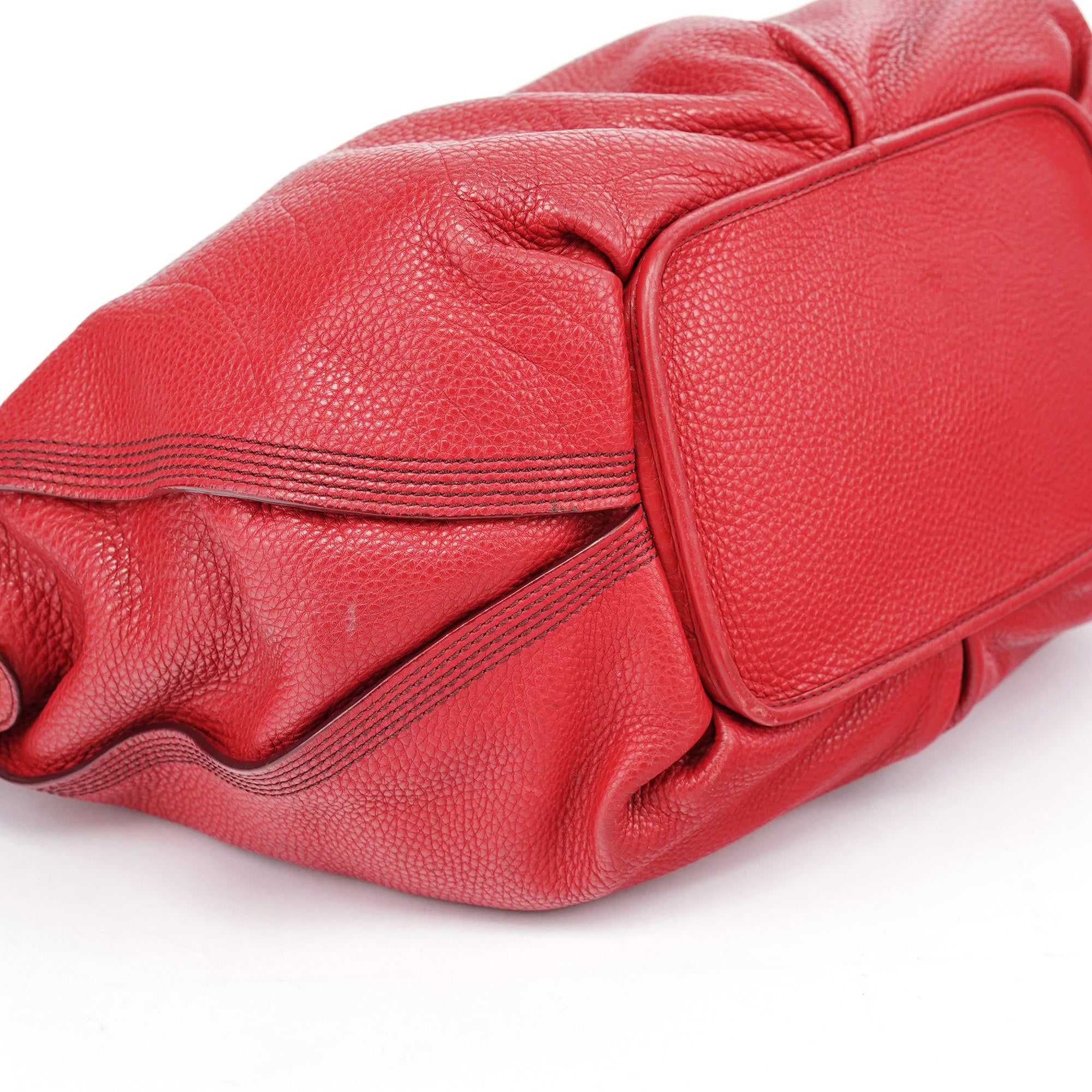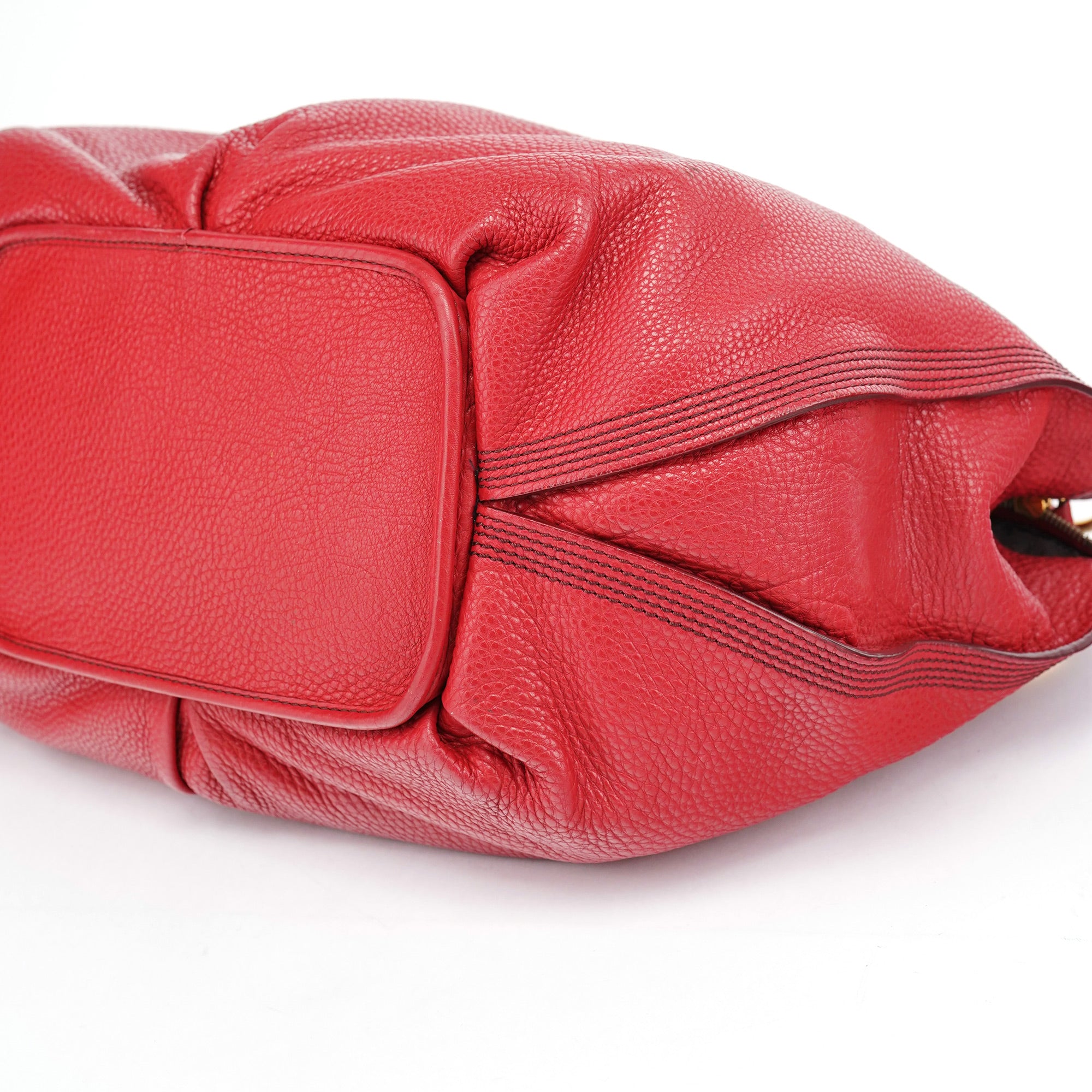 Designed in the early 2000s, the Céline Bittersweet bag is crafted from richly grained burgundy leather with sculptural folds and a top drawstring detail. This large shoulder bag features rolled handles with gold-tone rings, a zip top closure, and a spacious interior lined in monogrammed jacquard with a zip and slip pocket. Bold yet relaxed, it’s a refined example of Celine’s archival bohemian-luxe aesthetic.