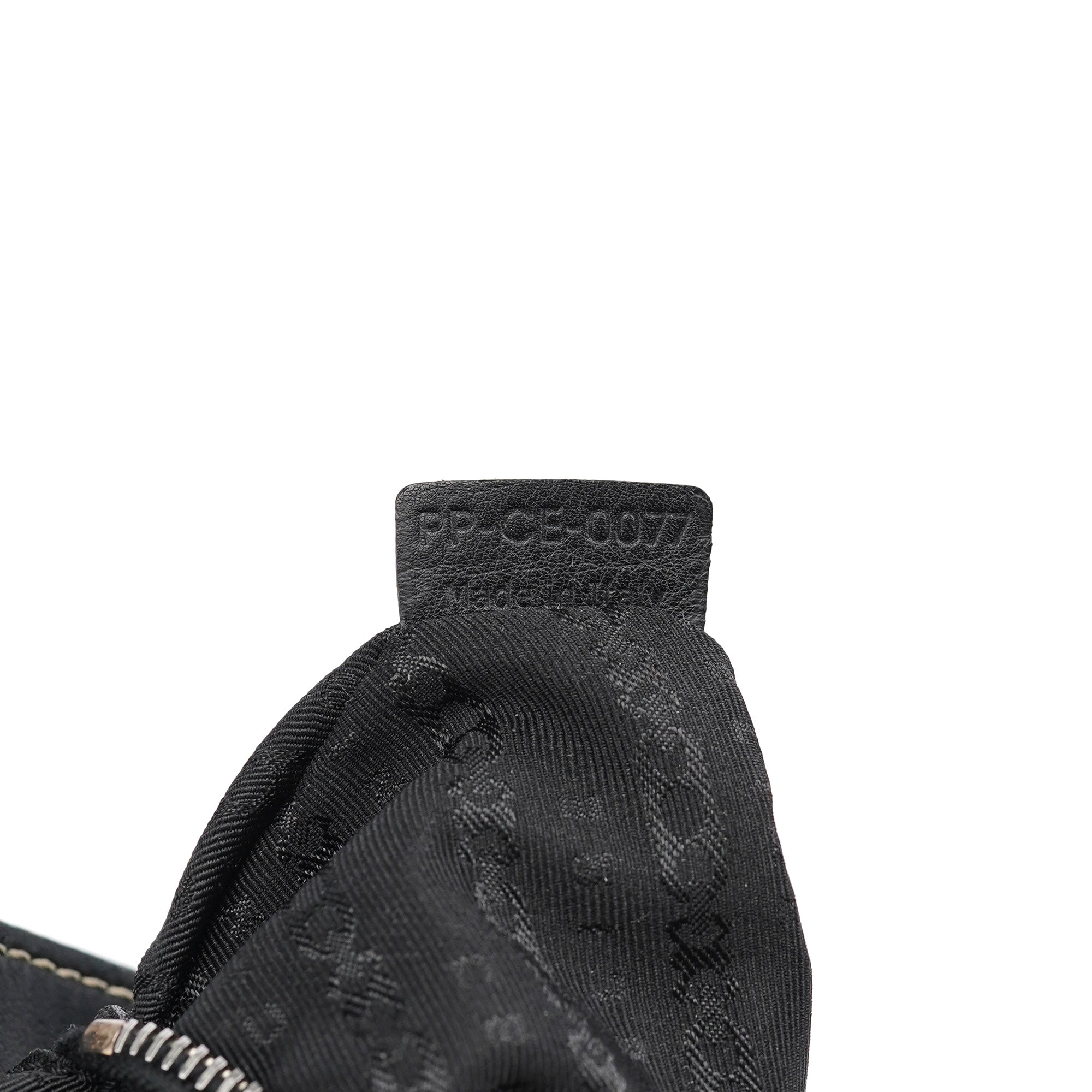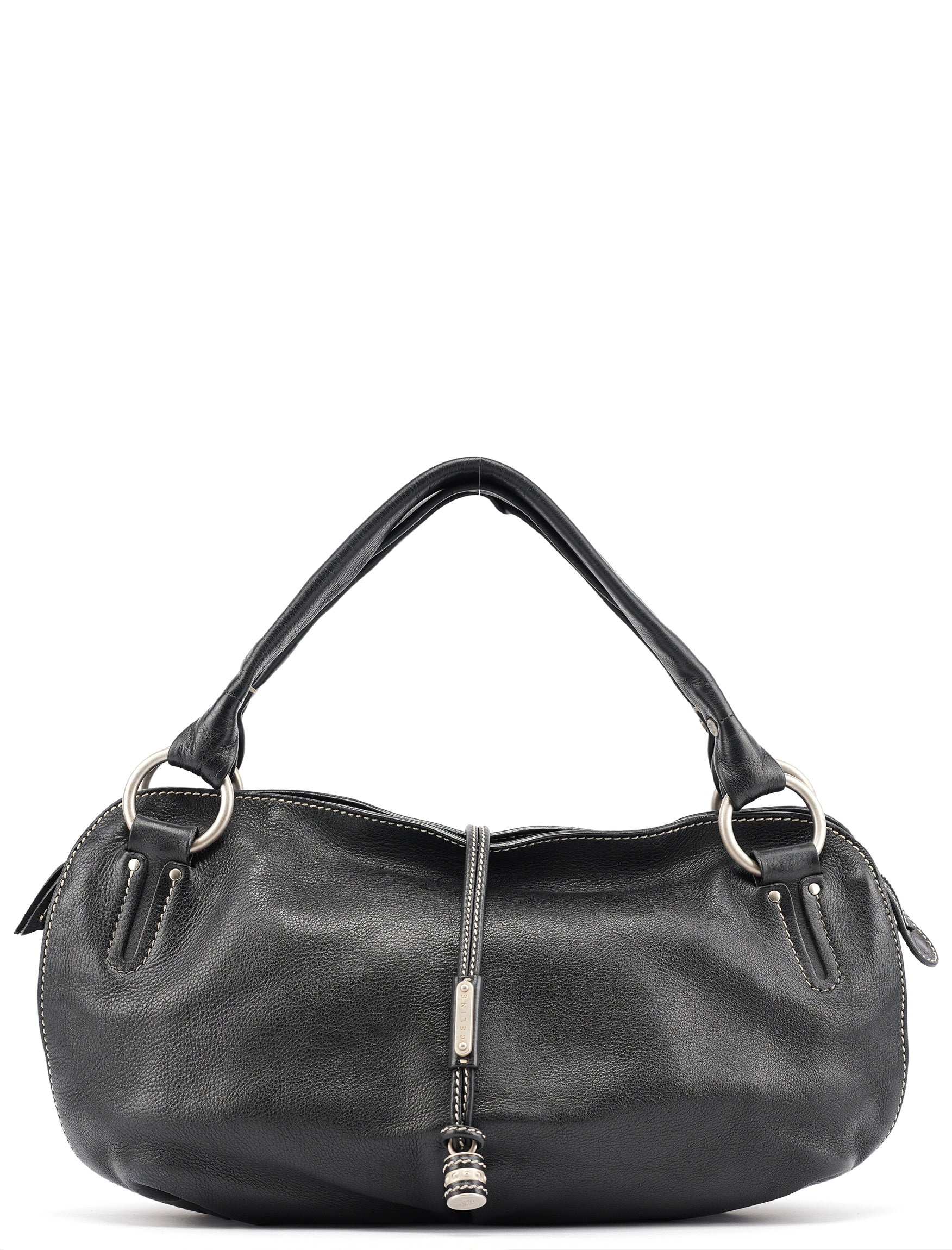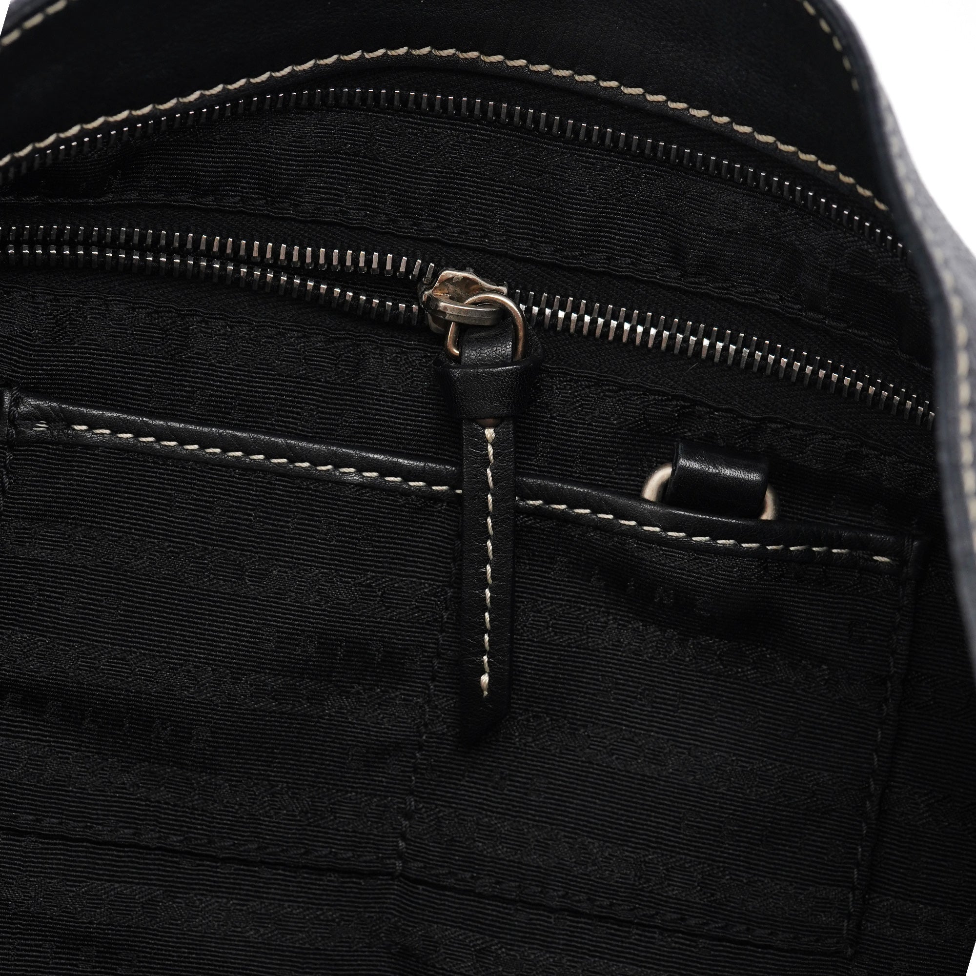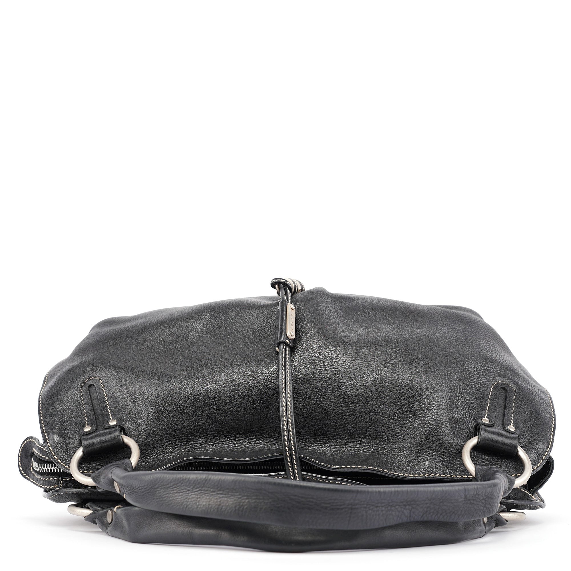 Designed in the early 2000s, this vintage Céline Bittersweet shoulder bag is crafted from supple black grained leather with contrast white topstitching. The sculptural silhouette features signature gathered pleats, complemented by silver-tone hardware and zip closure with a spacious multi-pocket interior.