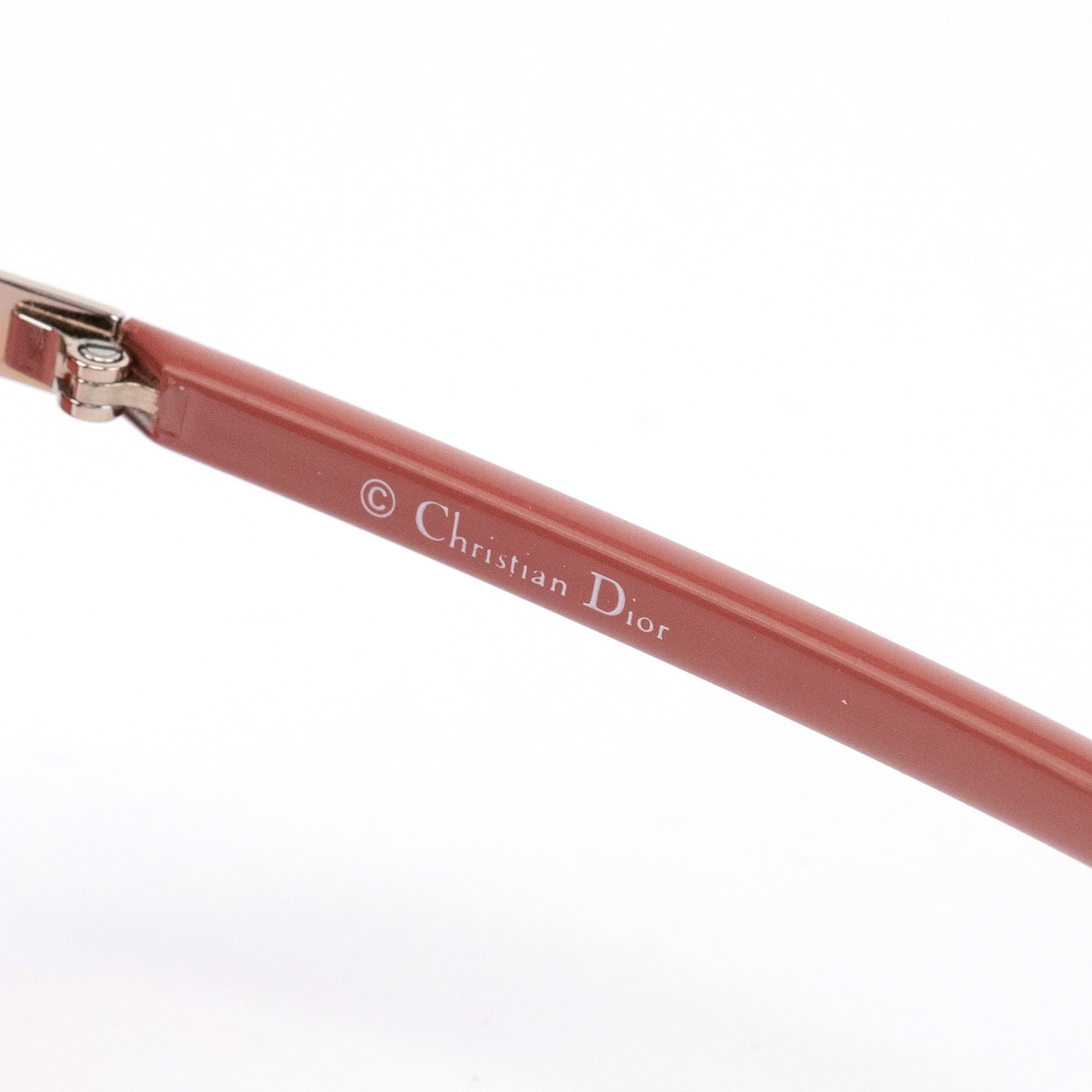 Designed in the early 2000s by John Galliano, these Christian Dior shield sunglasses capture the era’s bold, futuristic aesthetic. The single wraparound lens features a rose gradient tint framed by pale gold-tone hardware and matching red arms. Discreet Dior branding is engraved at the bridge and temples, with a minimalist nose pad and hinge construction completing the streamlined silhouette.