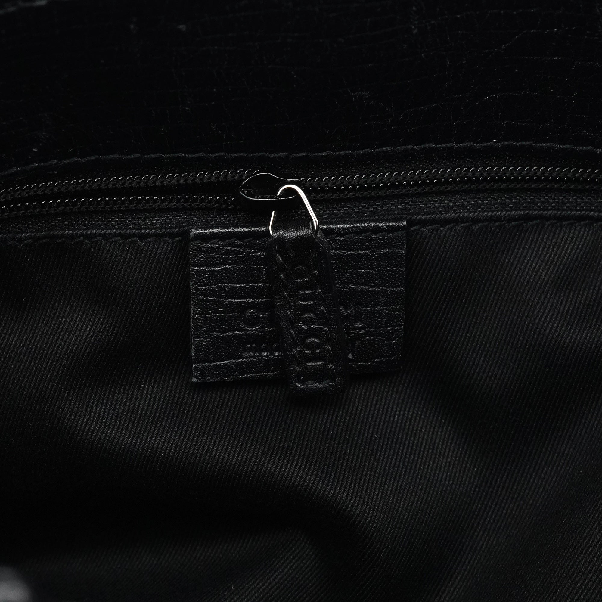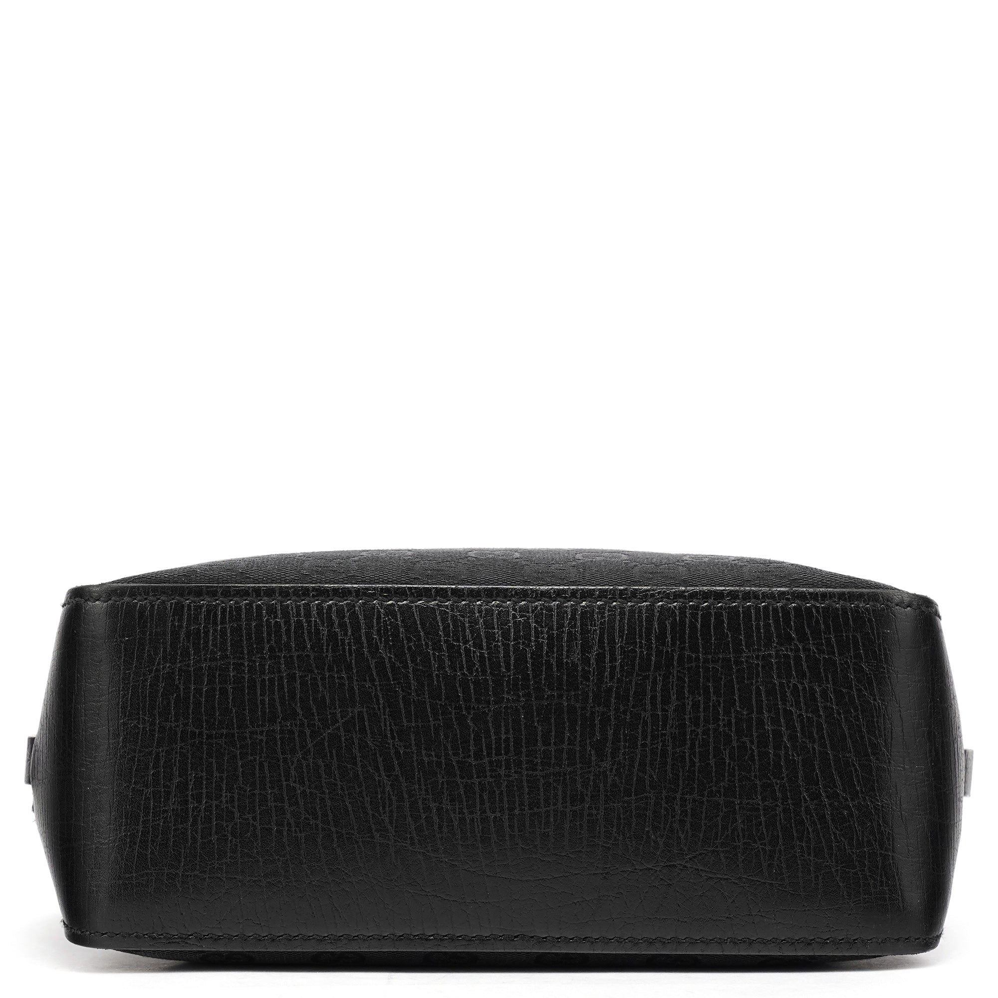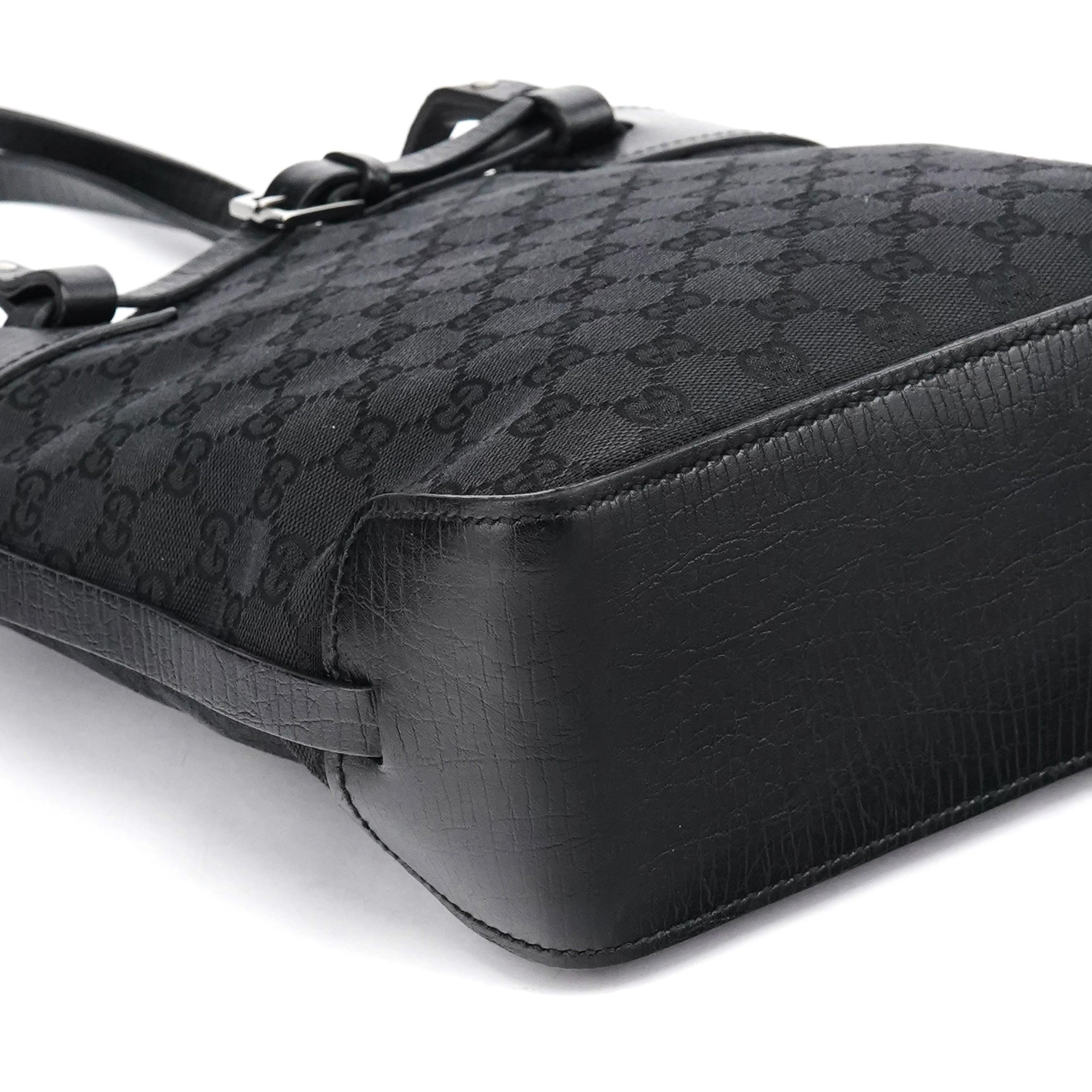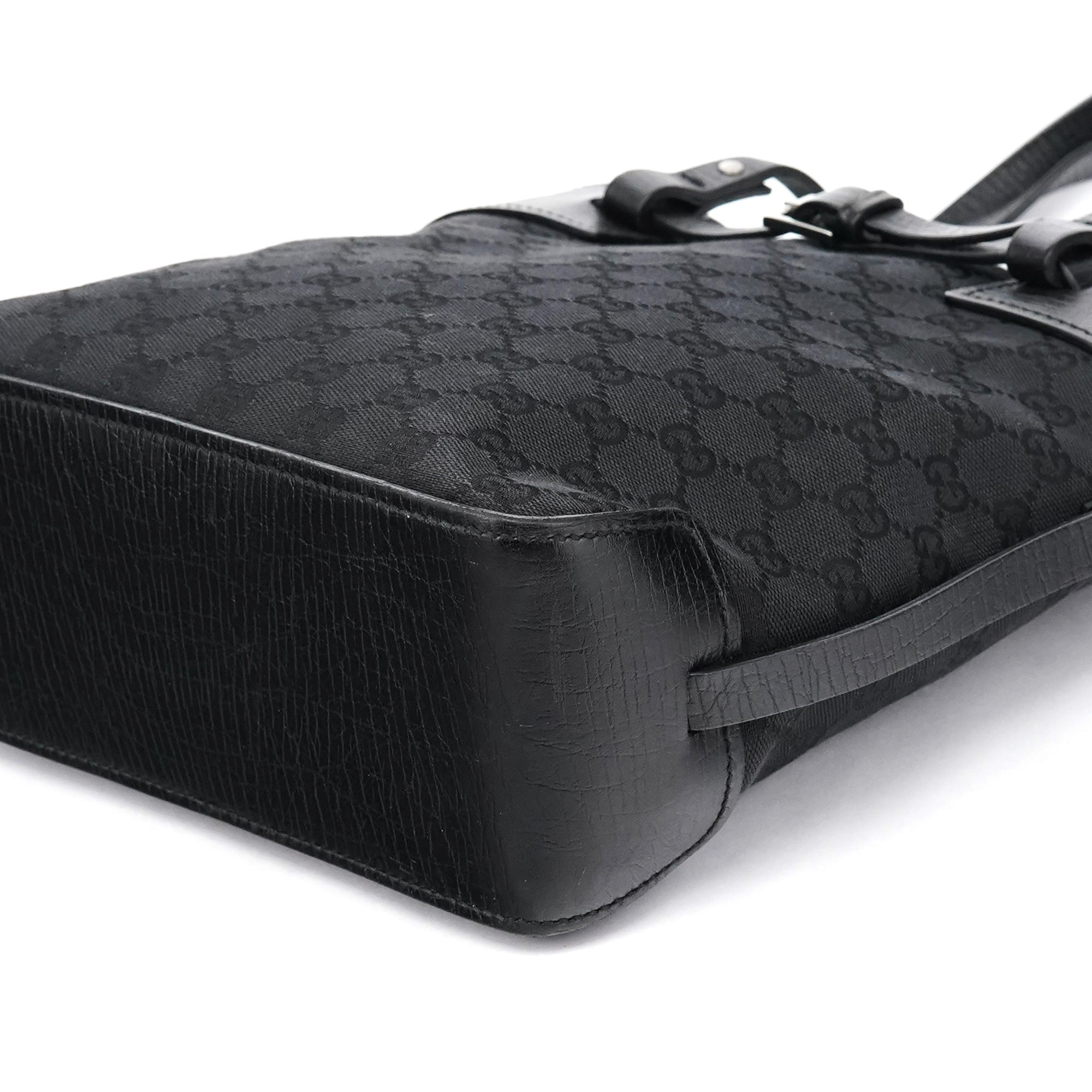 Designed in the early 2000s by Tom Ford, this Gucci GG tote bag is crafted in black monogram canvas with textured black leather trim. The structured silhouette is accented with a slim belt detail, dual top handles, and a detachable shoulder strap. The interior offers practical storage with a zip pocket for daily essentials.