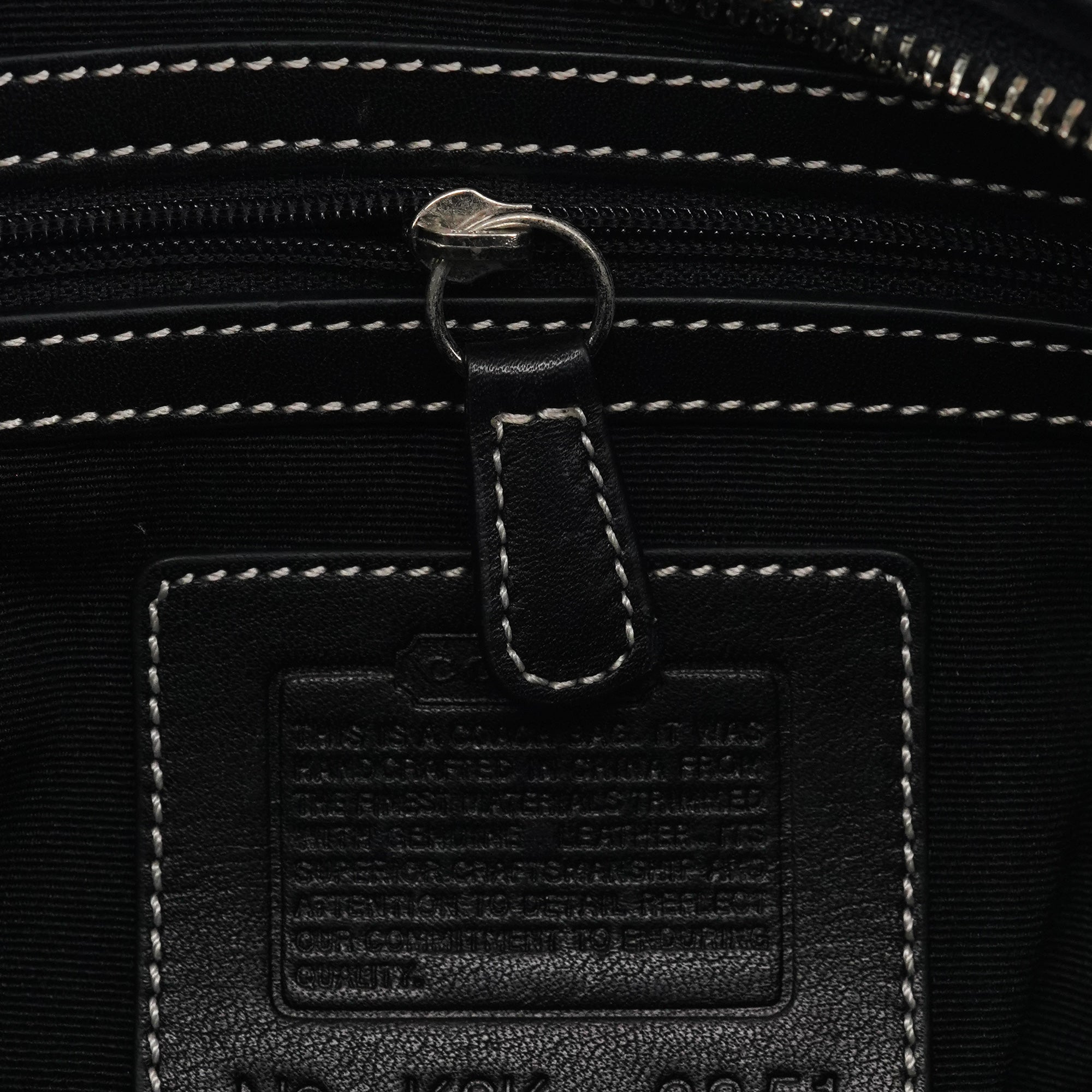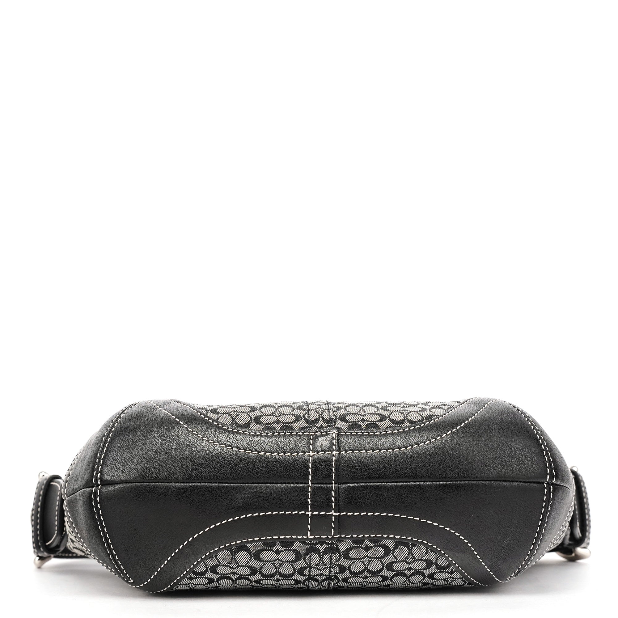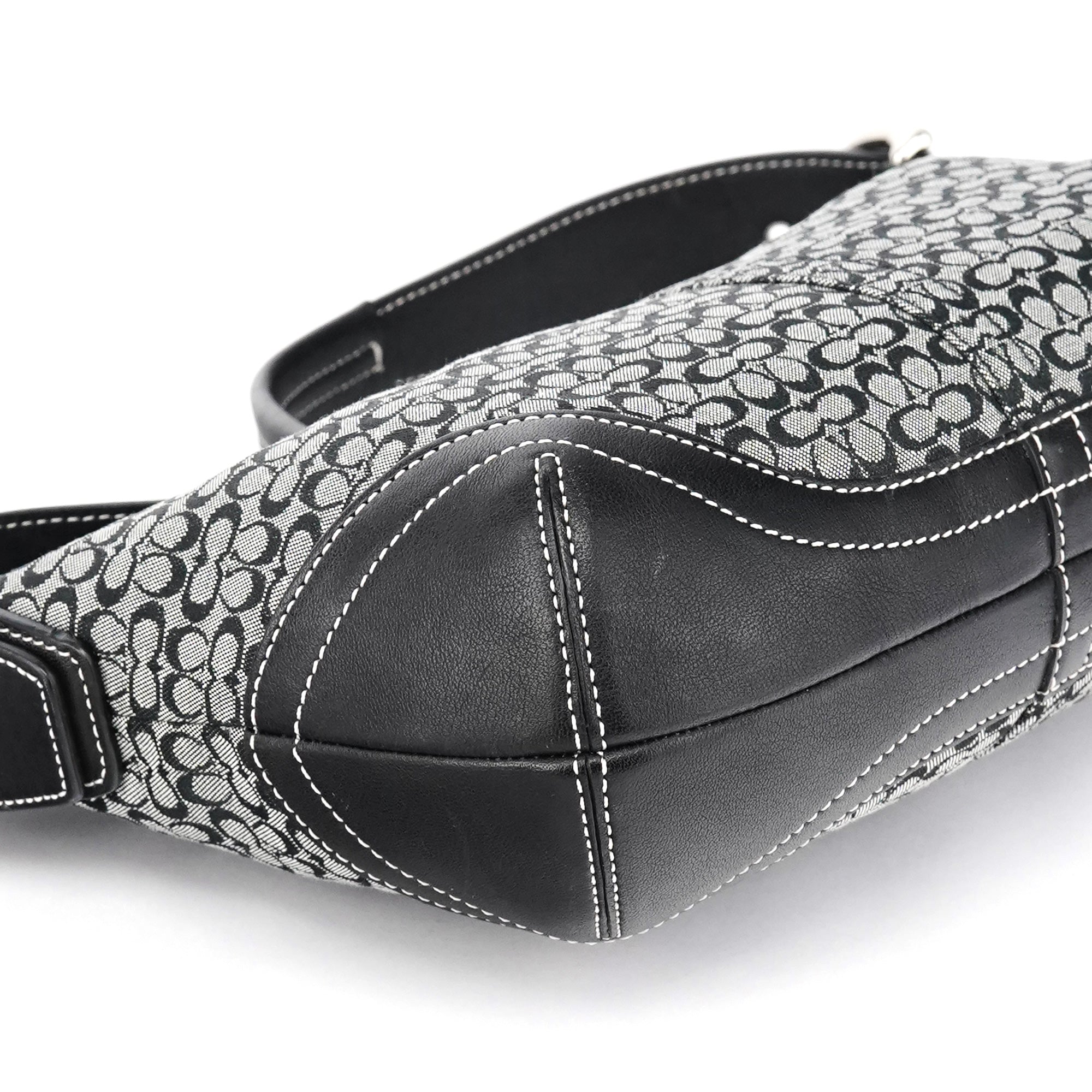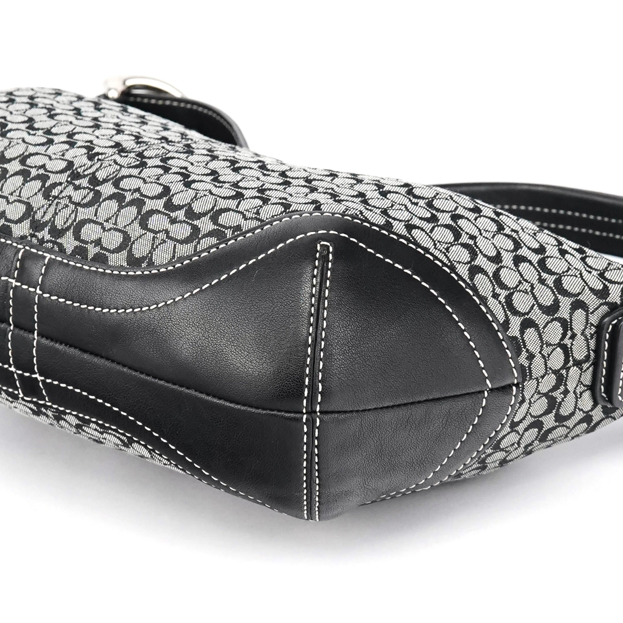 Designed in the early 2000s, this Coach Signature C shoulder bag is crafted in grey monogram canvas with smooth black leather trim. A compact silhouette with a zip-top closure, it pairs the brand’s classic aesthetic with everyday versatility.