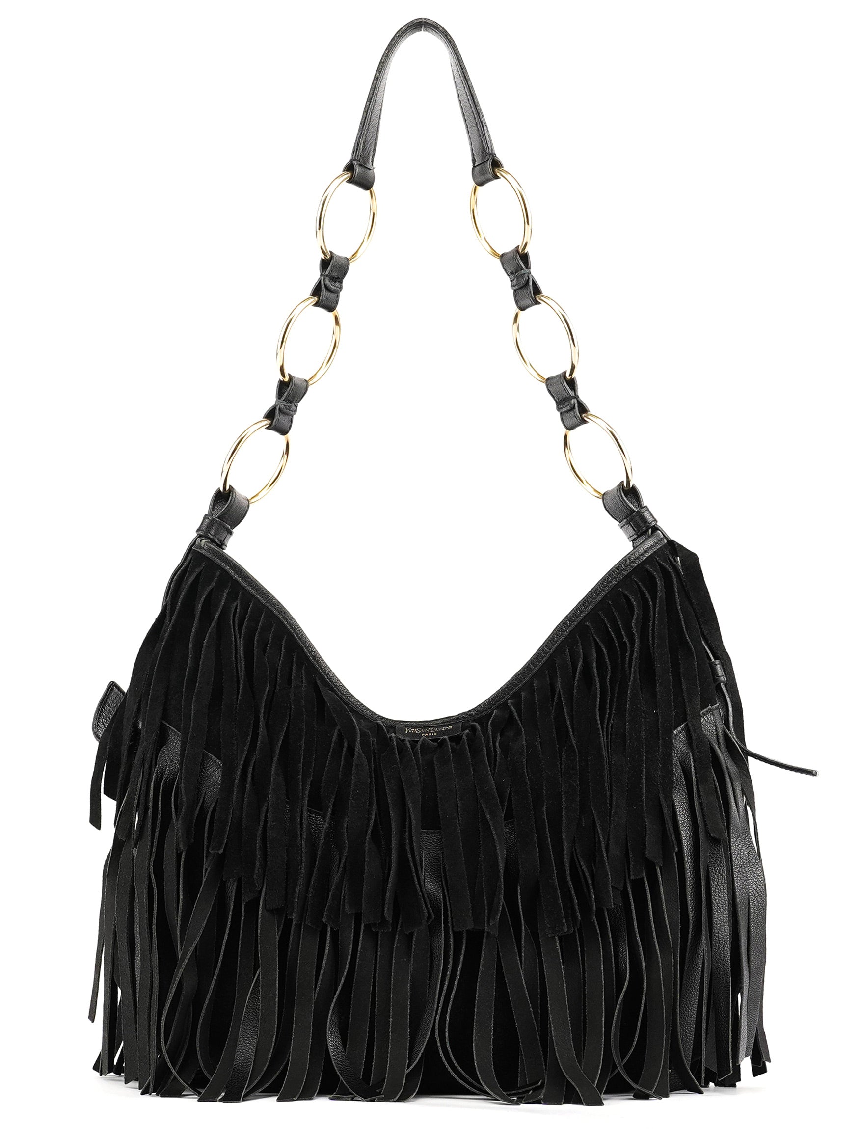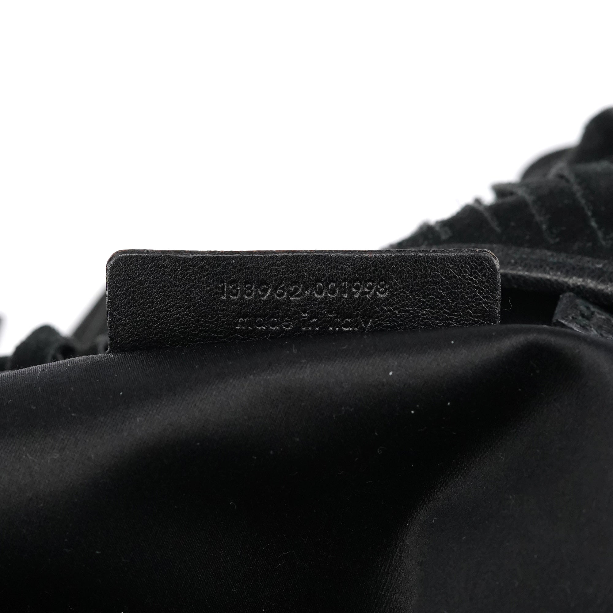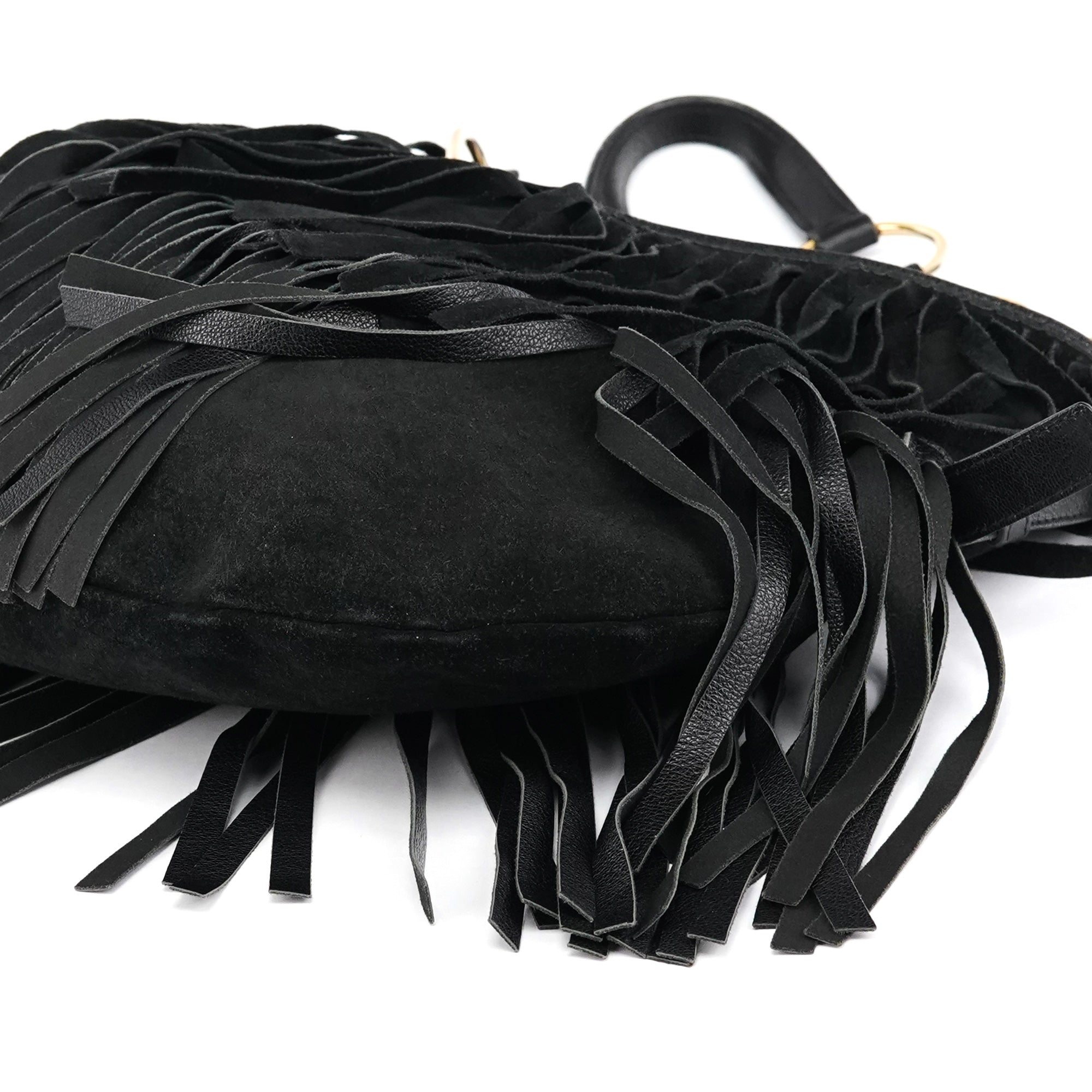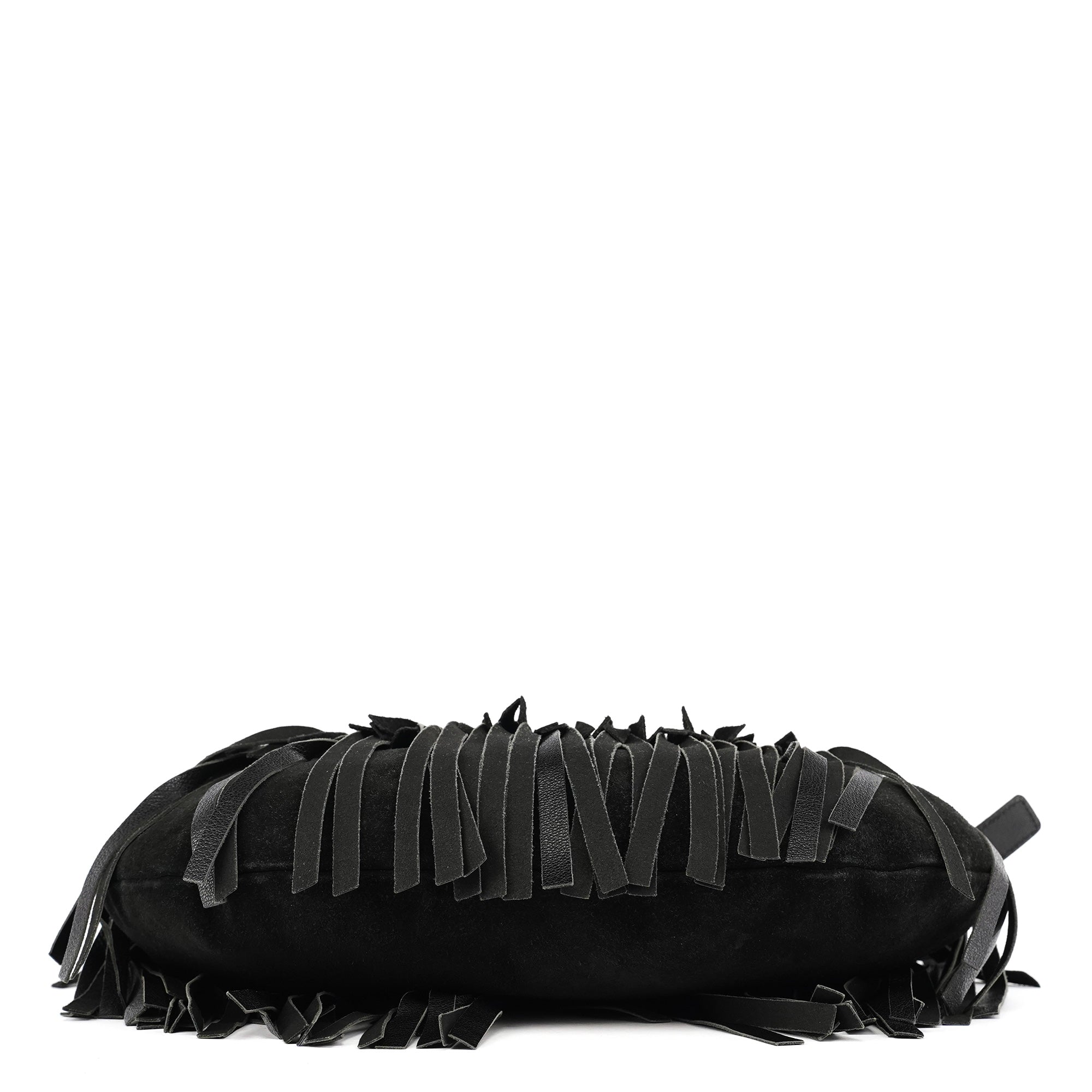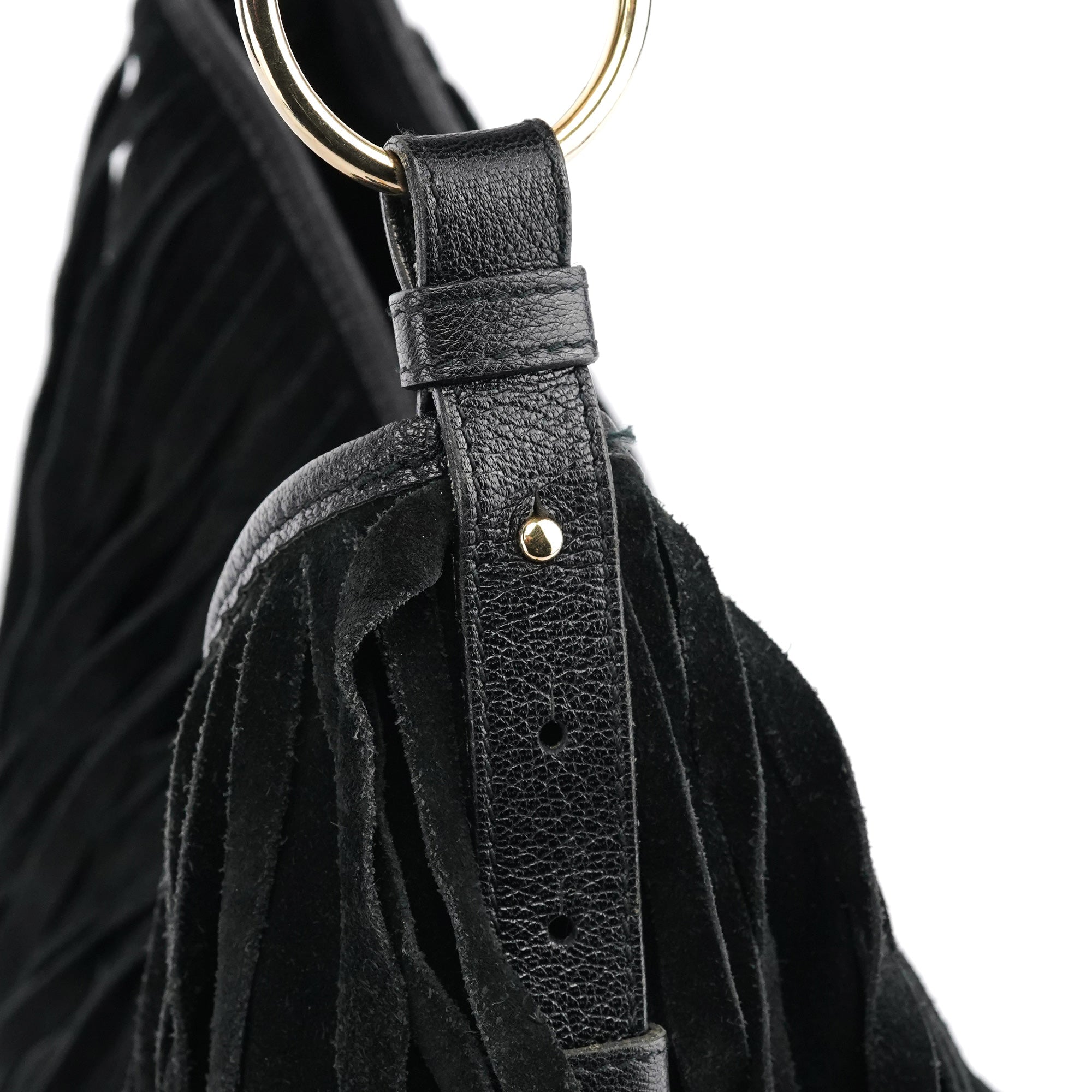 138962 Black Suede Leather Boheme Fringe Shoulder Bag