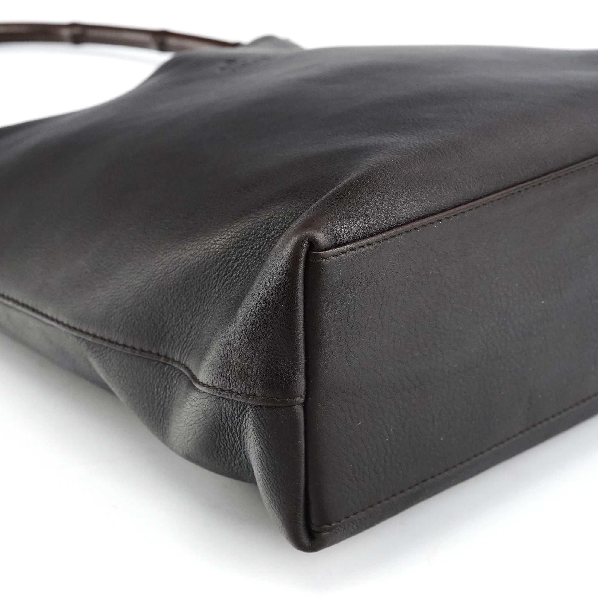 001 3244 Brown Calfskin Bamboo Shoulder Bag