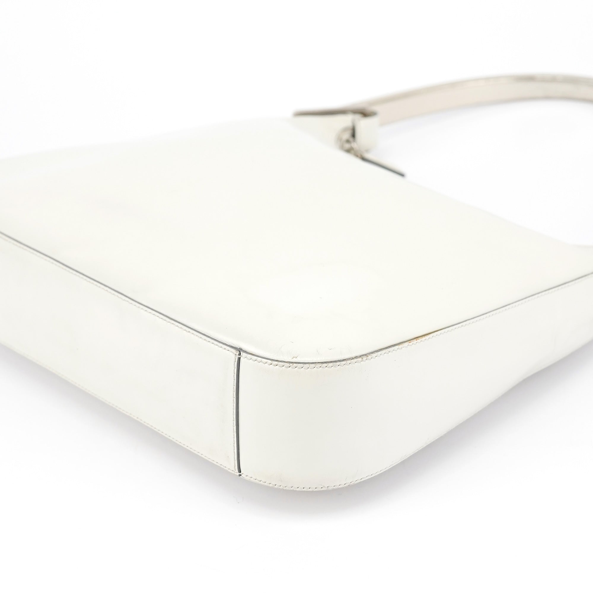 1998 White Vitello Metal Campaign Shoulder Bag