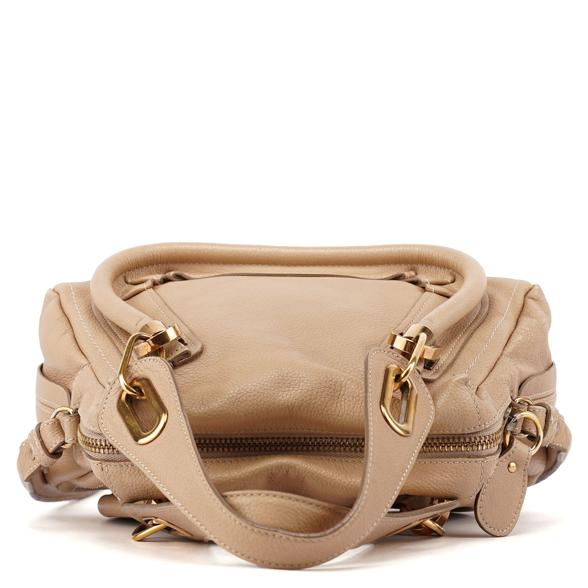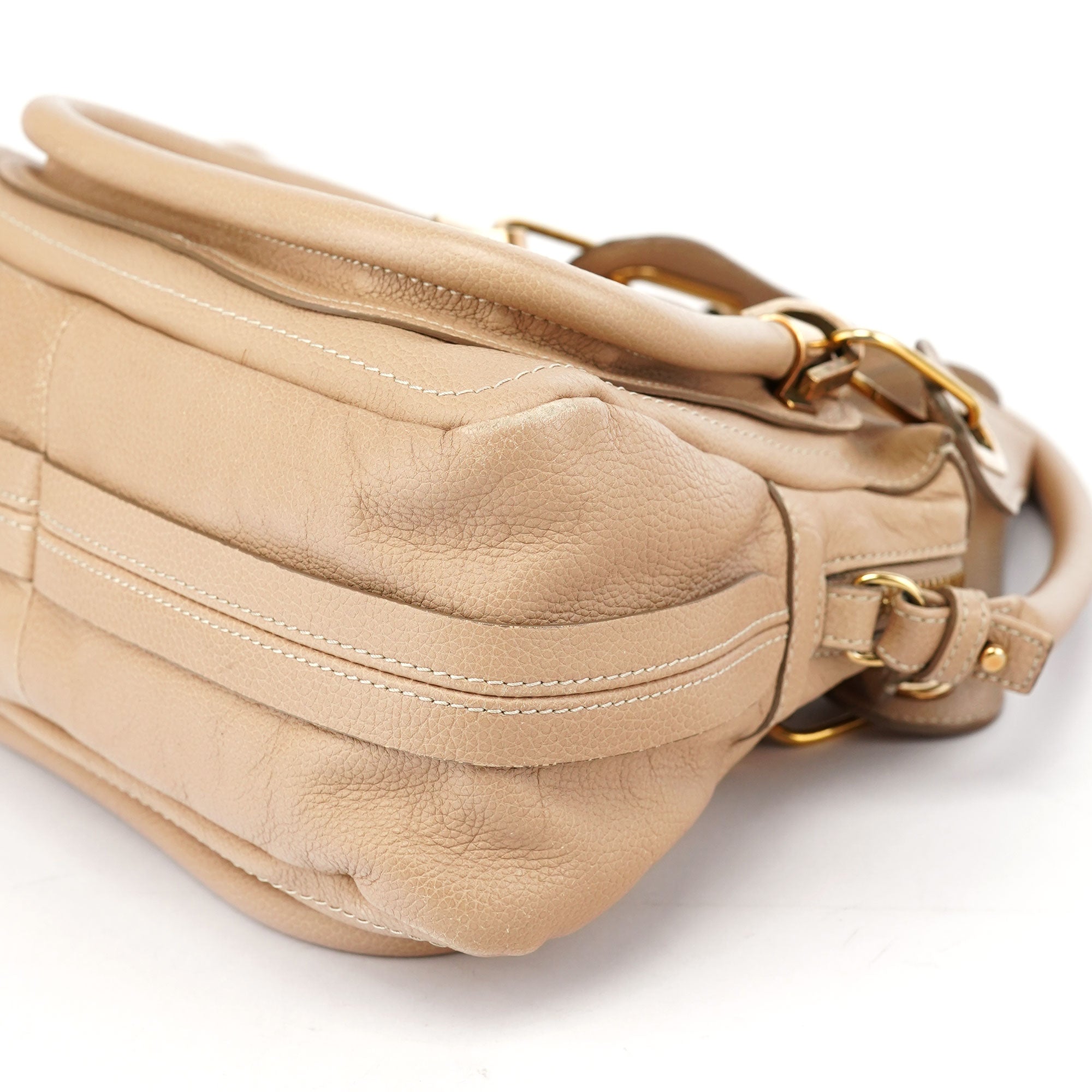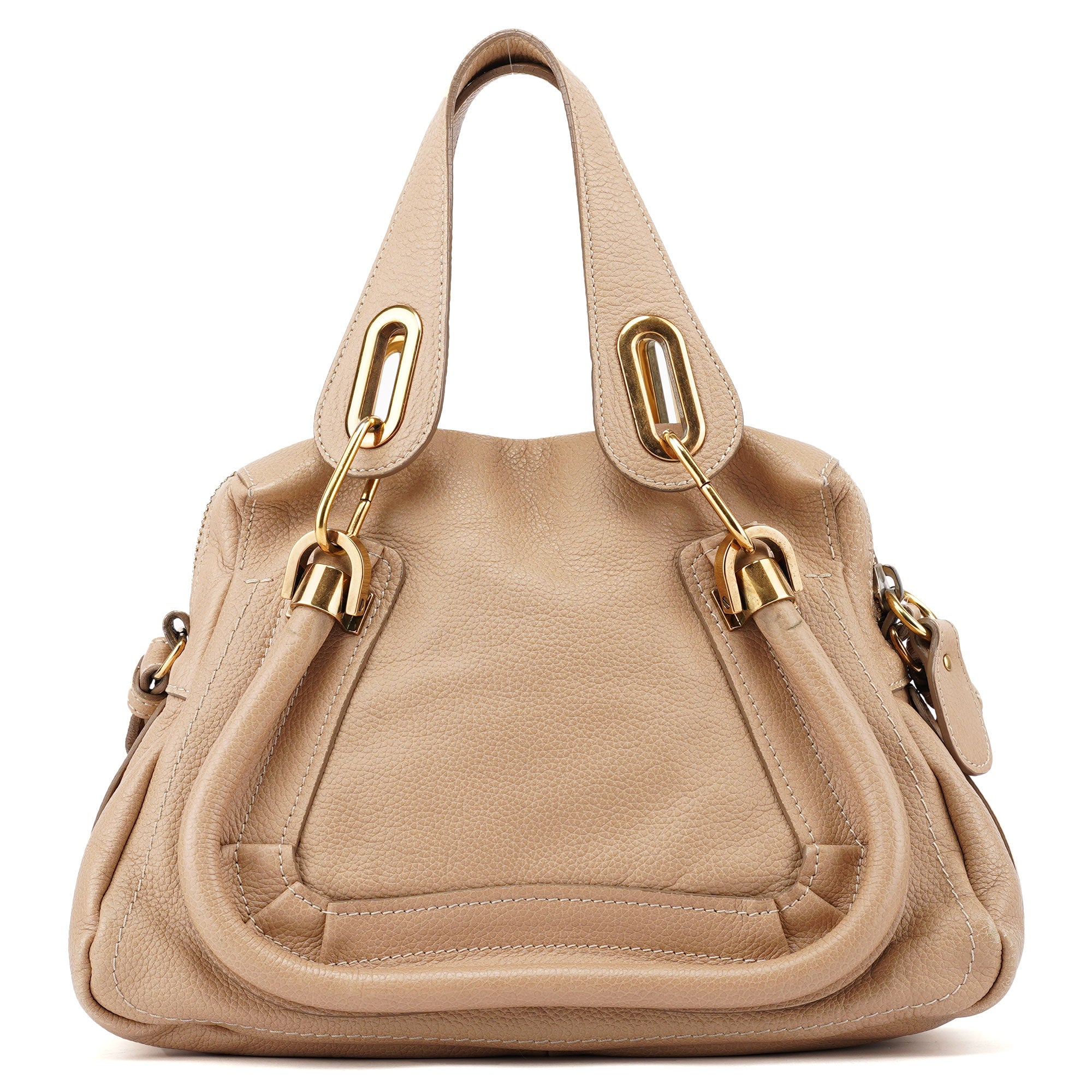 Designed by Hannah MacGibbon in 2008, the Chloé Paraty bag became an instant classic with its triangular structure, soft leather, and signature piped edges. Featuring brass-tone hardware, rolled leather handles, and a detachable shoulder strap, it balances style with functionality. A spacious, zippered interior completes this timeless design, embodying Chloé's refined, bohemian elegance.