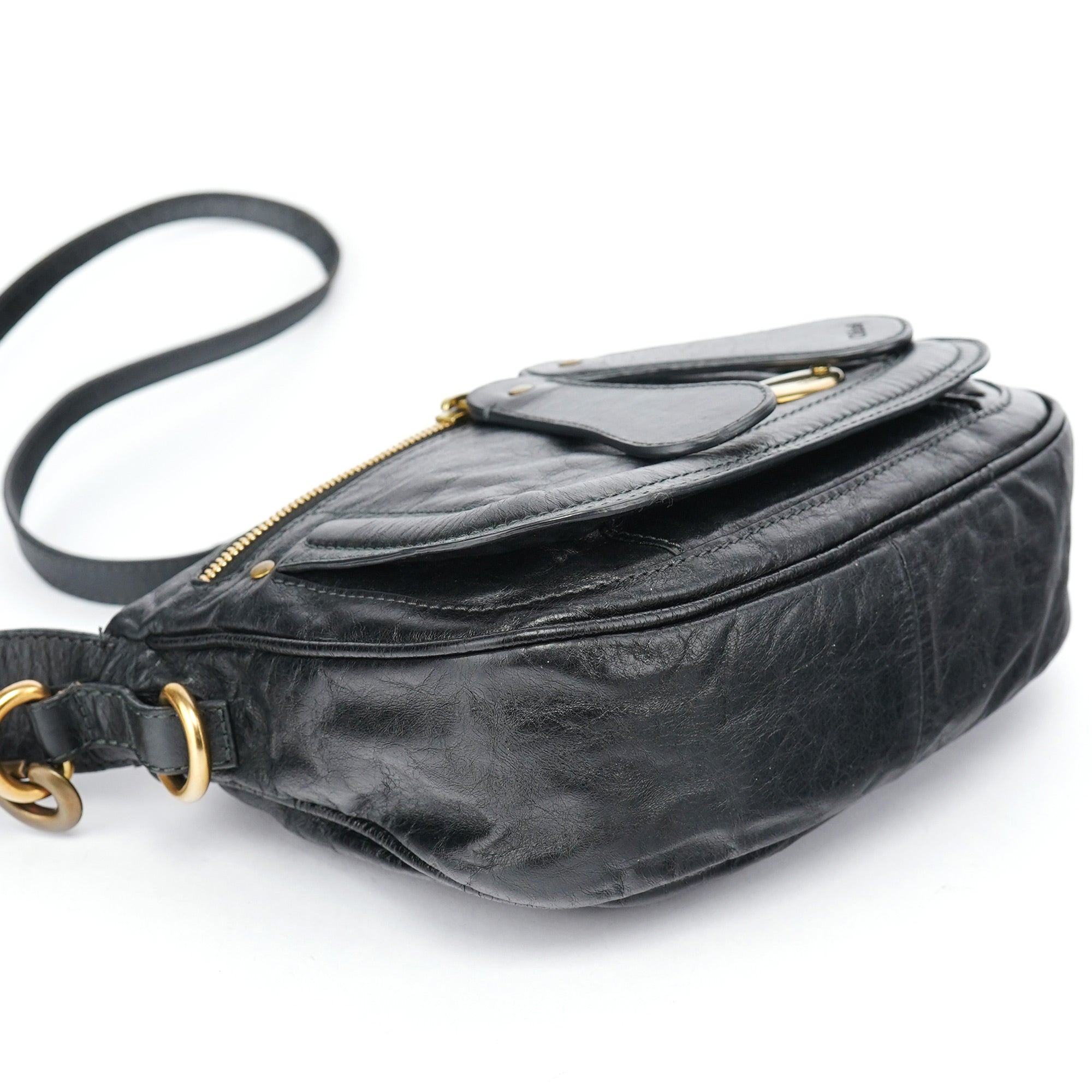 Black Lambskin Bay Crossbody Bag