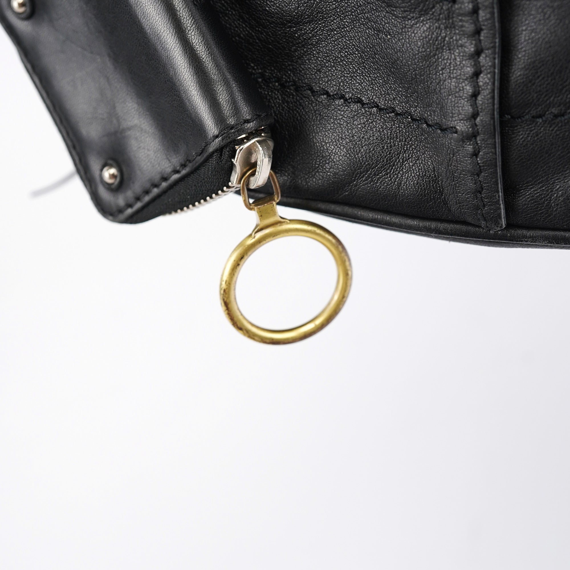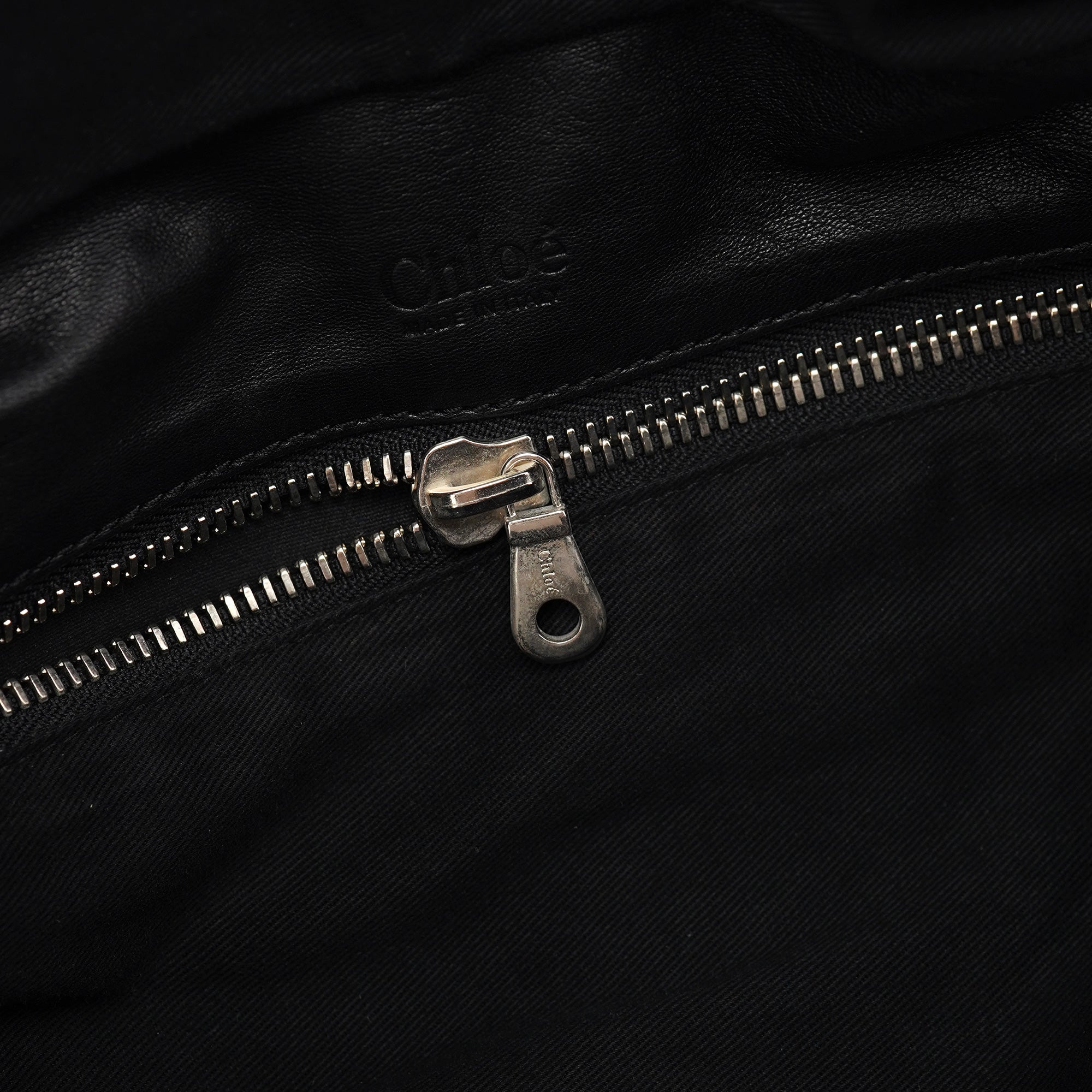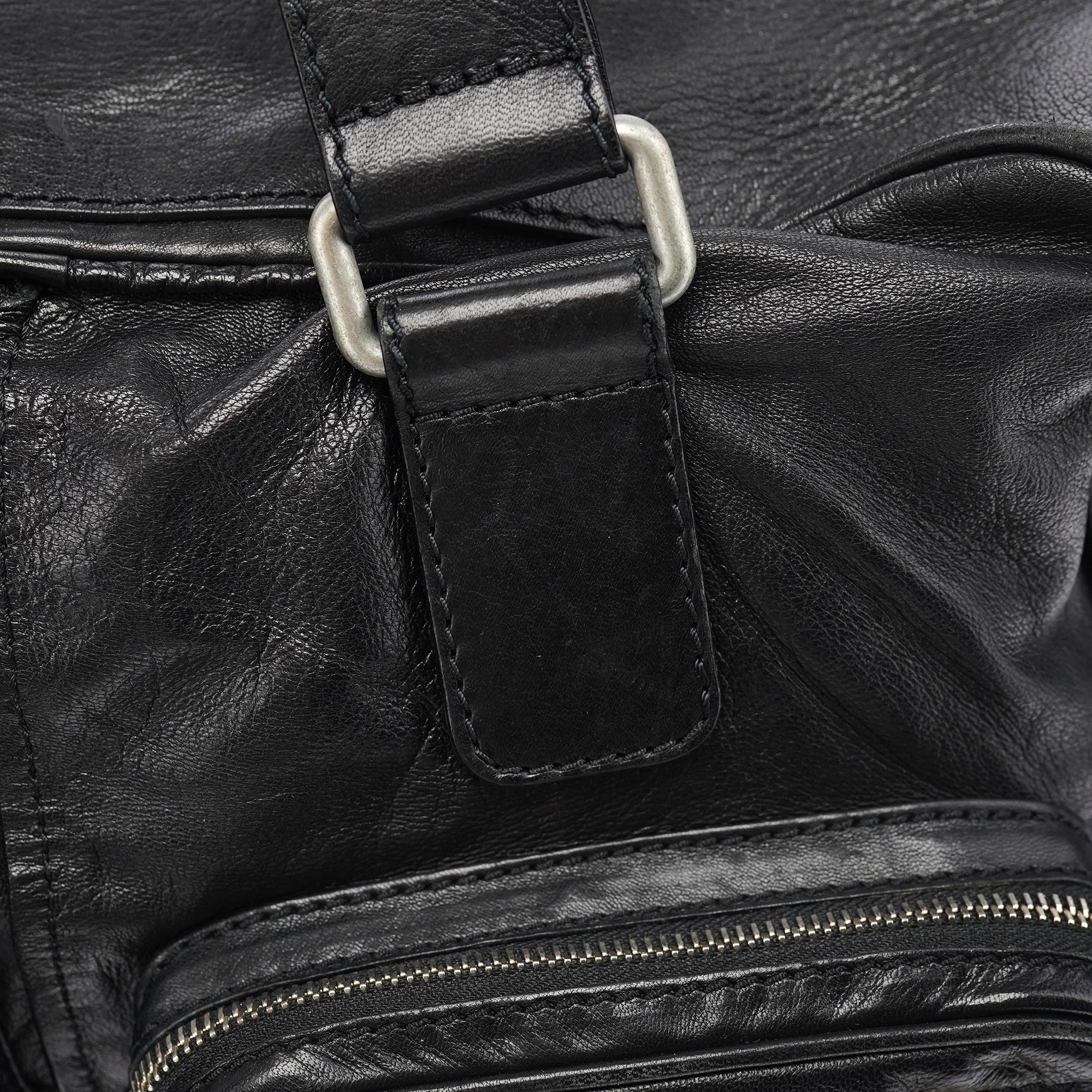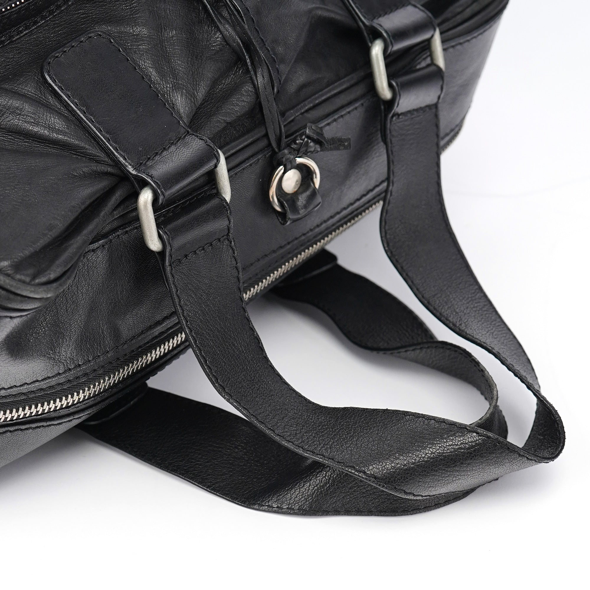 Designed in the early 2000s by Phoebe Philo, this vintage Chloé Betty handbag exemplifies Philo's rock-chic aesthetic in supple black leather. The architectural silhouette features multiple front zip pockets with oversized gold-tone ring pulls, dual top handles, and a spacious main compartment with zip closure. The edgy design combines functional utility with downtown sophistication.