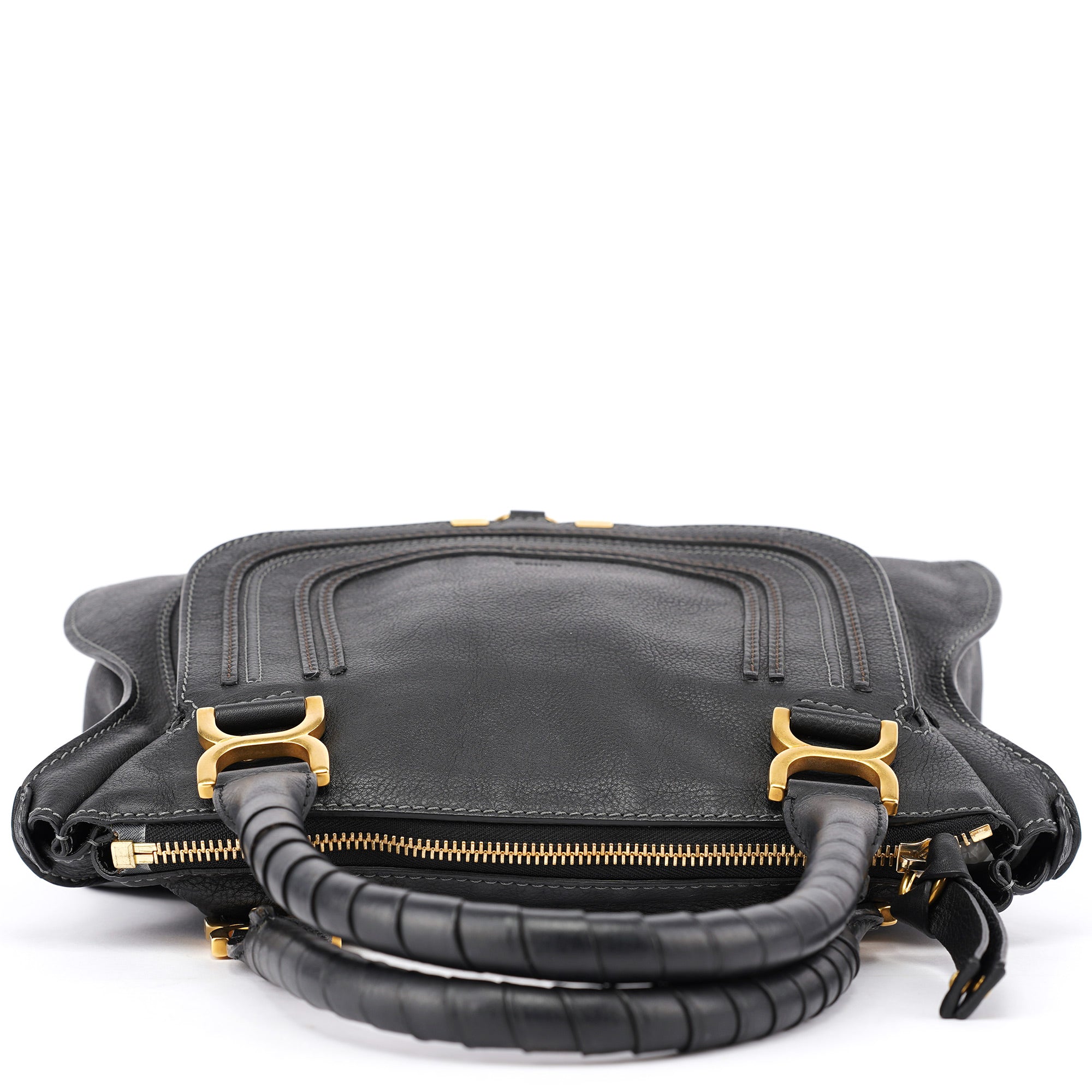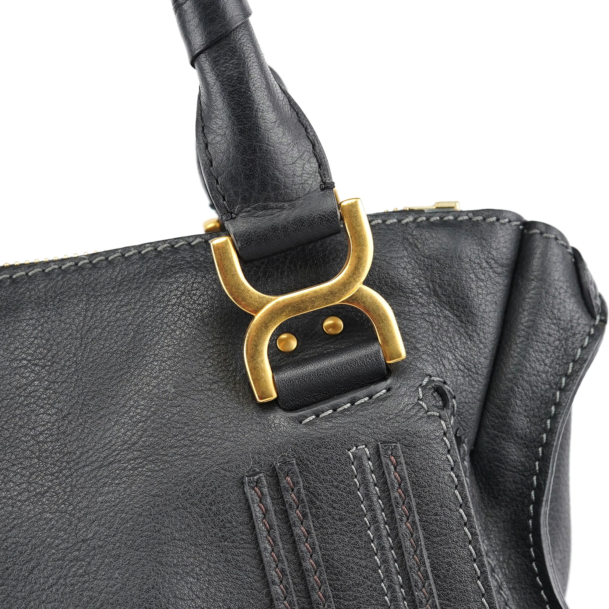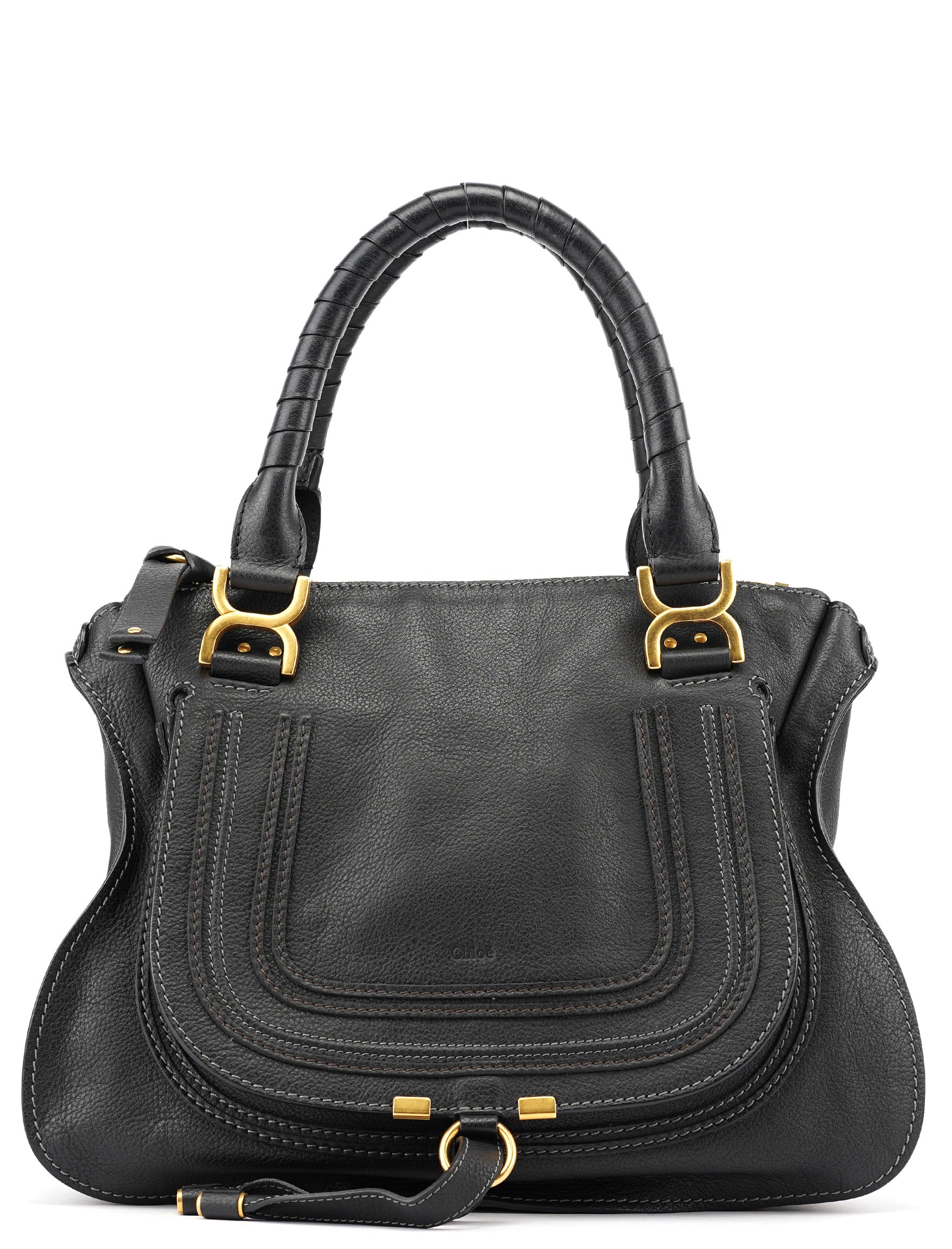 Designed by Hannah MacGibbon, the Chloé Marcie handbag blends small-grain calfskin leather with gold-tone hardware in a refined bohemian-luxe silhouette. Featuring the signature flap pocket with saddle stitching and leather-wrapped handles. It offers a spacious main compartment, balancing French elegance with everyday practicality.