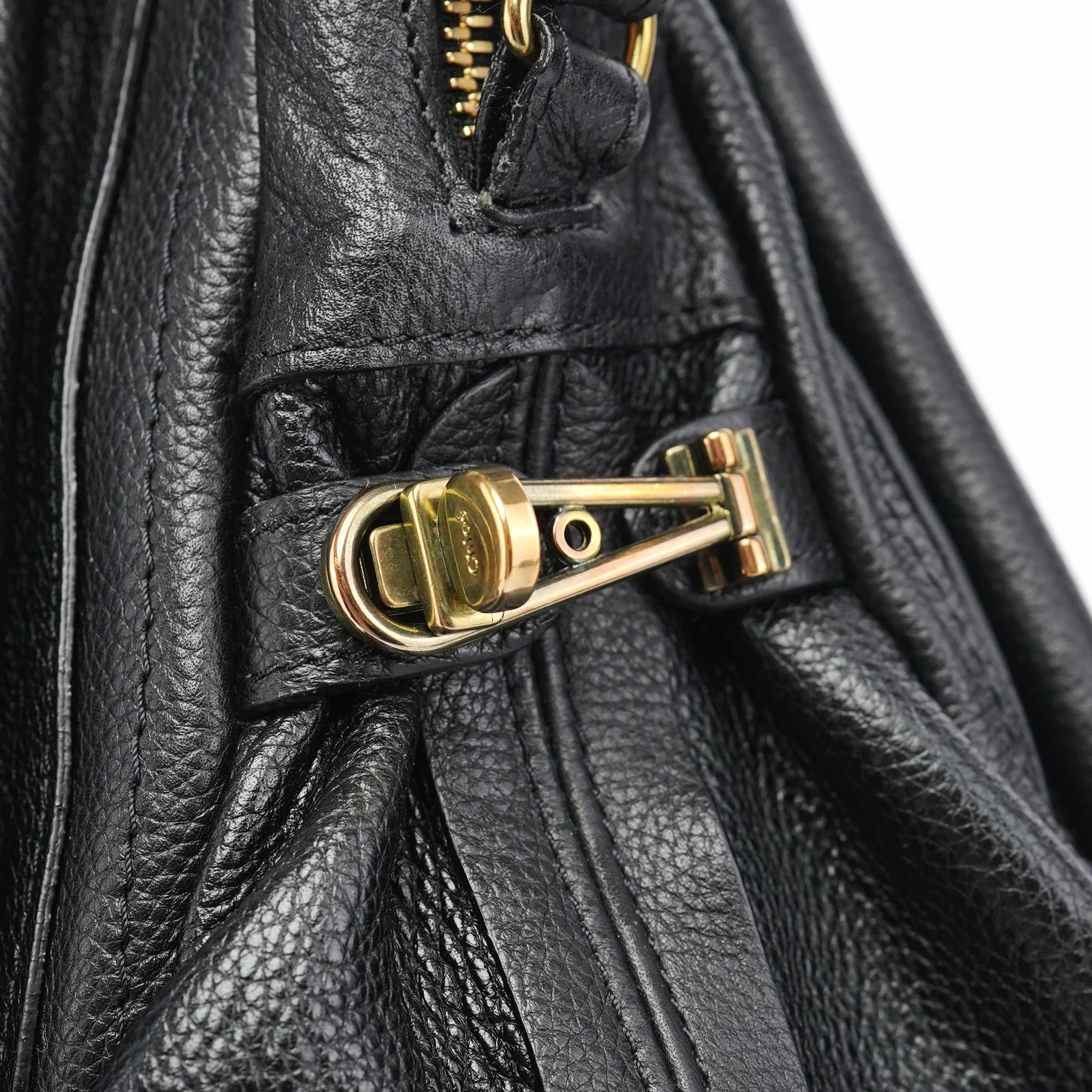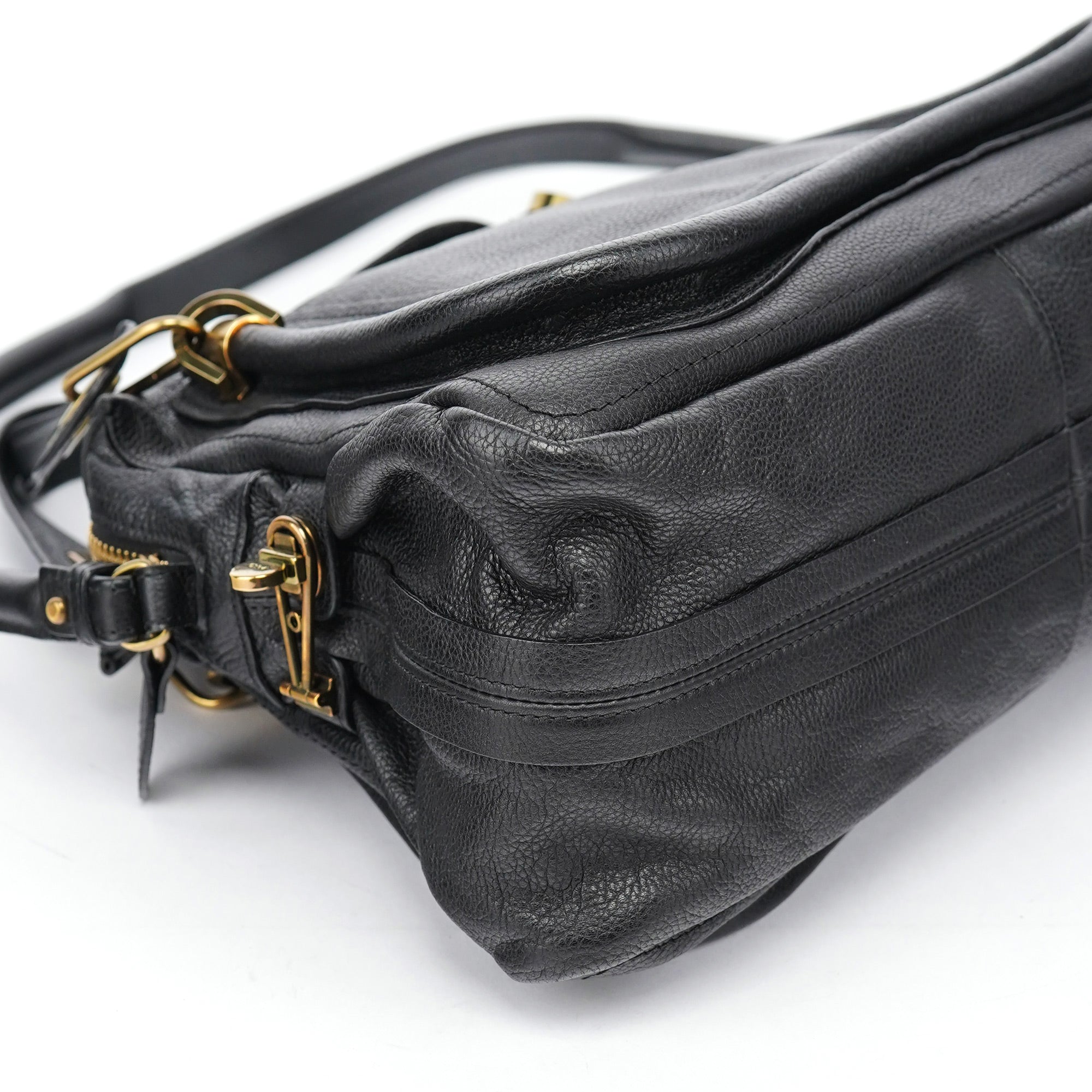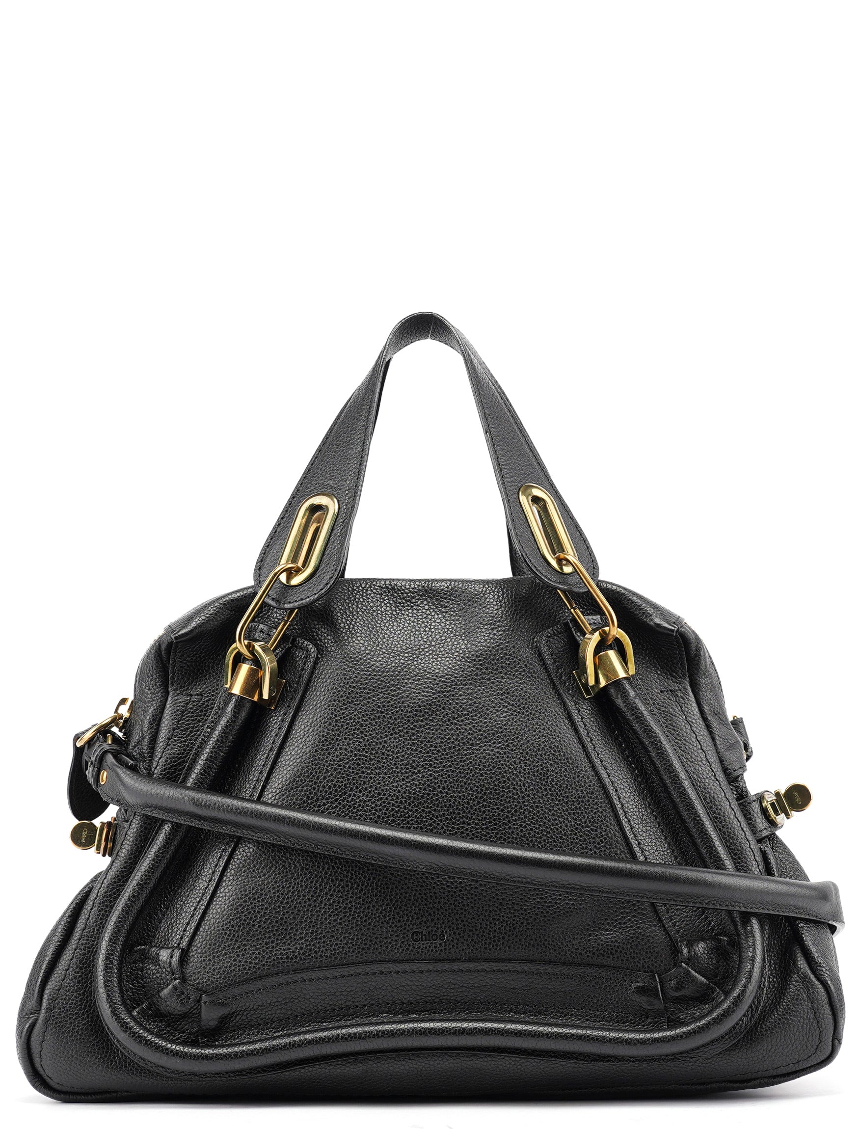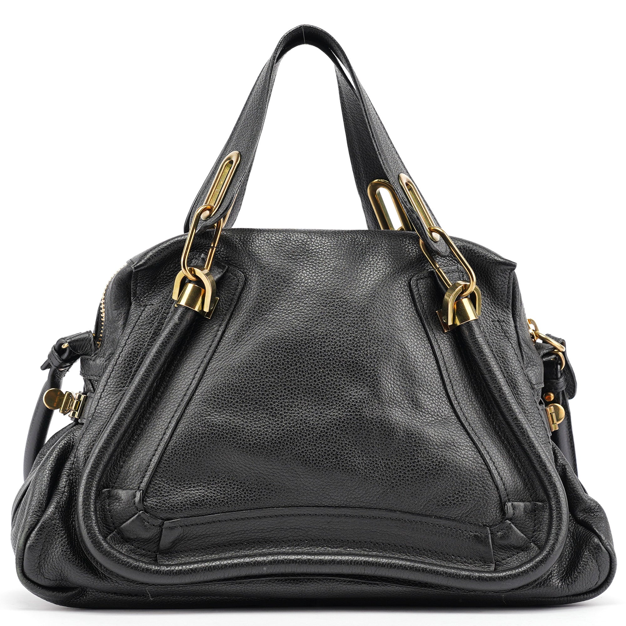 Designed in the late 2000's by Hannah McGibbon, this Chloé Paraty bag is crafted in supple black leather with signature gold-tone hardware and a trapezoidal silhouette framed by piped detailing and articulated top handles. The structured design includes a zip closure, optional shoulder strap, and a canvas-lined interior with a single zip pocket.