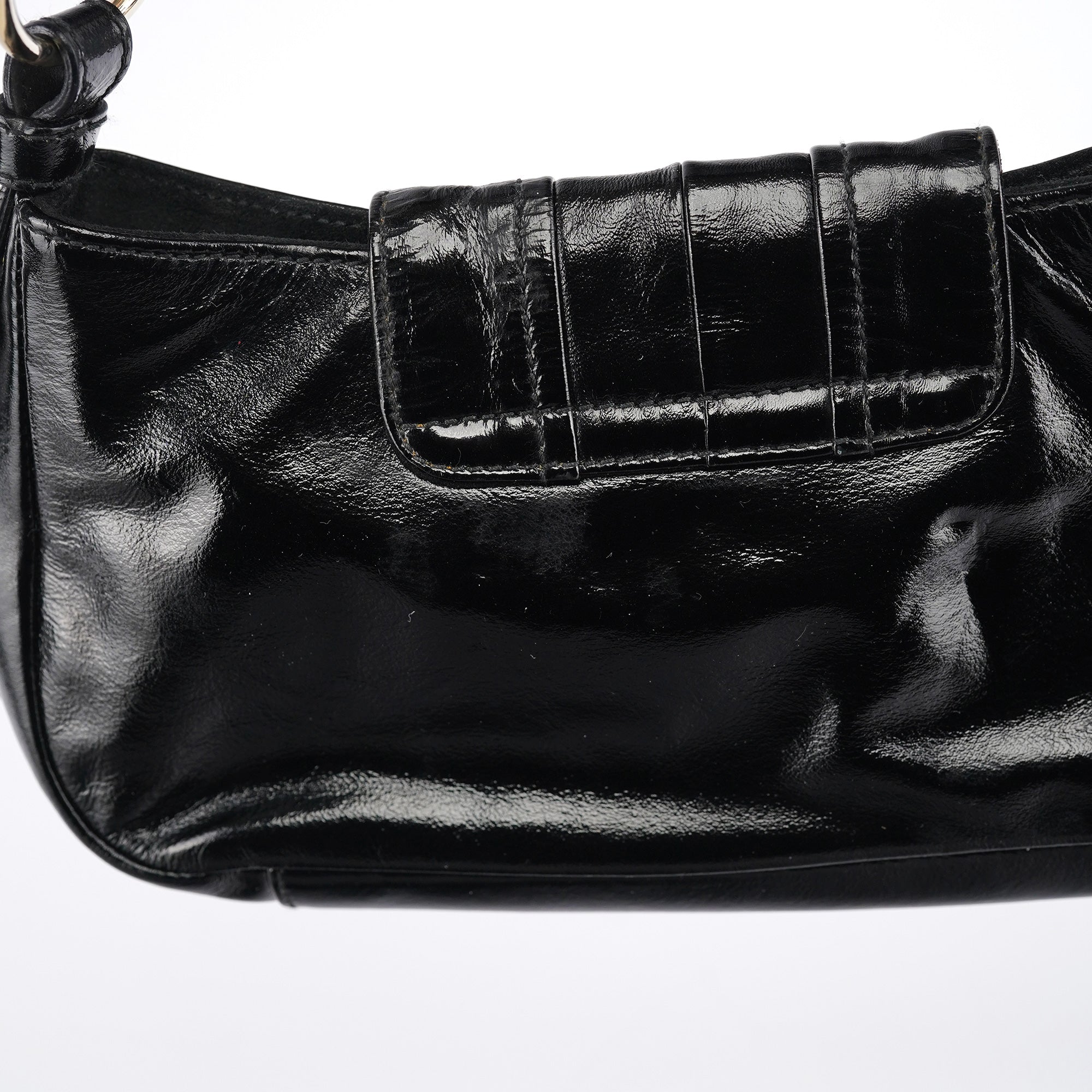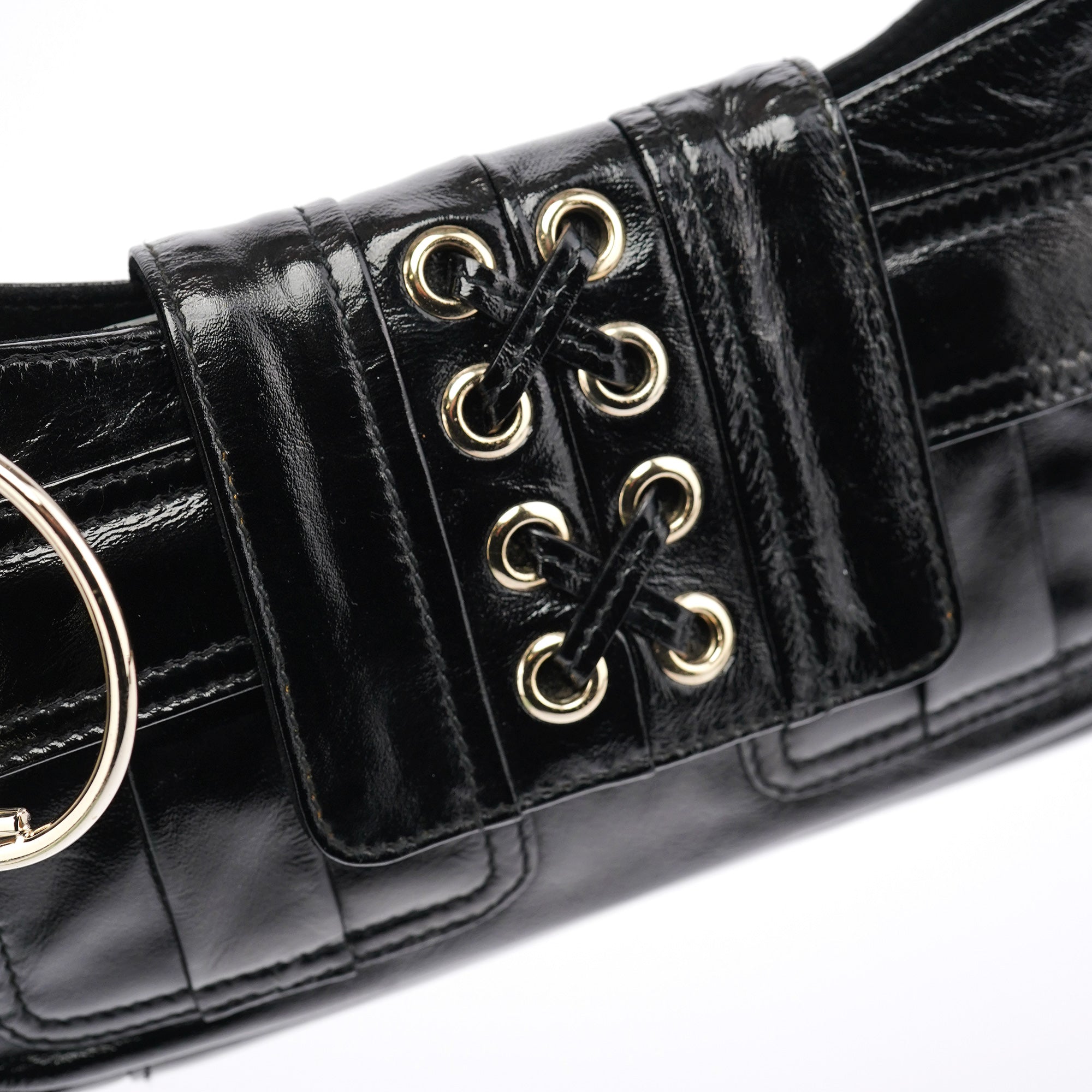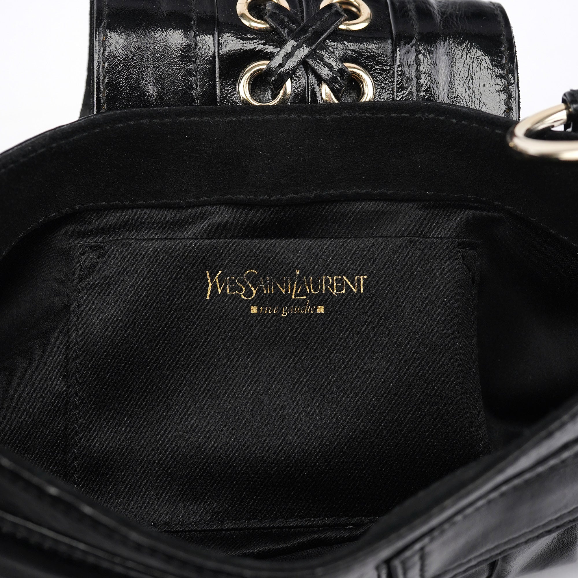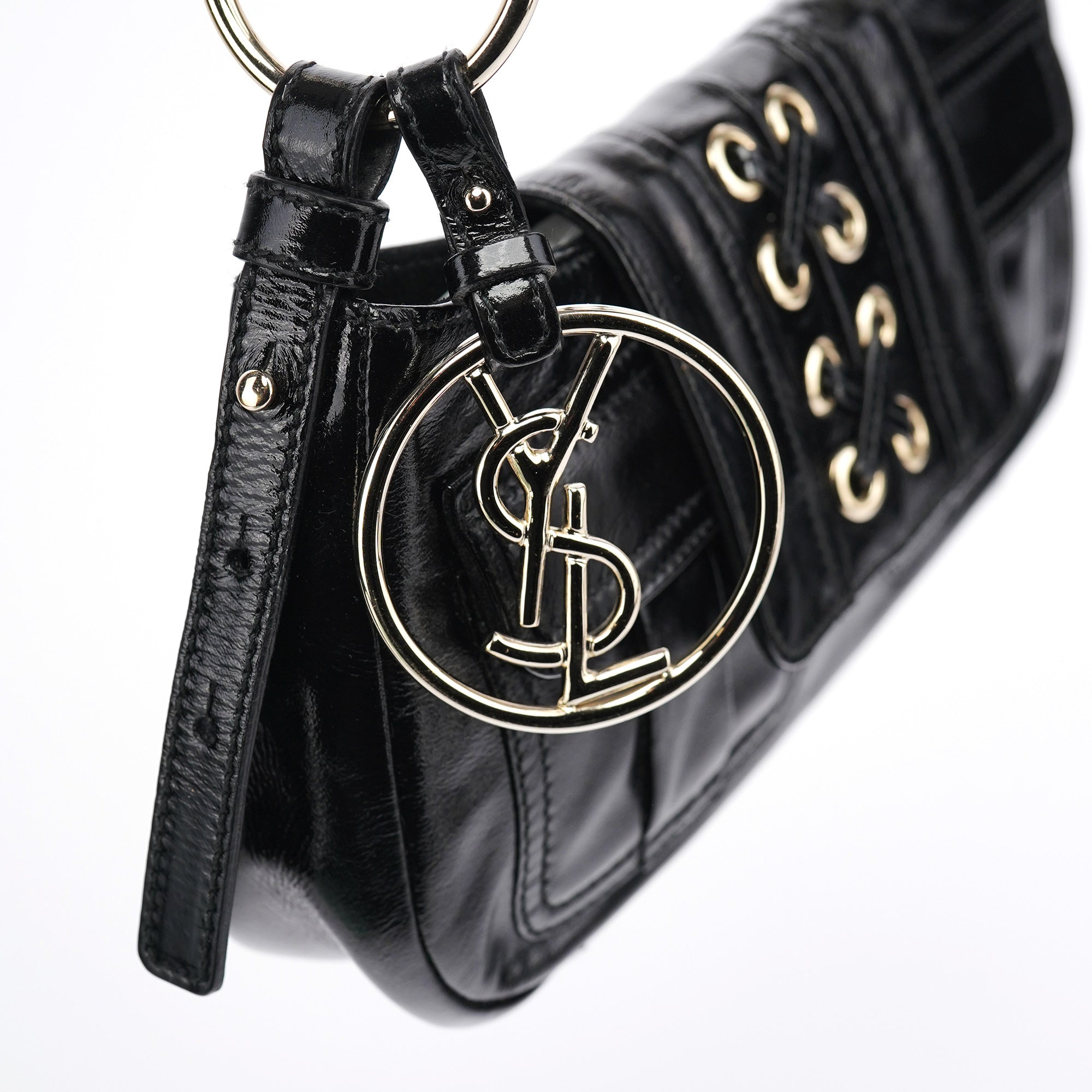 Black Patent Leather YSL Eyelet Shoulder Bag