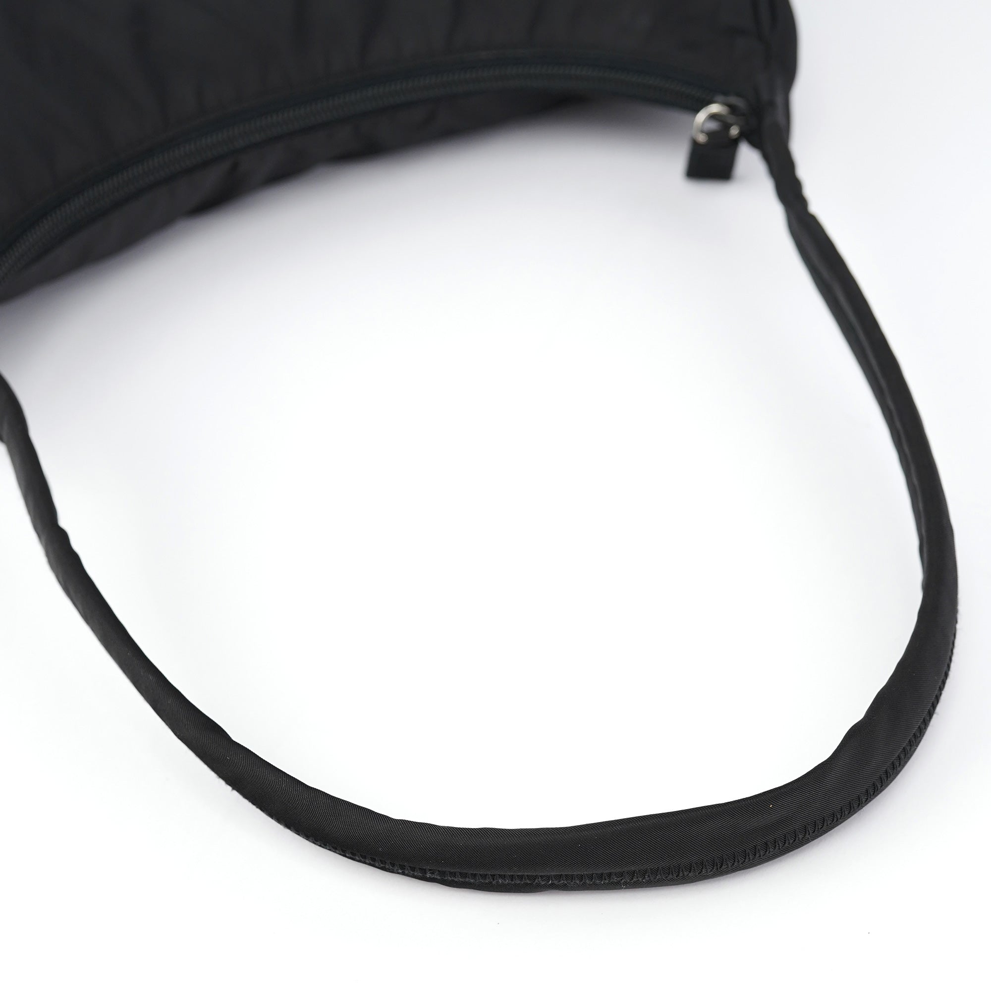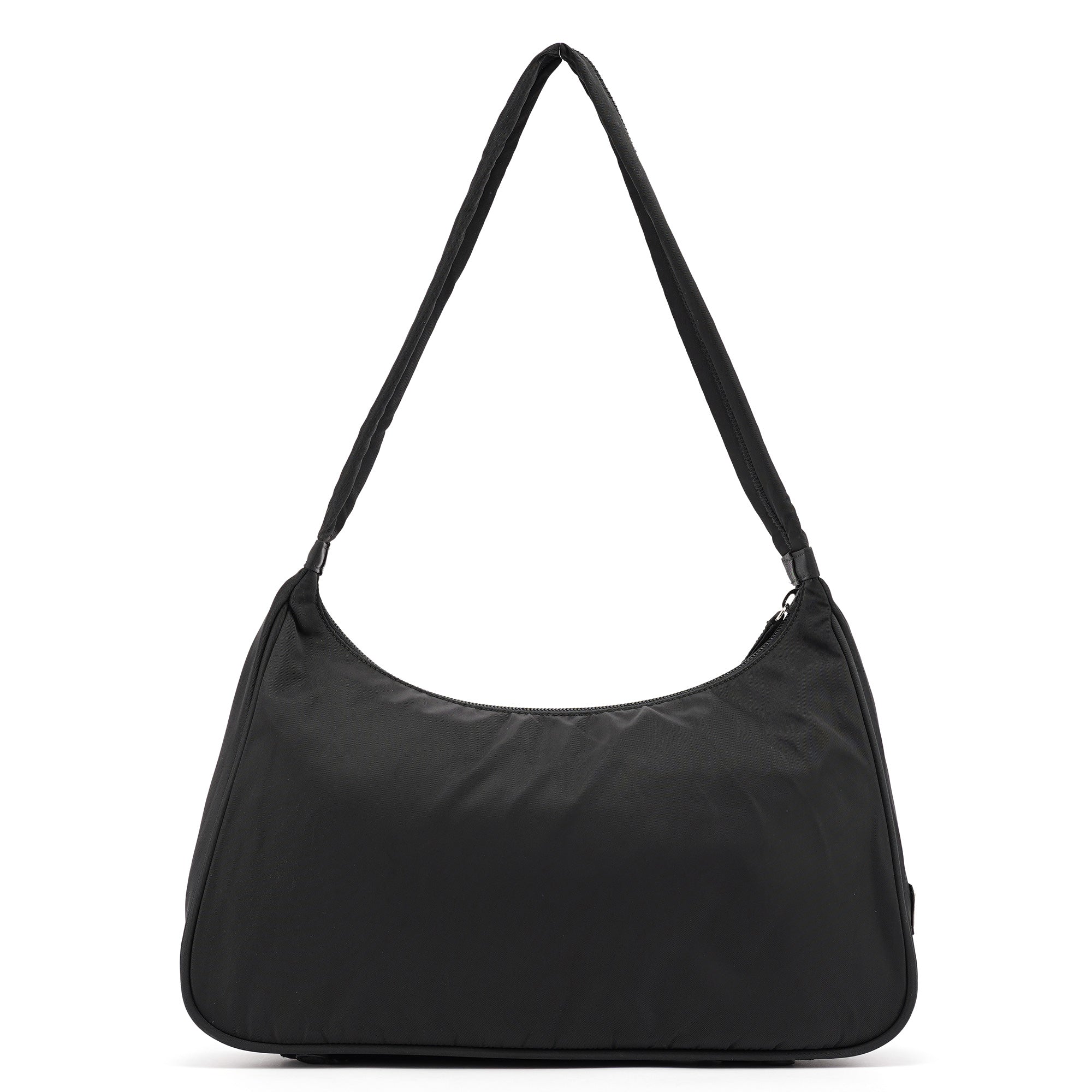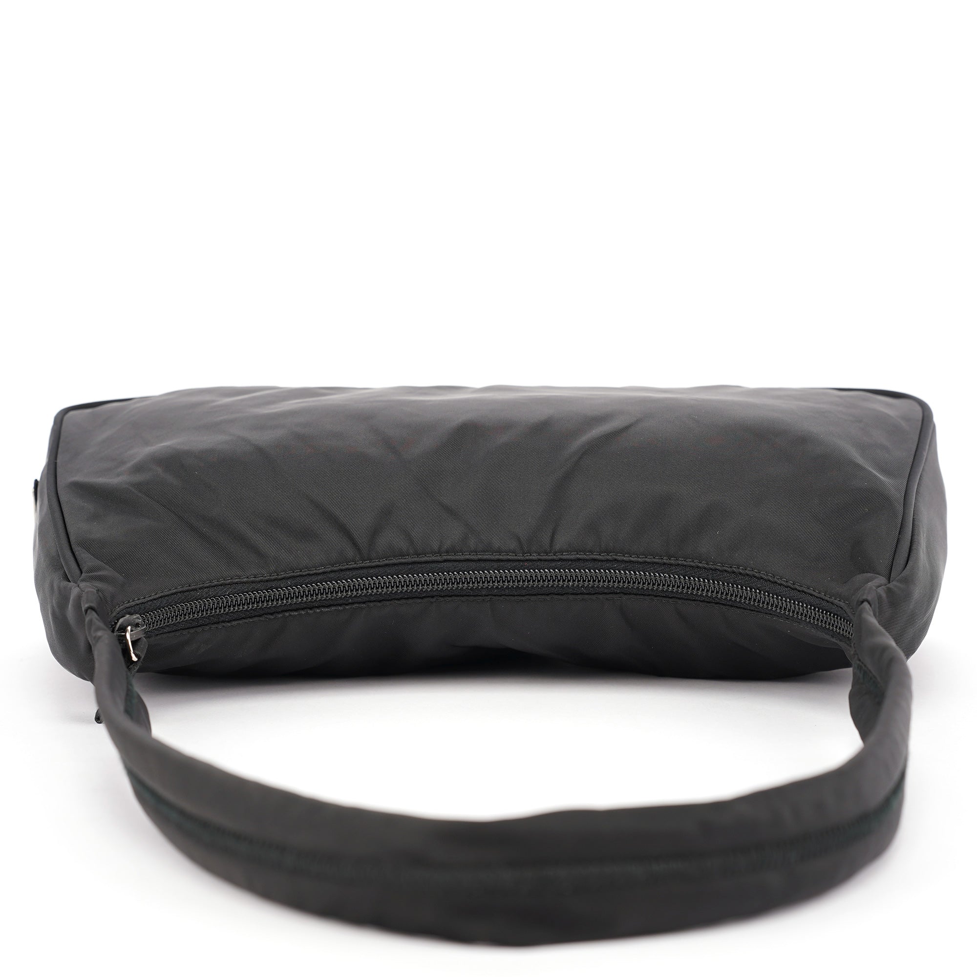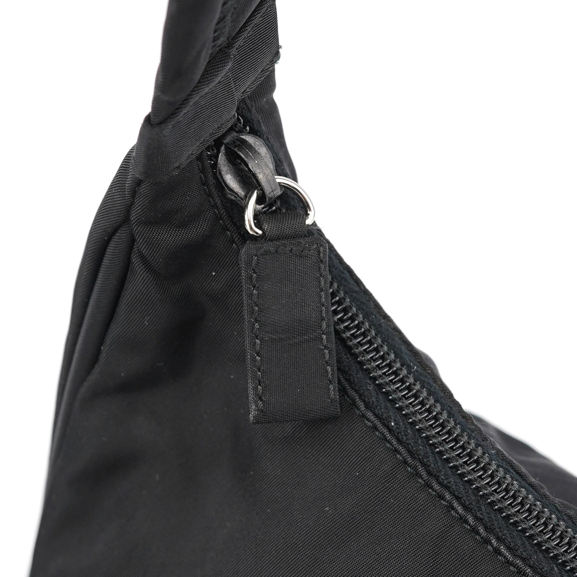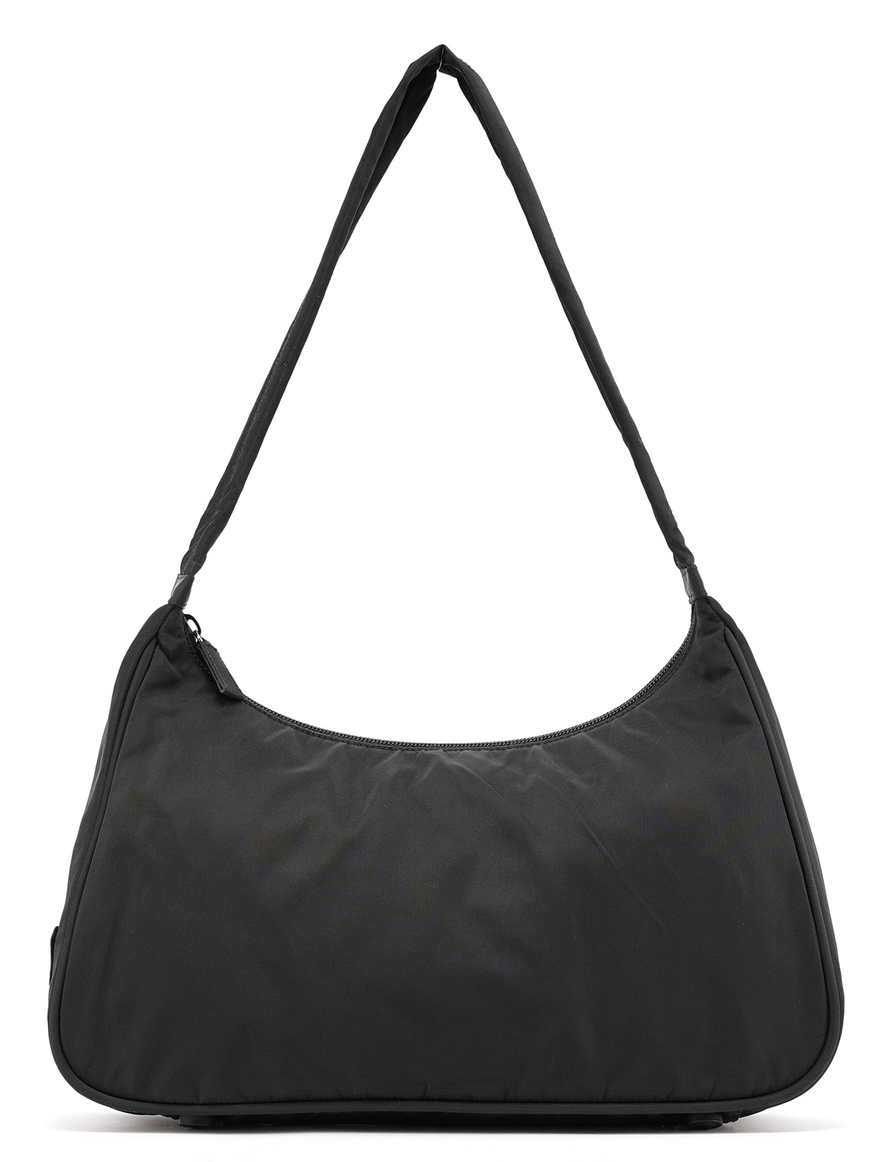 Designed in the late 1990s by Miuccia Prada, this Prada Tessuto hobo shoulder bag is crafted in signature black Tessuto nylon with a structured hobo silhouette and smooth leather trim. It features the iconic enamel triangle logo plate on the side, a top zip closure, and a spacious interior lined in logo jacquard fabric. As popularised by Kendall Jenner.
