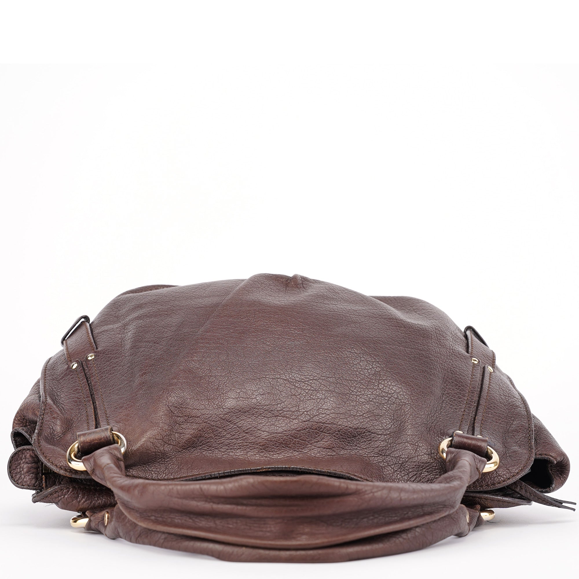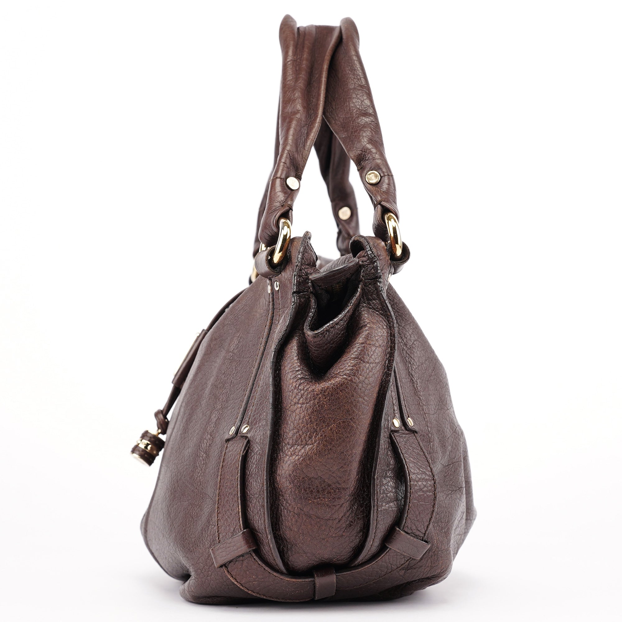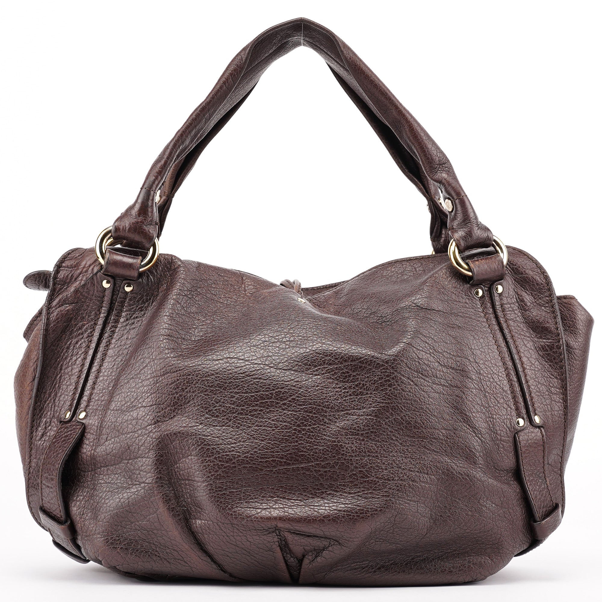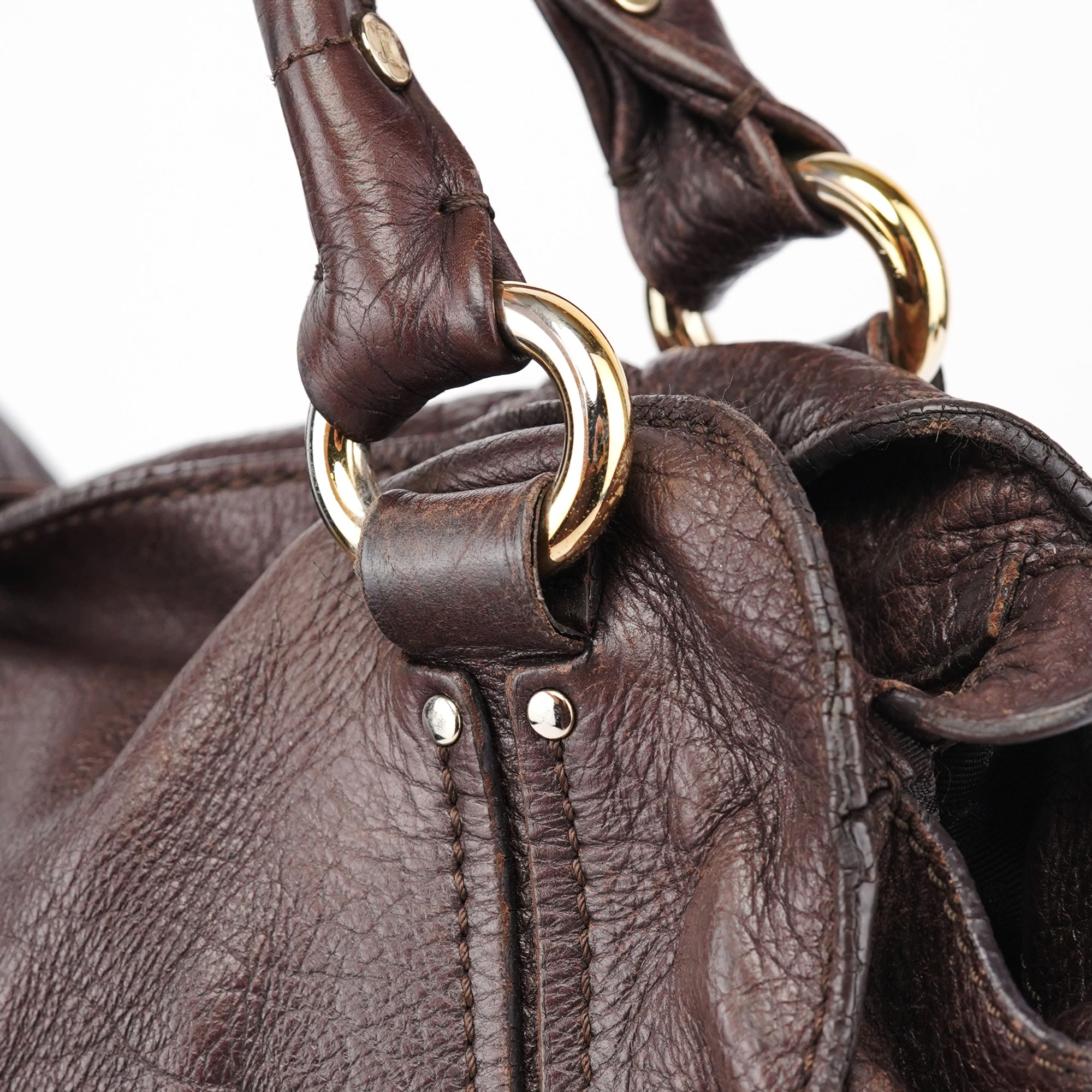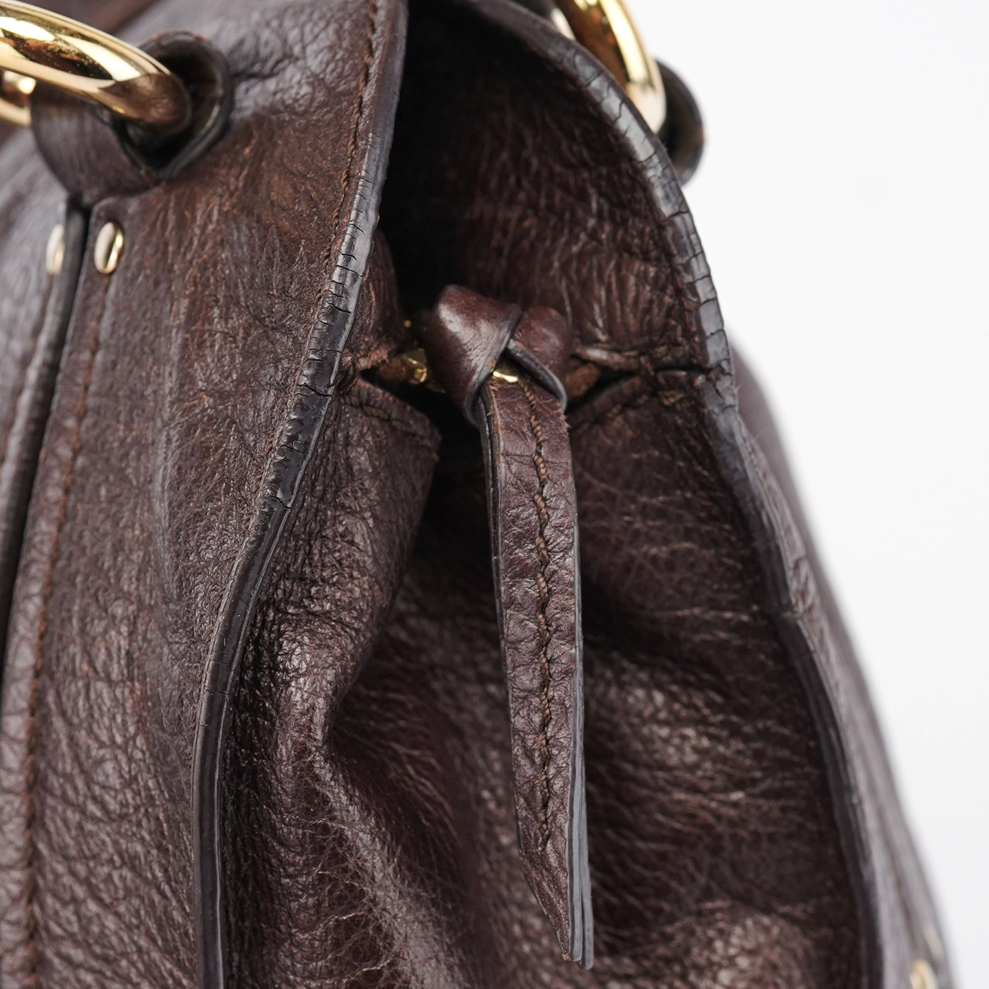 Designed in the early 2000s, the Celine Bittersweet shoulder bag is crafted in supple brown leather with pleated gussets and a signature drawstring tie. The double handle design is accented with gold-tone hardware and side buckles, while the interior is lined in tonal logo jacquard with a zip pocket and slip compartments.